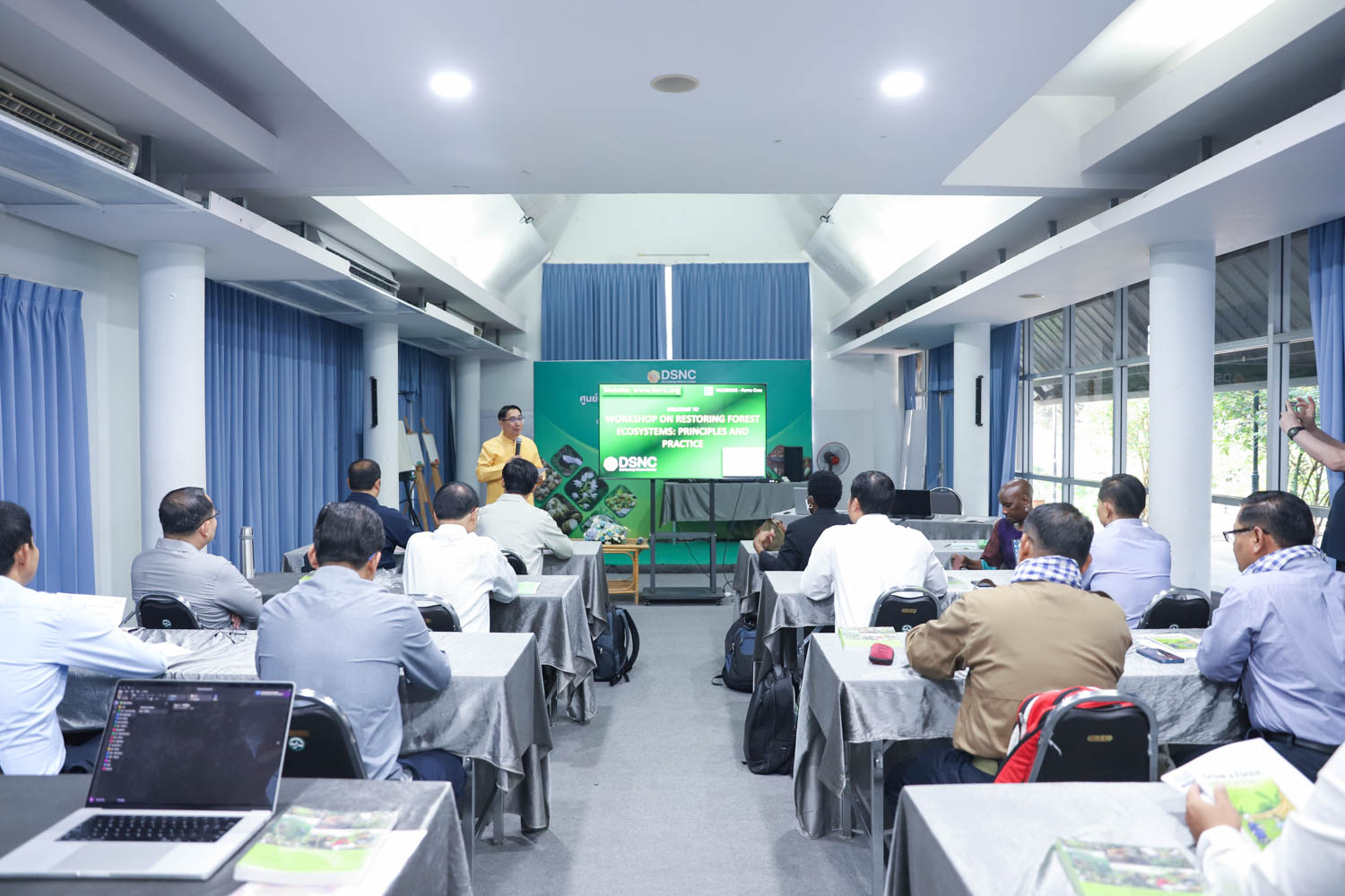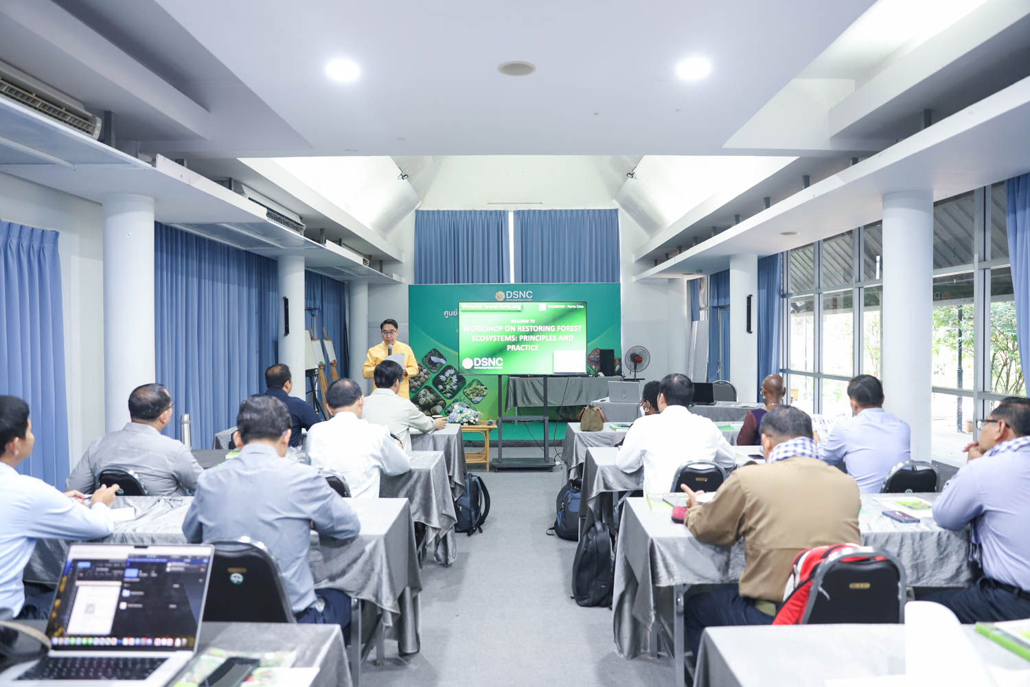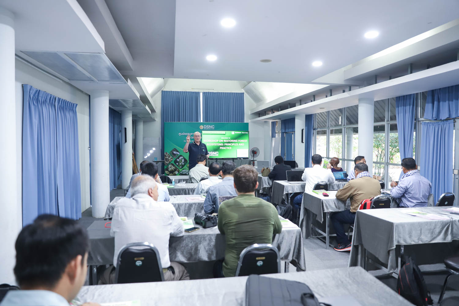 ศาสตราจารย์ (เชี่ยวชาญพิเศษ) ดร.ธรณินทร์ ไชยเรืองศรี คณบดีคณะวิทยาศาสตร์ กล่าวต้อนรับผู้เข้าร่วมโครงการอบรมเชิงปฏิบัติการเรื่อง Restoring Tropical Forests Principles and Practice ซึ่งจัดโดย หน่วยวิจัยการฟื้นฟูป่า ภาควิชาชีววิทยา คณะวิทยาศาสตร์ (The Forest Restoration Research Unit (FORRU-CMU)) นำโดย รศ.ดร.สตีเฟ่น เอลเลียต เมื่อวันที่ 5 กุมภาพันธ์ 2567 ณ ศูนย์ธรรมชาติวิทยาดอยสุเทพเฉลิมพระเกียรติฯ คณะวิทยาศาสตร์ ผู้เข้าร่วมโครงการประกอบด้วยเจ้าหน้าที่จาก World Bank และกระทรวงสิ่งแวดล้อม ราชอาณาจักรกัมพูชา จำนวน 19 ท่าน โดยโครงการจะจัดต่อเนื่องไปจนถึงวันที่ 7 กุมภาพันธ์นี้
