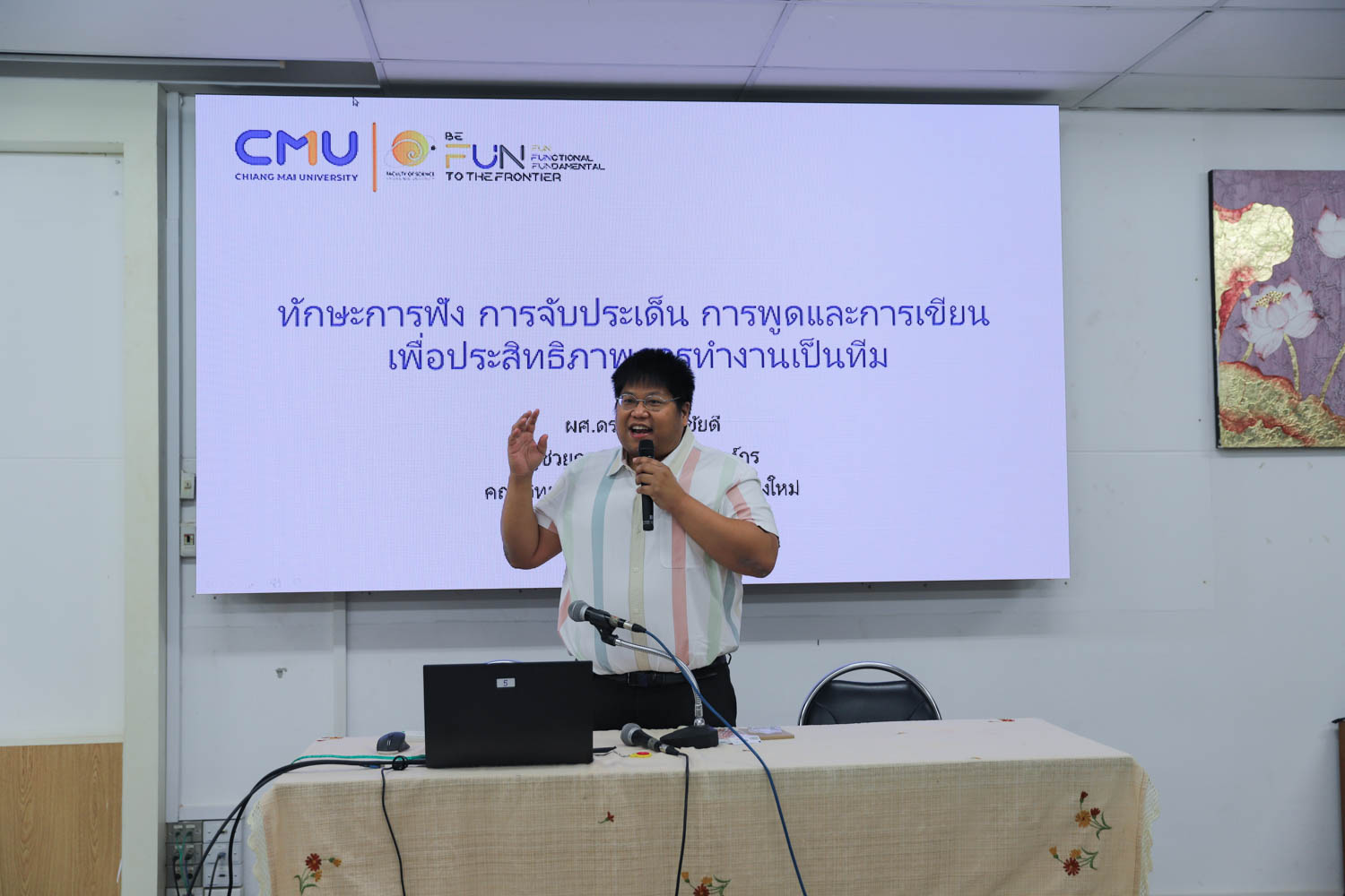 สำนักงานคณะวิทยาศาสตร์จัดโครงการสัมมนาบุคลากรประจำปี 2567 หัวข้อ เติมใจ เติมสุข สนุกกับการทำงาน ครั้งที่ 9 เมื่อวันที่ 9 กุมภาพันธ์ 2567 ณ ห้องสัมมนา ชั้น 2 อาคาร 40 ปี คณะวิทยาศาสตร์ เพื่อส่งเสริมให้บุคลากร มีความสัมพันธ์ที่ดี มีความรักสามัคคี และได้พัฒนาทักษะการทำงานร่วมกันเป็นทีม โดยได้รับเกียรติจาก ศาสตราจารย์ (เชี่ยวชาญพิเศษ) ดร.ธรณินทร์ ไชยเรืองศรี คณบดีคณะวิทยาศาสตร์ เป็นประธานเปิดโครงการ และผู้ช่วยศาสตราจารย์ ดร.ศุภณัฐ ชัยดี ผู้ช่วยคณบดีฝ่ายสื่อสารองค์กร คณะวิทยาศาสตร์ เป็นวิทยากรบรรยายพิเศษเพื่อส่งเสริมประสิทธิภาพการทำงานเป็นทีม เมื่อวันที่ 9 กุมภาพันธ์ 2567 ณ ห้องสัมมนา ชั้น 2 อาคาร 40 ปี คณะวิทยาศาสตร์