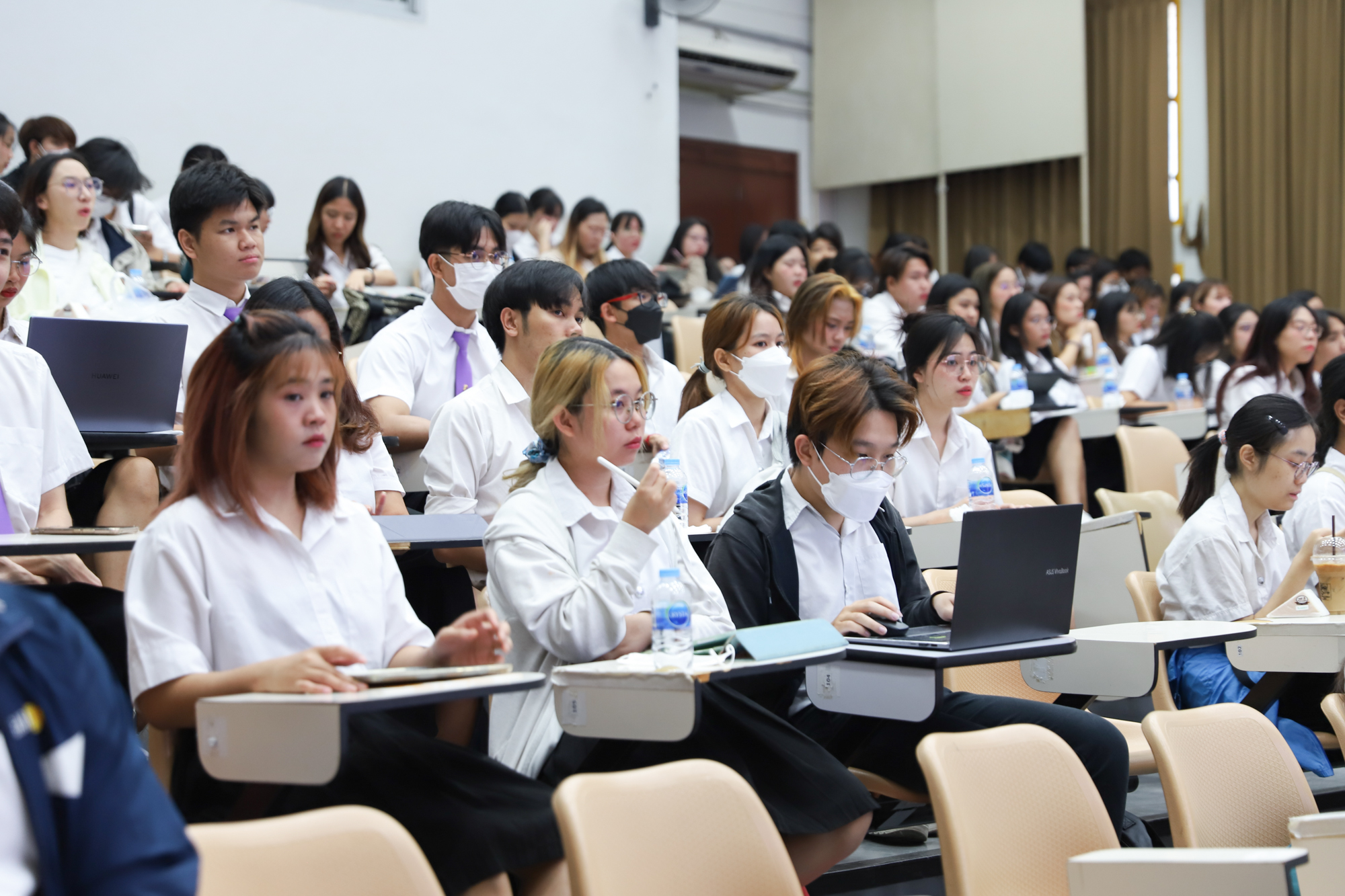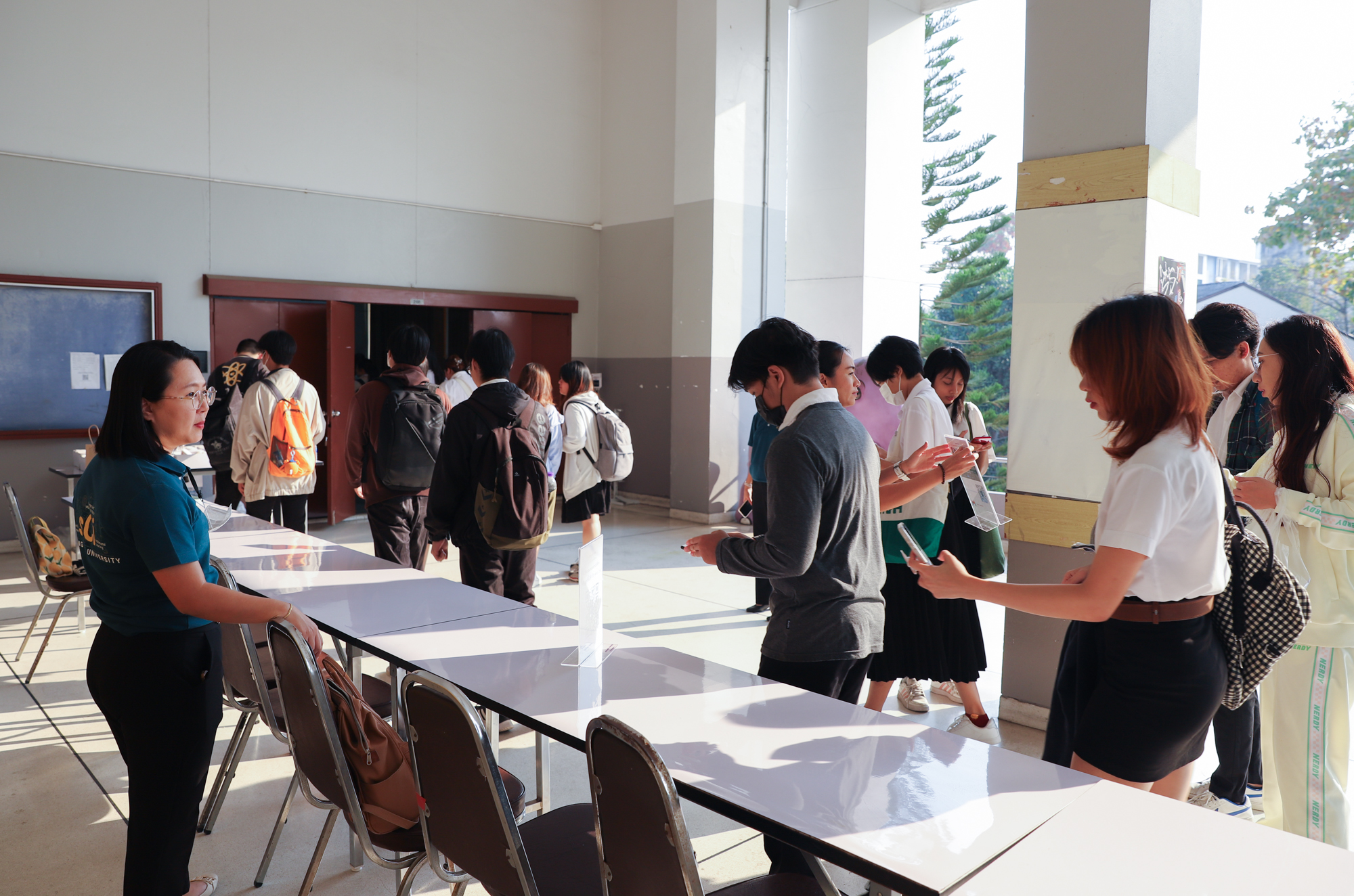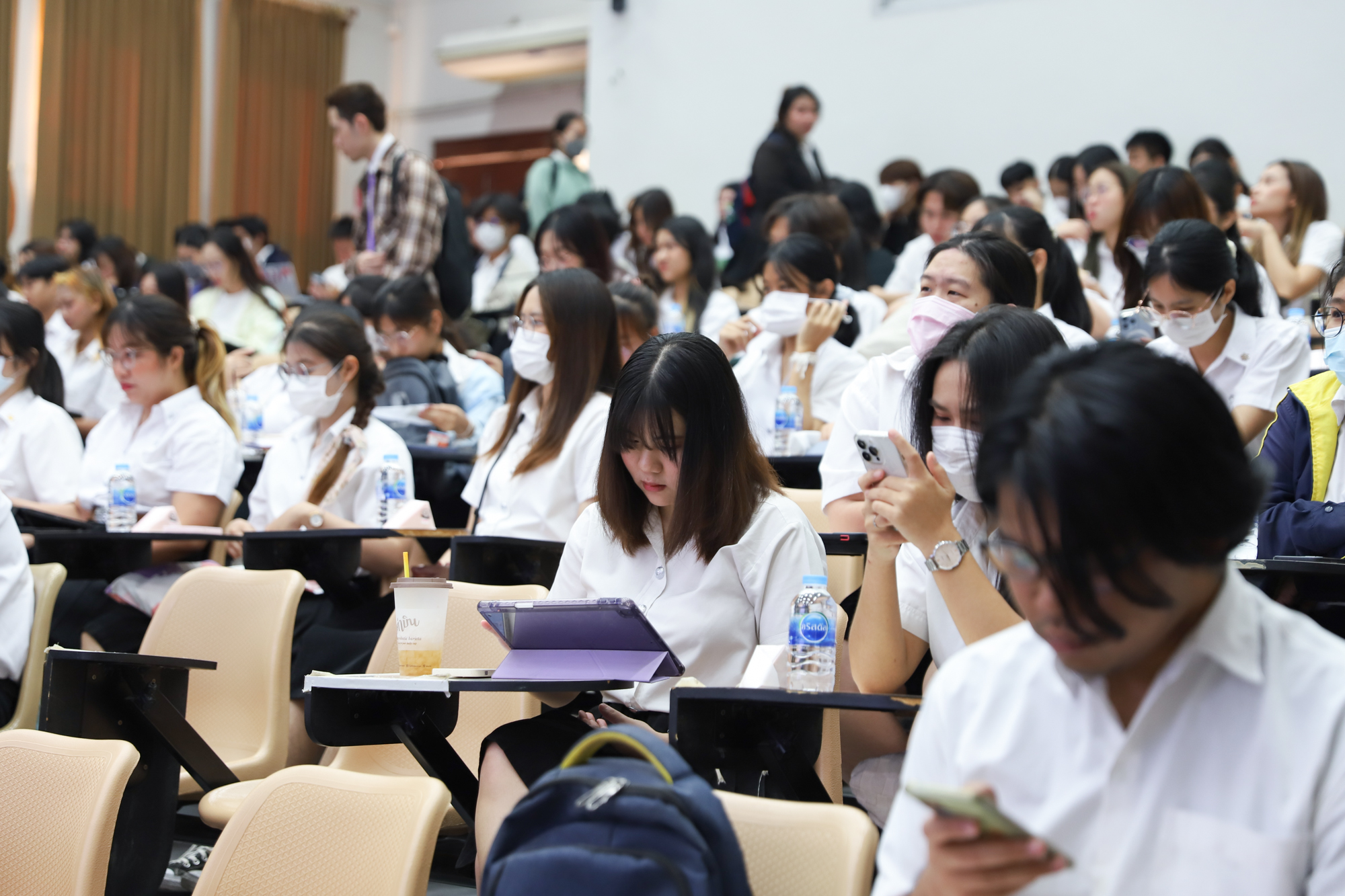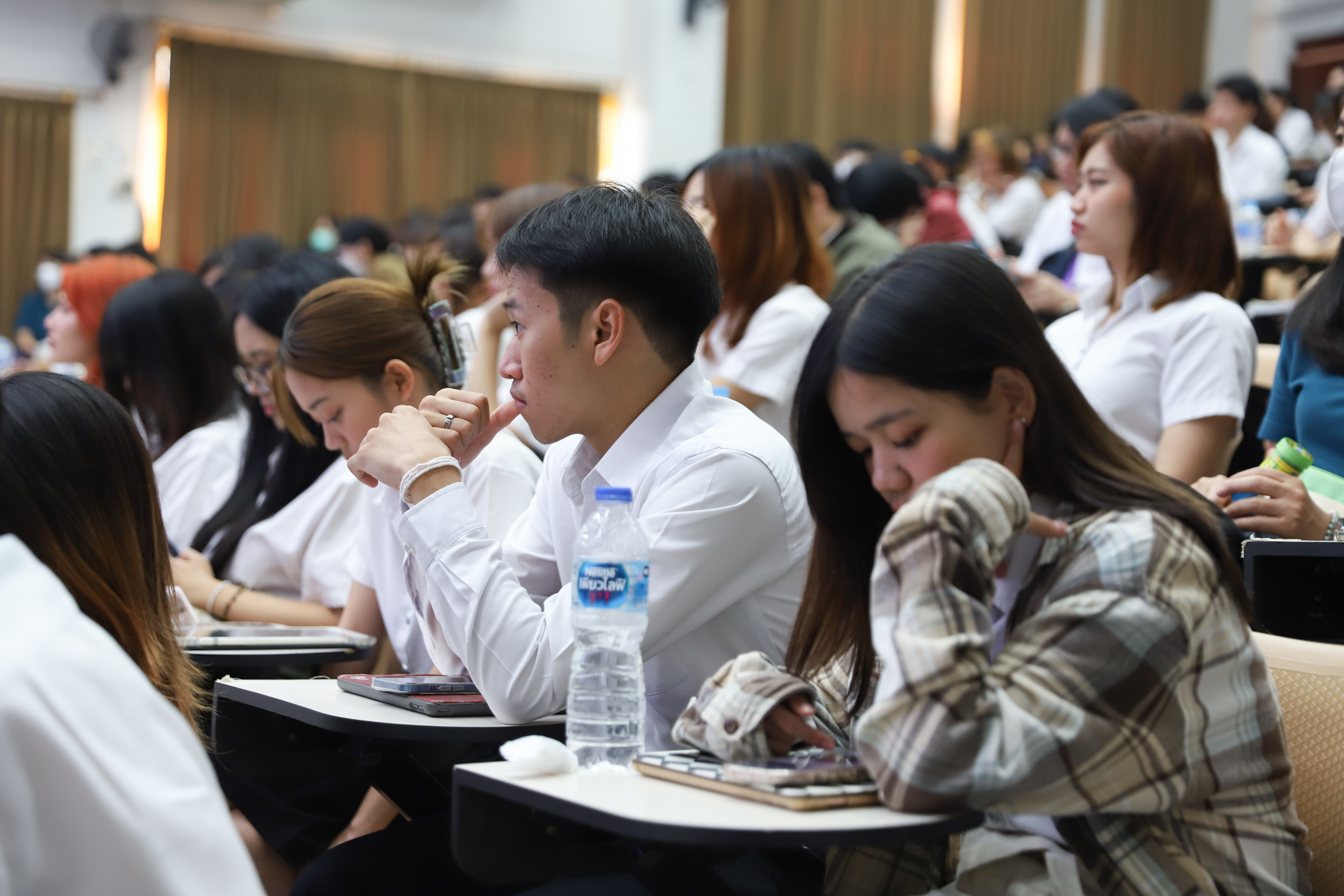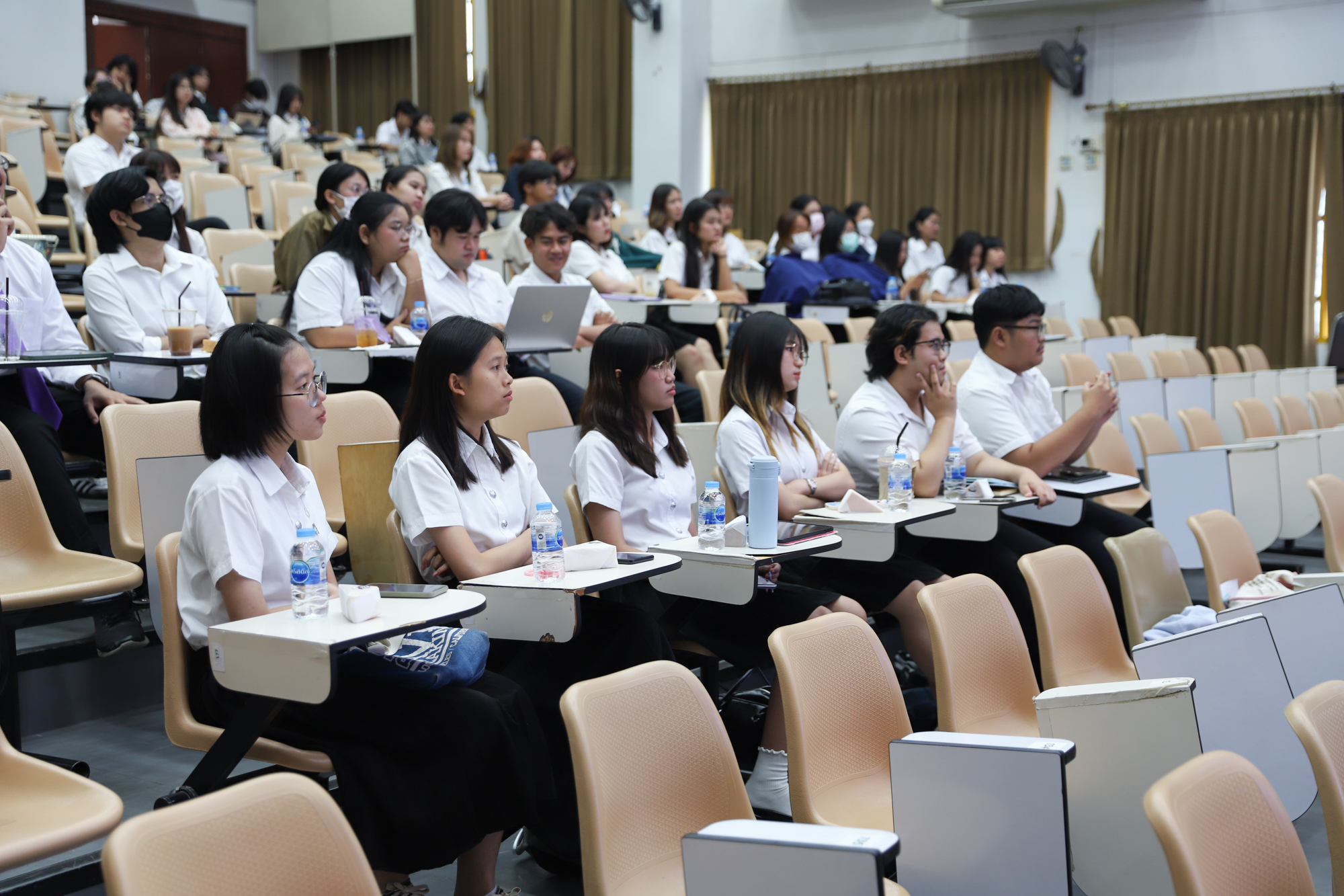 คณะวิทยาศาสตร์จัดกิจกรรมกิจกรรมนำเสนอผลงานวิชาการและสหกิจศึกษาของนักศึกษาระดับปริญญาตรี ชั้นปีที่ 4 ในวันที่ 6 มีนาคม 2567 โดยได้รับเกียรติจากรองคณบดีฝ่ายวิชาการ ผู้ช่วยศาสตราจารย์ ดร. ภควรรณ พวงสมบัติ เป็นประธานเปิดกิจกรรม และ ดร.ธีรเดช ดำรงค์พลาสิทธิ์ ประธานเจ้าหน้าที่บริหาร บริษัท เอ้ก ดิจิทัล จำกัด ศิษย์เก่าคณะวิทยาศาสตร์ มาร่วมแบ่งปันประสบการณ์ให้กับน้องๆ และบรรยายในหัวข้อ “การเตรียมความพร้อมสู่การทำงาน” ณ ห้องบรรยาย SCB2100 ชั้น 1 อาคาร 40 ปี คณะวิทยาศาสตร์ โดยภายหลังจากการบรรยายเสร็จสิ้น นักศึกษาได้เสนอผลงานแบบ Oral Presentation โดยแบ่งเป็น 4 กลุ่ม ได้แก่