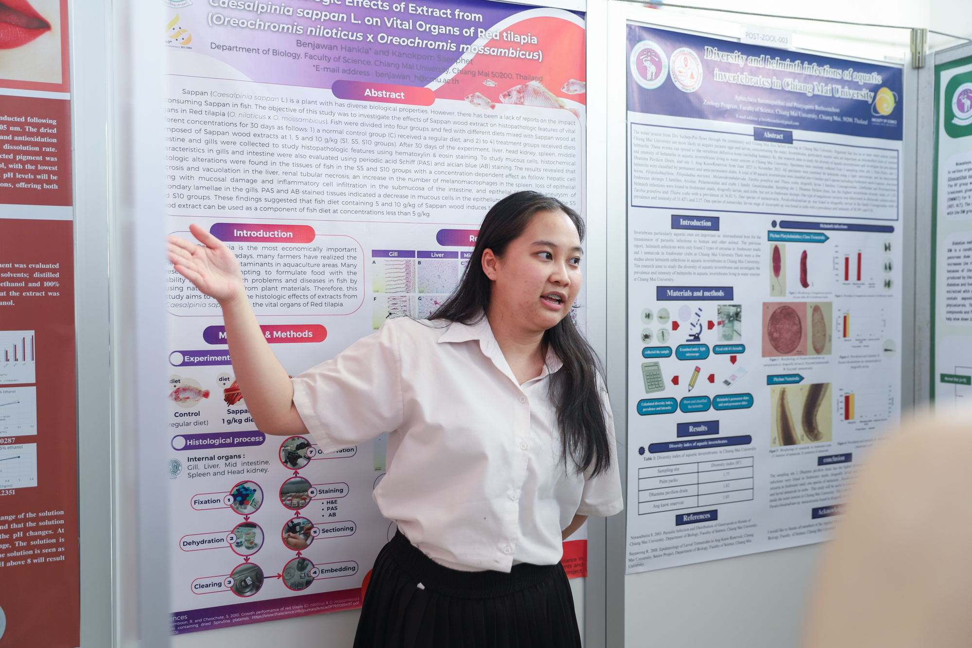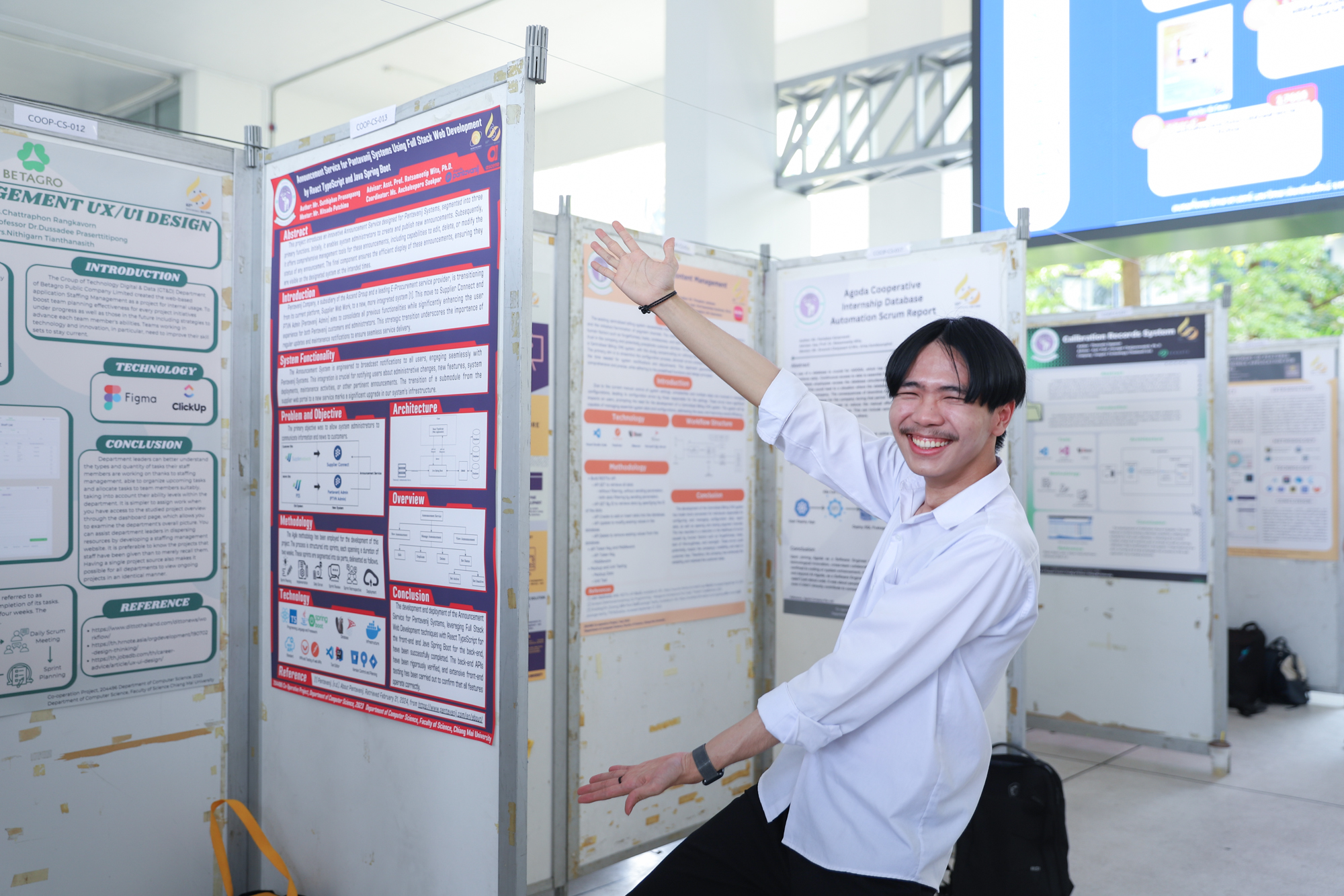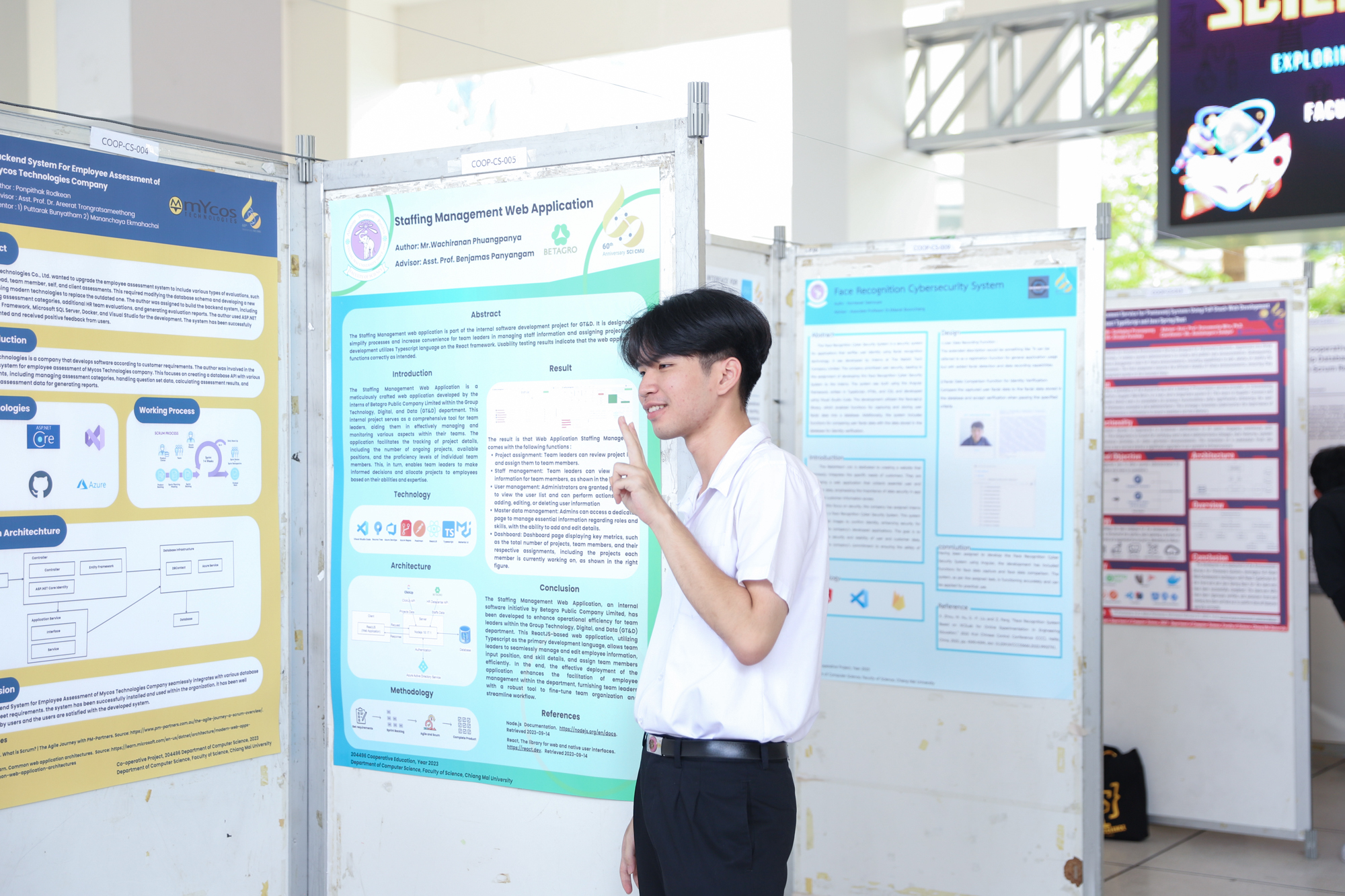 จากนั้นในช่วงบ่าย นักศึกษาได้นำเสนอผลงานแบบโปสเตอร์และสหกิจศึกษา ณ บริเวณโถงกิจกรรม ชั้น 1 อาคาร 40 ปี คณะวิทยาศาสตร์