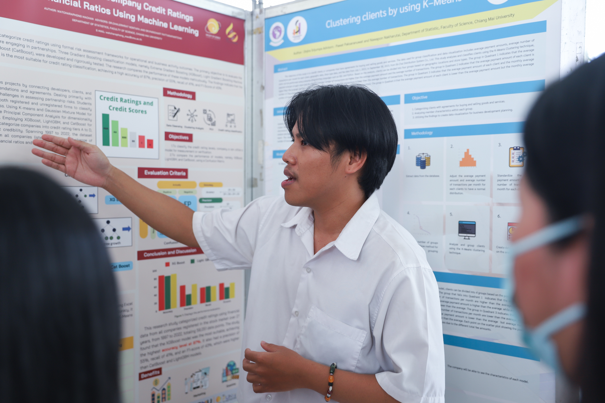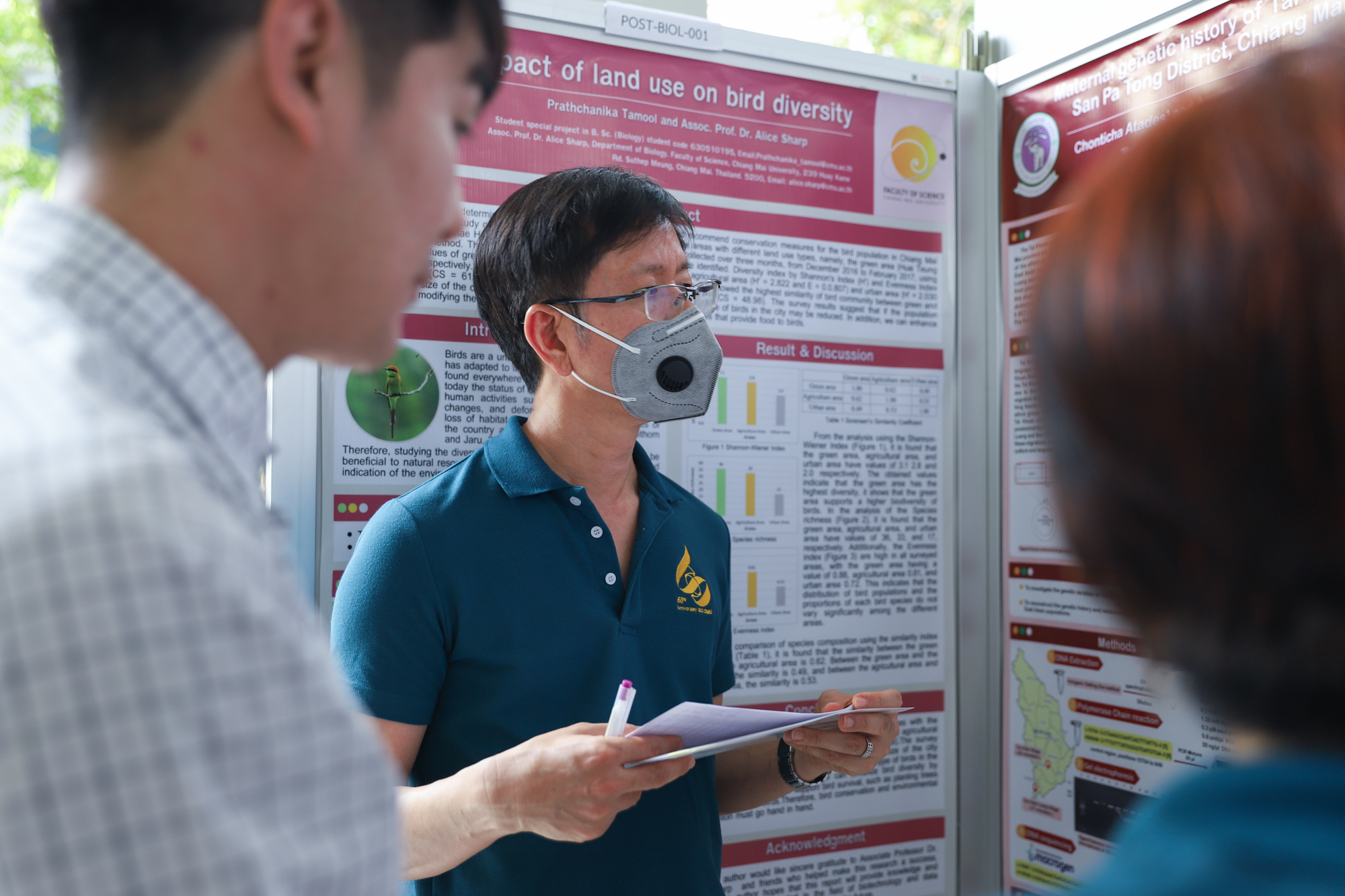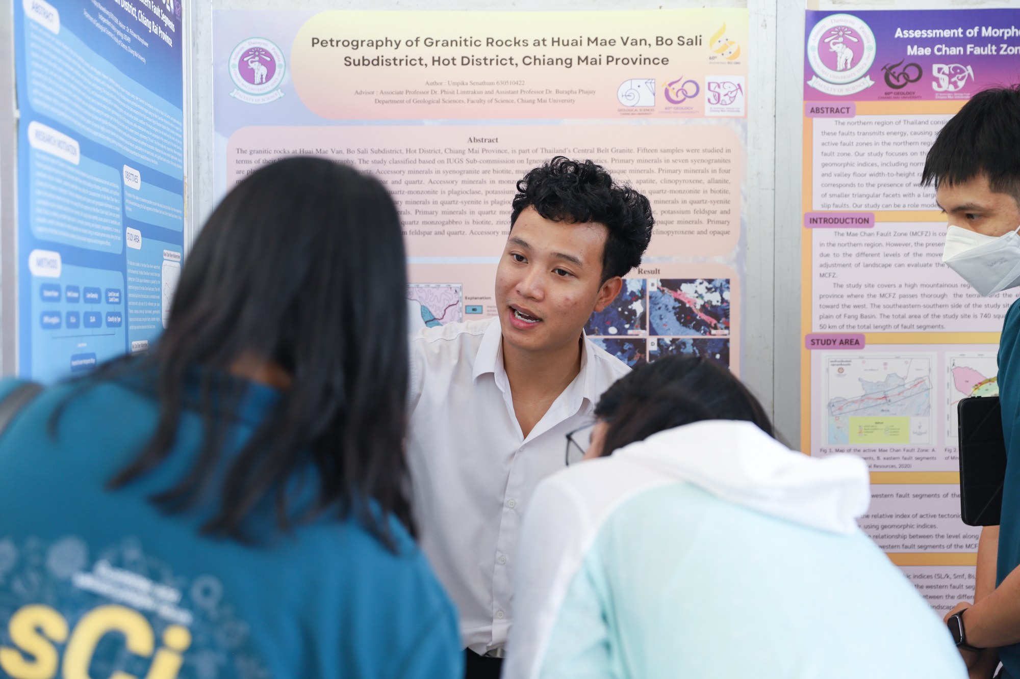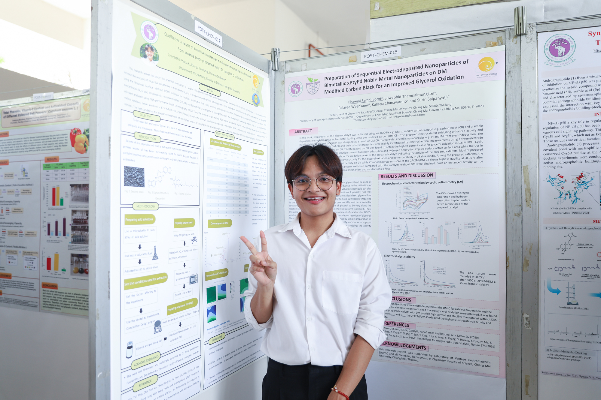 จากนั้นในช่วงบ่าย นักศึกษาได้นำเสนอผลงานแบบโปสเตอร์และสหกิจศึกษา ณ บริเวณโถงกิจกรรม ชั้น 1 อาคาร 40 ปี คณะวิทยาศาสตร์