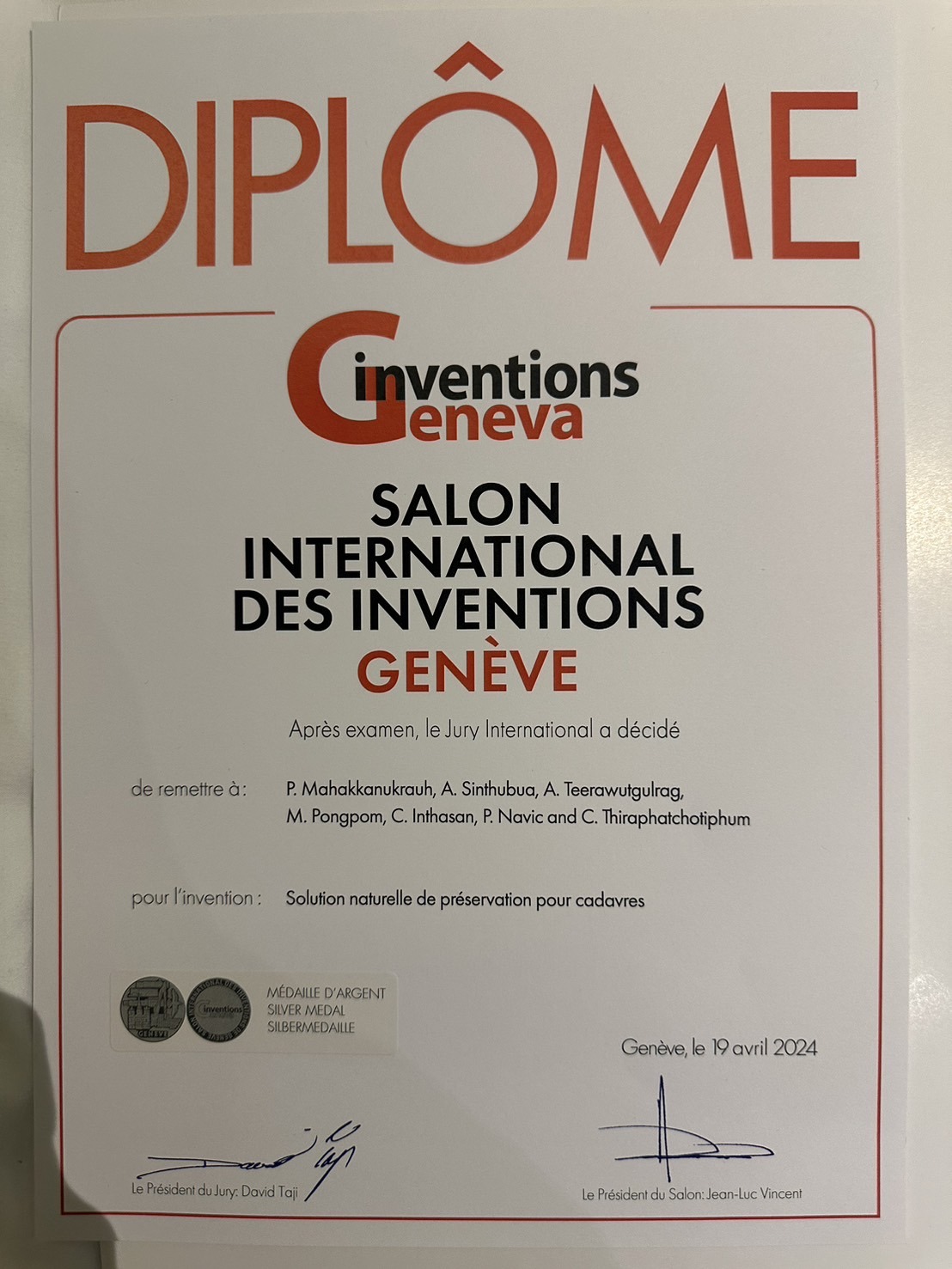 นอกจากนี้ นวัตกรรม Preservation Anatomy Solution Usefulness Kingdom (คณะแพทยศาสตร์) ซึ่งนักวิจัยภาควิชาเคมี ได้มีส่วนร่วมในการพัฒนานวัตกรรม ยังได้รับรางวัล Silver Medal อีกด้วย