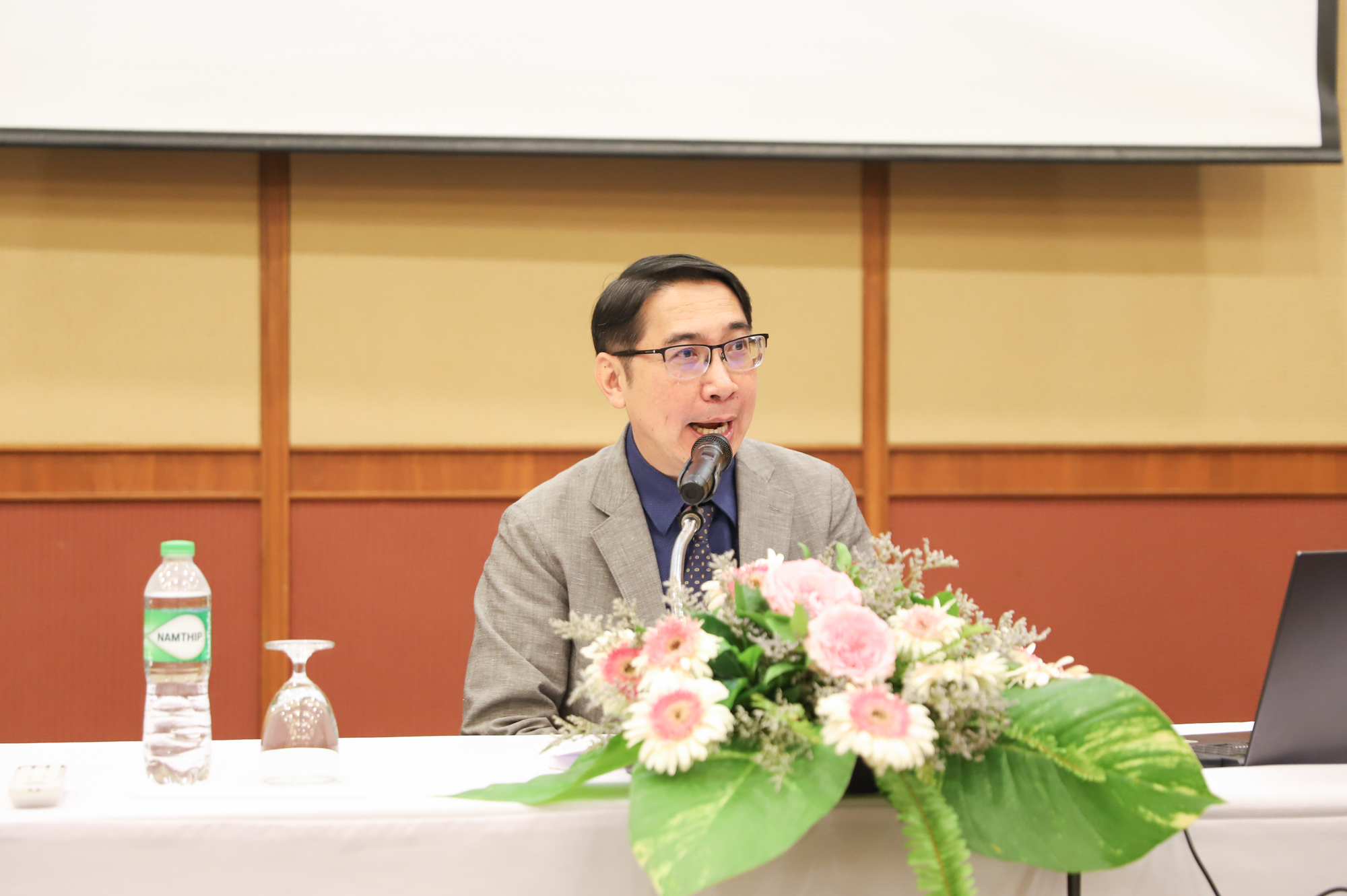 นอกจากนี้ ยังมีการนำเสนอภาพรวมของหน่วยเครื่องมือวิทยาศาสตร์ขั้นสูง โดย ผู้ช่วยศาสตราจารย์ ดร.โยธิน ฉิมอุปละ ผู้บริหารจัดการห้องปฏิบัติการกลาง และทีมนักวิทยาศาสตร์ เพื่อร่วมกันวางแผน ปรับปรุง และพัฒนาการดำเนินงานของหน่วยให้มีประสิทธิภาพมากยิ่งขึ้นต่อไป