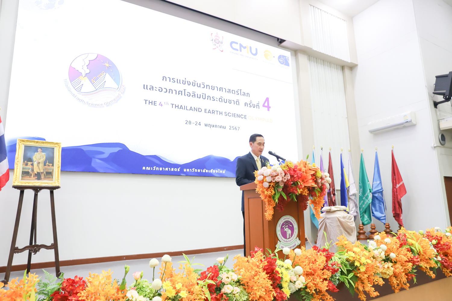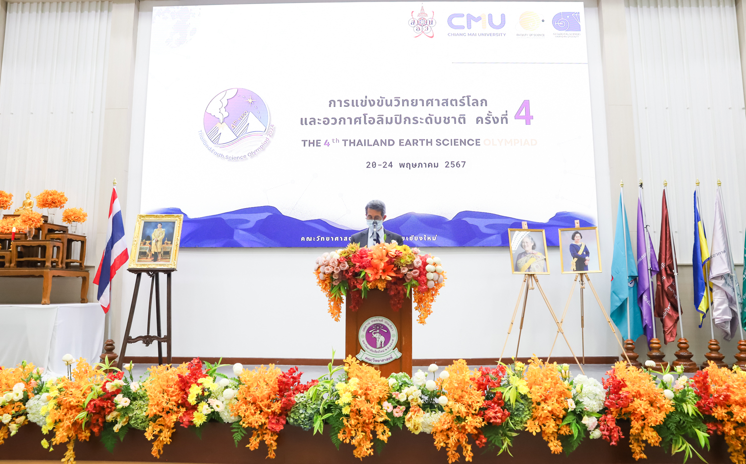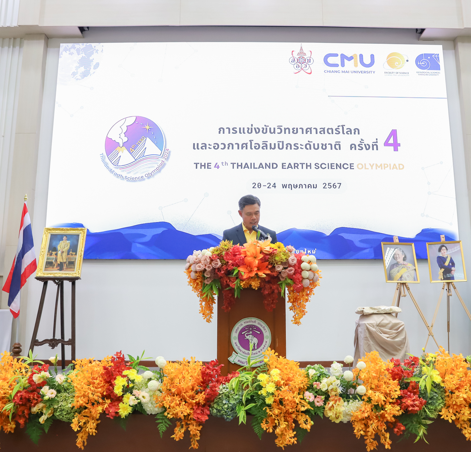 วันที่ 20 พฤษภาคม 2567 คณะวิทยาศาสตร์ มหาวิทยาลัยเชียงใหม่ จัดพิธีเปิดการแข่งขันวิทยาศาสตร์โลกและอวกาศโอลิมปิกระดับชาติ ครั้งที่ 4 (The 4th Thailand Earth Science Olympiad (4th TESO)) ณ ห้อง SCB2100 อาคาร 40 ปี คณะวิทยาศาสตร์ โดยได้รับเกียรติจาก รองศาสตราจารย์ ดร.พินิติ รตะนานุกูล เลขาธิการมูลนิธิ สอวน. เป็นประธานเปิดการแข่งขัน ศาสตราจารย์ ดร.นพ.พงษ์รักษ์ ศรีบัณฑิตมงคล อธิการบดีหาวิทยาลัยเชียงใหม่ กล่าวต้อนรับผู้เข้าร่วมการแข่งขัน และศาสตราจารย์ (เชี่ยวชาญพิเศษ) ดร.ธรณินทร์ ไชยเรืองศรี คณบดีคณะวิทยาศาสตร์ กล่าวรายงานการจัดการแข่งขัน โดยมี รองศาสตราจารย์ เย็นใจ สมวิเชียร กรรมการบริหารมูลนิธิ สอวน. ผู้แทนสถาบันส่งเสริมการสอนวิทยาศาสตร์และเทคโนโลยี คณะกรรมการจัดการแข่งขันฯ ครู อาจารย์ และนักเรียนผู้แทนศูนย์ ร่วมเป็นเกียรติในพิธี