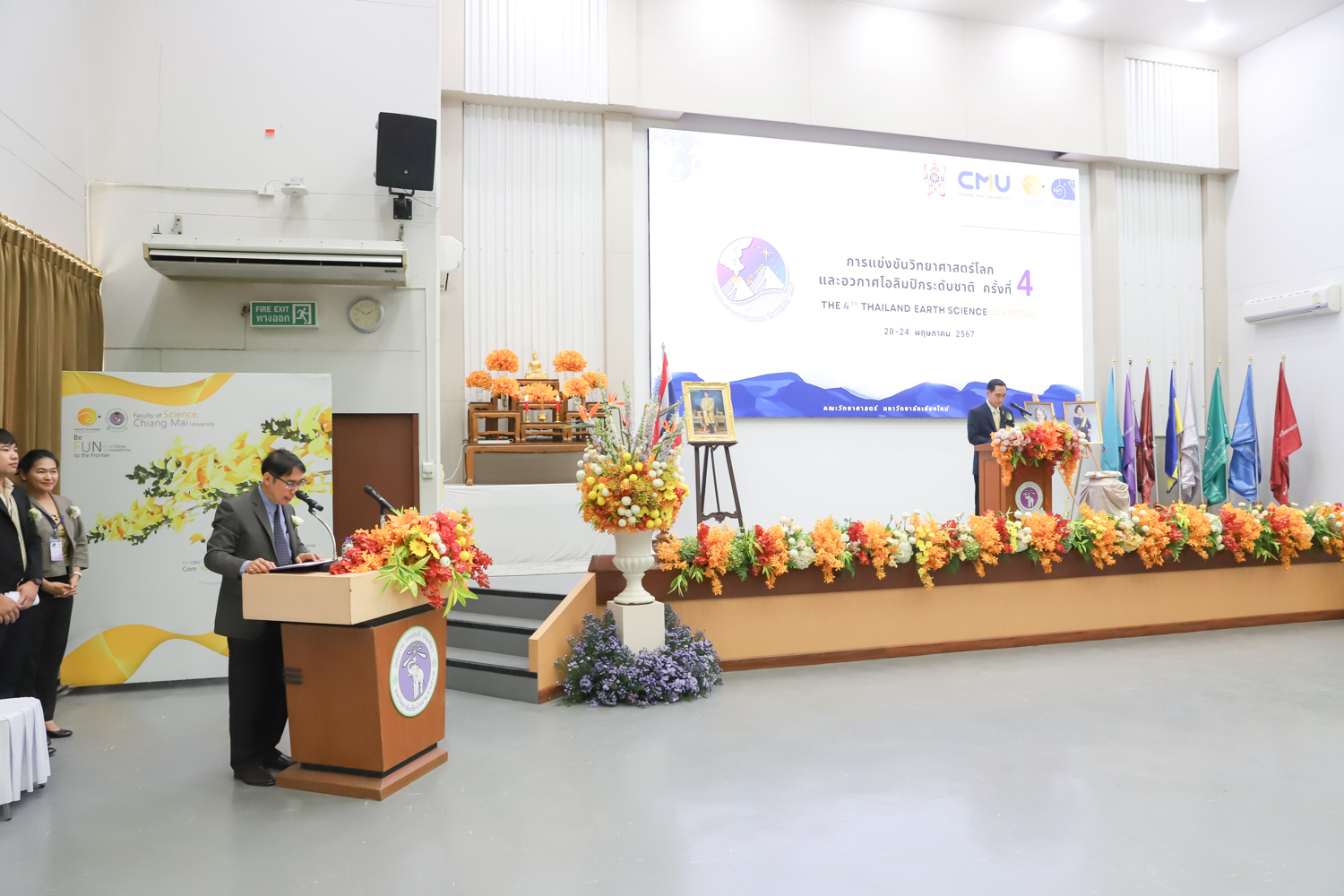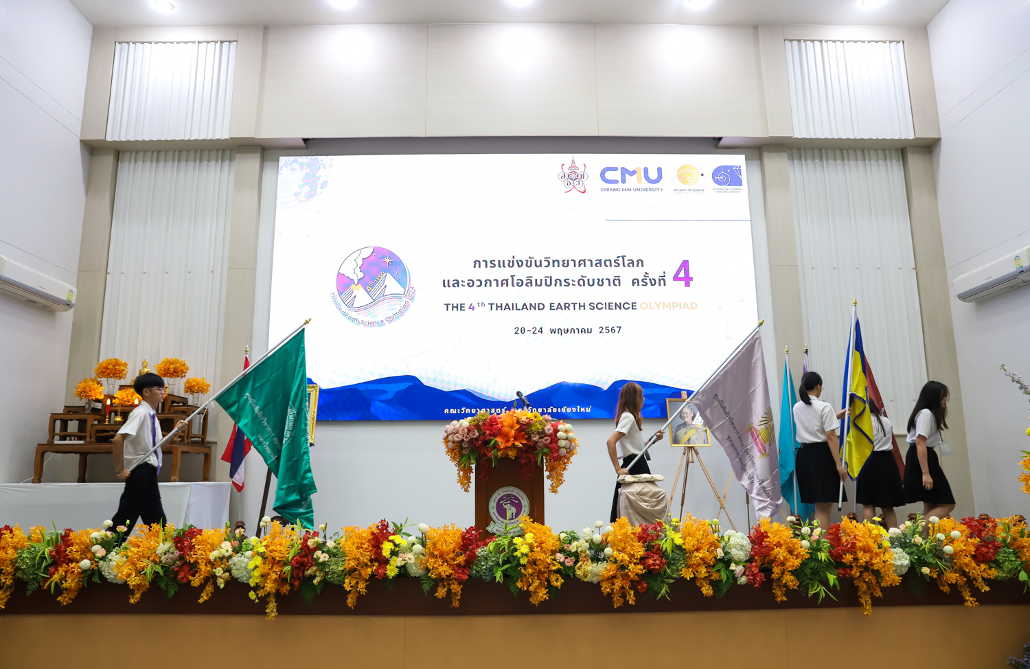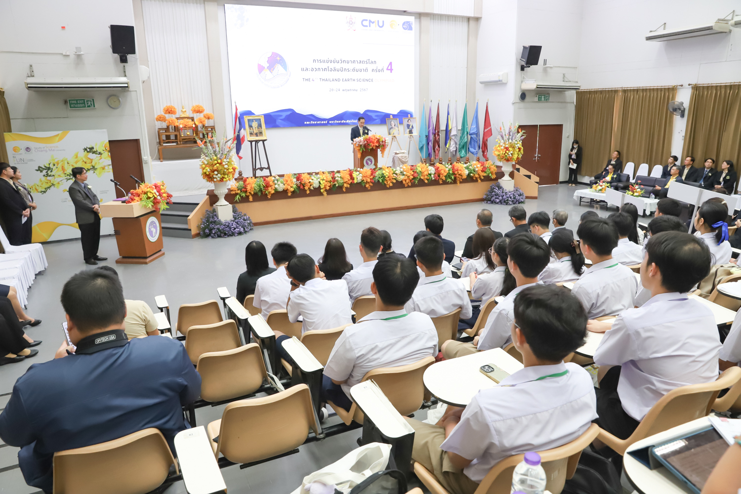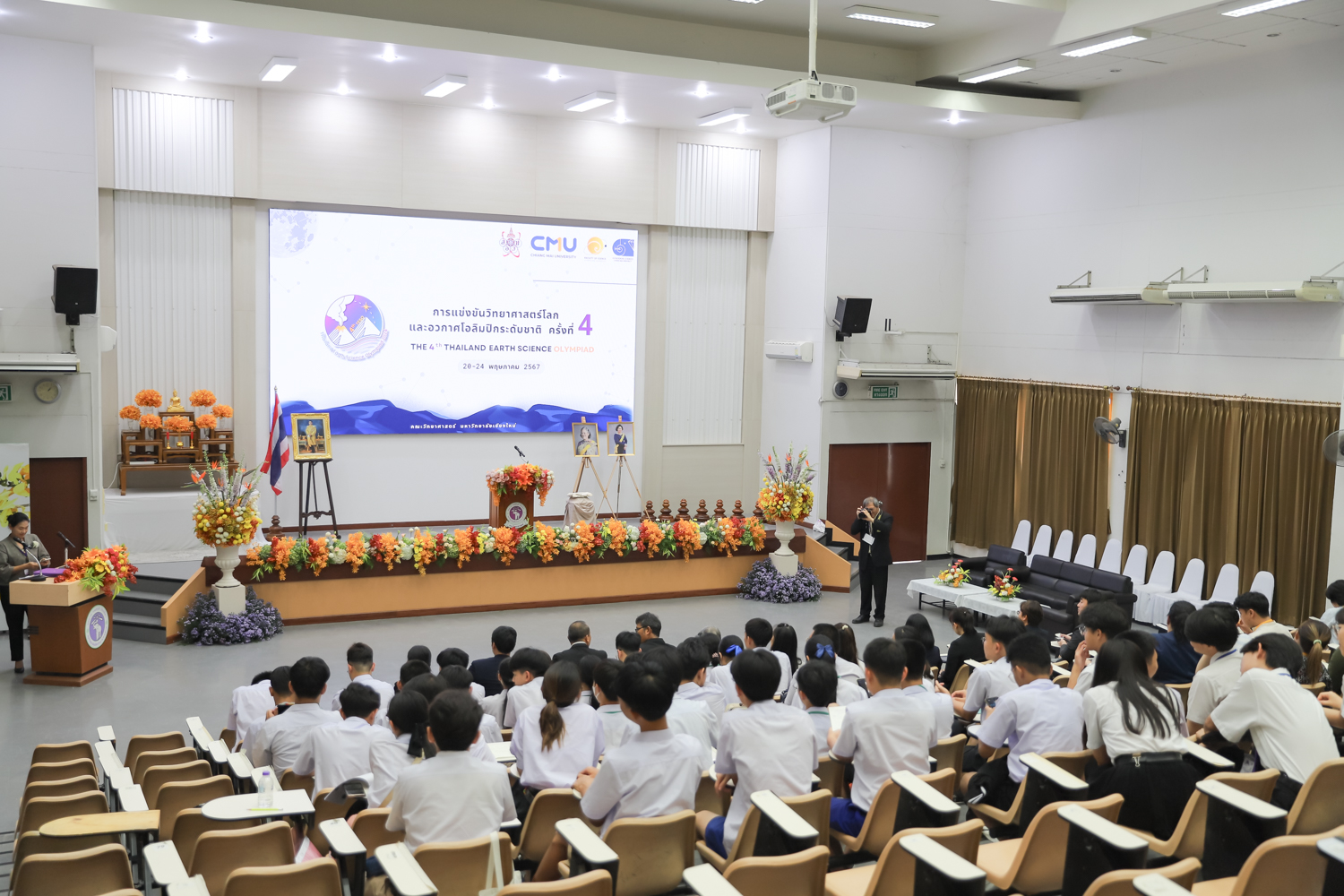 วันที่ 20 พฤษภาคม 2567 คณะวิทยาศาสตร์ มหาวิทยาลัยเชียงใหม่ จัดพิธีเปิดการแข่งขันวิทยาศาสตร์โลกและอวกาศโอลิมปิกระดับชาติ ครั้งที่ 4 (The 4th Thailand Earth Science Olympiad (4th TESO)) ณ ห้อง SCB2100 อาคาร 40 ปี คณะวิทยาศาสตร์ โดยได้รับเกียรติจาก รองศาสตราจารย์ ดร.พินิติ รตะนานุกูล เลขาธิการมูลนิธิ สอวน. เป็นประธานเปิดการแข่งขัน ศาสตราจารย์ ดร.นพ.พงษ์รักษ์ ศรีบัณฑิตมงคล อธิการบดีหาวิทยาลัยเชียงใหม่ กล่าวต้อนรับผู้เข้าร่วมการแข่งขัน และศาสตราจารย์ (เชี่ยวชาญพิเศษ) ดร.ธรณินทร์ ไชยเรืองศรี คณบดีคณะวิทยาศาสตร์ กล่าวรายงานการจัดการแข่งขัน โดยมี รองศาสตราจารย์ เย็นใจ สมวิเชียร กรรมการบริหารมูลนิธิ สอวน. ผู้แทนสถาบันส่งเสริมการสอนวิทยาศาสตร์และเทคโนโลยี คณะกรรมการจัดการแข่งขันฯ ครู อาจารย์ และนักเรียนผู้แทนศูนย์ ร่วมเป็นเกียรติในพิธี