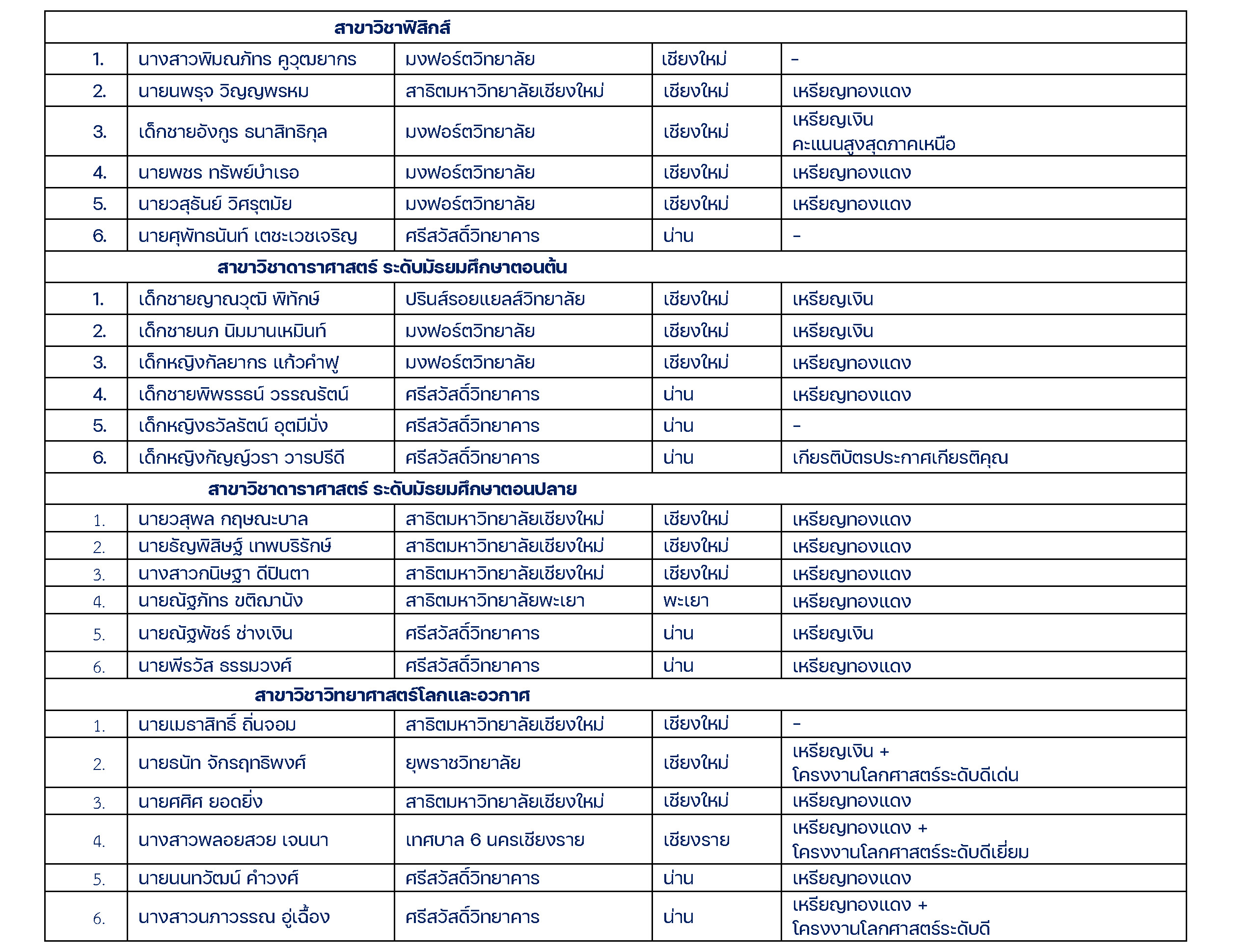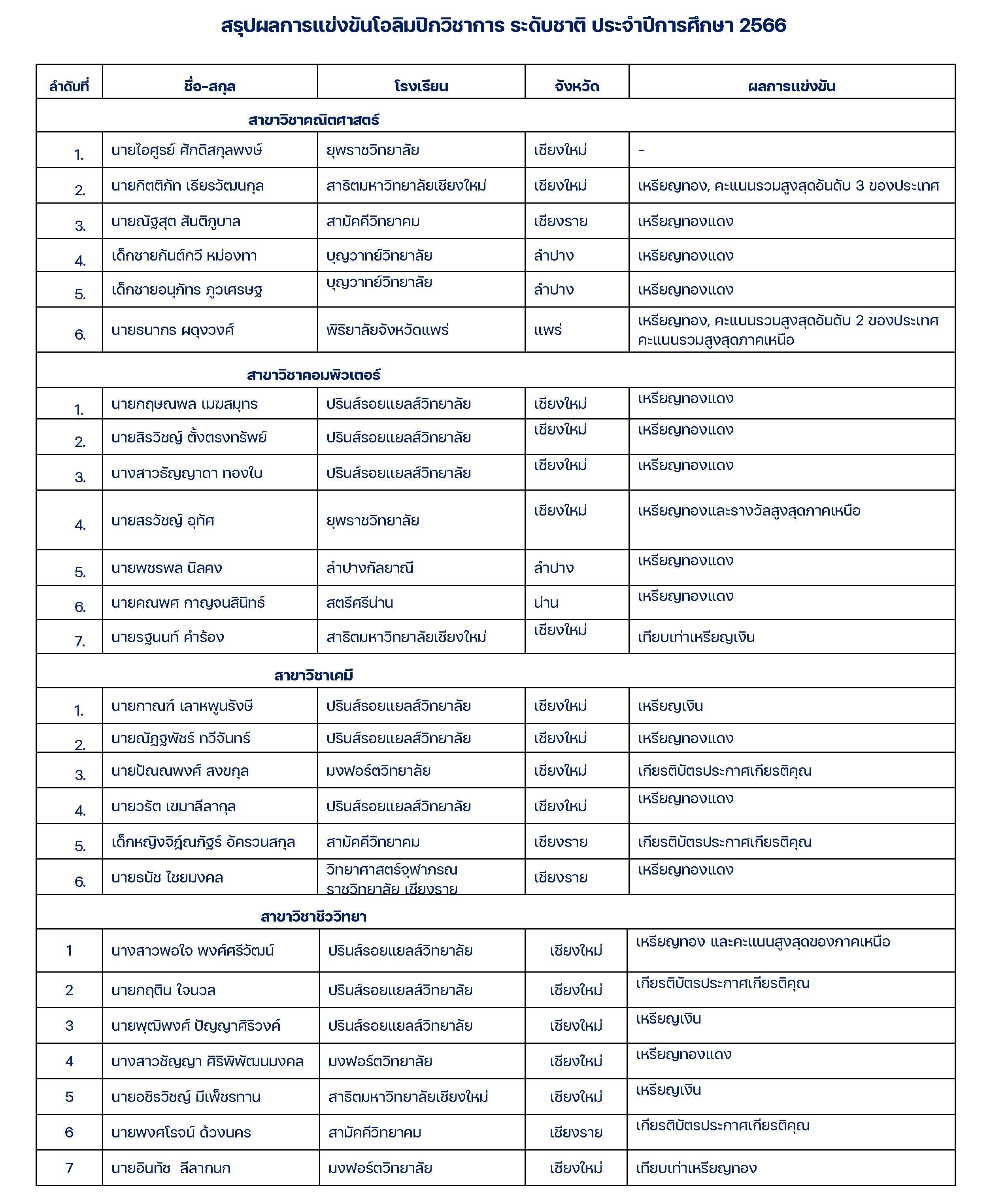 สรุปผลการแข่งขันโอลิมปิกวิชาการระดับชาติ ศูนย์มหาวิทยาลัยเชียงใหม่ ประจำปีการศึกษา 2566