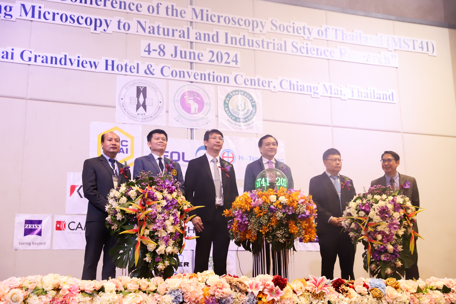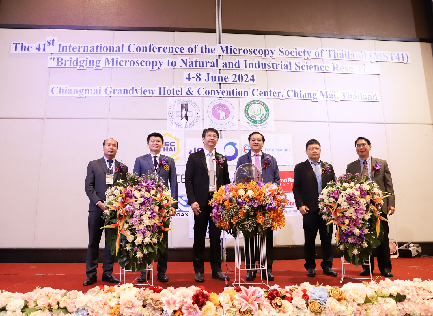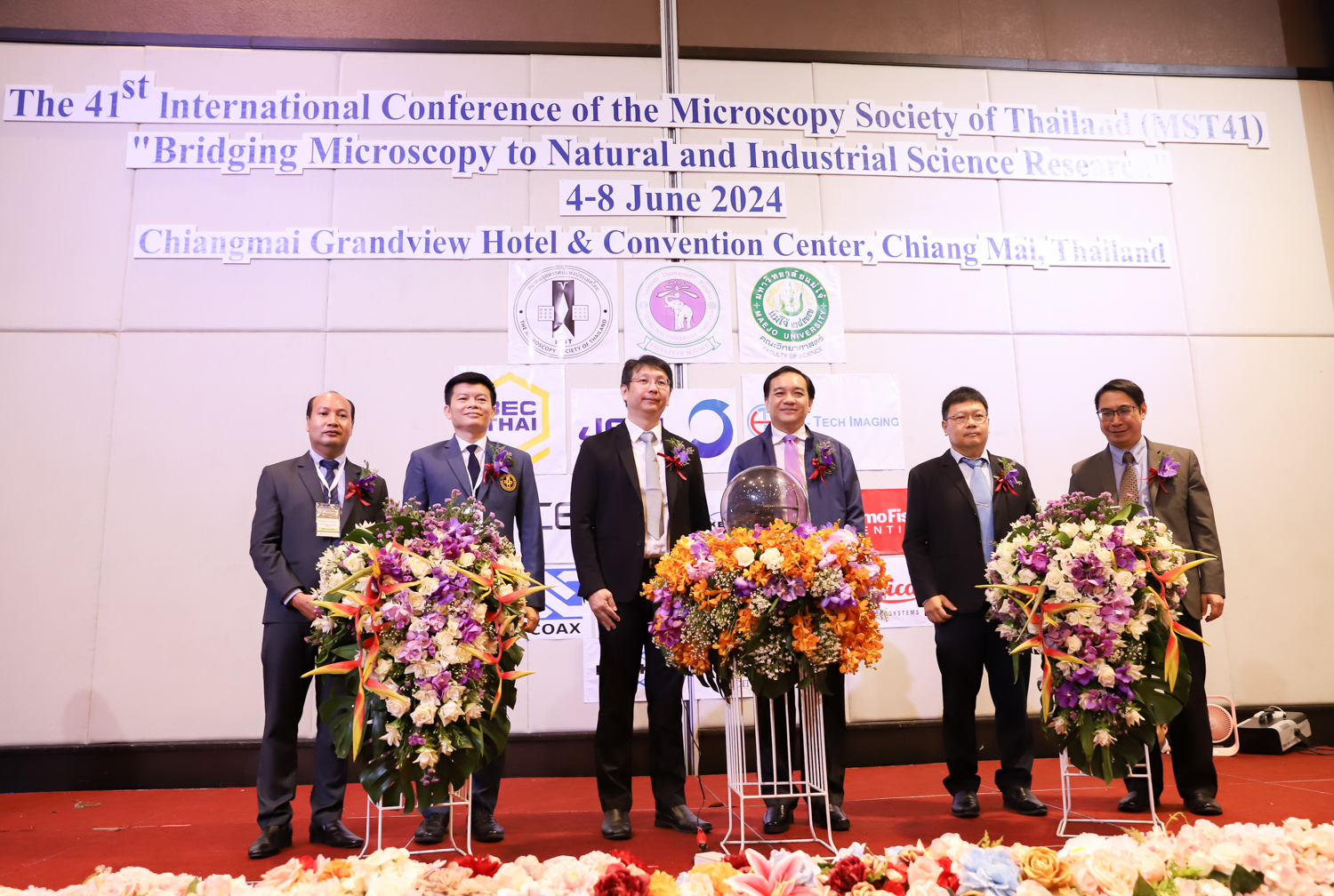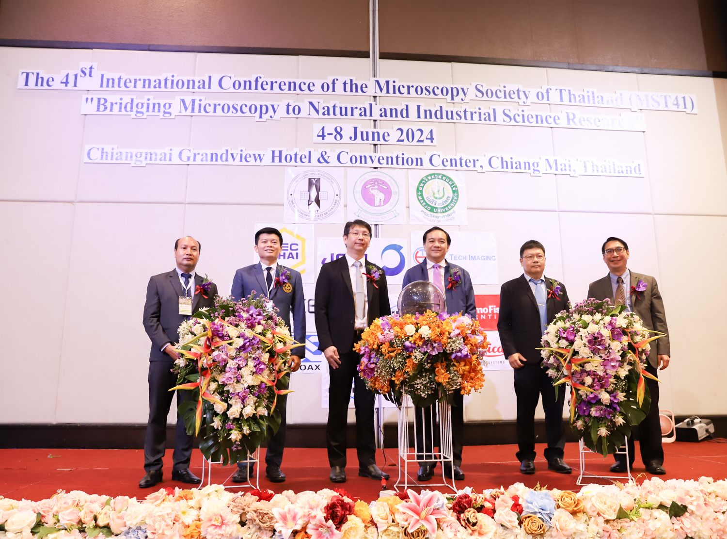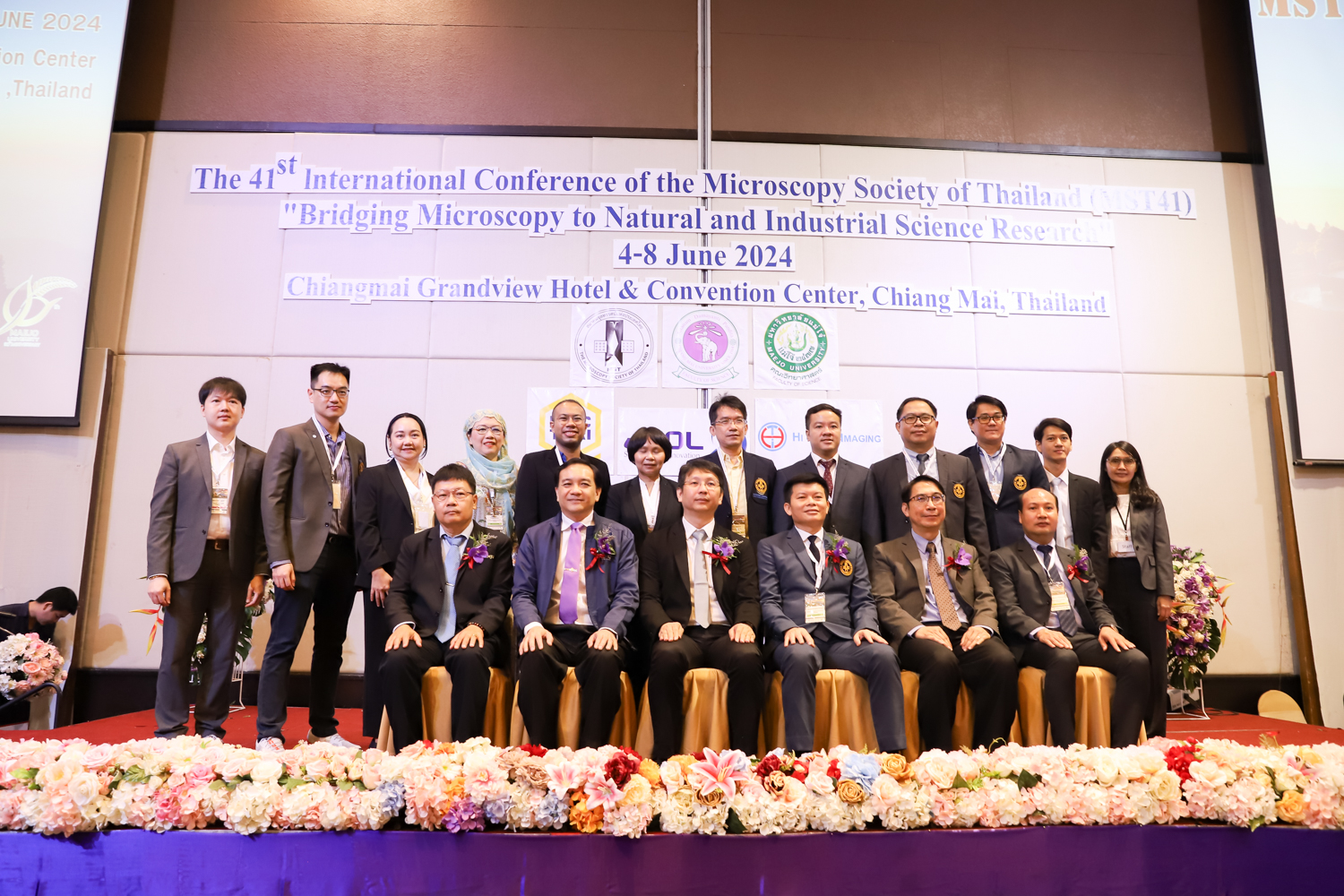 st International Conference of The Microscopy Society of Thailand (MST41)” ระหว่างวันที่ 4-8 มิถุนายน 2567 ณ โรงแรมเชียงใหม่แกรนด์วิว โดยได้รับเกียรติจาก ศาสตราจารย์ปฏิบัติ ดร.ชรินทร์ เตชะพันธุ์ รองอธิการบดี มหาวิทยาลัยเชียงใหม่ และรองศาสตราจารย์ ดร.ชัยยศ สัมฤทธิ์สกุล รักษาการแทนรองอธิการบดี มหาวิทยาลัยแม่โจ้ เป็นประธานเปิดงาน รองศาสตราจารย์ ดร.วิสุทธิ์ ประดิษฐ์อาชีพ นายกสมาคมจุลทรรศน์แห่งประเทศไทย กล่าวต้อนรับผู้เข้าร่วมงาน และผู้ช่วยศาสตราจารย์ ดร.วรพงษ์ เทียมสอน หัวหน้าภาควิชาเคมีอุตสากรรม กล่าวรายงานความเป็นมาของการจัดงาน ในวันที่ 6 มิถุนายน 2567 ณ โรงแรมเชียงใหม่แกรนด์วิว