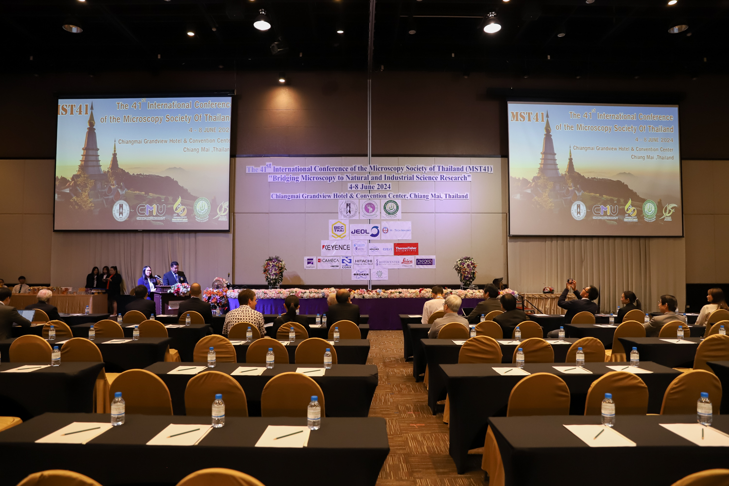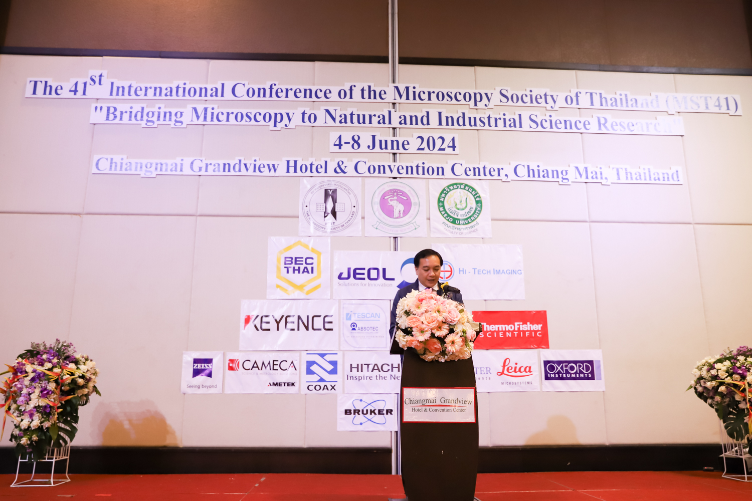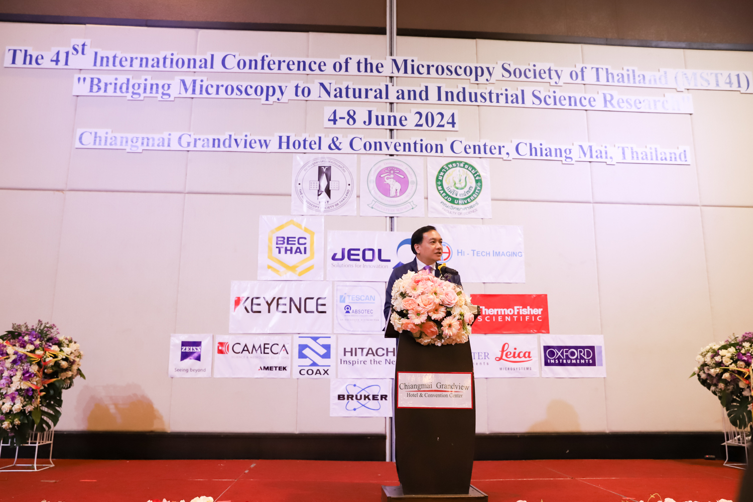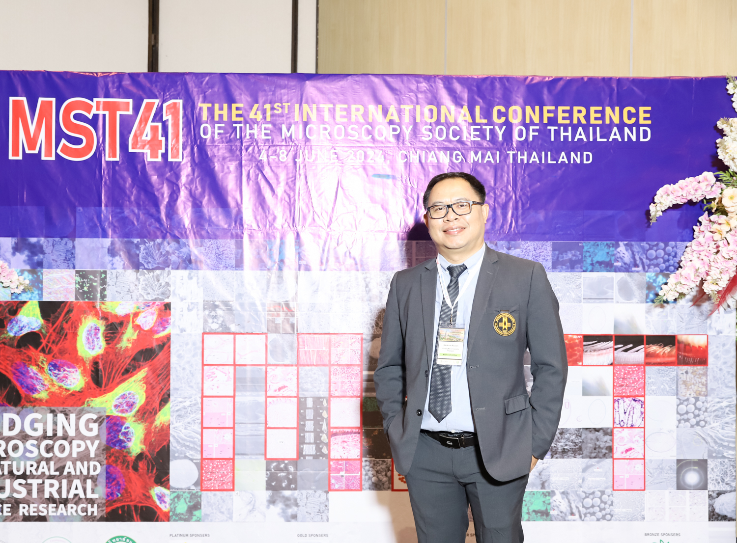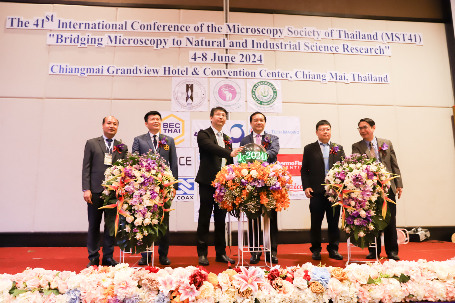 st International Conference of The Microscopy Society of Thailand (MST41)” ระหว่างวันที่ 4-8 มิถุนายน 2567 ณ โรงแรมเชียงใหม่แกรนด์วิว โดยได้รับเกียรติจาก ศาสตราจารย์ปฏิบัติ ดร.ชรินทร์ เตชะพันธุ์ รองอธิการบดี มหาวิทยาลัยเชียงใหม่ และรองศาสตราจารย์ ดร.ชัยยศ สัมฤทธิ์สกุล รักษาการแทนรองอธิการบดี มหาวิทยาลัยแม่โจ้ เป็นประธานเปิดงาน รองศาสตราจารย์ ดร.วิสุทธิ์ ประดิษฐ์อาชีพ นายกสมาคมจุลทรรศน์แห่งประเทศไทย กล่าวต้อนรับผู้เข้าร่วมงาน และผู้ช่วยศาสตราจารย์ ดร.วรพงษ์ เทียมสอน หัวหน้าภาควิชาเคมีอุตสากรรม กล่าวรายงานความเป็นมาของการจัดงาน ในวันที่ 6 มิถุนายน 2567 ณ โรงแรมเชียงใหม่แกรนด์วิว