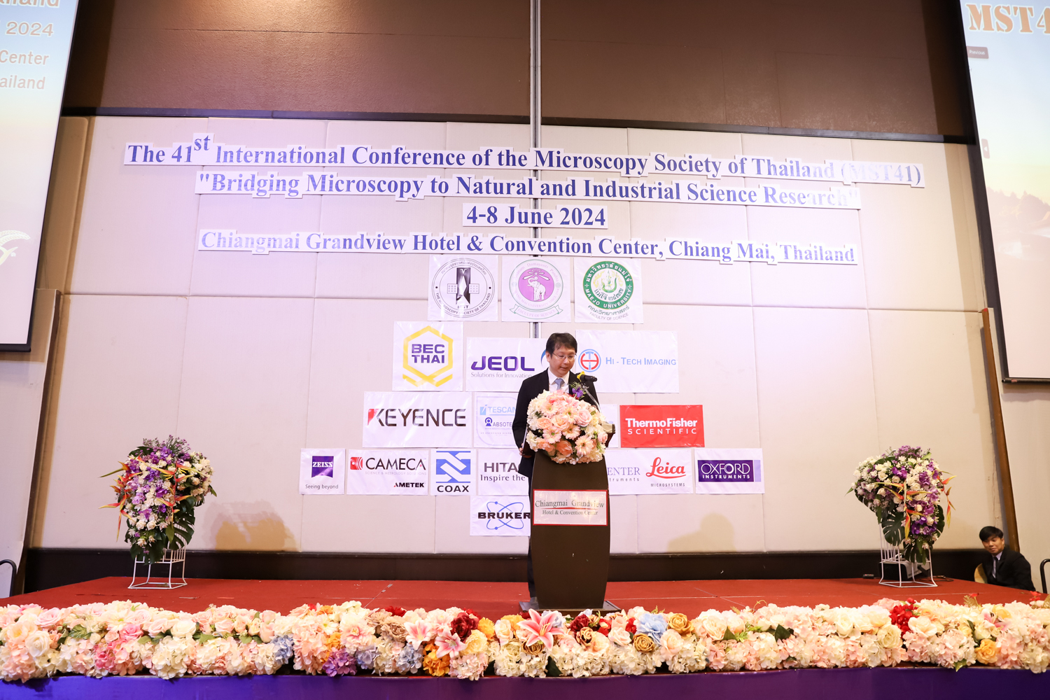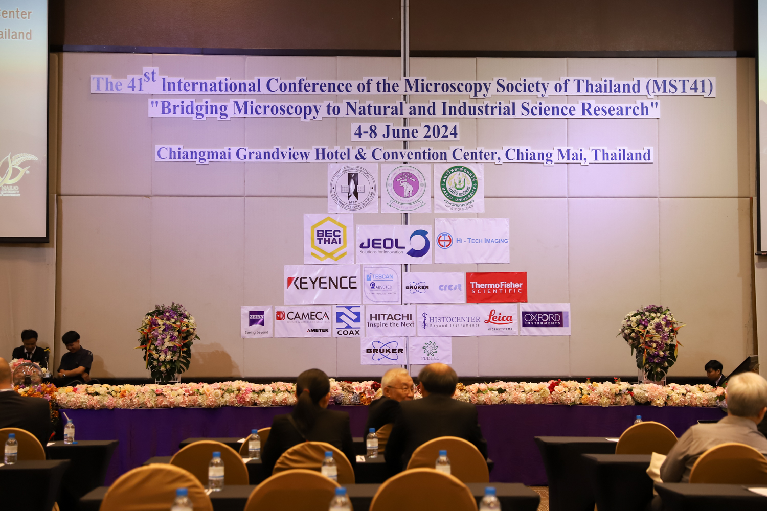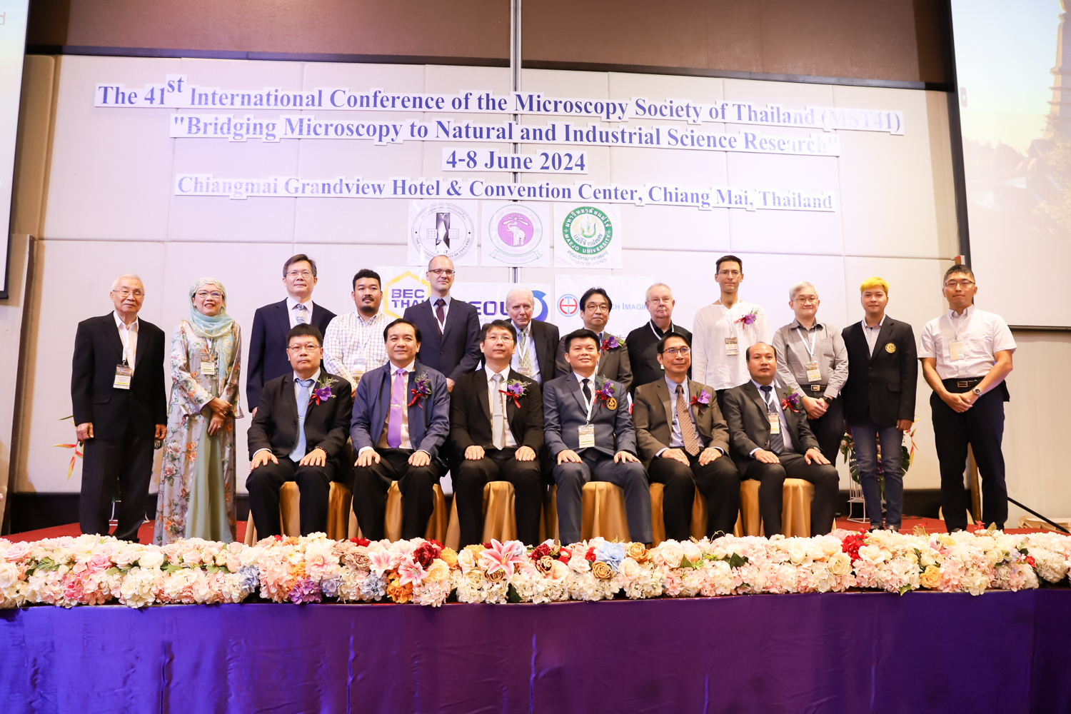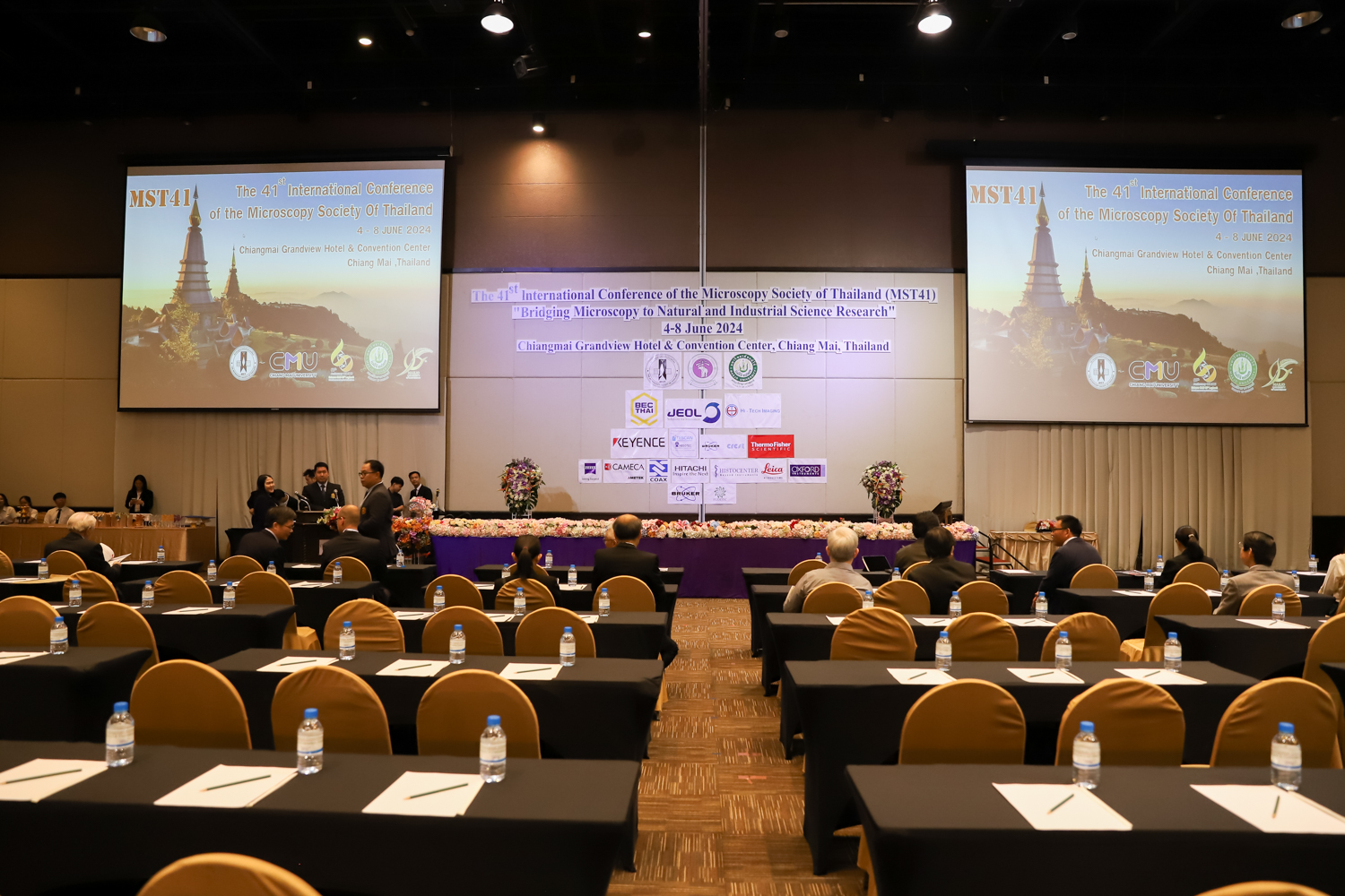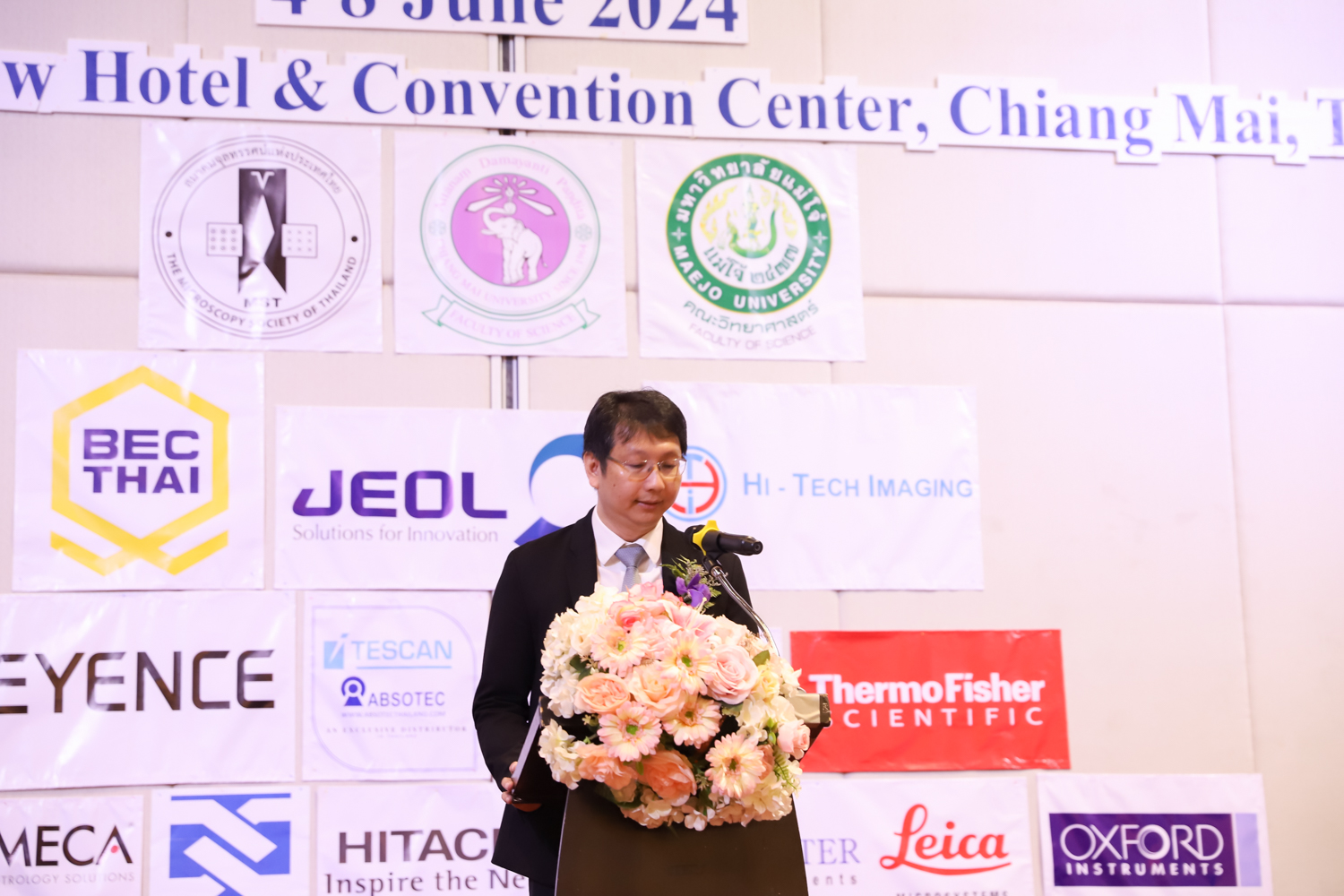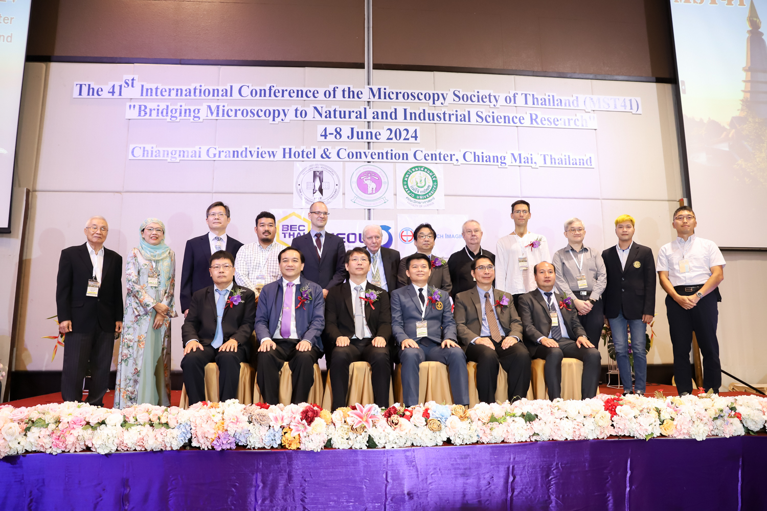 st International Conference of The Microscopy Society of Thailand (MST41)” ระหว่างวันที่ 4-8 มิถุนายน 2567 ณ โรงแรมเชียงใหม่แกรนด์วิว โดยได้รับเกียรติจาก ศาสตราจารย์ปฏิบัติ ดร.ชรินทร์ เตชะพันธุ์ รองอธิการบดี มหาวิทยาลัยเชียงใหม่ และรองศาสตราจารย์ ดร.ชัยยศ สัมฤทธิ์สกุล รักษาการแทนรองอธิการบดี มหาวิทยาลัยแม่โจ้ เป็นประธานเปิดงาน รองศาสตราจารย์ ดร.วิสุทธิ์ ประดิษฐ์อาชีพ นายกสมาคมจุลทรรศน์แห่งประเทศไทย กล่าวต้อนรับผู้เข้าร่วมงาน และผู้ช่วยศาสตราจารย์ ดร.วรพงษ์ เทียมสอน หัวหน้าภาควิชาเคมีอุตสากรรม กล่าวรายงานความเป็นมาของการจัดงาน ในวันที่ 6 มิถุนายน 2567 ณ โรงแรมเชียงใหม่แกรนด์วิว
