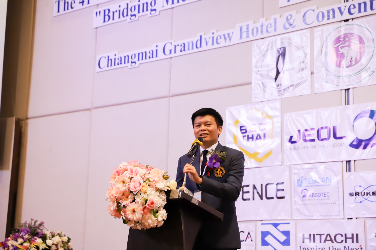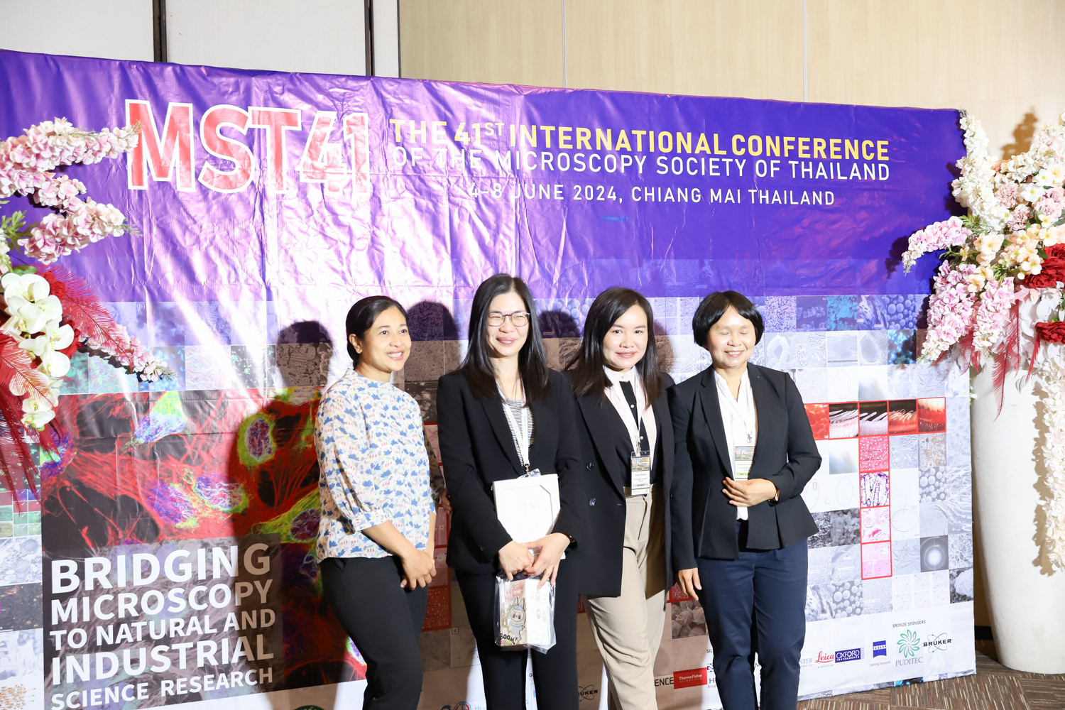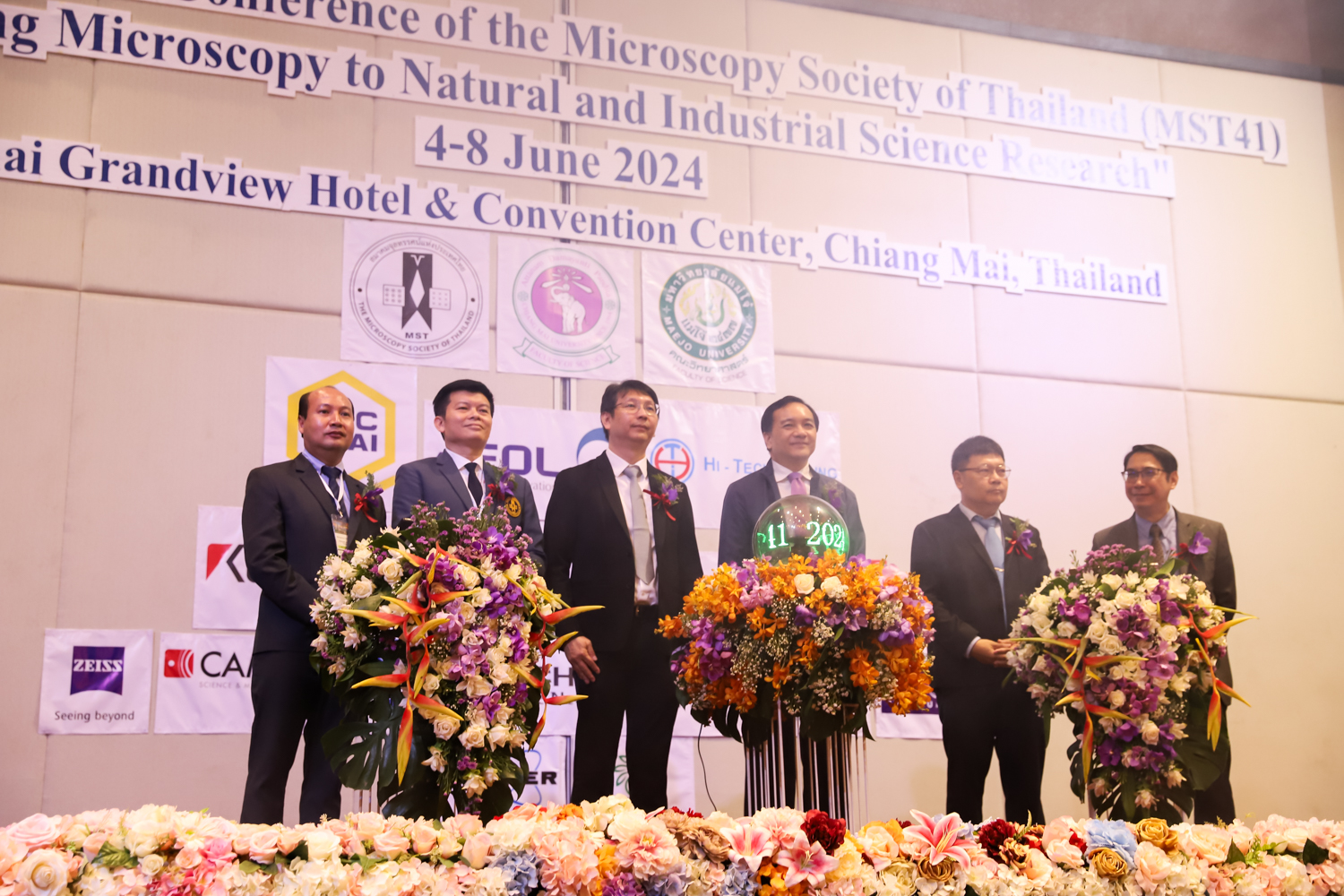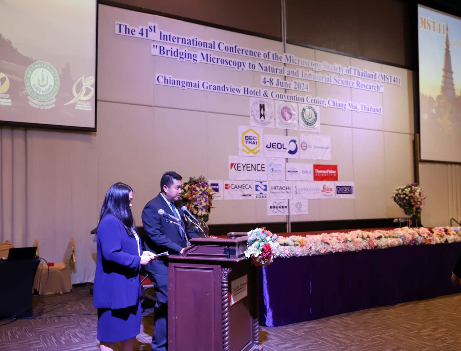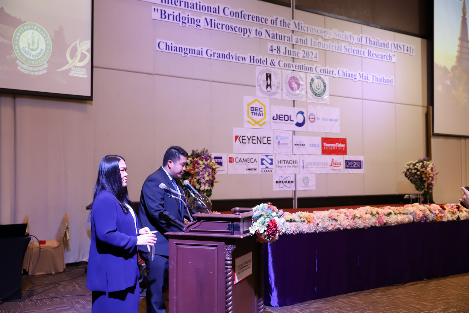 st International Conference of The Microscopy Society of Thailand (MST41)” ระหว่างวันที่ 4-8 มิถุนายน 2567 ณ โรงแรมเชียงใหม่แกรนด์วิว โดยได้รับเกียรติจาก ศาสตราจารย์ปฏิบัติ ดร.ชรินทร์ เตชะพันธุ์ รองอธิการบดี มหาวิทยาลัยเชียงใหม่ และรองศาสตราจารย์ ดร.ชัยยศ สัมฤทธิ์สกุล รักษาการแทนรองอธิการบดี มหาวิทยาลัยแม่โจ้ เป็นประธานเปิดงาน รองศาสตราจารย์ ดร.วิสุทธิ์ ประดิษฐ์อาชีพ นายกสมาคมจุลทรรศน์แห่งประเทศไทย กล่าวต้อนรับผู้เข้าร่วมงาน และผู้ช่วยศาสตราจารย์ ดร.วรพงษ์ เทียมสอน หัวหน้าภาควิชาเคมีอุตสากรรม กล่าวรายงานความเป็นมาของการจัดงาน ในวันที่ 6 มิถุนายน 2567 ณ โรงแรมเชียงใหม่แกรนด์วิว