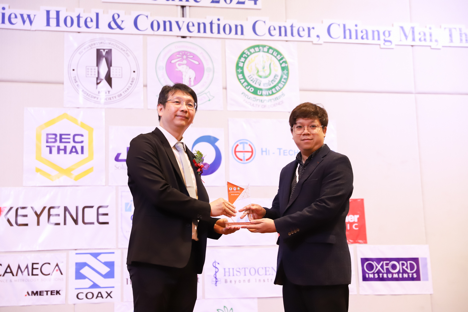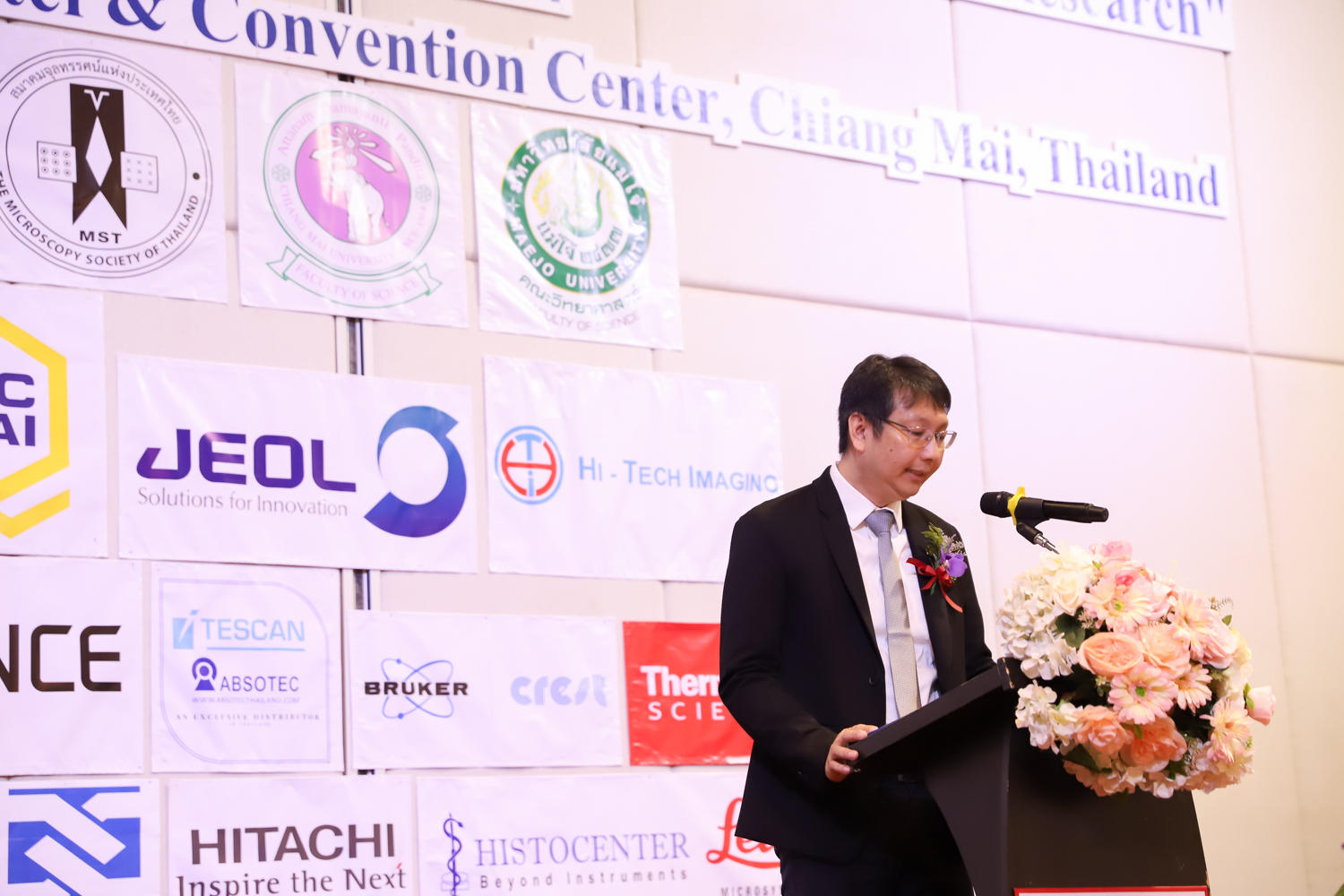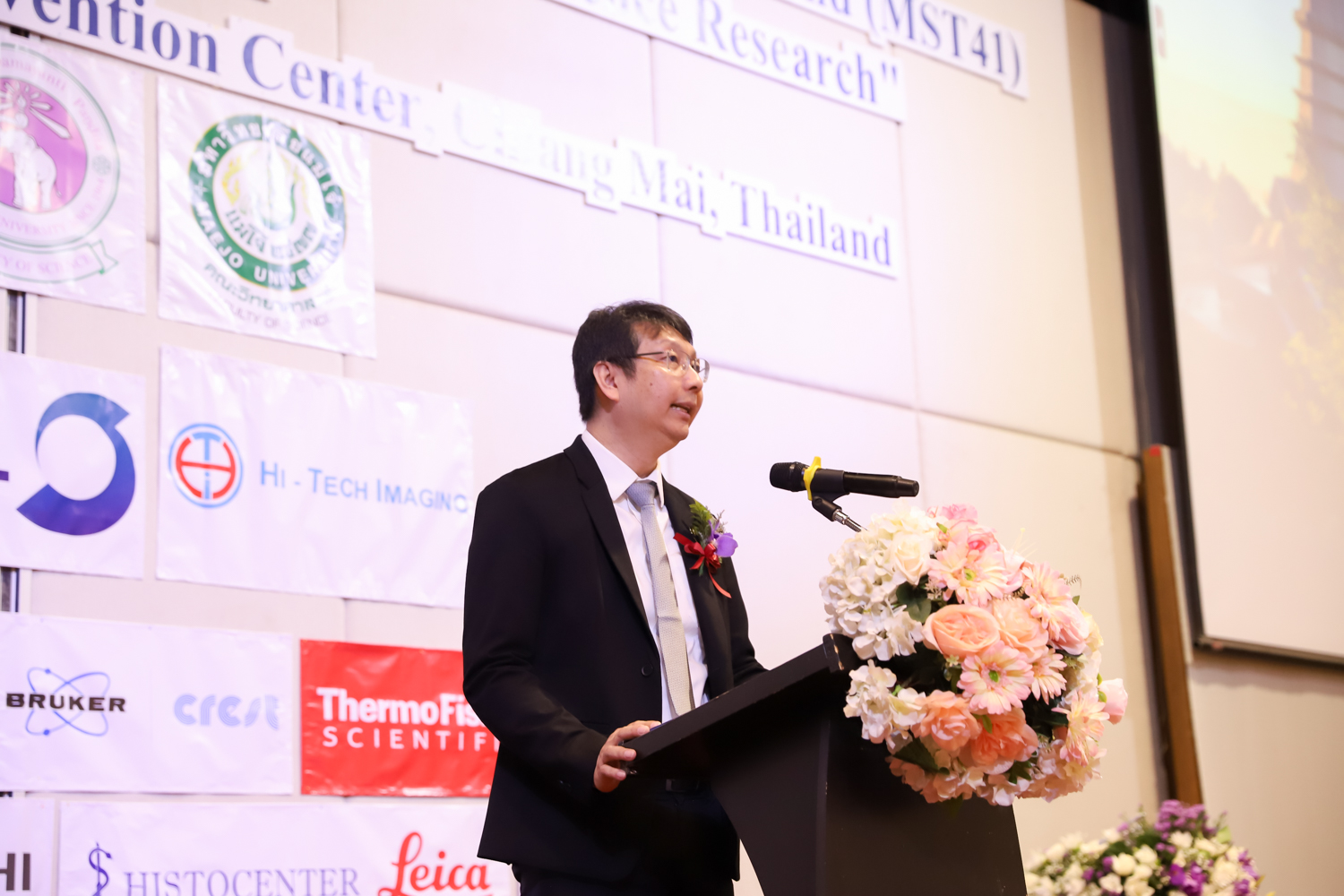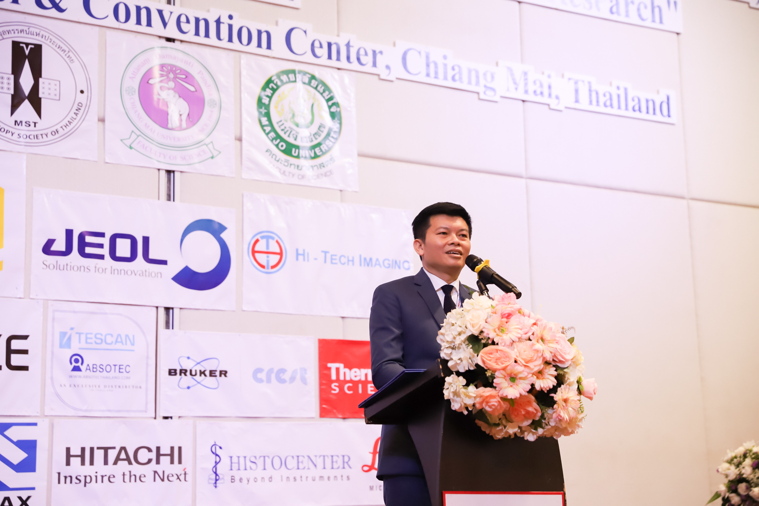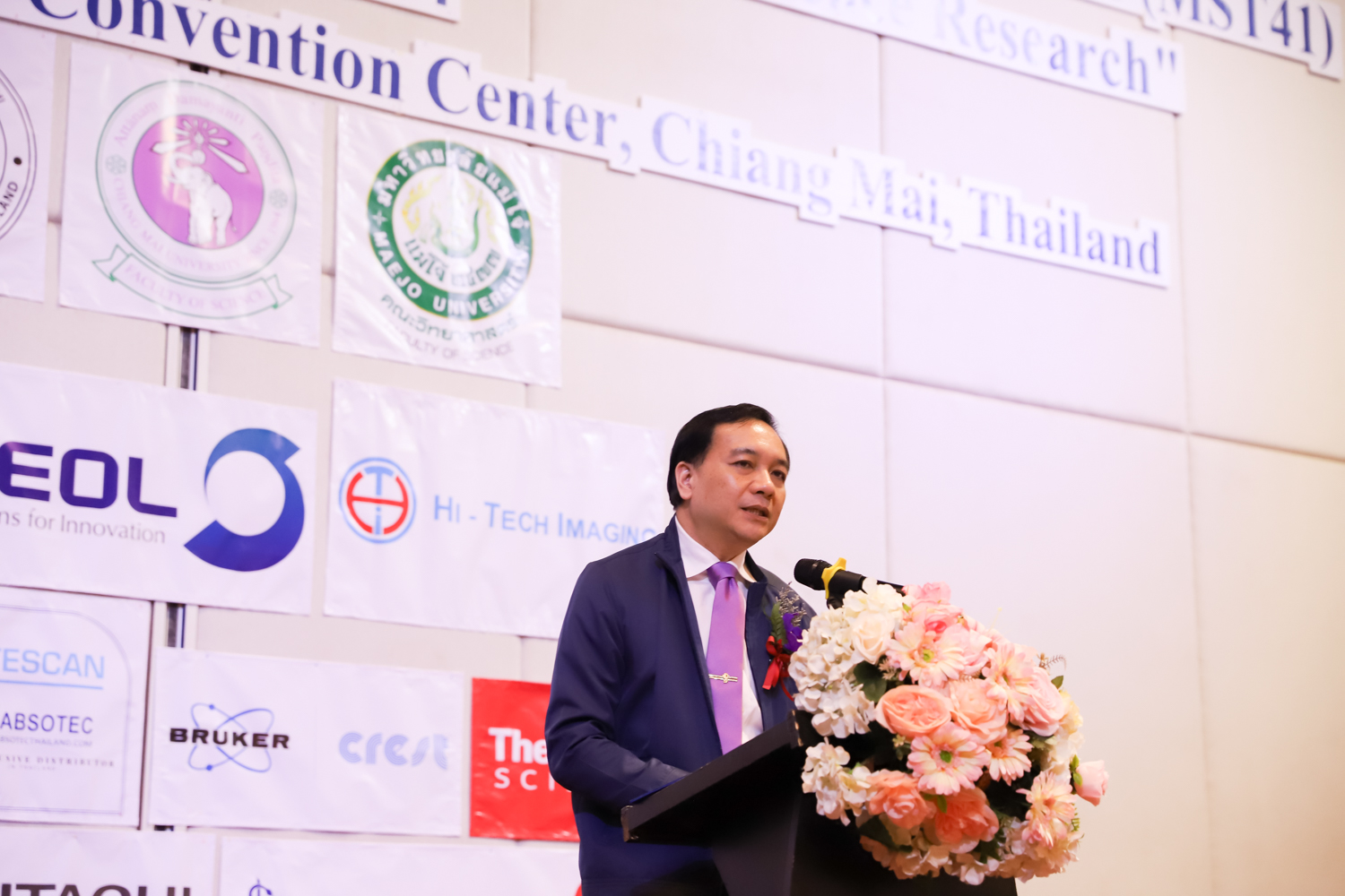 st International Conference of The Microscopy Society of Thailand (MST41)” ระหว่างวันที่ 4-8 มิถุนายน 2567 ณ โรงแรมเชียงใหม่แกรนด์วิว โดยได้รับเกียรติจาก ศาสตราจารย์ปฏิบัติ ดร.ชรินทร์ เตชะพันธุ์ รองอธิการบดี มหาวิทยาลัยเชียงใหม่ และรองศาสตราจารย์ ดร.ชัยยศ สัมฤทธิ์สกุล รักษาการแทนรองอธิการบดี มหาวิทยาลัยแม่โจ้ เป็นประธานเปิดงาน รองศาสตราจารย์ ดร.วิสุทธิ์ ประดิษฐ์อาชีพ นายกสมาคมจุลทรรศน์แห่งประเทศไทย กล่าวต้อนรับผู้เข้าร่วมงาน และผู้ช่วยศาสตราจารย์ ดร.วรพงษ์ เทียมสอน หัวหน้าภาควิชาเคมีอุตสากรรม กล่าวรายงานความเป็นมาของการจัดงาน ในวันที่ 6 มิถุนายน 2567 ณ โรงแรมเชียงใหม่แกรนด์วิว