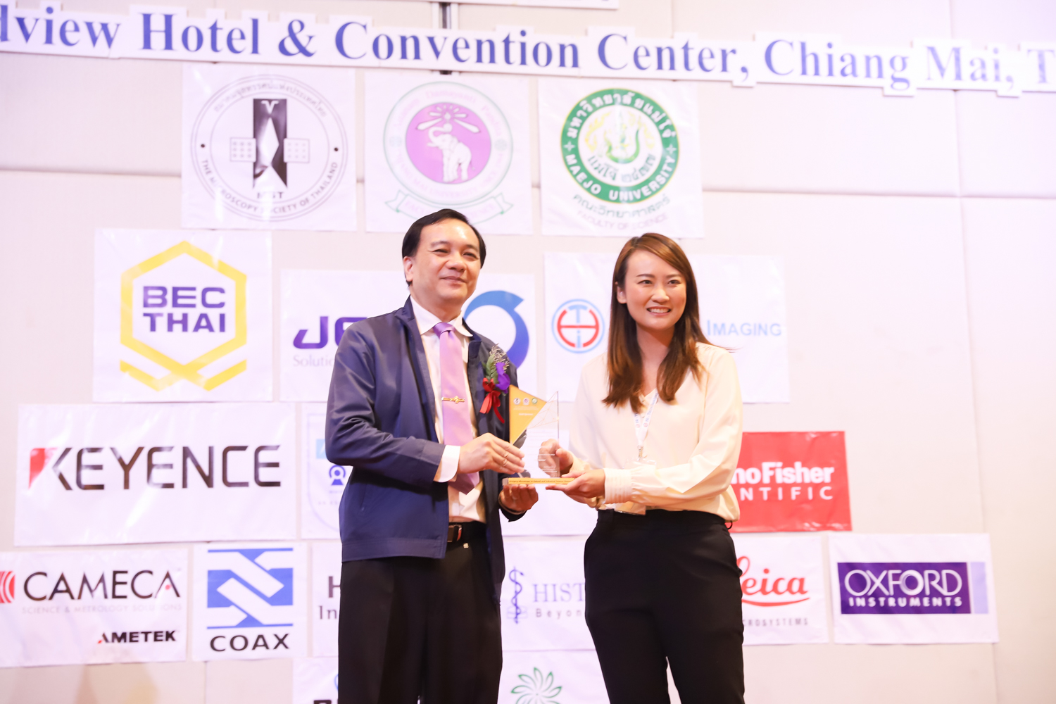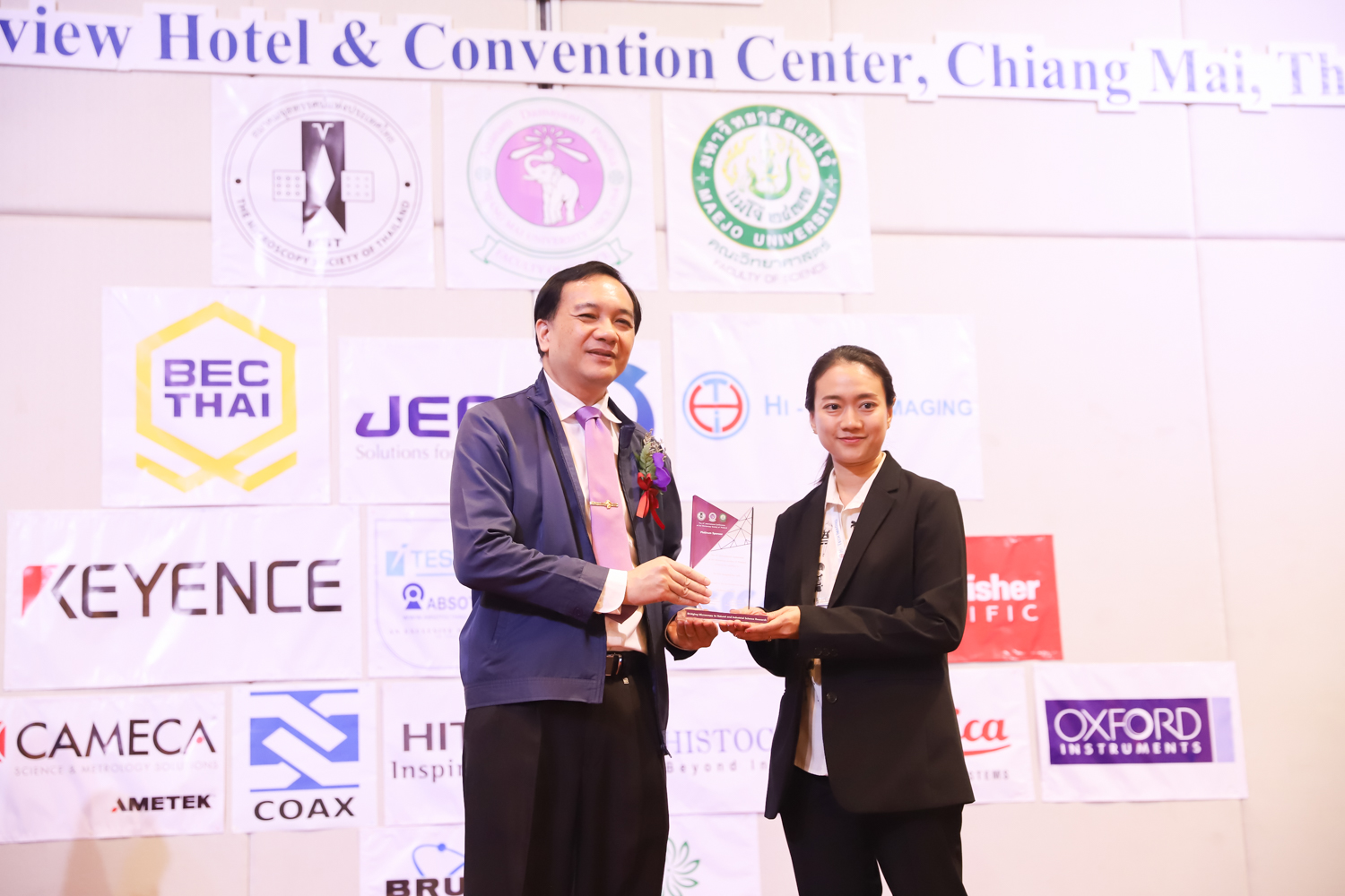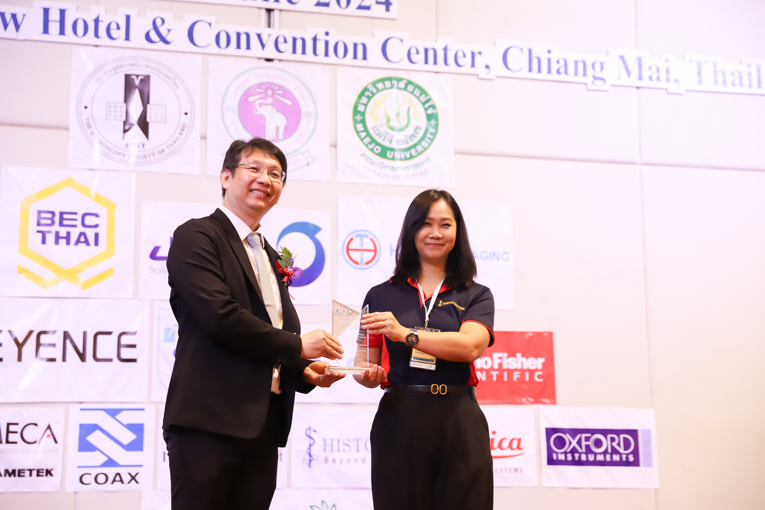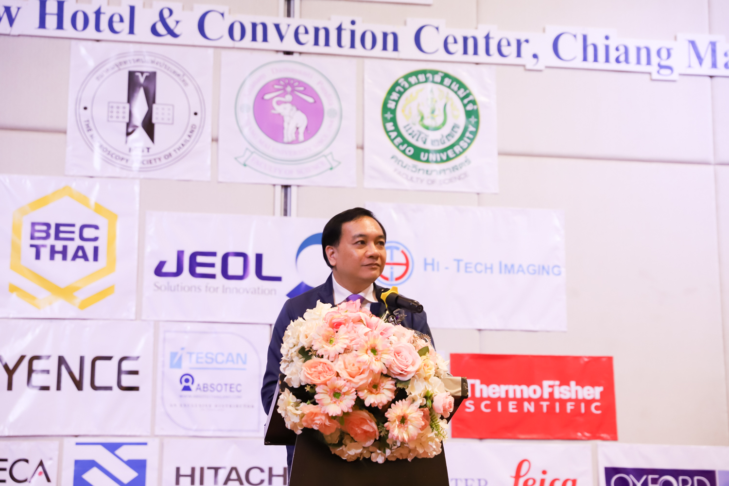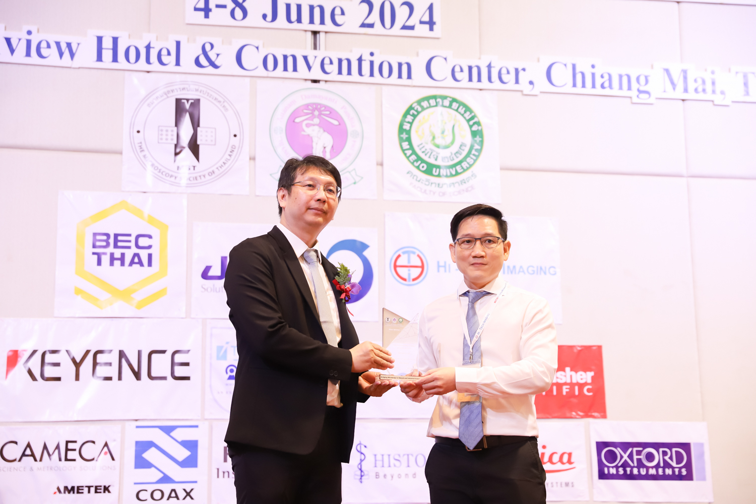 st International Conference of The Microscopy Society of Thailand (MST41)” ระหว่างวันที่ 4-8 มิถุนายน 2567 ณ โรงแรมเชียงใหม่แกรนด์วิว โดยได้รับเกียรติจาก ศาสตราจารย์ปฏิบัติ ดร.ชรินทร์ เตชะพันธุ์ รองอธิการบดี มหาวิทยาลัยเชียงใหม่ และรองศาสตราจารย์ ดร.ชัยยศ สัมฤทธิ์สกุล รักษาการแทนรองอธิการบดี มหาวิทยาลัยแม่โจ้ เป็นประธานเปิดงาน รองศาสตราจารย์ ดร.วิสุทธิ์ ประดิษฐ์อาชีพ นายกสมาคมจุลทรรศน์แห่งประเทศไทย กล่าวต้อนรับผู้เข้าร่วมงาน และผู้ช่วยศาสตราจารย์ ดร.วรพงษ์ เทียมสอน หัวหน้าภาควิชาเคมีอุตสากรรม กล่าวรายงานความเป็นมาของการจัดงาน ในวันที่ 6 มิถุนายน 2567 ณ โรงแรมเชียงใหม่แกรนด์วิว