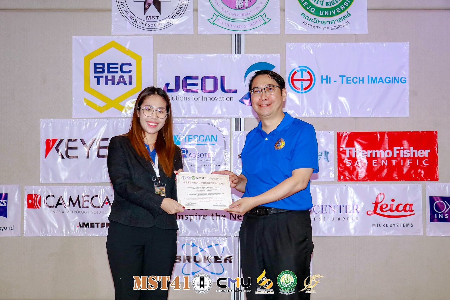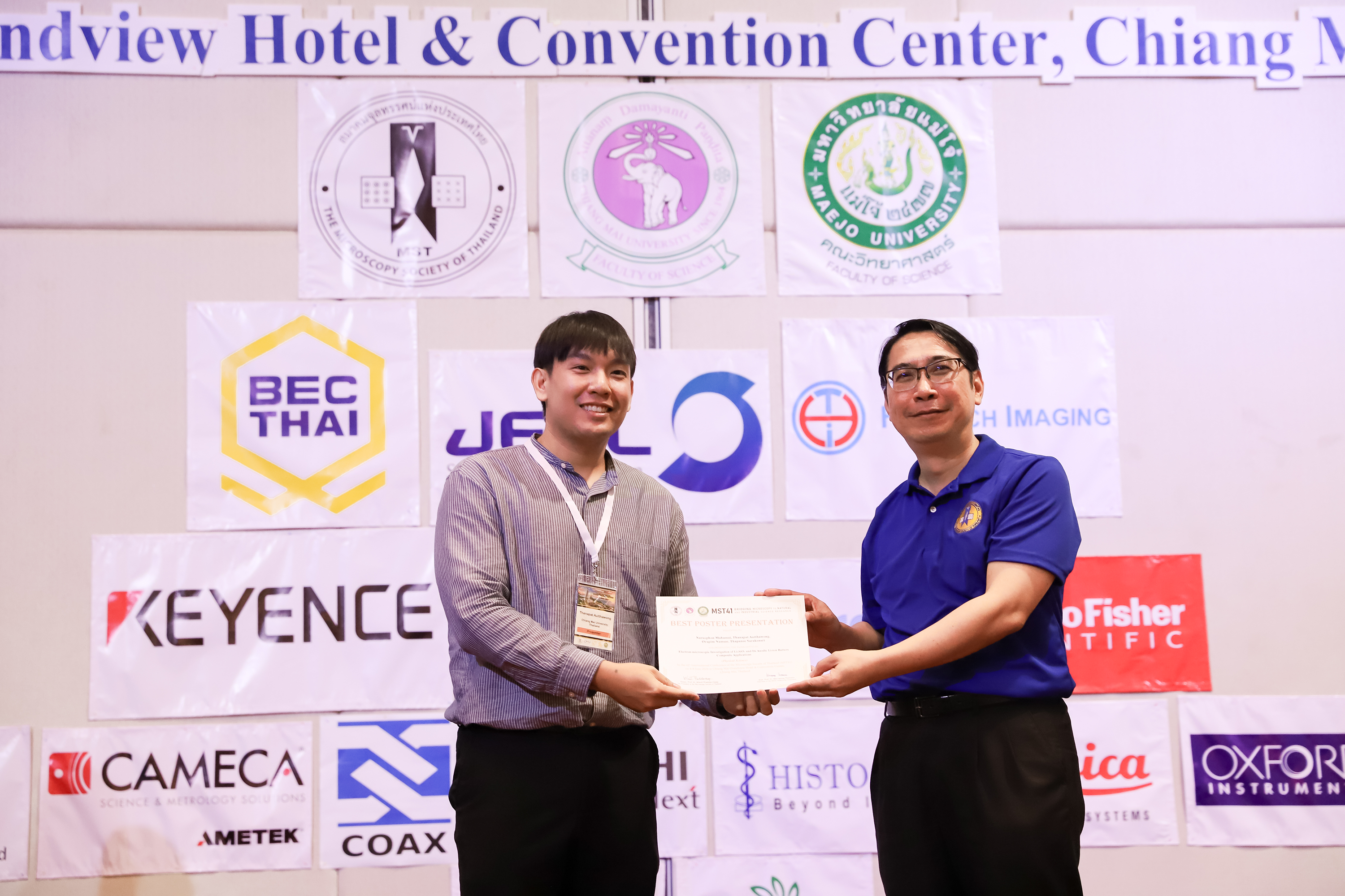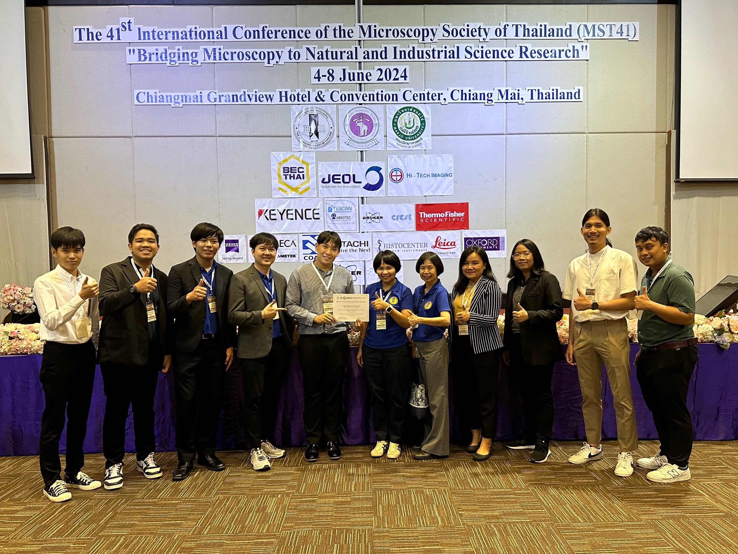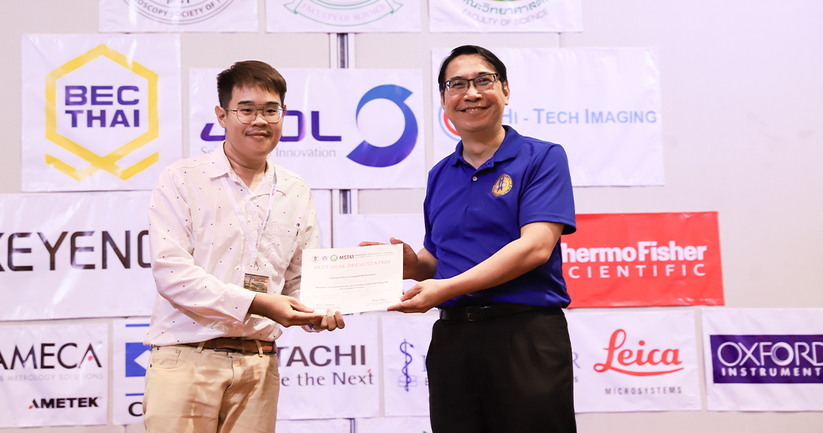 บัณฑิตคณะวิทยาศาสตร์ มหาวิทยาลัยเชียงใหม่ คว้า 3 รางวัล การนำเสนอผลงานวิชาการ ในงานประชุมวิชาการนานาชาติสมาคมจุลทรรศน์แห่งประเทศไทย ครั้งที่ 41 “The 41st International Conference of The Microscopy Society of Thailand (MST41)” ระหว่างวันที่ 4-8 มิถุนายน 2567 ณ โรงแรมเชียงใหม่แกรนด์วิว ดังนี้