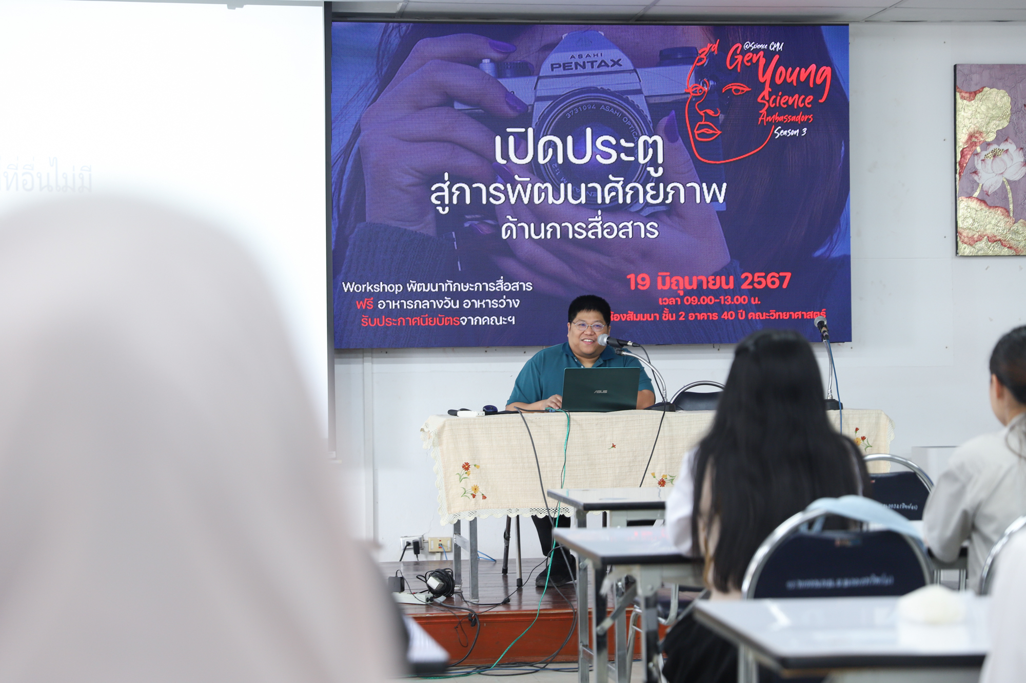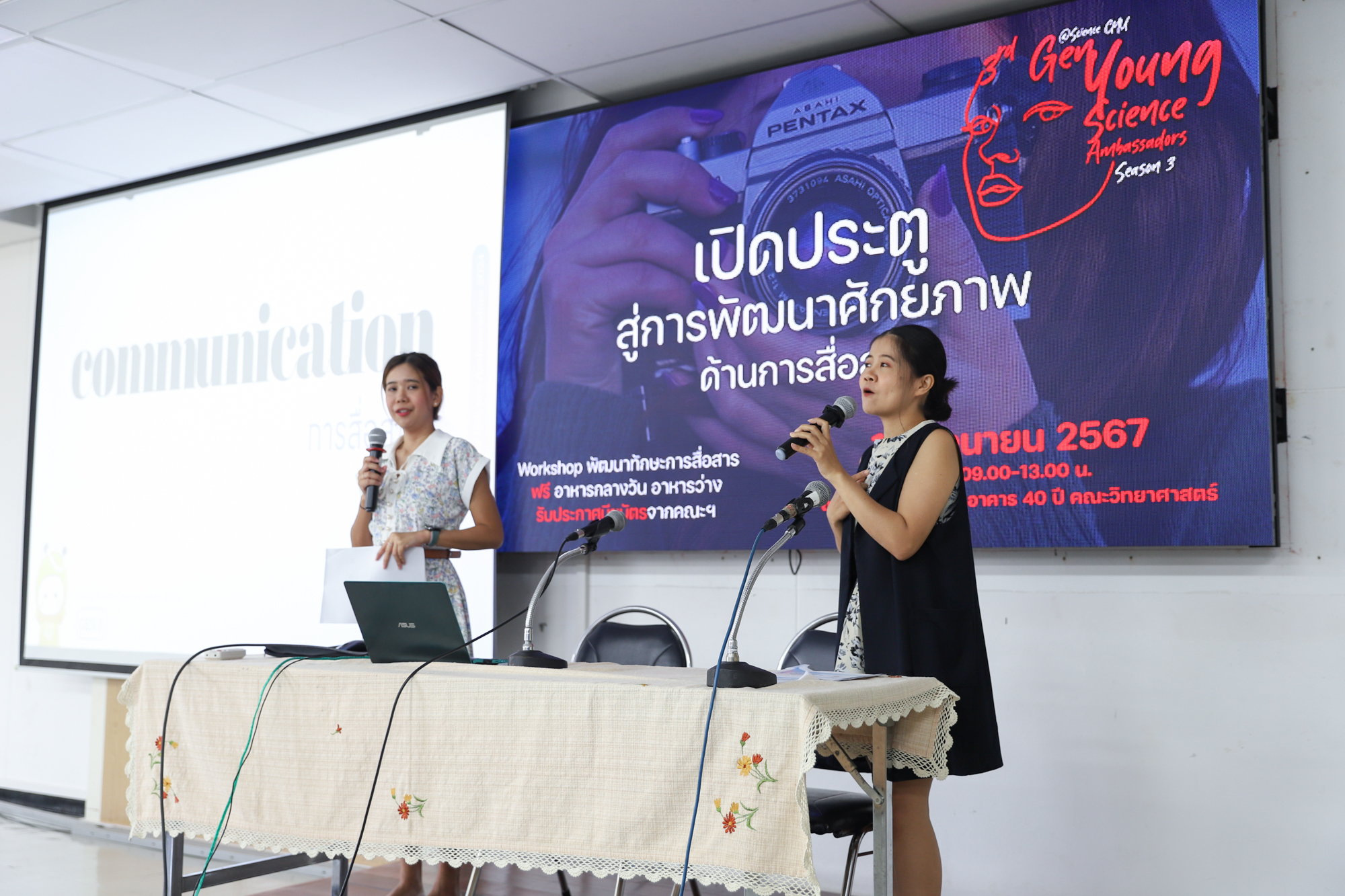 ฝ่ายสื่อสารองค์กร คณะวิทยาศาสตร์ มหาวิทยาลัยเชียงใหม่ นำโดย ผู้ช่วยศาสตราจารย์ ดร.ศุภณัฐ ชัยดี ผู้ช่วยคณบดีฝ่ายสื่อสารองค์กร จัดโครงการ Young Science Ambassadors 2024 (Season 3) นำนักศึกษากว่า 35 คน ที่มีความสนใจในงานด้านการสื่อสาร และมีความคิดริเริ่มสร้างสรรค์ เข้าร่วม Workshop ในหัวข้อต่างๆ ที่น่าสนใจ โดยเฉพาะอย่างยิ่งด้านการสื่อสาร การเป็นพิธีกร และการพัฒนาบุคลิกภาพ โดยวิทยากรจากฝ่ายสื่อสารองค์กร คณะวิทยาศาสตร์ ในวันที่ 19 มิถุนายน 2567 ณ ห้องสัมมนา ชั้น 2 อาคาร 40 ปี คณะวิทยาศาสตร์