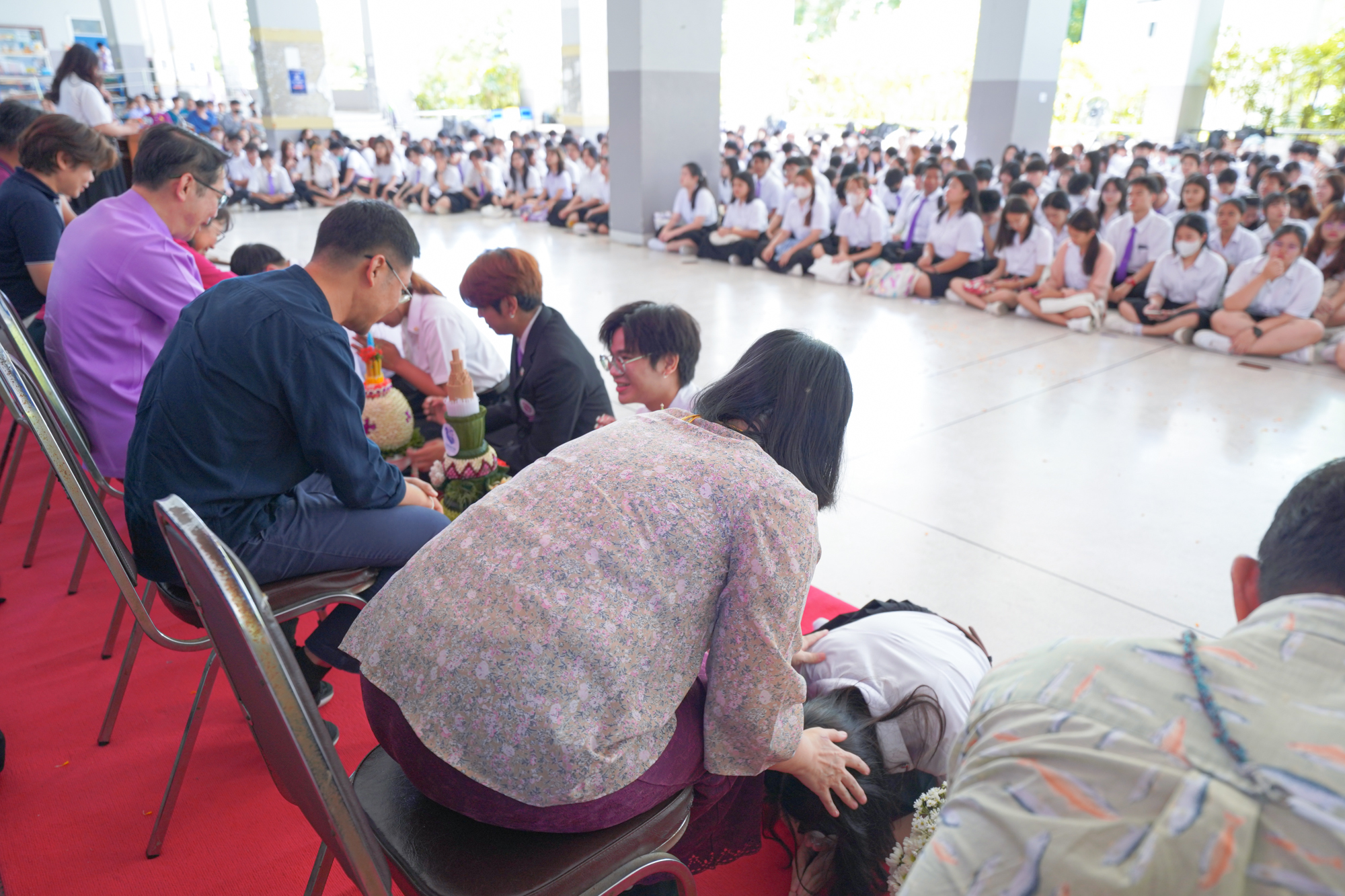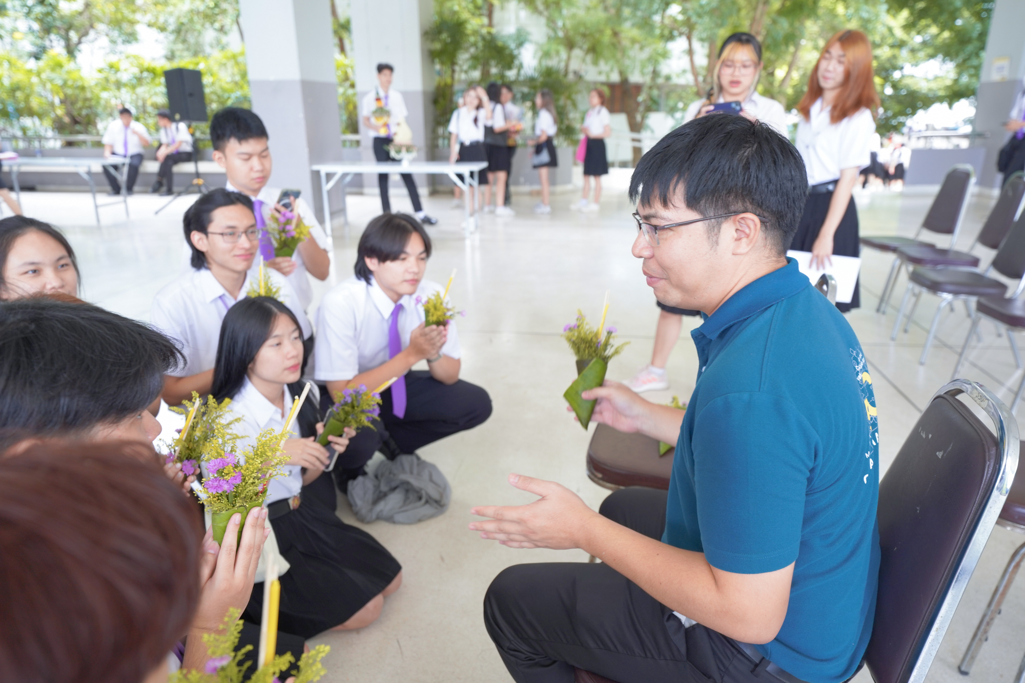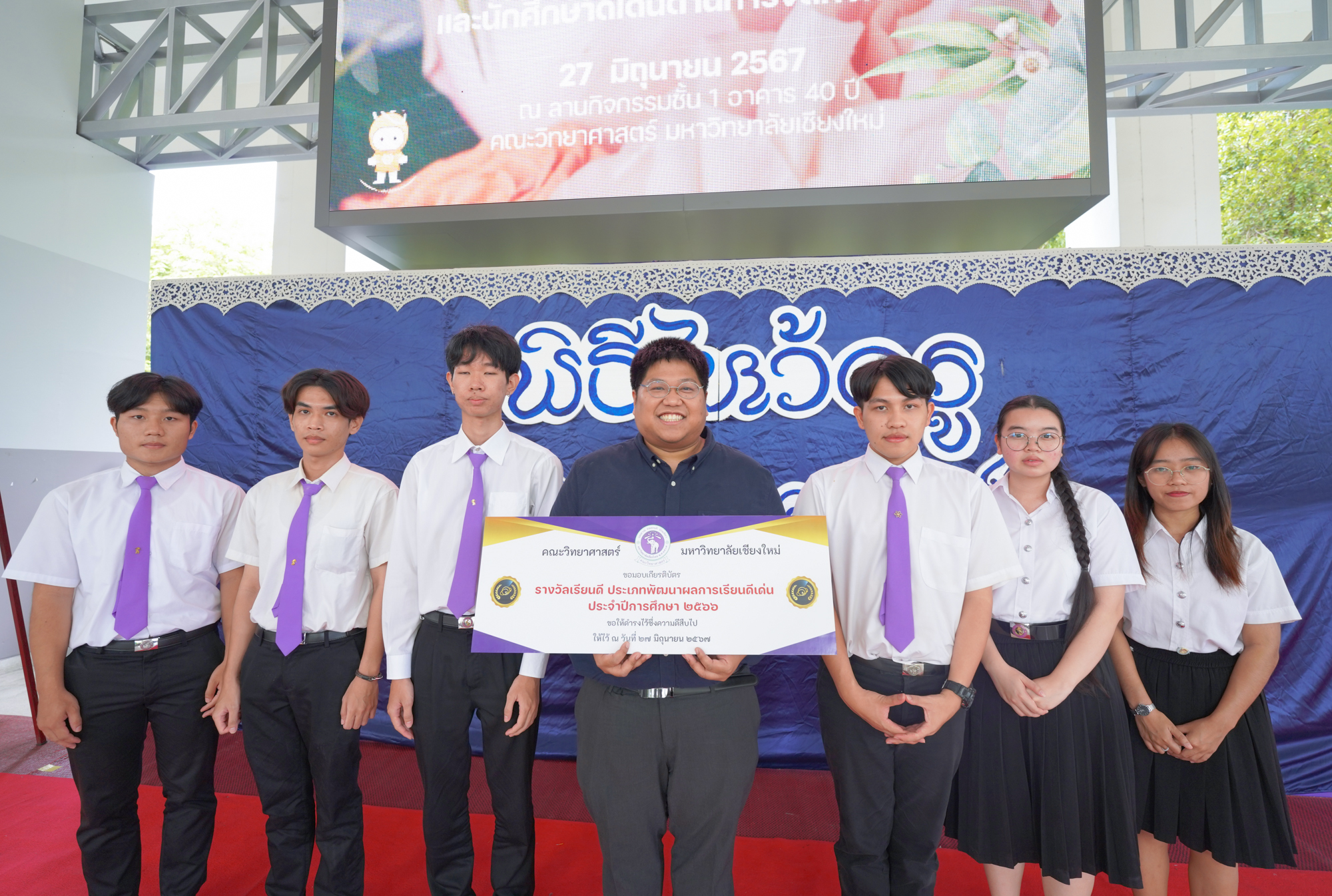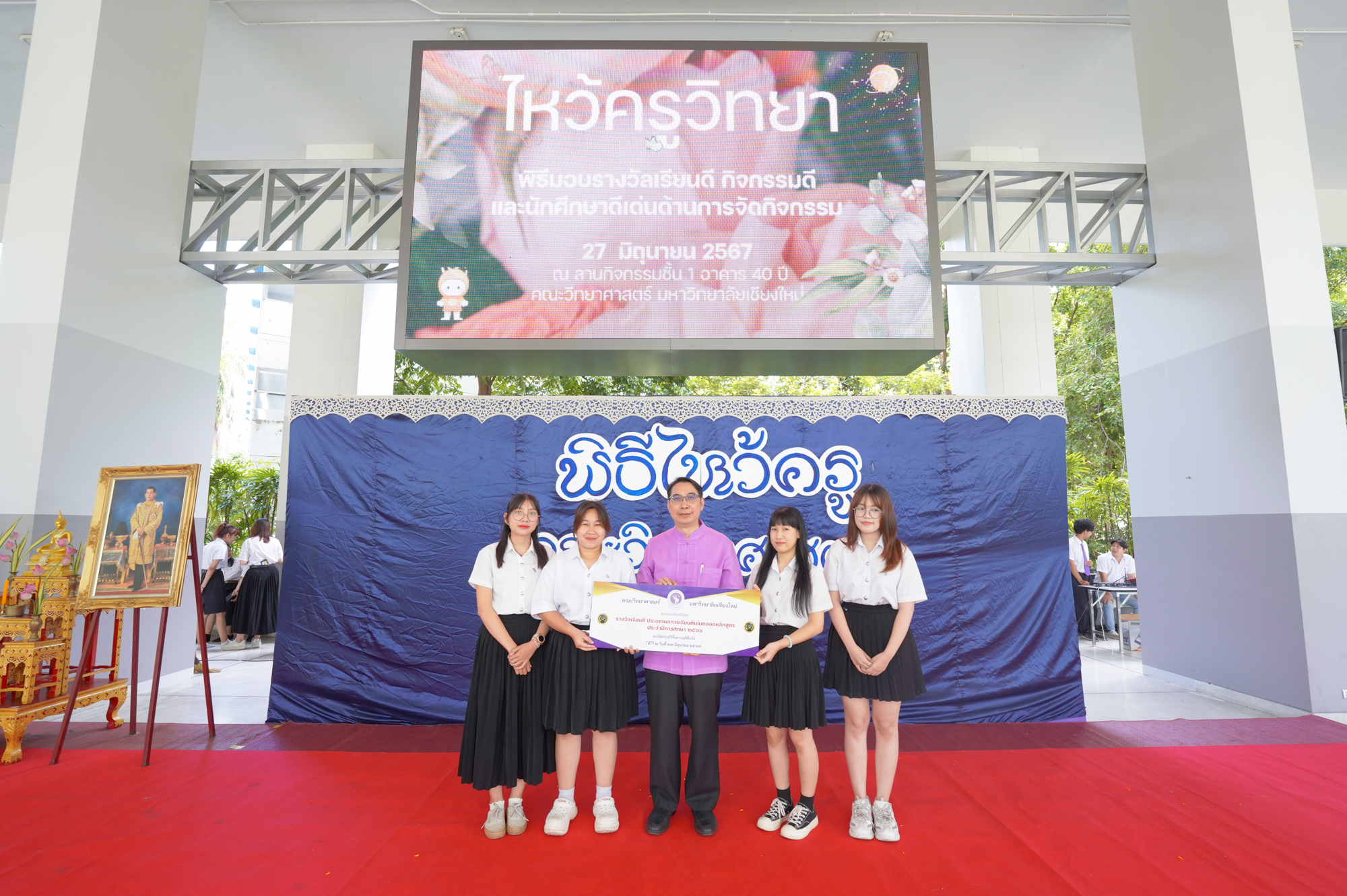 คณะวิทยาศาสตร์จัดพิธีไหว้ครู ประจำปี 2567 เพื่อให้นักศึกษาคณะวิทยาศาสตร์ทุกชั้นปี โดยเฉพาะนักศึกษาชั้นปีที่ 1 รหัส 67 ได้แสดงความเคารพนอบน้อมต่อครู อาจารย์ที่ประสิทธิ์ประสาทวิชาความรู้ ด้วยการนำพานดอกไม้ ธูปเทียน และกรวยดอกไม้มาไหว้ครูโดยพร้อมเพรียงกัน โดยมีศาสตราจารย์ (เชี่ยวชาญพิเศษ) ดร.ธรณินทร์ ไชยเรืองศรี คณบดีคณะวิทยาศาสตร์ เป็นประธานในพิธี พร้อมด้วยคณาจารย์จากทุกภาควิชาร่วมเป็นเกียรติในพิธี นอกจากนี้ ภายในงานยังมีการมอบรางวัลเรียนดีและกิจกรรมดี เพื่อเป็นขวัญกำลังใจให้กับนักศึกษาที่มีความตั้งใจศึกษาเล่าเรียนและทำกิจกรรมที่เป็นประโยชน์ พร้อมกับสร้างชื่อเสียงให้กับมหาวิทยาลัย เมื่อวันที่ 27 มิถุนายน 2567 ณ โถงชั้น 1 อาคาร 40 ปี คณะวิทยาศาสตร์ โดยบรรยากาศภายในงานเป็นไปอย่างอบอุ่น มีนักศึกษาและอาจารย์เข้าร่วมงานอย่างคึกคัก