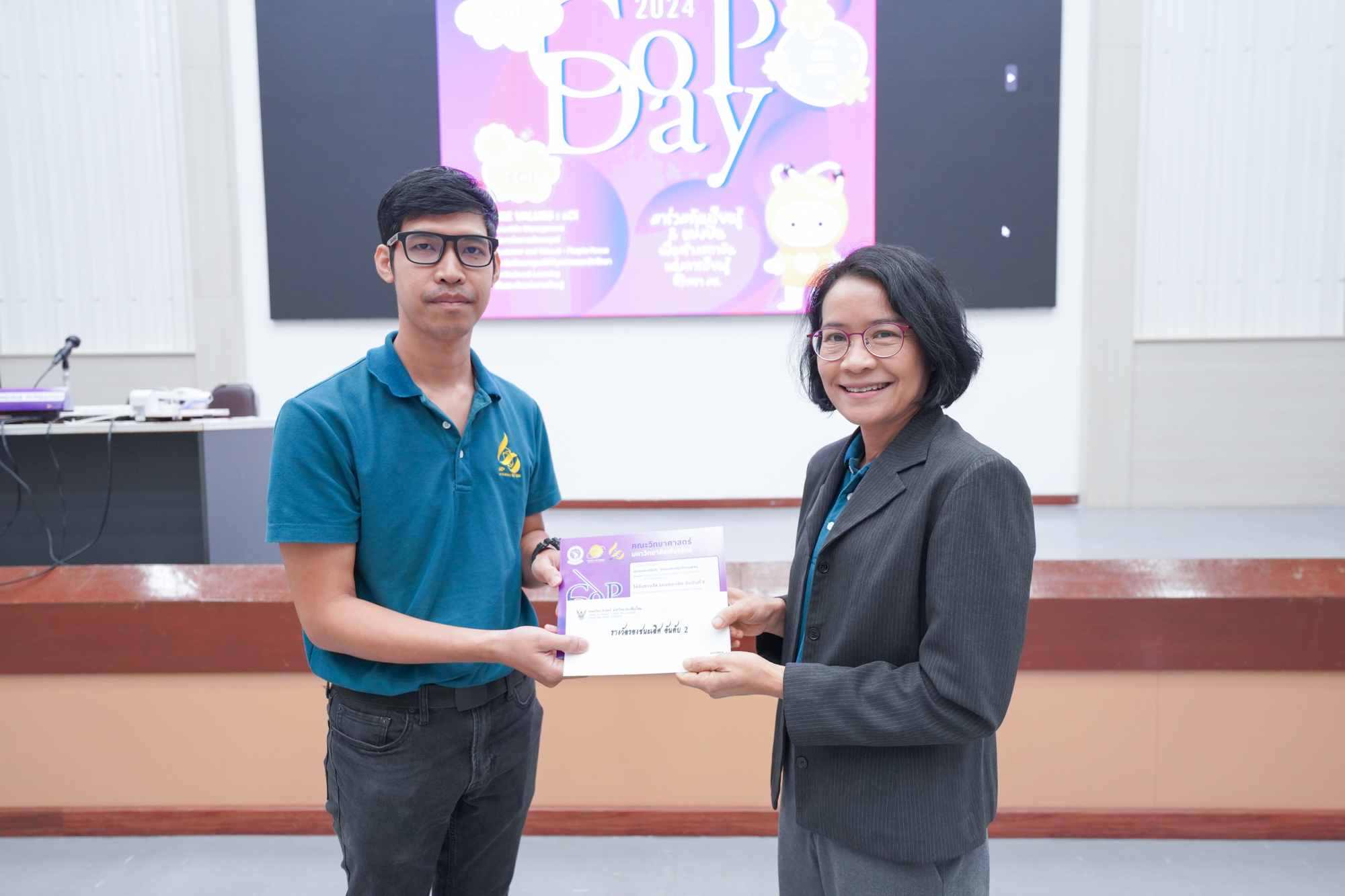 หลังจากนั้นมีการบรรยายพิเศษ หัวข้อ การพัฒนาตนเองให้มีความสุขและสำเร็จในการทำงาน โดย อ.ภูวศิษฐ์ วีระปัญญาวัฒน์ และปิดท้ายด้วยการประกาศรางวัลการนำเสนอผลงานทั้ง 2 ประเภท ได้แก่ ผลงานแบบบรรยาย (Oral Presentation) และผลงานแบบ Poster ที่มีการนำเสนอไปเมื่อวันที่ 2 กรกฎาคม 2567
