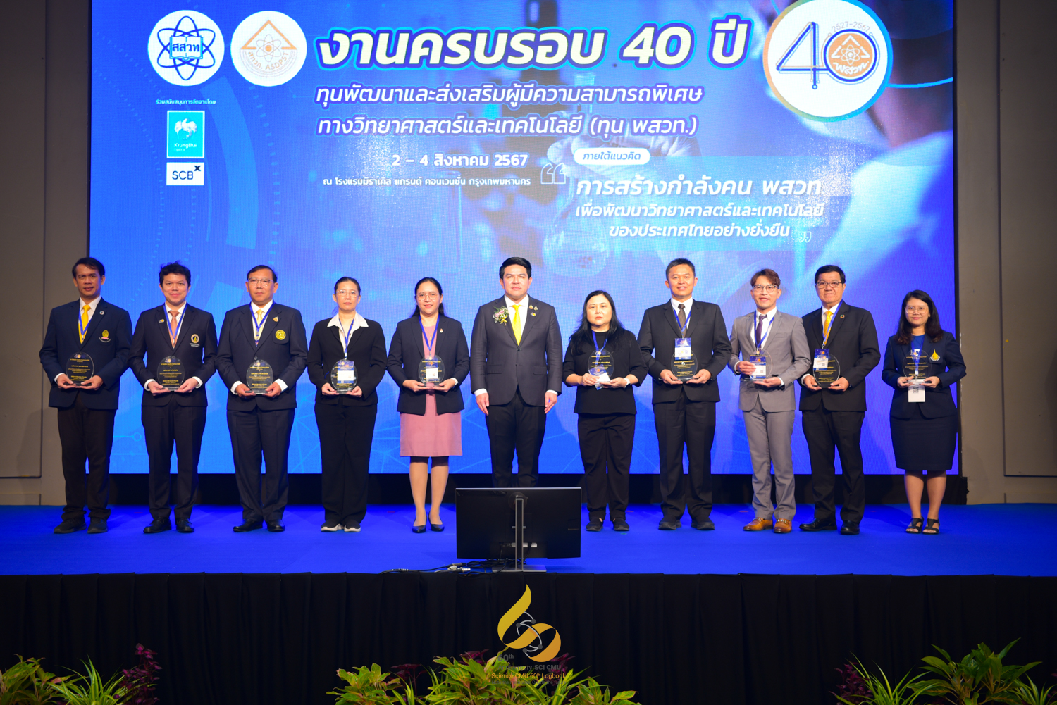โอกาสนี้ ผศ.ดร.ภควรรณ พวงสมบัติ รองคณบดีฝ่ายวิชาการ คณะวิทยาศาสตร์ ผู้แทนคณะวิทยาศาสตร์ มหาวิทยาลัยเชียงใหม่ เข้ารับโล่ประกาศเกียรติคุณผู้ทำคุณประโยชน์แก่ สสวท. และทุน พสวท. ในฐานะที่คณะวิทยาศาสตร์ เป็นศูนย์ร่วมผลิตบัณฑิต พสวท. รวมถึงได้ร่วมออกบูธแนะนำคณะวิทยาศาสตร์ มหาวิทยาลัยเชียงใหม่ อีกด้วย