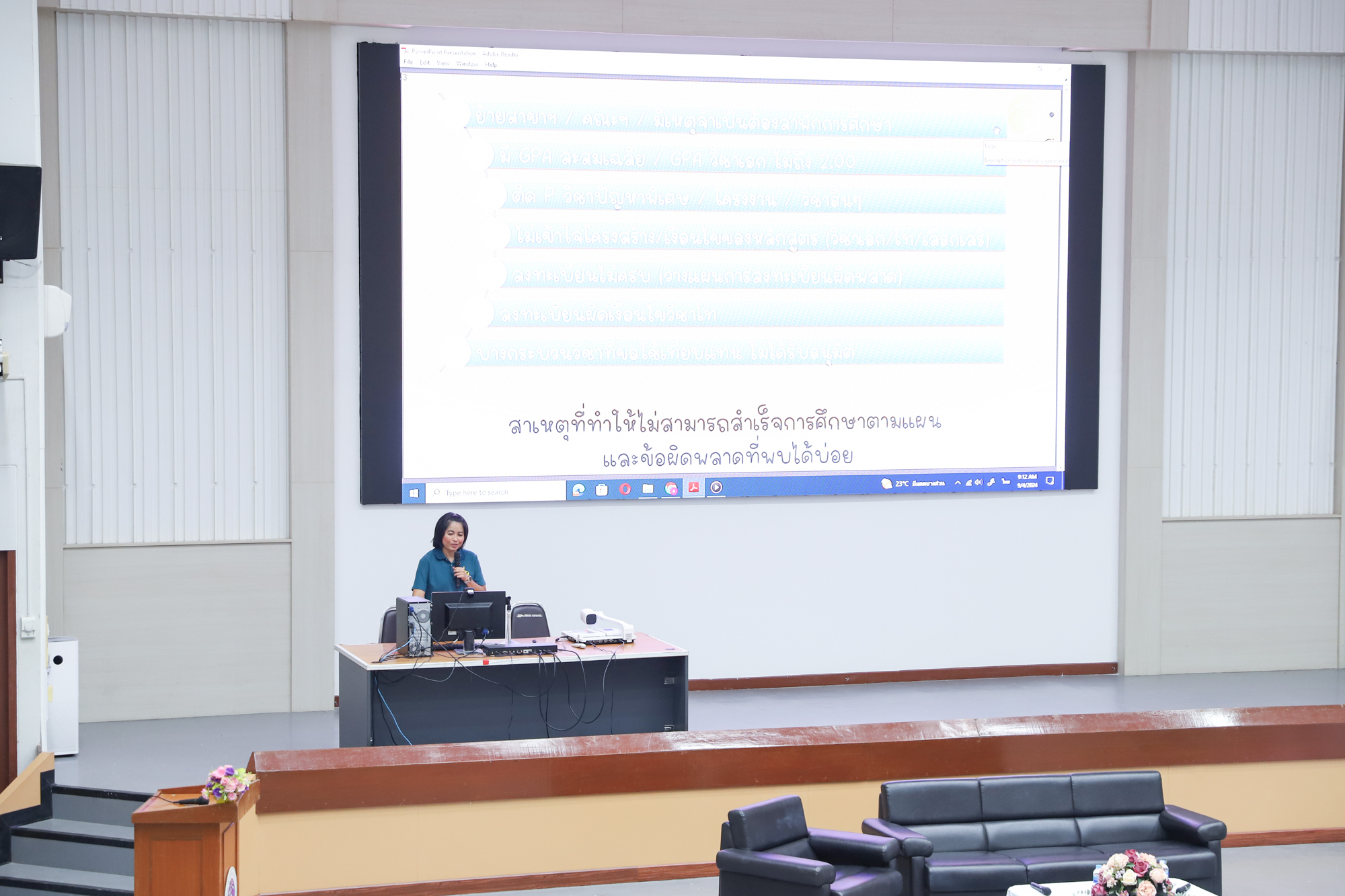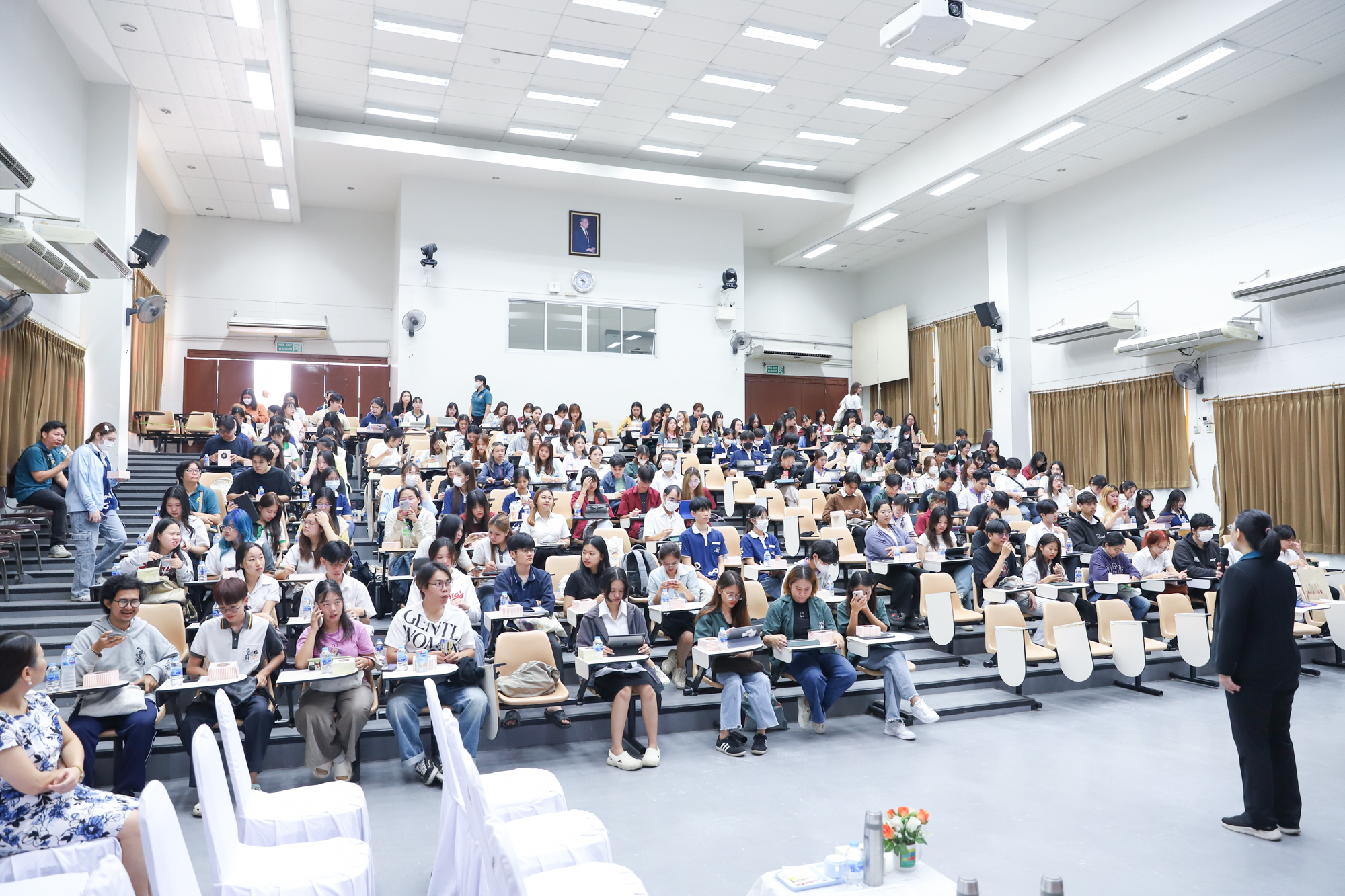 งานบริการการศึกษาและพัฒนาคุณภาพนักศึกษา คณะวิทยาศาสตร์ จัดโครงการเตรียมความพร้อมก่อนสำเร็จการศึกษา สำหรับนักศึกษาระดับปริญญาตรี คณะวิทยาศาสตร์ ประจำปีการศึกษา 2567 โดยได้รับเกียรติจาก ผู้ช่วยศาสตราจารย์ ดร.ภควรรณ พวงสมบัติ รองคณบดีฝ่ายวิชาการ เป็นประธานเปิดโครงการ ซึ่งจัดขึ้นเพื่อให้นักศึกษาได้รับทราบข้อมูลที่เป็นประโยชน์เกี่ยวกับระเบียบ ข้อบังคับ และแนวปฏิบัติที่เกี่ยวข้องกับหลักสูตรการศึกษา ตลอดจนเพื่อให้นักศึกษาสามารถวางแผนการปฏิบัติตนและการเตรียมตัวด้านวิชาการ เพื่อให้สำเร็จการศึกษาได้ตามแผนการศึกษาที่กำหนด ในวันที่ 4 กันยายน 2567 ณ ห้อง SCB2100 ชั้น 1 อาคาร 40 ปี คณะวิทยาศาสตร์