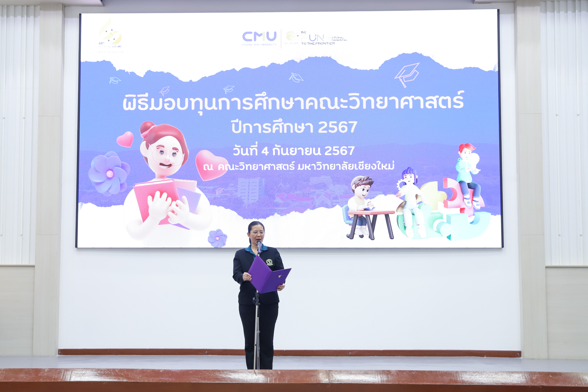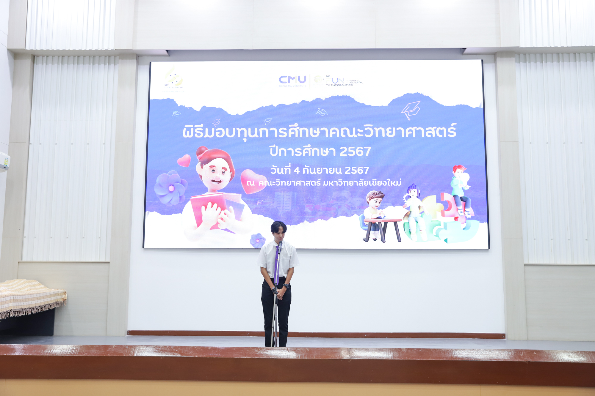 คณะวิทยาศาสตร์ จัดพิธีมอบทุนการศึกษา ประจำปีการศึกษา 2567 แก่นักศึกษาคณะวิทยาศาสตร์ ในวันที่ 4 กันยายน 2567 ณ ห้องบรรยาย SCB2100 อาคาร 40 ปี คณะวิทยาศาสตร์ โดยได้รับเกียรติจาก ผู้ช่วยศาสตราจารย์ ดร.ภควรรณ พวงสมบัติ รองคณบดีฝ่ายวิชาการ เป็นประธานในพิธี ผู้ช่วยศาสตราจารย์ ดร.แสนคำ นุเสน ผู้ช่วยคณบดีฝ่ายพัฒนาคุณภาพนักศึกษา และศิษย์เก่าสัมพันธ์ กล่าวรายงานความเป็นมาของการจัดงาน และรองศาสตราจารย์ประทีป จันทร์คง กล่าวให้โอวาทแก่นักศึกษา โดยภายในงานได้รับเกียรติจากผู้บริหารคณะวิทยาศาสตร์ ตลอดจนผู้มีอุปการคุณเข้าร่วมพิธีมอบทุนด้วย