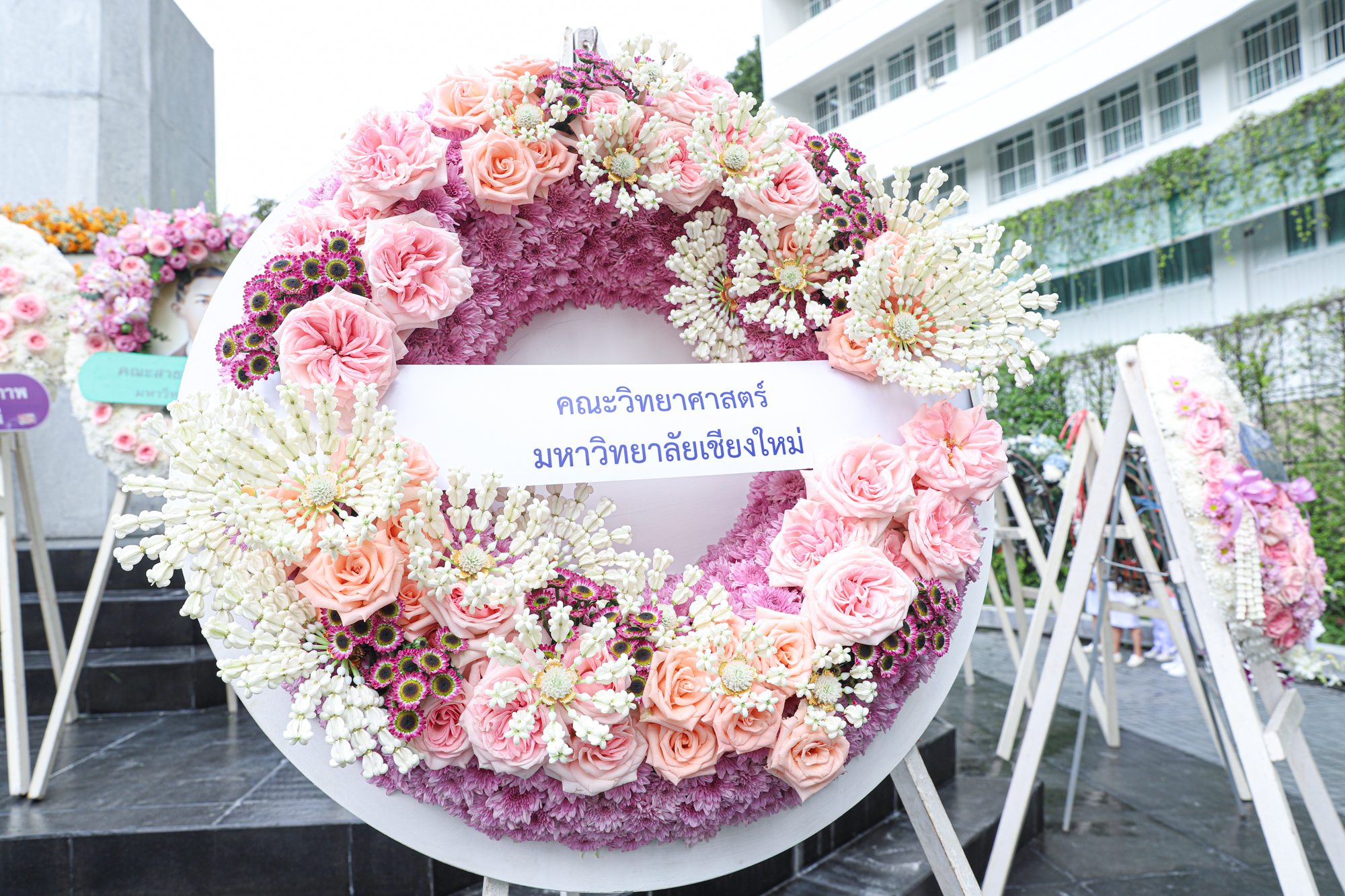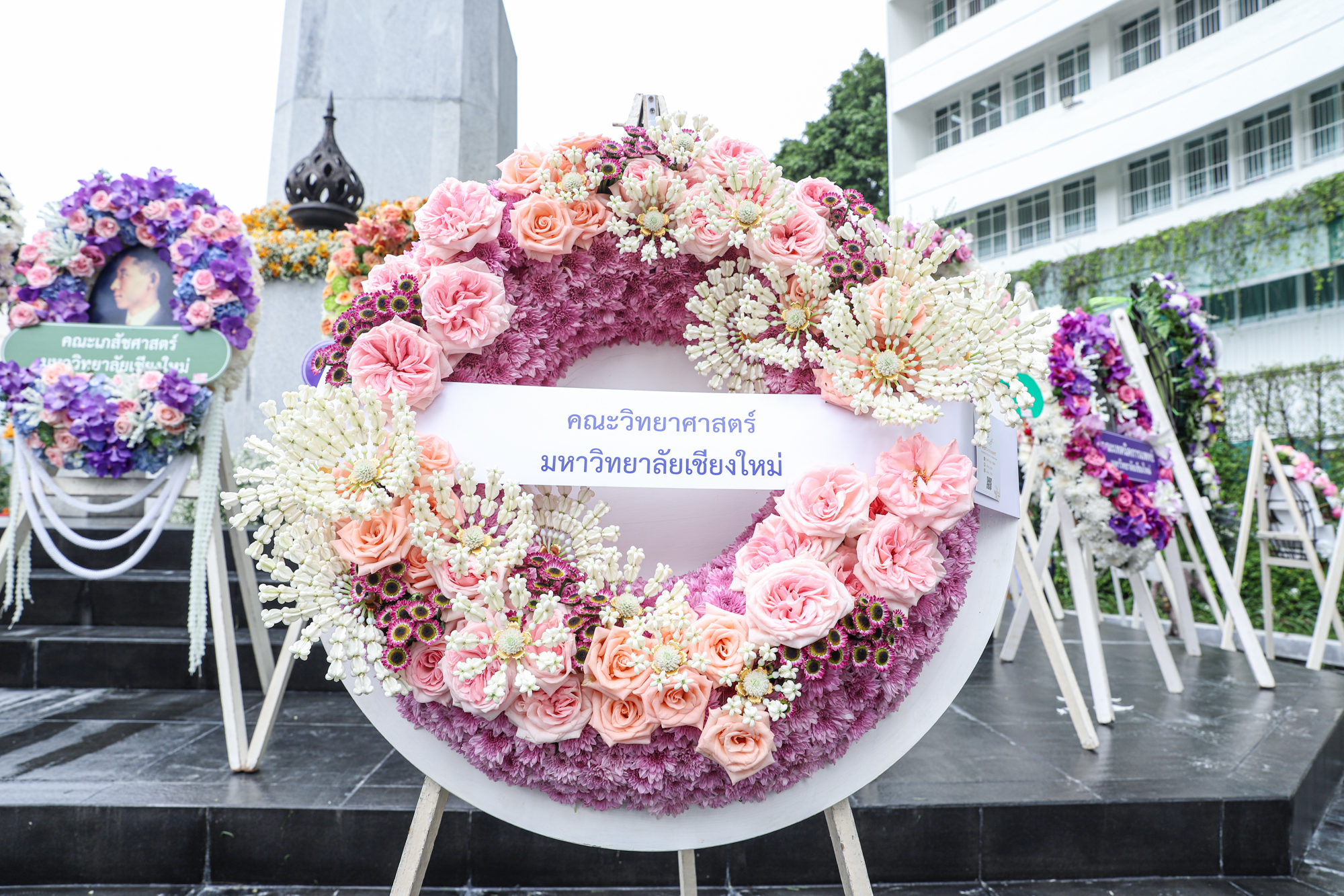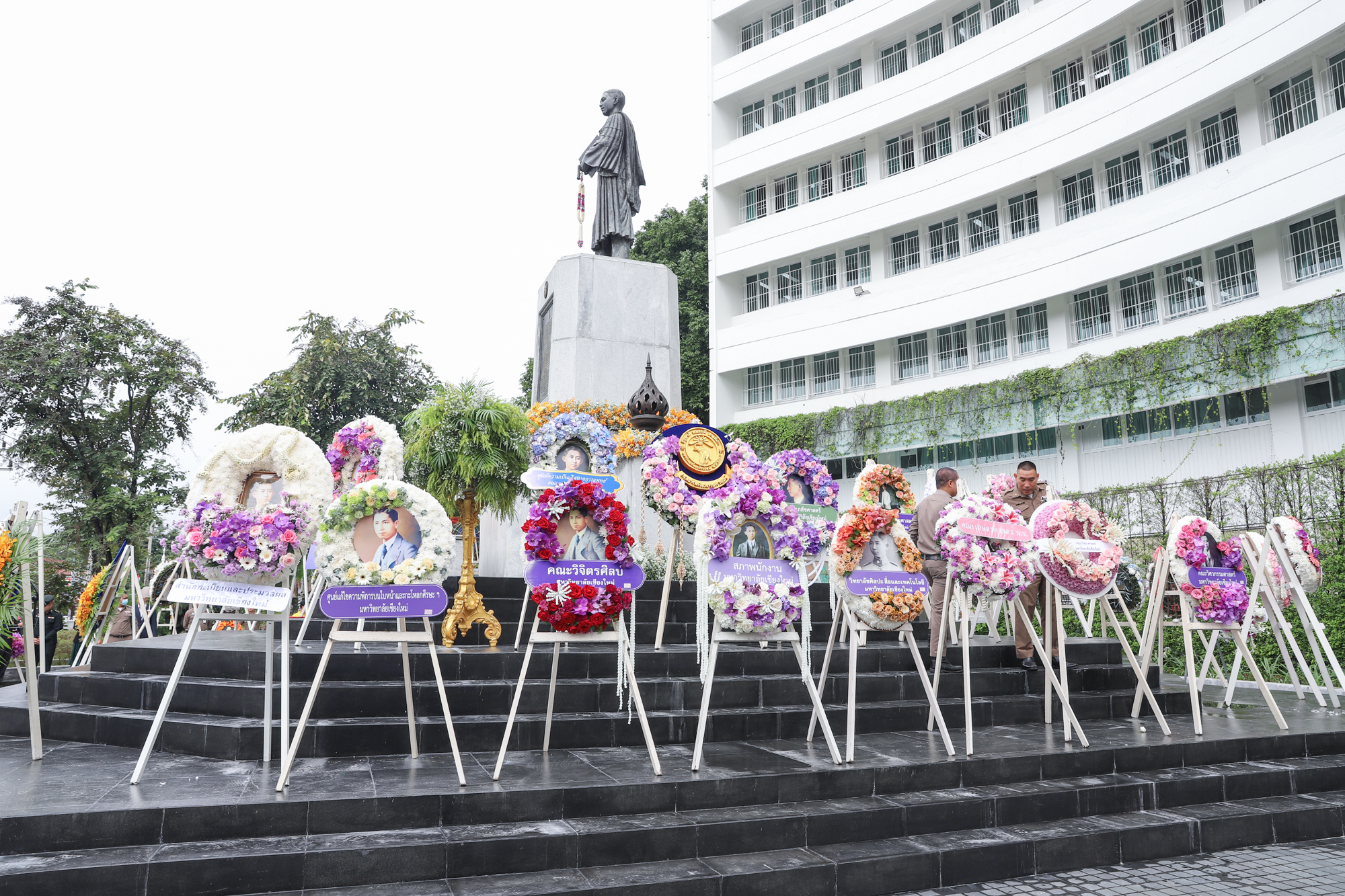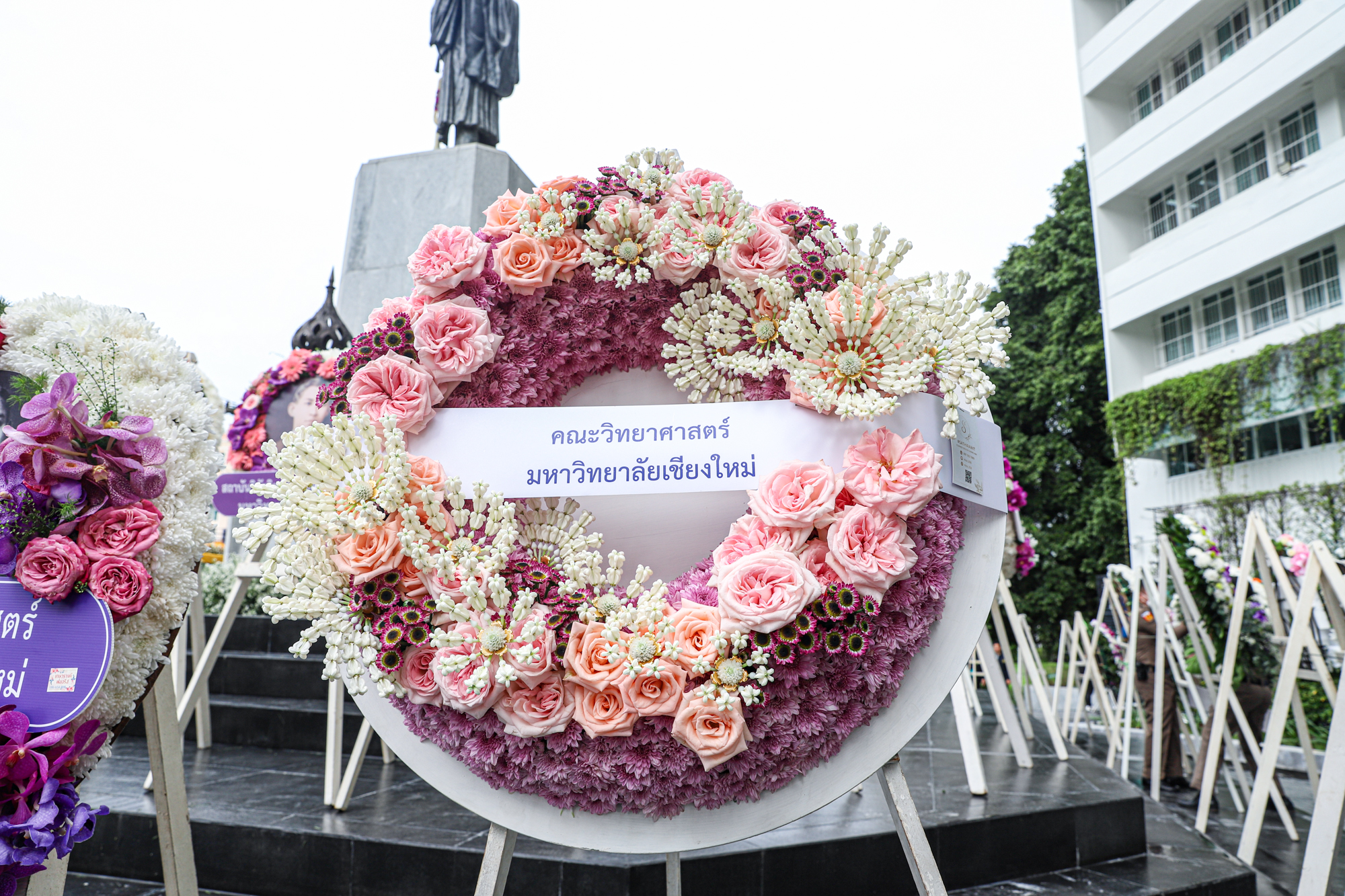 รองศาสตราจารย์ ดร.หทัยชนก เนียมทรัพย์ รองคณบดีฝ่ายบริหาร คณะวิทยาศาสตร์ พร้อมด้วยอาจารย์ ดร. วรวุฒิ ศรีสุขคำ ผู้ช่วยคณบดีฝ่ายกายภาพ ร่วมพิธีวางพวงมาลาถวายบังคมพระราชานุสาวรีย์สมเด็จพระมหิตลาธิเบศร อดุลยเดชวิกรม พระบรมราชชนก เนื่องในวันมหิดล ประจำปี 2567 ณ ลานพระบรมราชานุสาวรีย์ฯ คณะแพทยศาสตร์ มหาวิทยาลัยเชียงใหม่ เมื่อวันที่ 24 กันยายน พ.ศ. 2567
