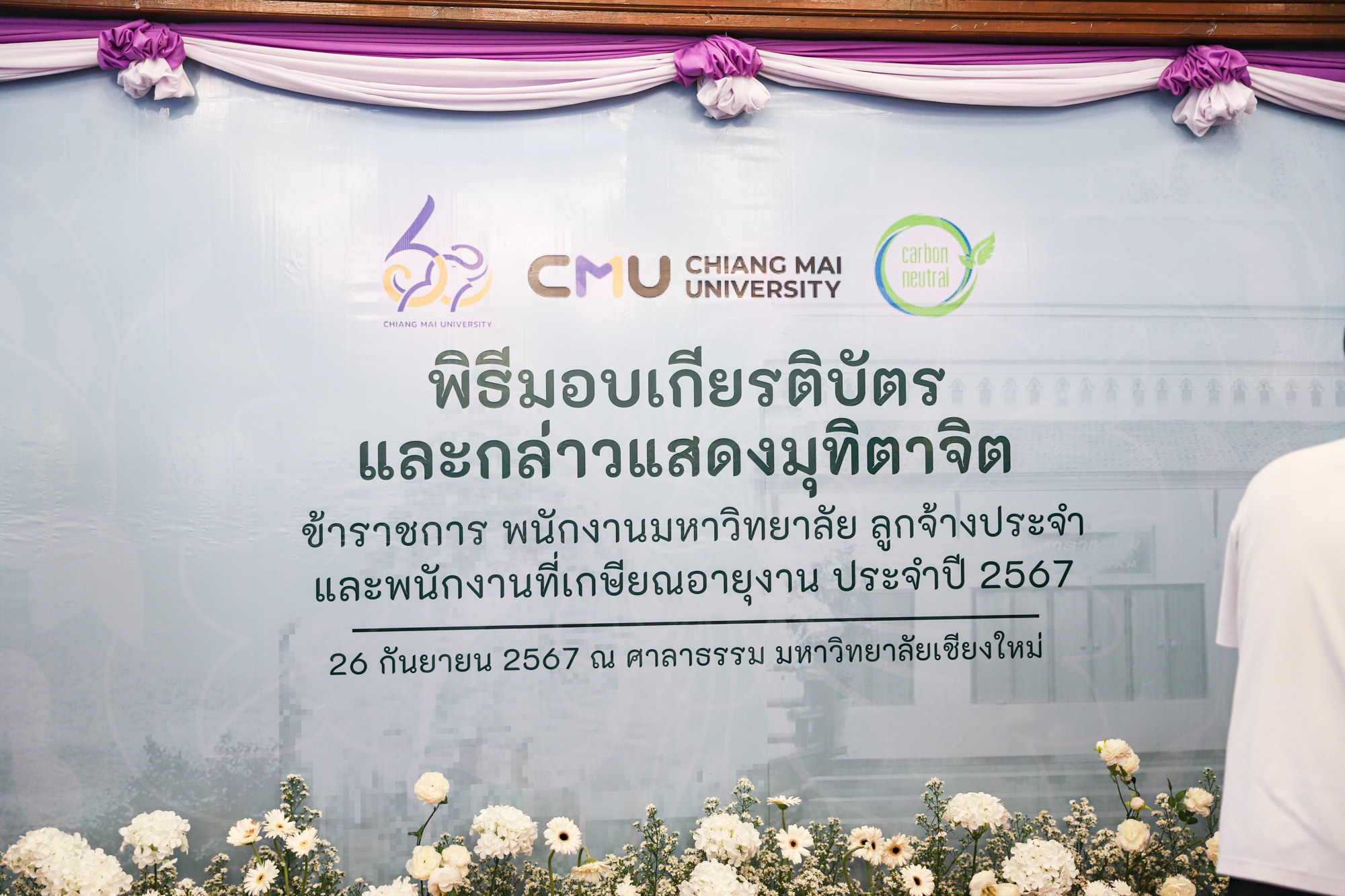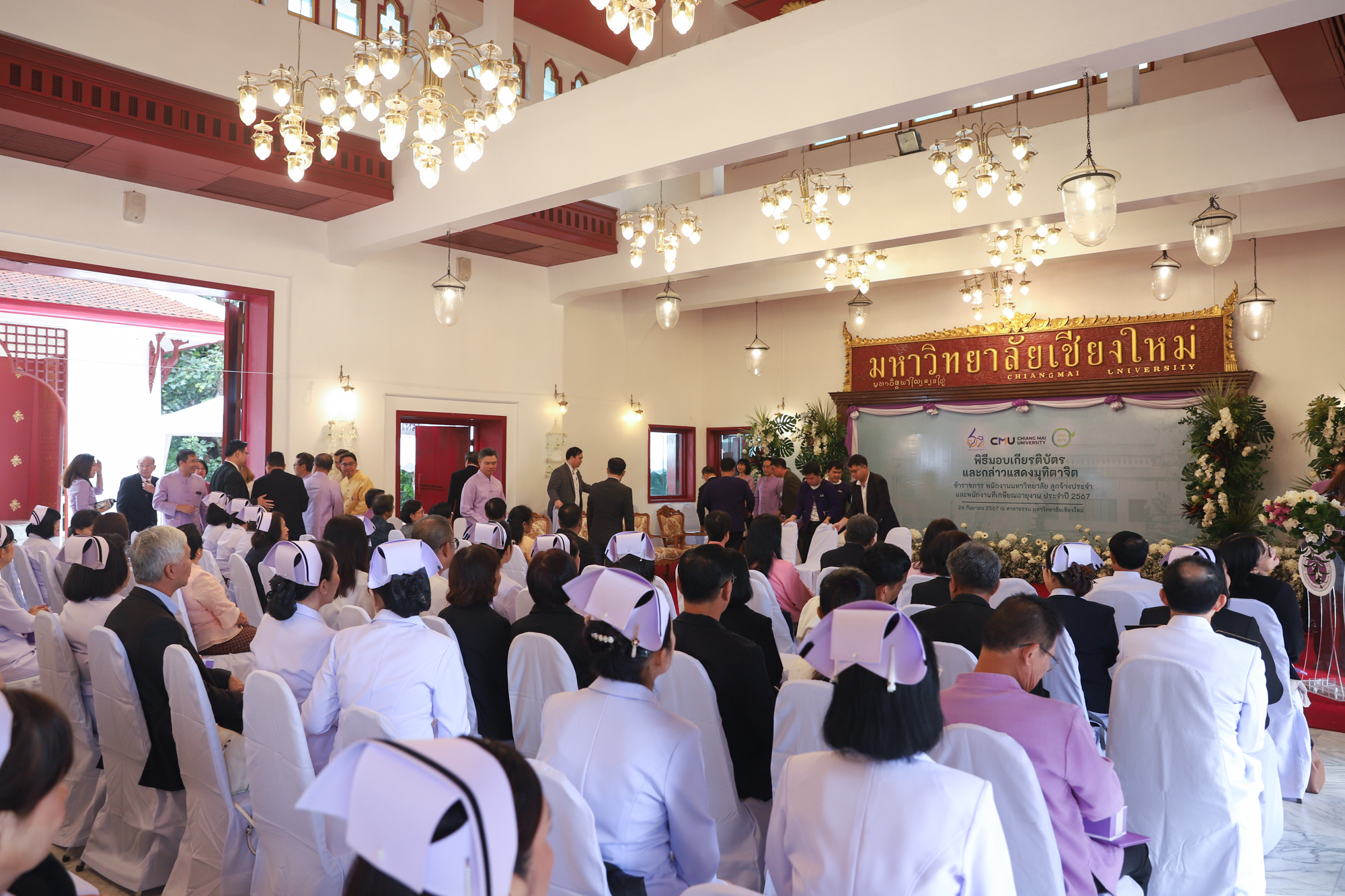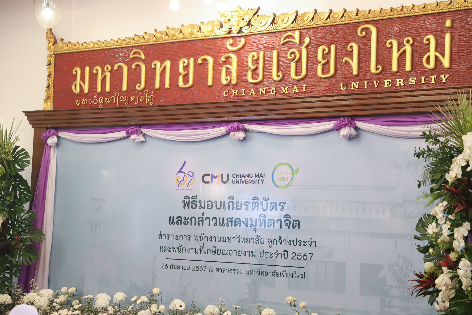 ศาสตราจารย์ (เชี่ยวชาญพิเศษ) ดร. ธรณินทร์ ไชยเรืองศรี คณบดีคณะวิทยาศาสตร์ พร้อมด้วยผู้บริหารและบุคลากรคณะวิทยาศาสตร์ ร่วมพิธีแสดงมุทิตาจิตแด่ข้าราชการ พนักงานมหาวิทยาลัย และลูกจ้างประจำของมหาวิทยาลัยเชียงใหม่ที่เกษียณอายุงาน ประจำปี 2567 ซึ่งจัดโดยมหาวิทยาลัยเชียงใหม่ เมื่อวันที่ 26 กันยายน พ.ศ. 2567 ณ ศาลาธรรม มหาวิทยาลัยเชียงใหม่ โดยมี ดร.นพ.พงษ์รักษ์ ศรีบัณฑิตมงคล อธิการบดีมหาวิทยาลัยเชียงใหม่ เป็นประธานในพิธีฯ