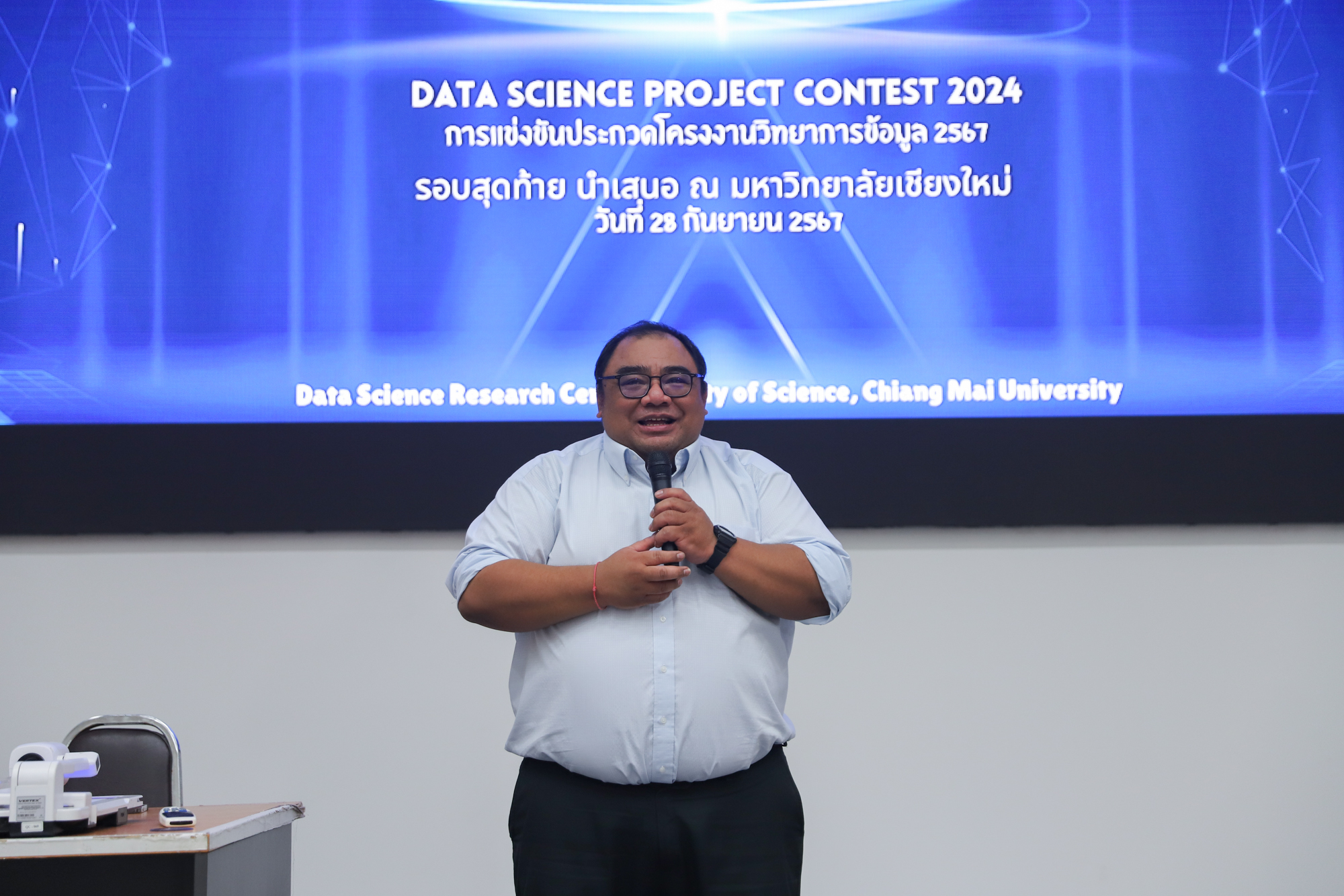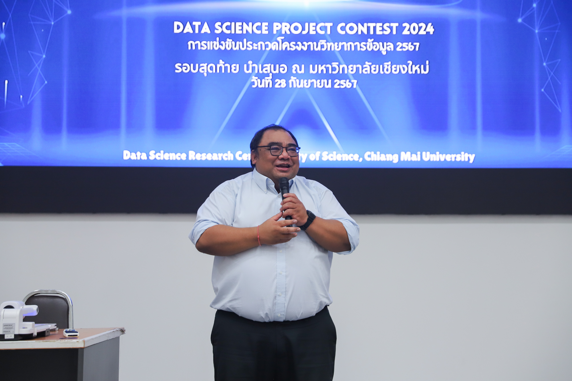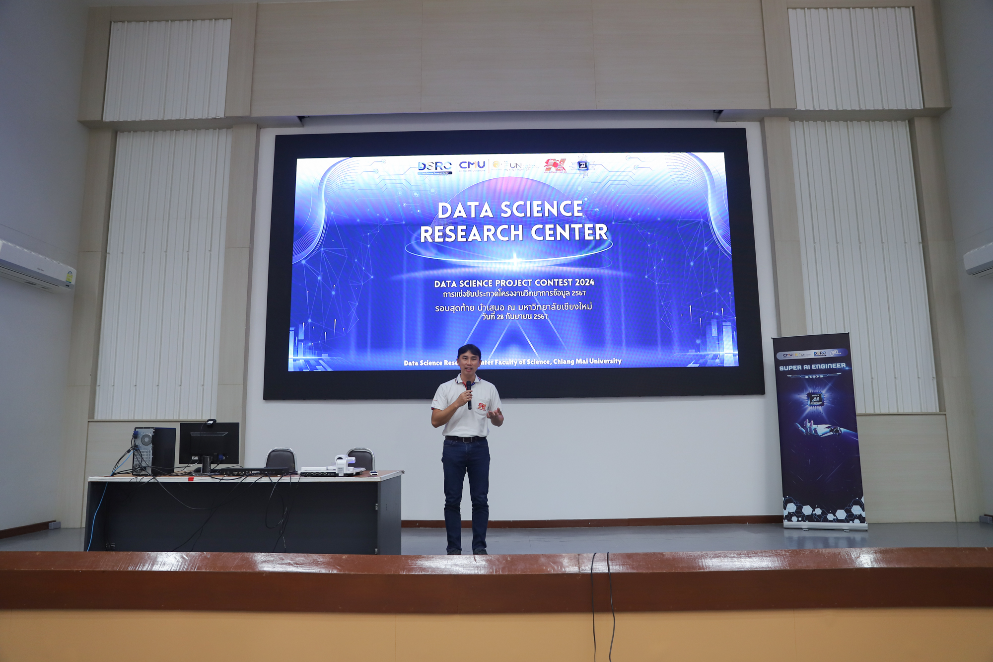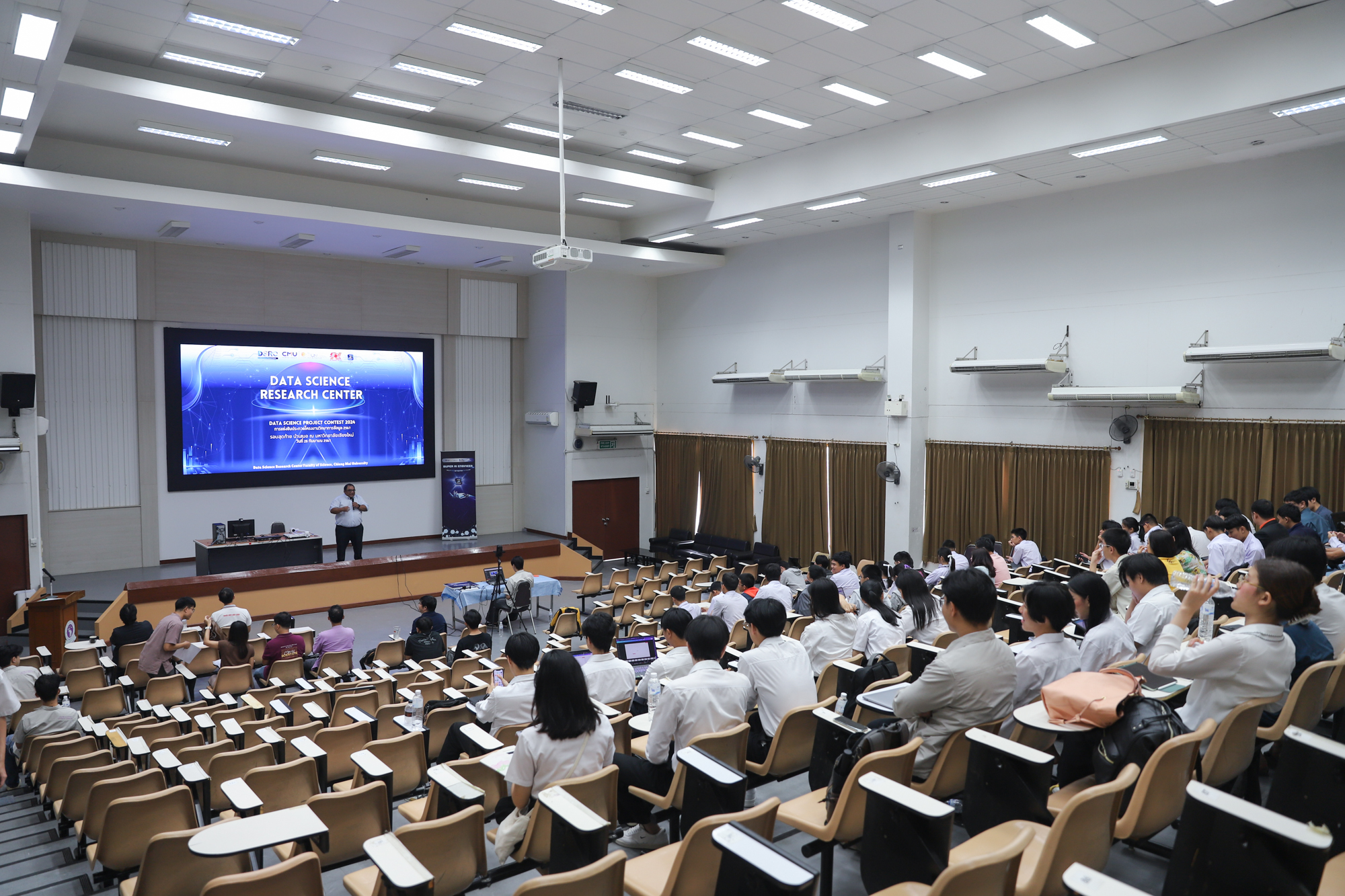 โครงการจัดตั้งศูนย์วิจัยวิทยาการข้อมูล คณะวิทยาศาสตร์ ร่วมกับหน่วยงานที่เกี่ยวข้อง และผู้สนับสนุนทั้งภาครัฐและเอกชน จัดการแข่งขันรอบสุดท้าย Data Science Project Contest 2024 ระดับ ม.ปลาย และอุดมศึกษา / บุคคลทั่วไป จากผู้สมัครกว่า 200 ทีมทั่วประเทศ ในโจทย์ปัญหาสุดท้าทายจากบริษัท นิ่มซี่เส็งขนส่ง 1988 จำกัด โดยได้รับเกียรติจาก ผศ.ดร.ธนะศักดิ์ หมวกทองหลาง หัวหน้าโครงการจัดตั้งศูนย์วิจัยวิทยาการข้อมูล เป็นประธานเปิดการแข่งขัน เมื่อวันที่ 28 กันยายน 2567 ณ อาคาร 40 ปี คณะวิทยาศาสตร์ มหาวิทยาลัยเชียงใหม่ สามารถติดตามผลการแข่งขันได้ที่ แฟนเพจ