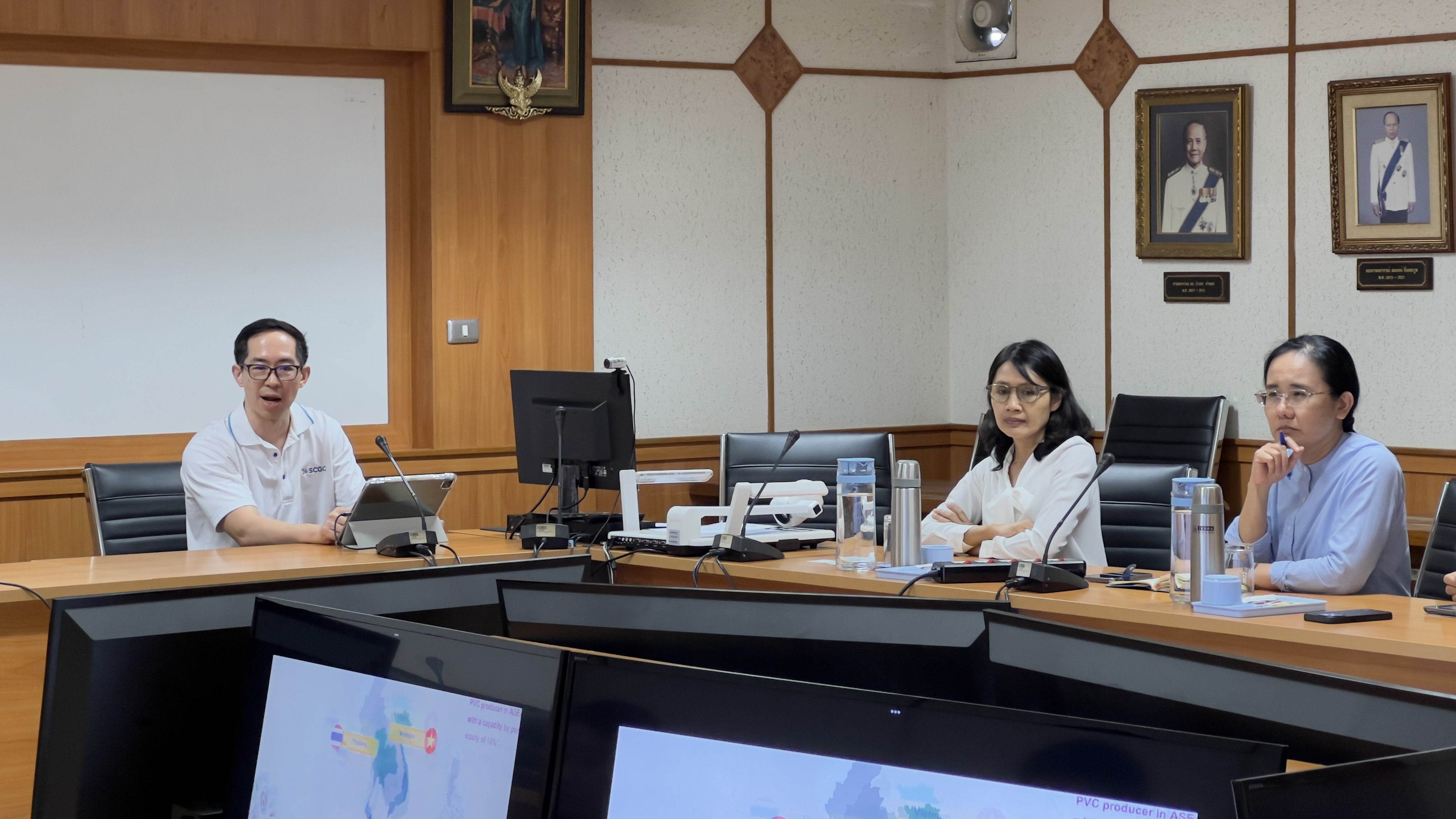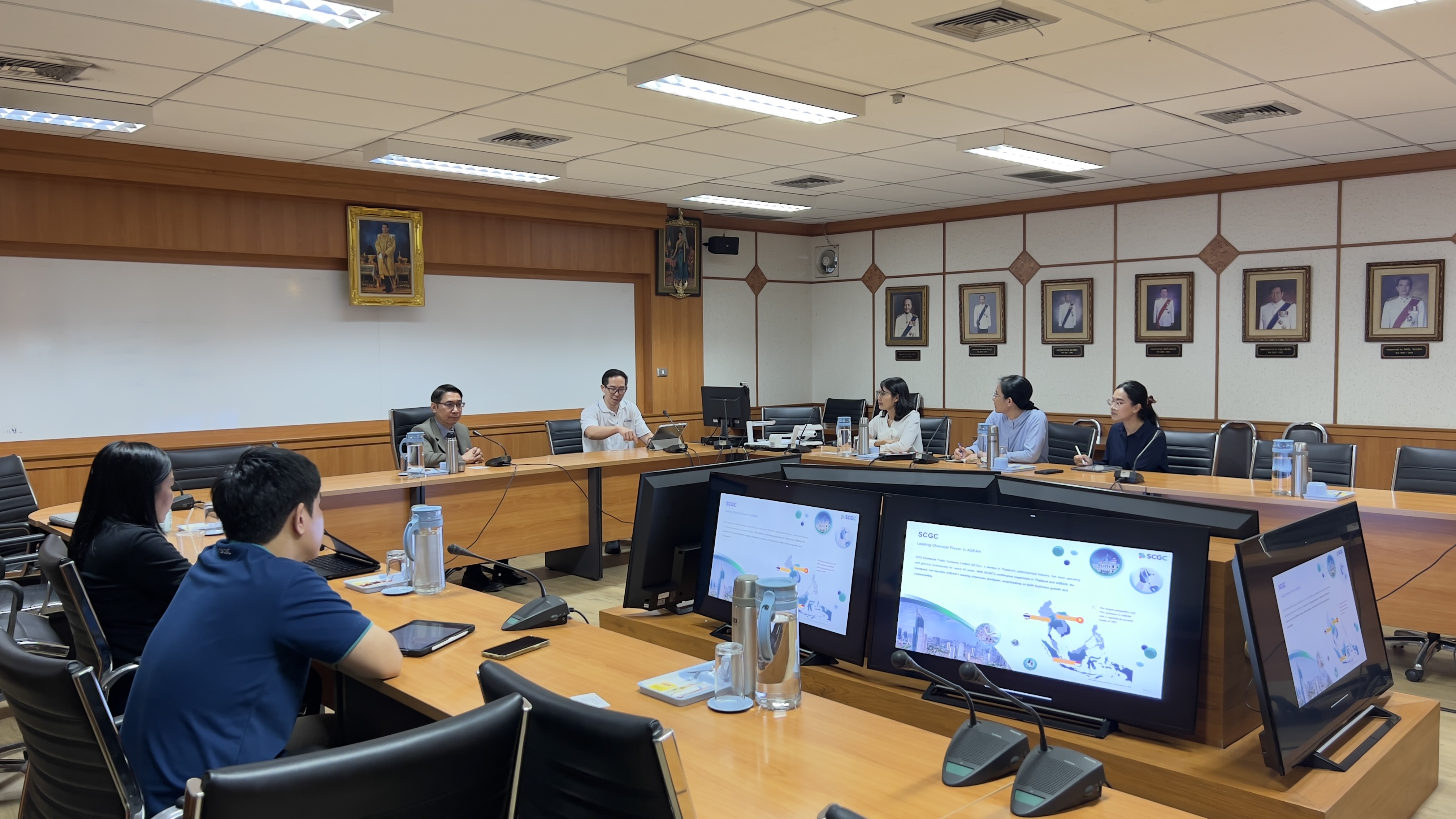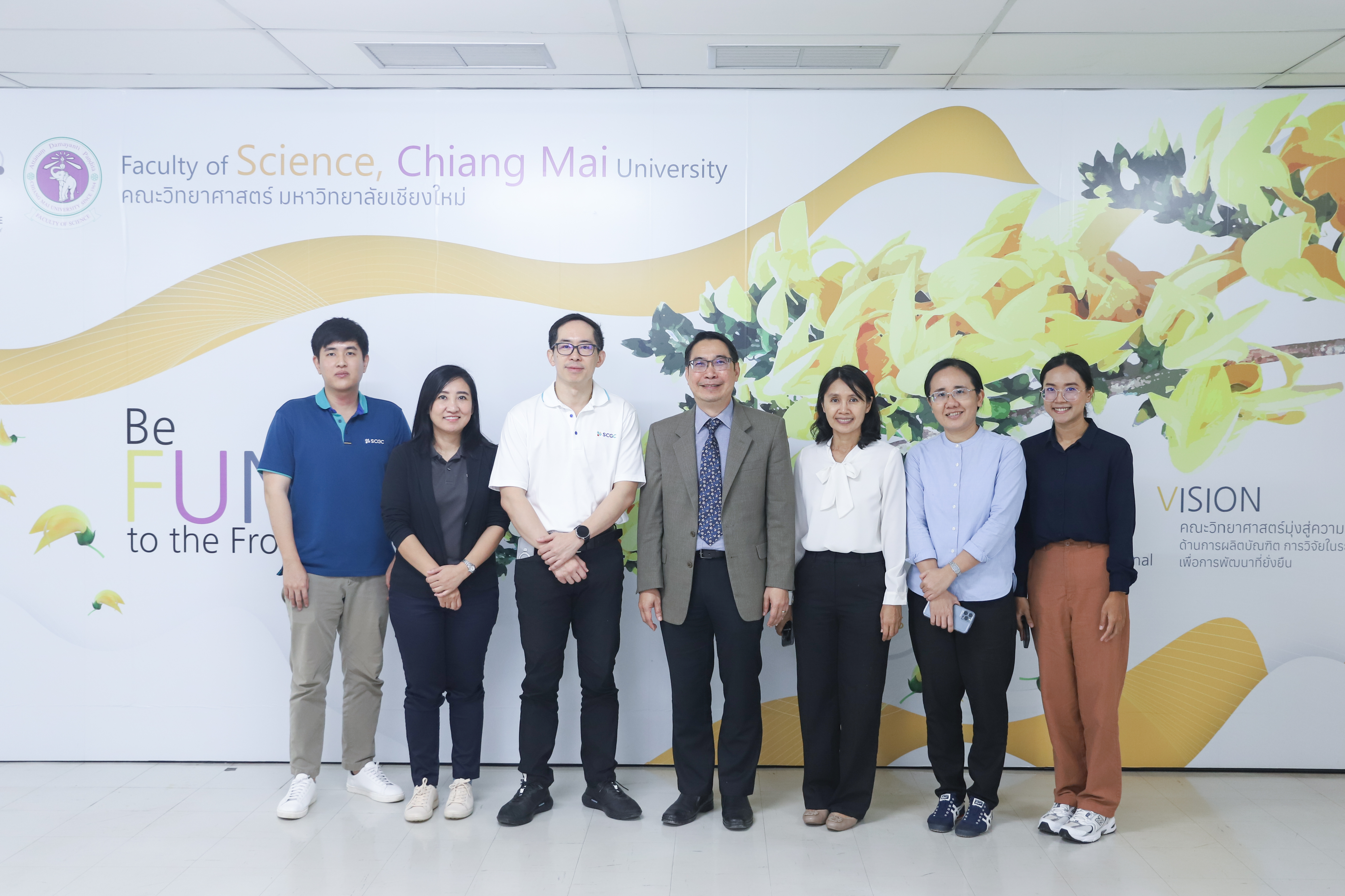 ศาสตราจารย์ (เชี่ยวชาญพิเศษ) ดร.ธรณินทร์ ไชยเรืองศรี คณบดีคณะวิทยาศาสตร์ และรองศาสตราจารย์ ดร.เกศรินทร์ พิมรักษา รองคณบดีฝ่ายวิจัยและวิเทศสัมพันธ์ พร้อมด้วย ผู้ช่วยศาสตราจารย์ ดร.นงค์นุช เรืองจิตต์ สังกัดภาควิชาเคมีอุตสาหกรรม ร่วมให้การต้อนรับคณะจากบริษัท เอสซีจี เคมิคอลส์ จำกัด นำโดย ดร.สุเมธ เจริญชัยเดช ผู้อำนวยการศูนย์วิจัยและพัฒนา และคุณอัญชนา วังริยา ผู้จัดการวิจัยและพัฒนา ในโอกาสร่วมหารือความร่วมมือการวิจัยด้าน Circular Economy รวมถึงหารือแนวทางการมีบันทึกข้อตกลงความร่วมมือการวิจัย ระหว่างบริษัทฯ และคณะวิทยาศาสตร์ มหาวิทยาลัยเชียงใหม่ เมื่อวันพุธที่ 2 ตุลาคม 2567 ณ ห้องประชุม 2 อาคาร 40 ปี คณะวิทยาศาสตร์ มหาวิทยาลัยเชียงใหม่
