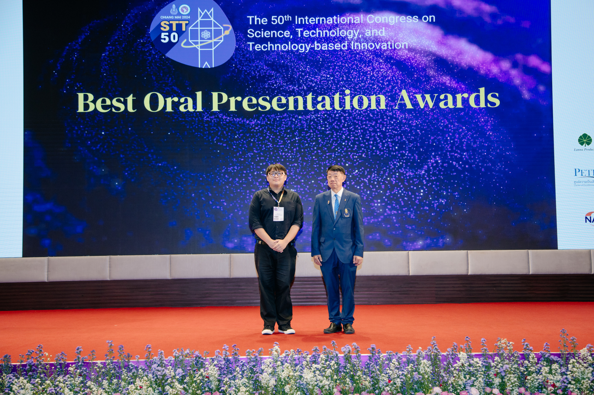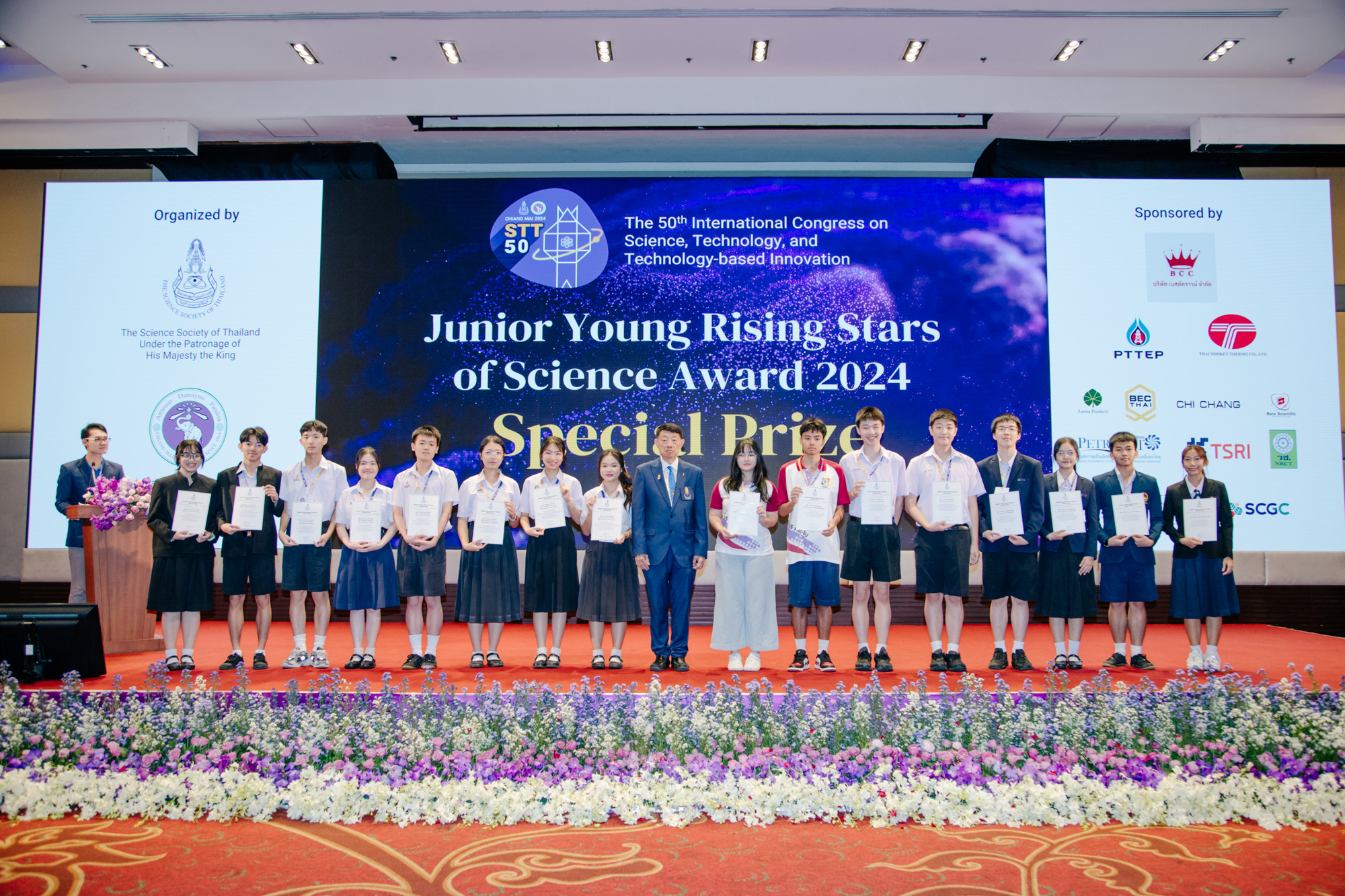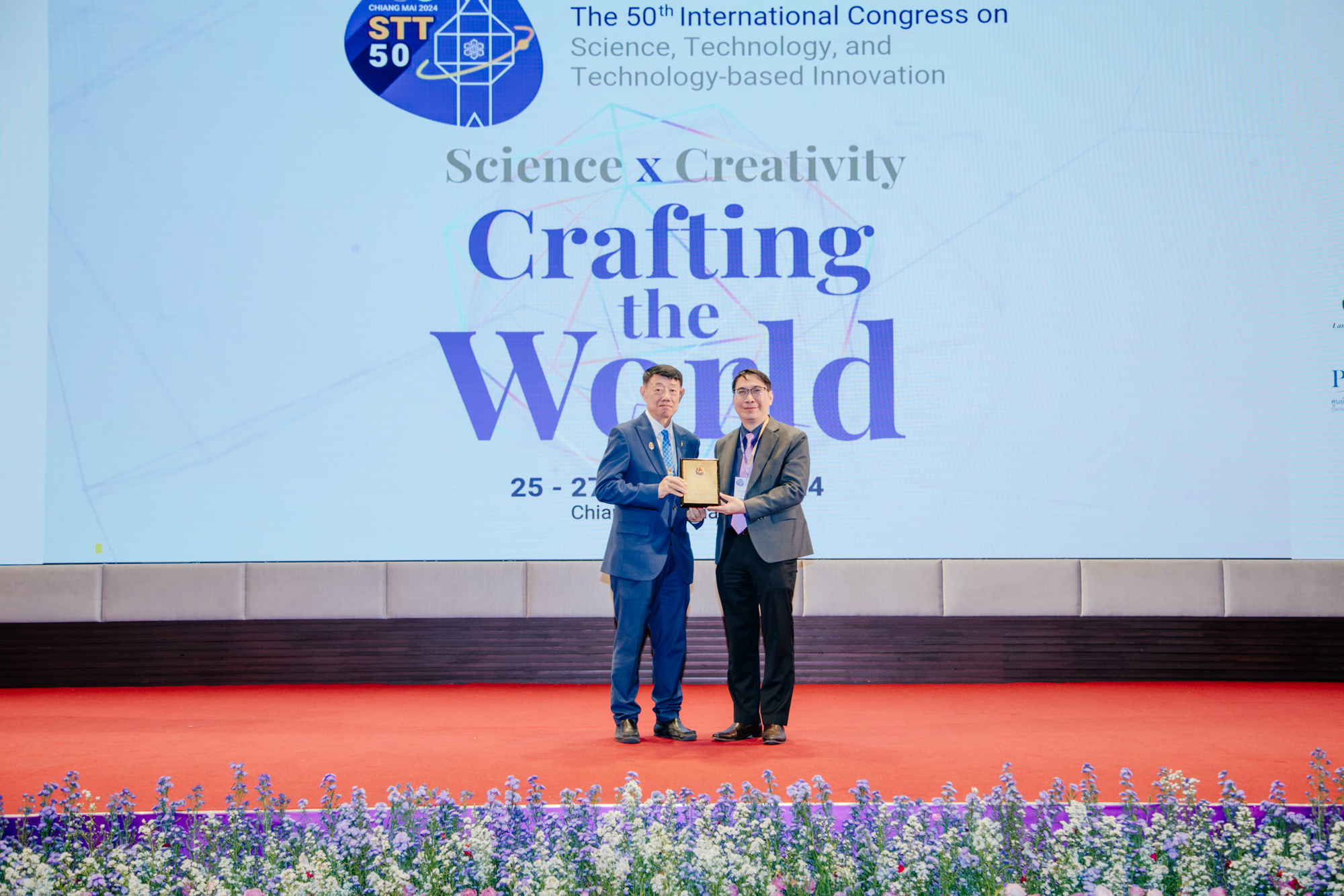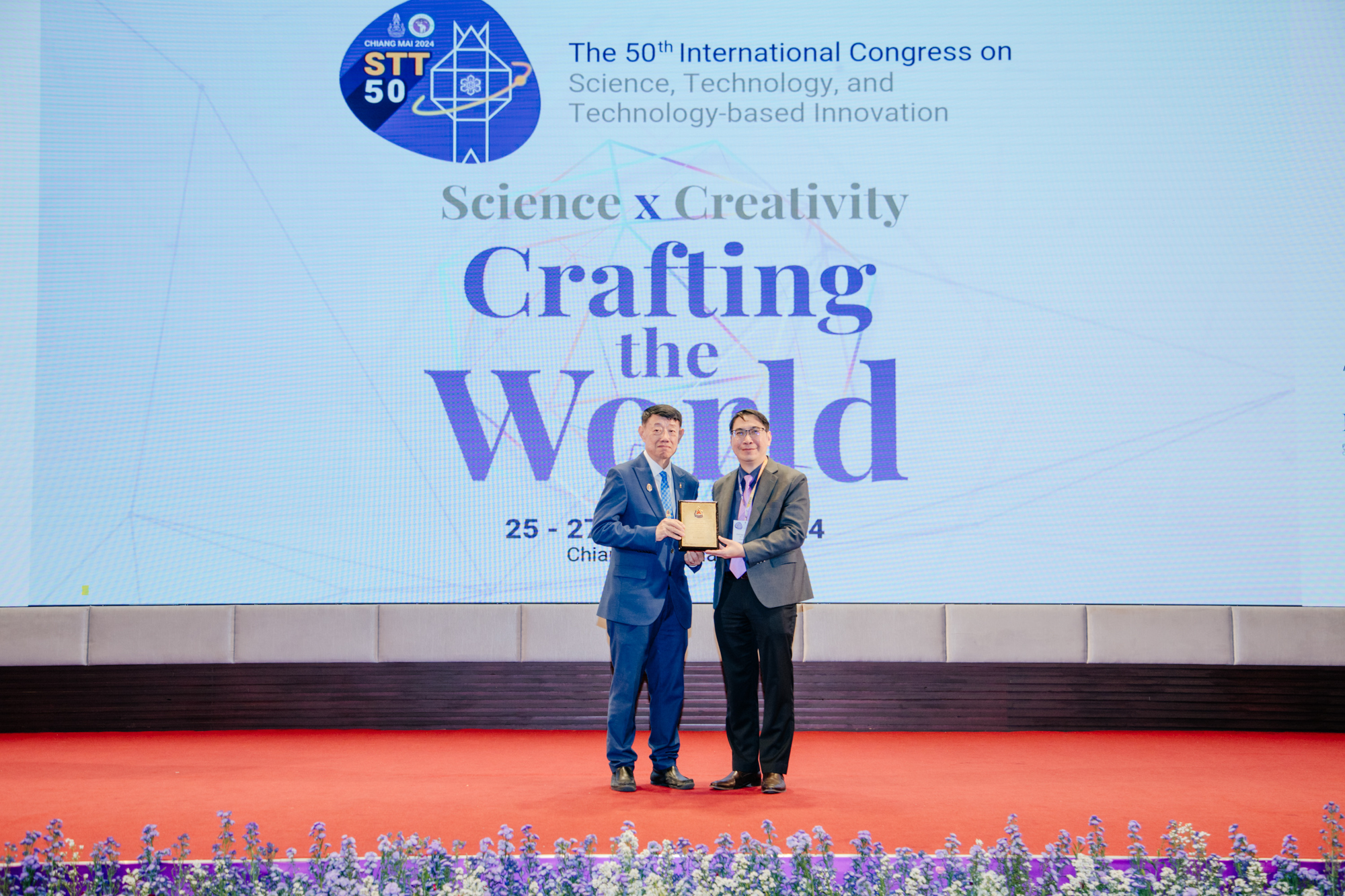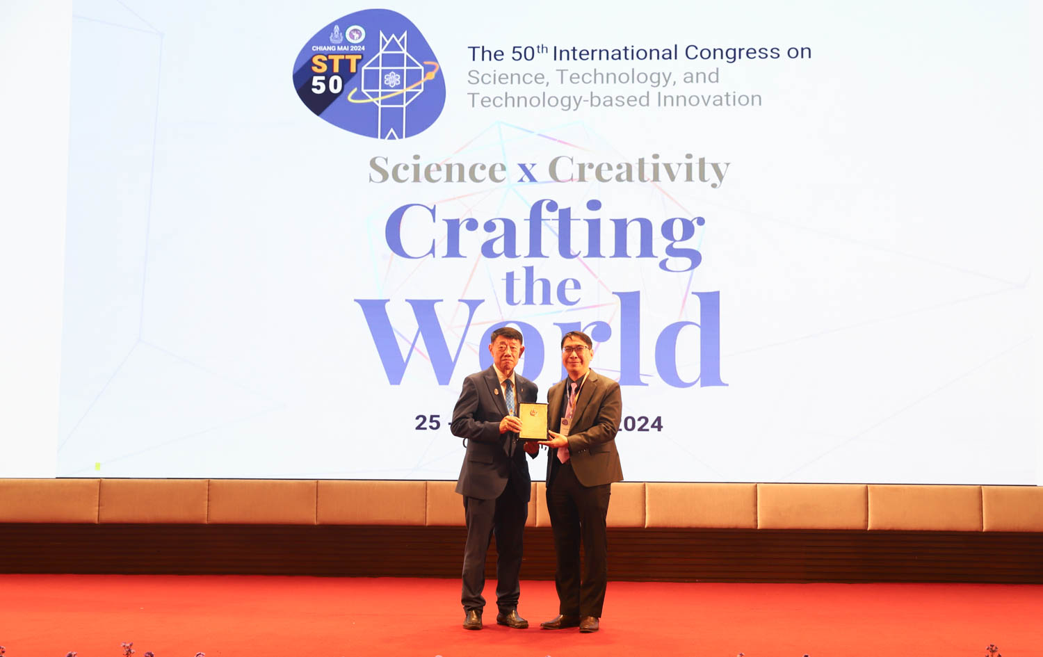 วันที่ 27 พฤศจิกายน 2567 รองศาสตราจารย์ ดร.ธณัฏฐ์คุณ มงคลอัศวรัตน์ นายกสมาคมวิทยาศาสตร์แห่งประเทศไทย ในพระบรมราชูปถัมภ์ พร้อมด้วยศาสตราจารย์ ดร.ประณัฐ โพธิยะราช ประธานการจัดการประชุมวิชาการนานาชาติด้านวิทยาศาสตร์ เทคโนโลยี และนวัตกรรมทางเทคโนโลยี ครั้งที่ 50 และศาสตราจารย์ (เชี่ยวชาญพิเศษ) ดร.ธรณินทร์ ไชยเรืองศรี คณบดีคณะวิทยาศาสตร์ มหาวิทยาลัยเชียงใหม่ ให้เกียรติเป็นประธานในพิธีปิดและมอบรางวัลการประชุมวิชาการนานาชาติด้านวิทยาศาสตร์ เทคโนโลยี และนวัตกรรมทางเทคโนโลยี ครั้งที่ 50 (The 50th International Congress on Science, Technology and Technology-based Innovation (STT50)) "Science x Creativity : Crafting the World" หรือ วิทยาศาสตร์ X การสร้างสรรค์ : รังสรรค์โลก ซึ่งจัดขึ้นระหว่างวันที่ 25-27 พฤศจิกายน 2567 ณ โรงแรมดิเอ็มเพรส จังหวัดเชียงใหม่ โดยมีผู้เข้าร่วมงานมากกว่า 1 พันคน จาก 20 ประเทศทั่วโลก ภายในงานมีการบรรยายพิเศษจากนักวิทยาศาสตร์ชั้นนำ ตลอดจนการนำเสนอผลงานวิชาการแบบ Oral presentation 200 เรื่อง และการนำเสนอแบบ Poster 300 เรื่อง ในหลากหลายสาขา อาทิ สาขาฟิสิกส์ วิทยาศาสตร์ชีวภาพ เคมี คณิตศาสตร์ พลังงานและสิ่งแวดล้อม และอาหารและวิทยาศาสตร์การเกษตร