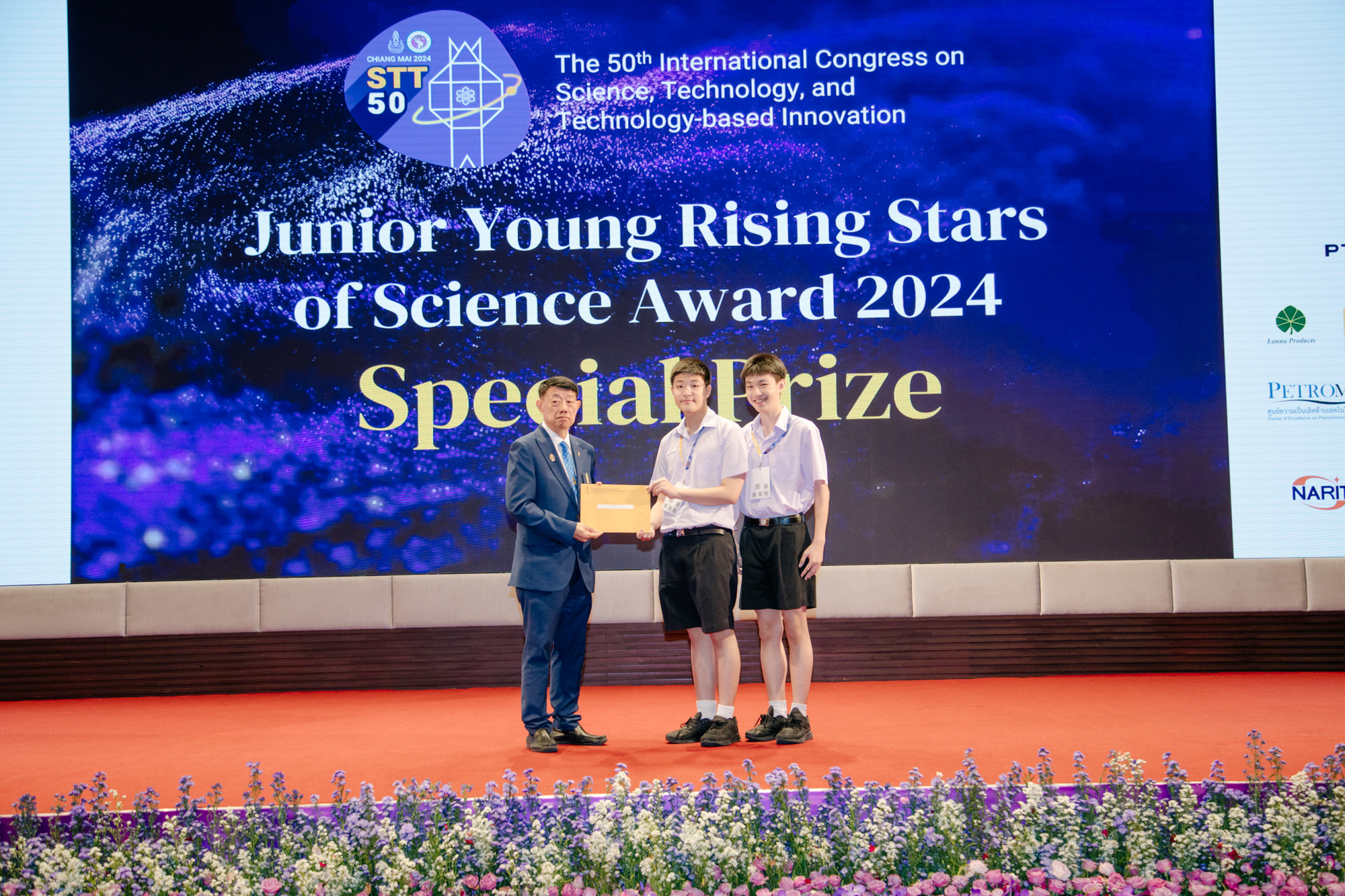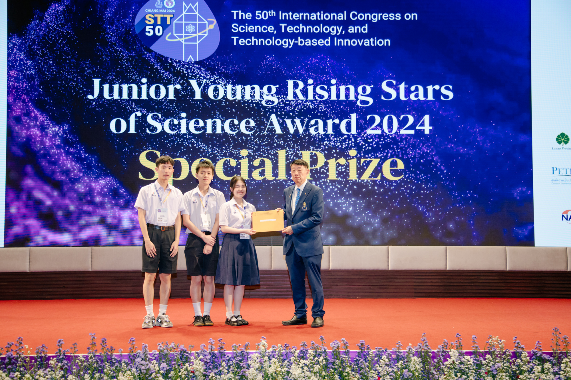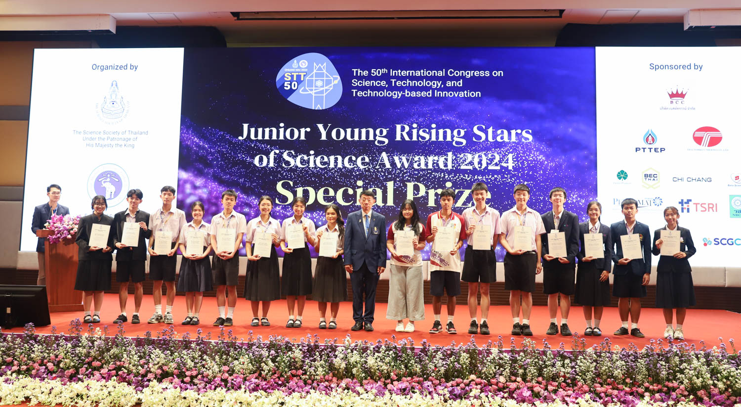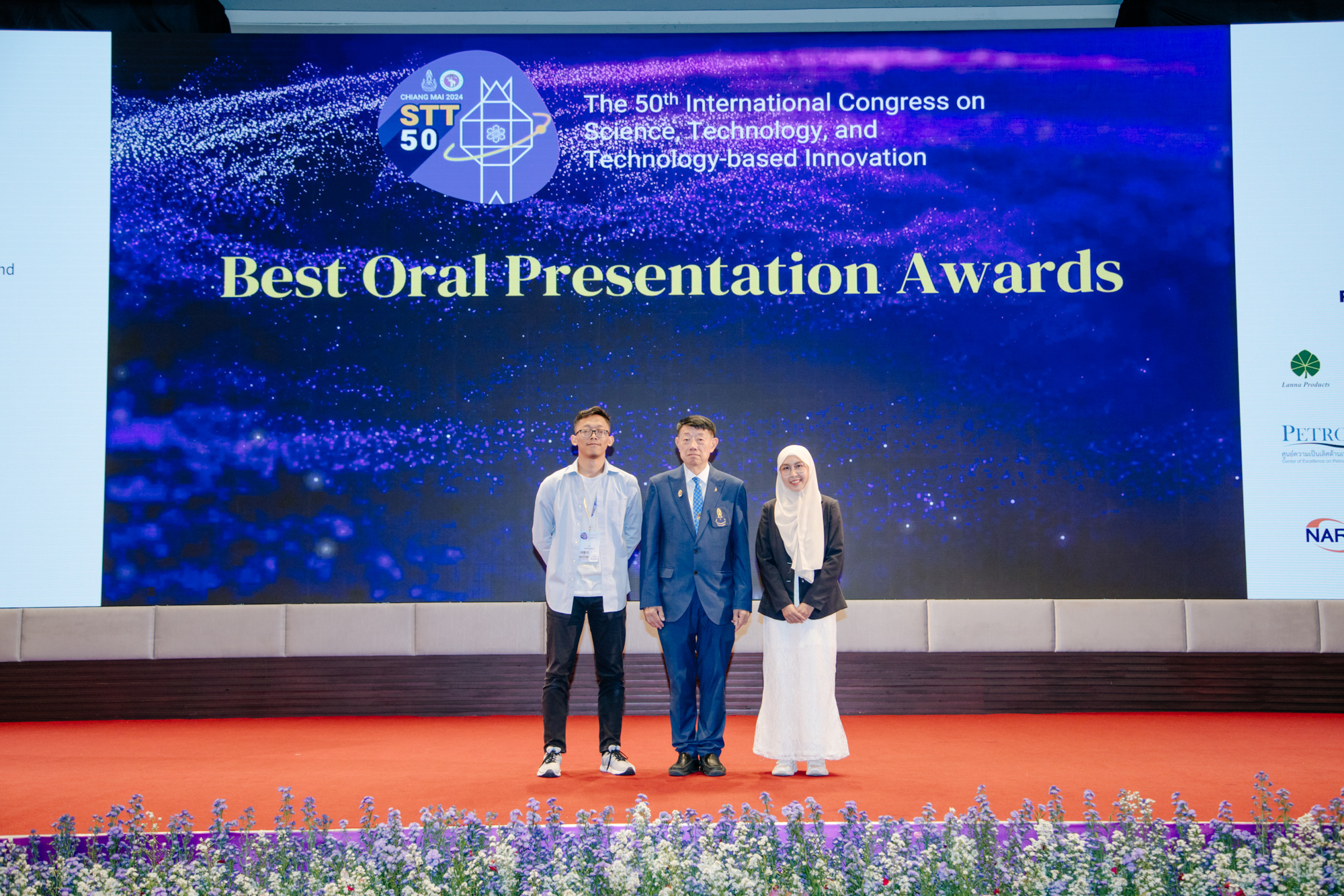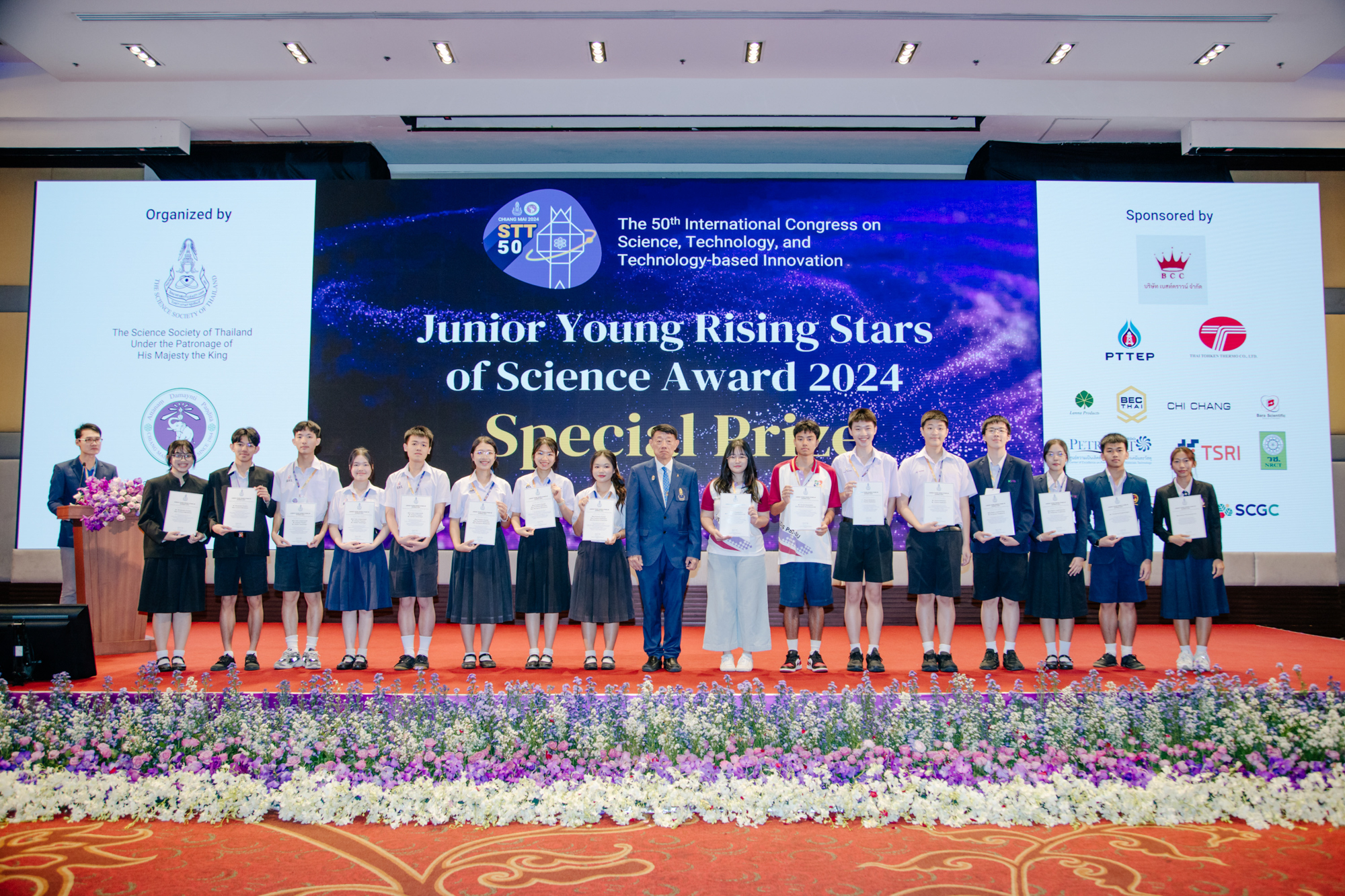 วันที่ 27 พฤศจิกายน 2567 รองศาสตราจารย์ ดร.ธณัฏฐ์คุณ มงคลอัศวรัตน์ นายกสมาคมวิทยาศาสตร์แห่งประเทศไทย ในพระบรมราชูปถัมภ์ พร้อมด้วยศาสตราจารย์ ดร.ประณัฐ โพธิยะราช ประธานการจัดการประชุมวิชาการนานาชาติด้านวิทยาศาสตร์ เทคโนโลยี และนวัตกรรมทางเทคโนโลยี ครั้งที่ 50 และศาสตราจารย์ (เชี่ยวชาญพิเศษ) ดร.ธรณินทร์ ไชยเรืองศรี คณบดีคณะวิทยาศาสตร์ มหาวิทยาลัยเชียงใหม่ ให้เกียรติเป็นประธานในพิธีปิดและมอบรางวัลการประชุมวิชาการนานาชาติด้านวิทยาศาสตร์ เทคโนโลยี และนวัตกรรมทางเทคโนโลยี ครั้งที่ 50 (The 50th International Congress on Science, Technology and Technology-based Innovation (STT50)) "Science x Creativity : Crafting the World" หรือ วิทยาศาสตร์ X การสร้างสรรค์ : รังสรรค์โลก ซึ่งจัดขึ้นระหว่างวันที่ 25-27 พฤศจิกายน 2567 ณ โรงแรมดิเอ็มเพรส จังหวัดเชียงใหม่ โดยมีผู้เข้าร่วมงานมากกว่า 1 พันคน จาก 20 ประเทศทั่วโลก ภายในงานมีการบรรยายพิเศษจากนักวิทยาศาสตร์ชั้นนำ ตลอดจนการนำเสนอผลงานวิชาการแบบ Oral presentation 200 เรื่อง และการนำเสนอแบบ Poster 300 เรื่อง ในหลากหลายสาขา อาทิ สาขาฟิสิกส์ วิทยาศาสตร์ชีวภาพ เคมี คณิตศาสตร์ พลังงานและสิ่งแวดล้อม และอาหารและวิทยาศาสตร์การเกษตร