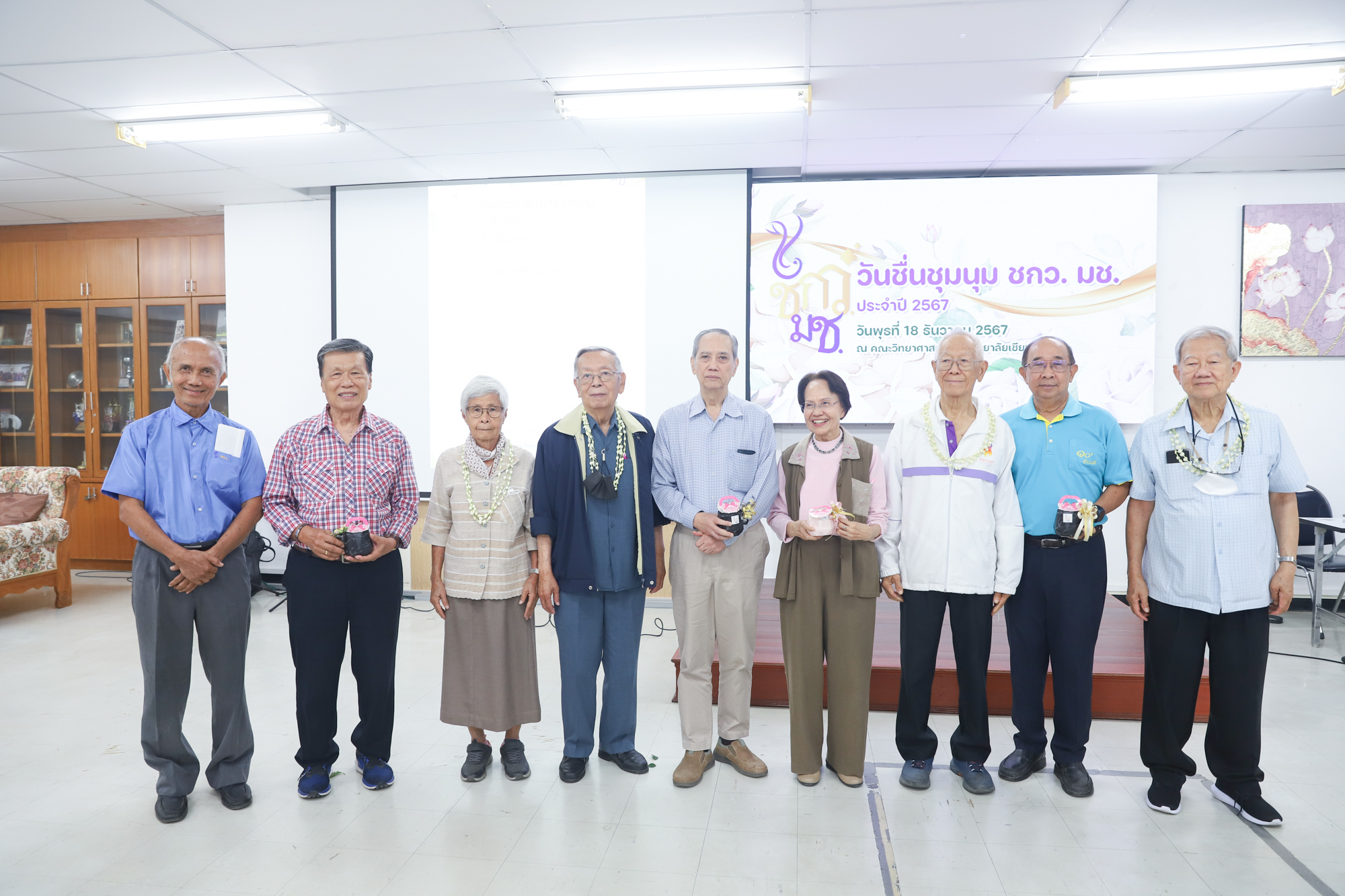 ชมรมผู้เกษียณคณะวิทยาศาสตร์ (ชกว.) จัดงานวันชื่นชุมนุม ชกว. มช. ประจำปี 2567 เพื่อให้ผู้เกษียณคณะวิทยาศาสตร์ได้พบปะพุดคุย กระชับความสัมพันธ์ และทำกิจกรรมสันทนาการต่างๆ ร่วมกัน เมื่อวันพุธที่ 18 ธันวาคม 2567 ณ ห้องสัมมนา ชั้น 2 อาคาร 40 ปี คณะวิทยาศาสตร์ บรรยากาศในงานเป็นไปอย่างอบอุ่น มีผู้เกษียณอายุงานเข้าร่วมงานอย่างคึกคักและชื่นมื่น