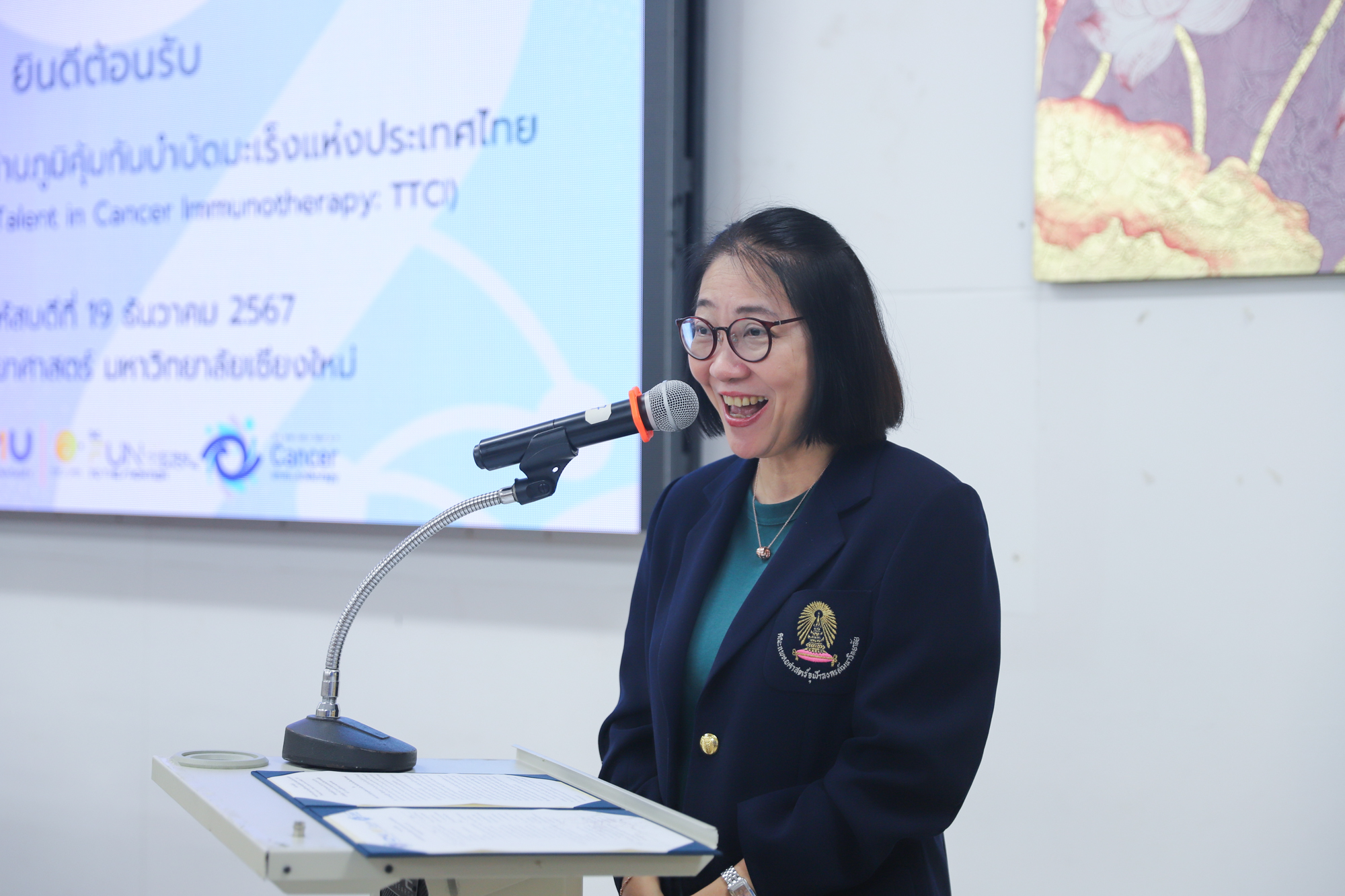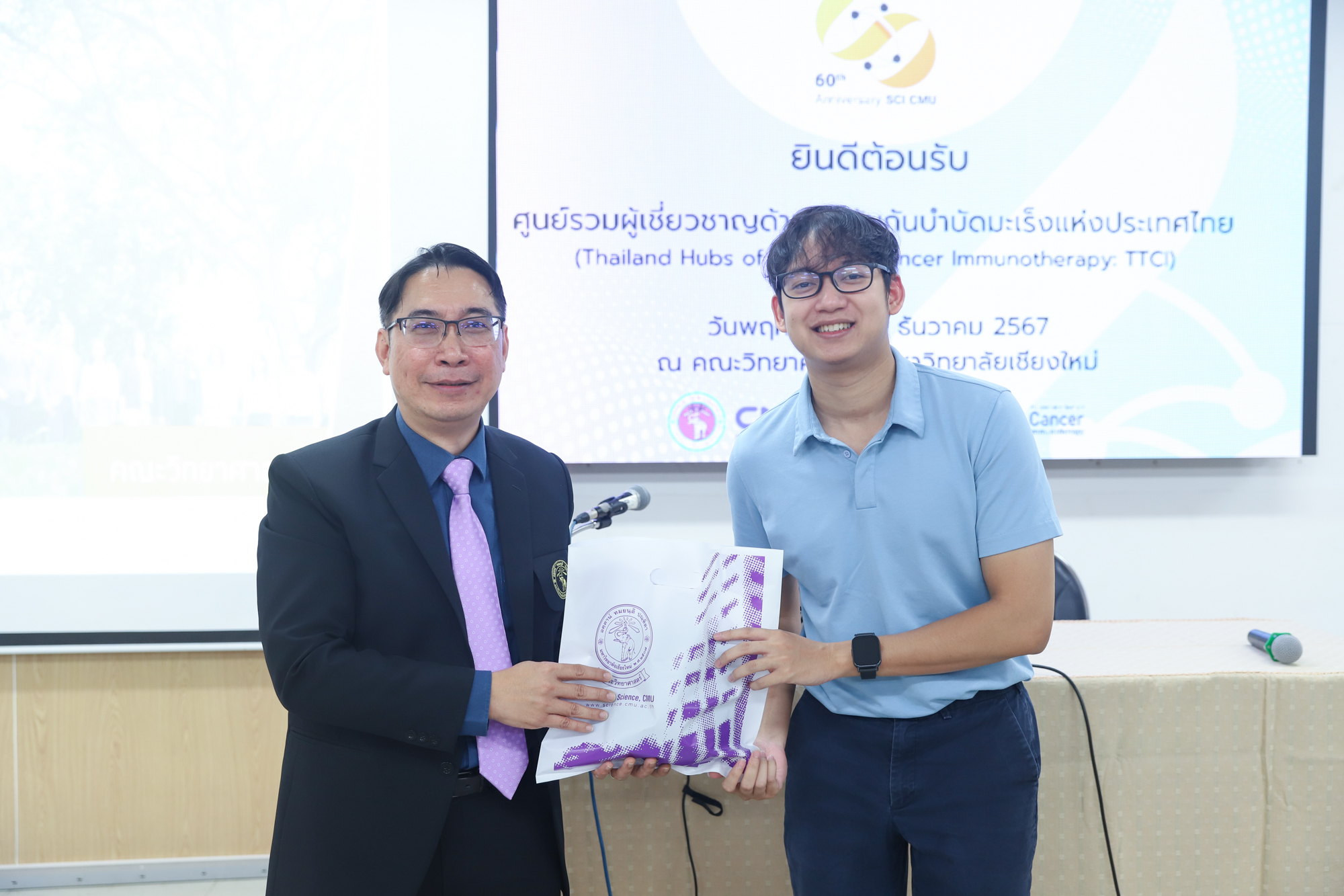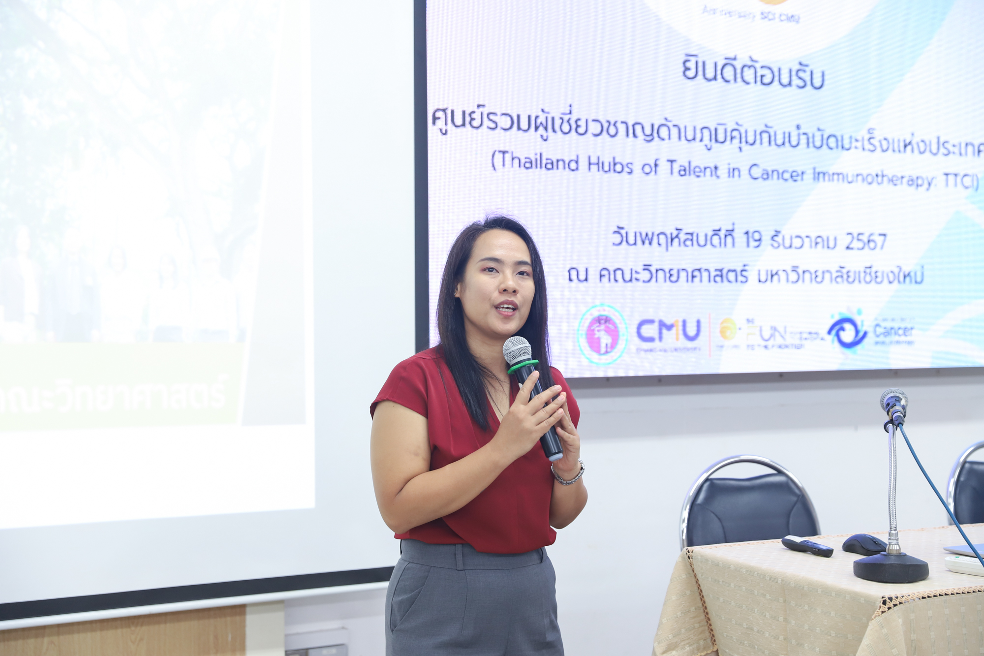 วันที่ 19 ธันวาคม 2567 ศาสตราจารย์ (เชี่ยวชาญพิเศษ) ดร.ธรณินทร์ ไชยเรืองศรี คณบดีคณะวิทยาศาสตร์ พร้อมด้วย ผู้ช่วยศาสตราจารย์ ดร.สุเมธ สกุลเสริมสุข ผู้ช่วยคณบดีฝ่ายวิจัยและวิเทศสัมพันธ์ และ ผู้ช่วยศาสตราจารย์ ดร.โยธิน ฉิมอุปละ ร่วมให้การต้อนรับคณะทำงานจากศูนย์รวมผู้เชี่ยวชาญด้านภูมิคุ้มกันบำบัดมะเร็งแห่งประเทศไทย (Thailand Hubs of Talent in Cancer Immunotherapy: TTCI) นำโดย ศาสตราจารย์ ดร.พญ.ณัฏฐิยา หิรัญกาญจน์ หัวหน้าศูนย์รวมผู้เชี่ยวชาญฯ และสมาชิกจากคณะแพทยศาสตร์ ศิริราชพยาบาล มหาวิทยาลัยมหิดล, คณะแพทยศาสตร์ มหาวิทยาลัยขอนแก่น, คณะแพทยศาสตร์ มหาวิทยาลัยสงขลานครินทร์, คณะแพทยศาสตร์ มหาวิทยาลัยเชียงใหม่, คณะวิทยาศาสตร์ มหาวิทยาลัยเชียงใหม่ คณาจารย์ นักวิจัย และนักศึกษา ในโอกาสเข้าเยี่ยมคารวะคณบดีคณะวิทยาศาสตร์ และหารือความร่วมมือด้านการวิจัยในสาขา Biology, Microbiology และ Biochemistry โดยมี รองศาสตราจารย์ ดร.อุษรา ปัญญา หัวหน้ากลุ่มวิจัยพันธุวิศวกรรมเซลล์เพื่อการรักษาโรคมะเร็ง และนักวิจัยสังกัดภาควิชาชีววิทยา คณะวิทยาศาสตร์ มหาวิทยาลัยเชียงใหม่ เป็นผู้ประสานงานหลักกับศูนย์รวมผู้เชี่ยวชาญฯ และได้มีการเยี่ยมชมเครื่องมือวิทยาศาสตร์ขั้นสูง ณ หน่วยเครื่องมือวิทยาศาสตร์ขั้นสูง (Advanced Scientific Instruments: ASci) ชั้น 1 อาคารปฏิบัติการกลาง คณะวิทยาศาสตร์ มหาวิทยาลัยเชียงใหม่