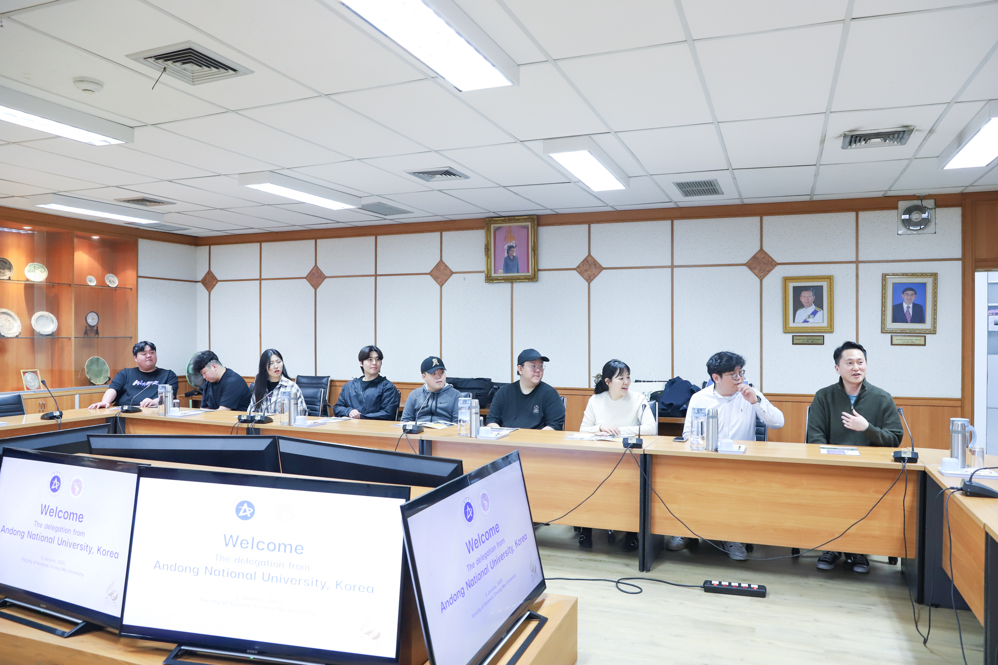 ศาสตราจารย์ (เชี่ยวชาญพิเศษ) ดร.ธรณินทร์ ไชยเรืองศรี คณบดีคณะวิทยาศาสตร์ พร้อมด้วยผู้บริหาร และคณาจารย์จากภาควิชาชีววิทยา ร่วมให้การต้อนรับคณาจารย์และนักศึกษาจาก Andong National University ประเทศเกาหลีใต้ นำโดย Prof.Dr.Eui-Joon Kil ในโอกาสเข้าหารือความร่วมมือทางวิชาการ และแจ้งรายละเอียดการประชุมร่วมระดับบัณฑิตศึกษาระหว่างทั้งสองสถาบัน ในวันที่ 3 มกราคม 2568 ณ บริเวณรับรอง ชั้น 2 อาคาร 40 ปี คณะวิทยาศาสตร์