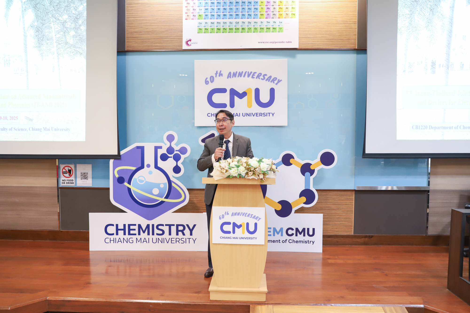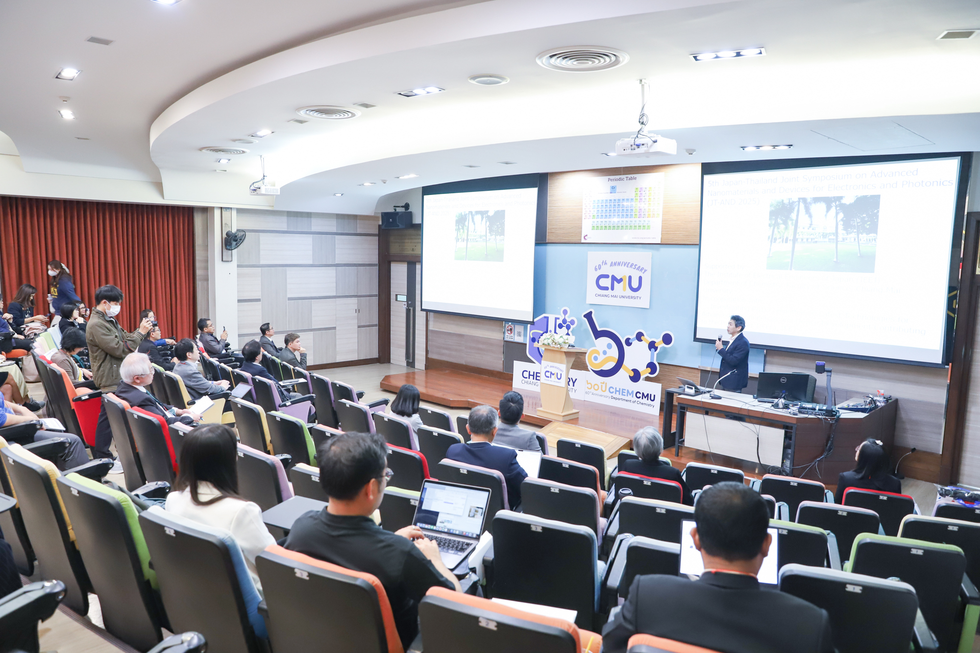 ศาสตราจารย์ (เชี่ยวชาญพิเศษ) ดร.ธรณินทร์ ไชยเรืองศรี คณบดีคณะวิทยาศาสตร์ ให้เกียรติเป็นประธานเปิดงานประชุมวิชาการ 5th Japan-Thailand Joint Symposium on Advanced Nanomaterials and Devices for Electronics and Photonics (JT-AND 2025) ในวันที่ 9 มกราคม 2568 ณ ห้องบรรยาย CB1220 อาคารเคมี 1 ภาควิชาเคมี คณะวิทยาศาสตร์ มหาวิทยาลัยเชียงใหม่ ซึ่งกำหนดจัดต่อเนื่องไปถึงวันที่ 10 มกราคม 2568