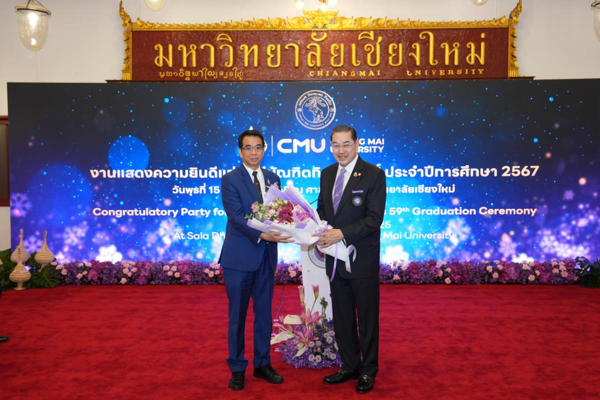ผู้บริหารและนักศึกษาเก่าคณะวิทยาศาสตร์เข้าร่วมงานแสดงความยินดีกับผู้ได้รับพระราชทานปริญญากิตติมศักดิ์ ในงานพิธีพระราชทานปริญญาบัตร ครั้งที่ 59