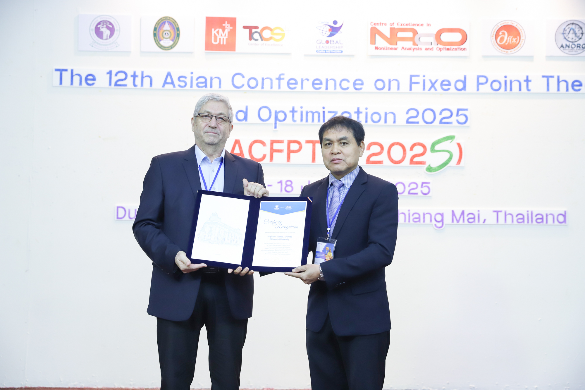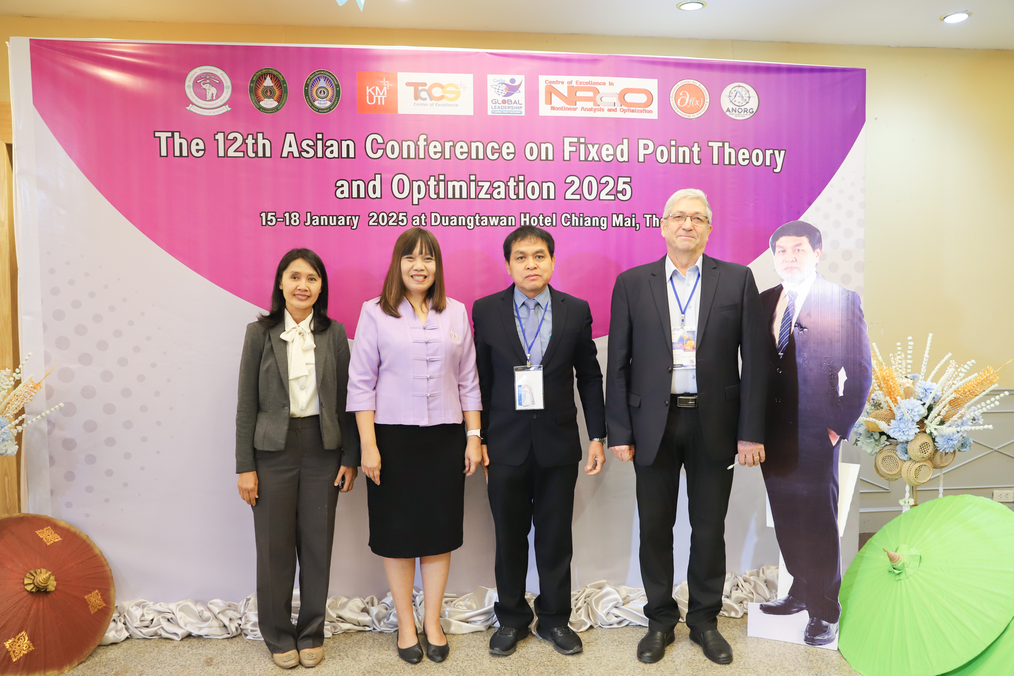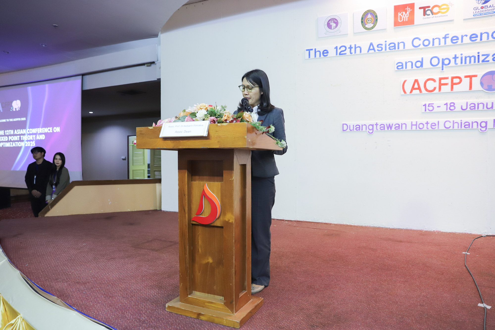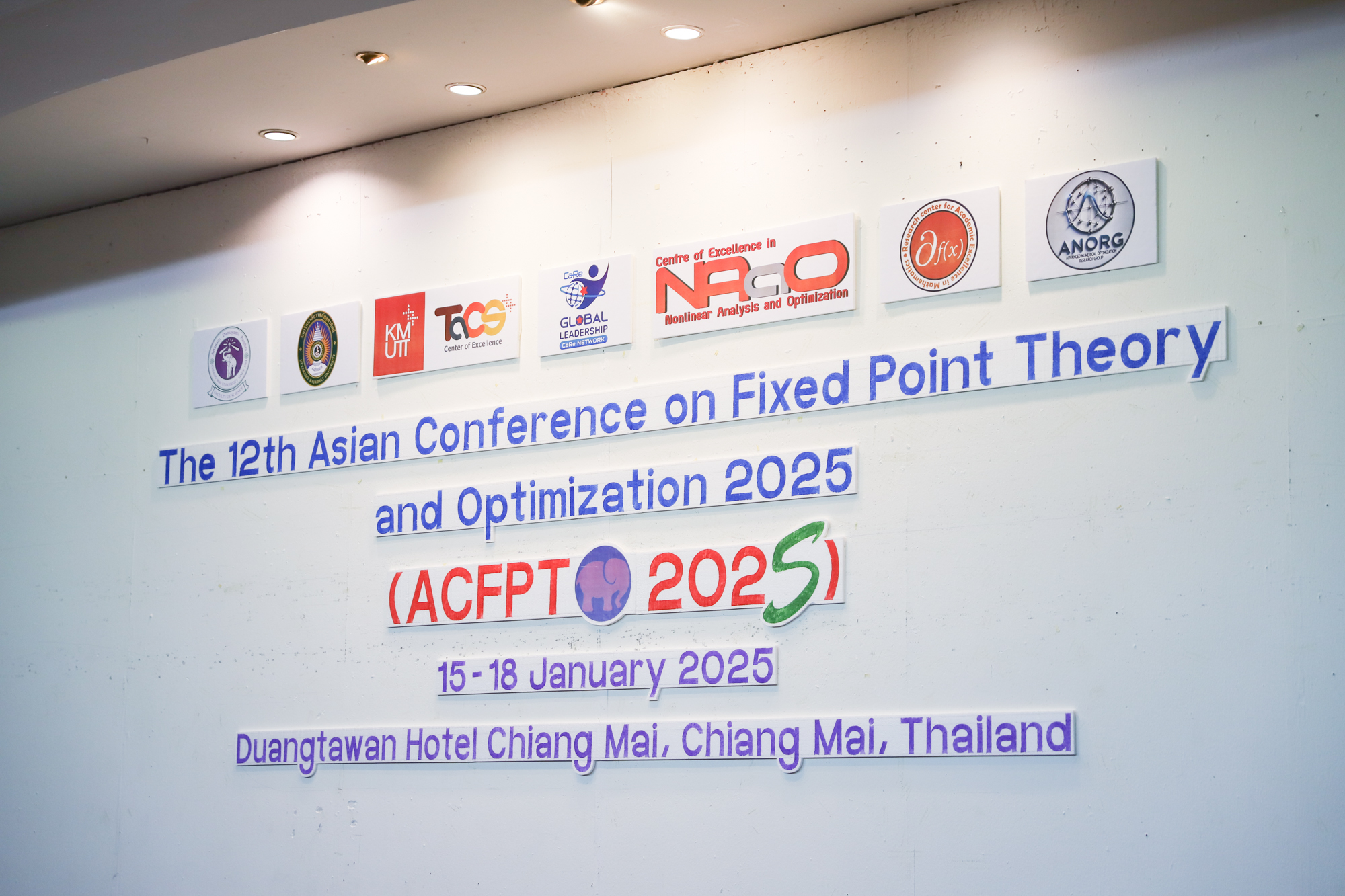 ภาควิชาคณิตศาสตร์ คณะวิทยาศาสตร์ เป็นเจ้าภาพจัดการประชุมวิชาการระดับนานาชาติ The 12th Asian Conference on Fixed Point Theory and Optimization 2025 (ACFPTO2025) โดยได้รับเกียรติจาก รองศาสตราจารย์ ดร.วินิตา บุณโยดม รองอธิการบดีมหาวิทยาลัยเชียงใหม่ เป็นประธานเปิดงาน ผู้ช่วยศาสตราจารย์ ดร.ธนะศักดิ์ หมวกทองหลาง หัวหน้าภาควิชาคณิตศาสตร์ คณะวิทยาศาสตร์ กล่าวรายงานความเป็นมาของการจัดงาน และรองศาสตราจารย์ ดร.เกศรินทร์ พิมรักษา รองคณบดีฝ่ายวิจัยและวิเทศสัมพันธ์ คณะวิทยาศาสตร์ กล่าวต้อนรับผู้เข้าร่วมงาน ในวันที่ 16 มกราคม 2568 ณ โรงแรมดวงตะวัน จังหวัดเชียงใหม่ ซึ่งงานจะจัดต่อเนื่องไปจนถึงวันที่ 18 มกราคม 2568