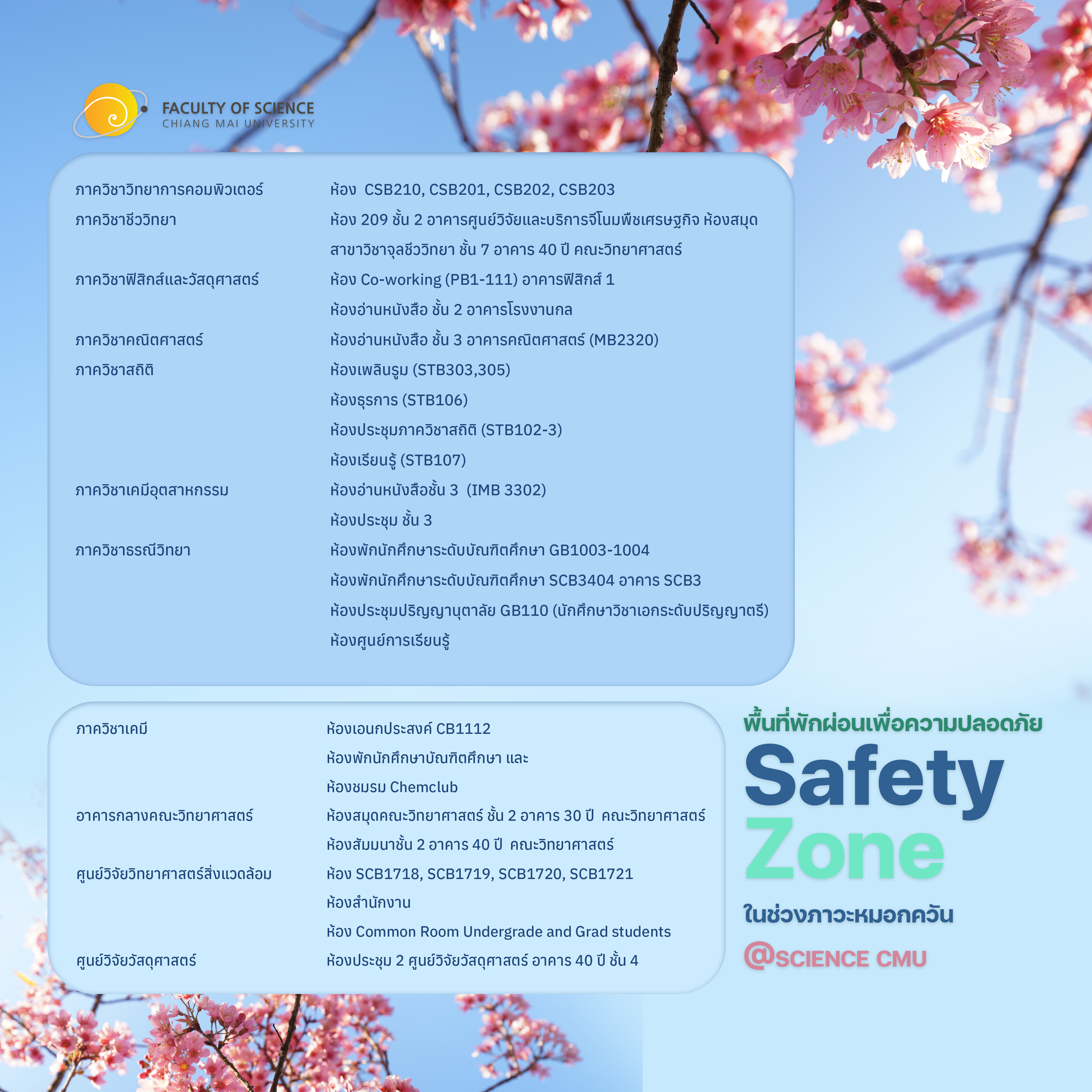 ประกาศพื้นที่พักผ่อนเพื่อความปลอดภัย Safety Zone ในช่วงปัญหาหมอกควัน @SCIENCE CMU