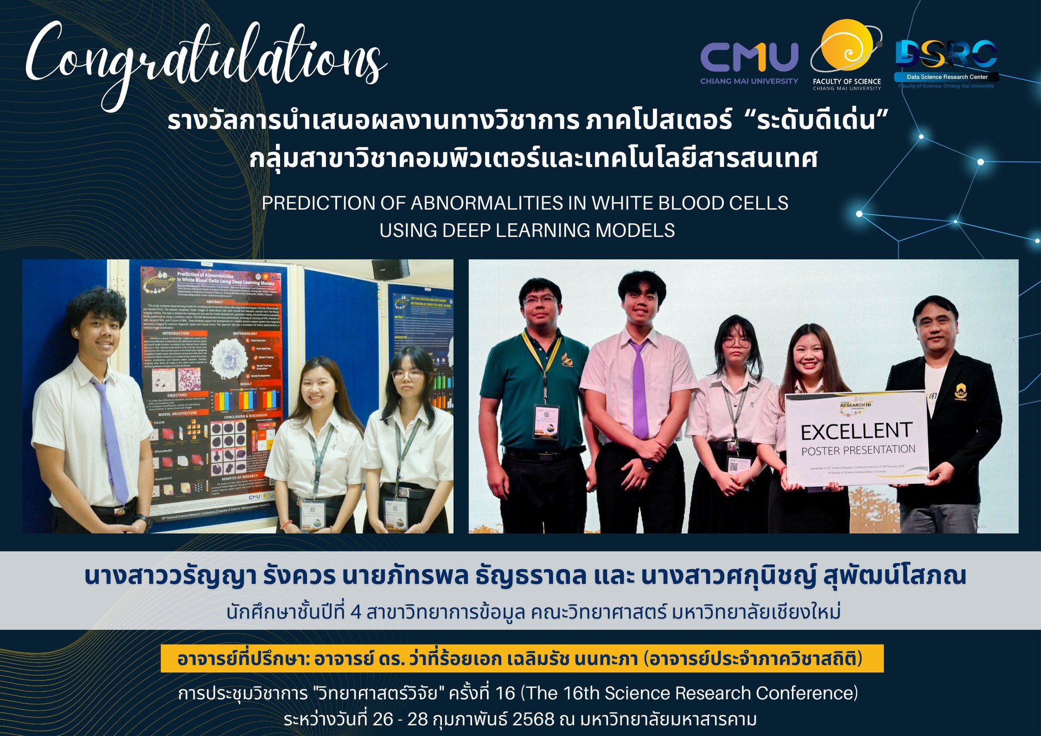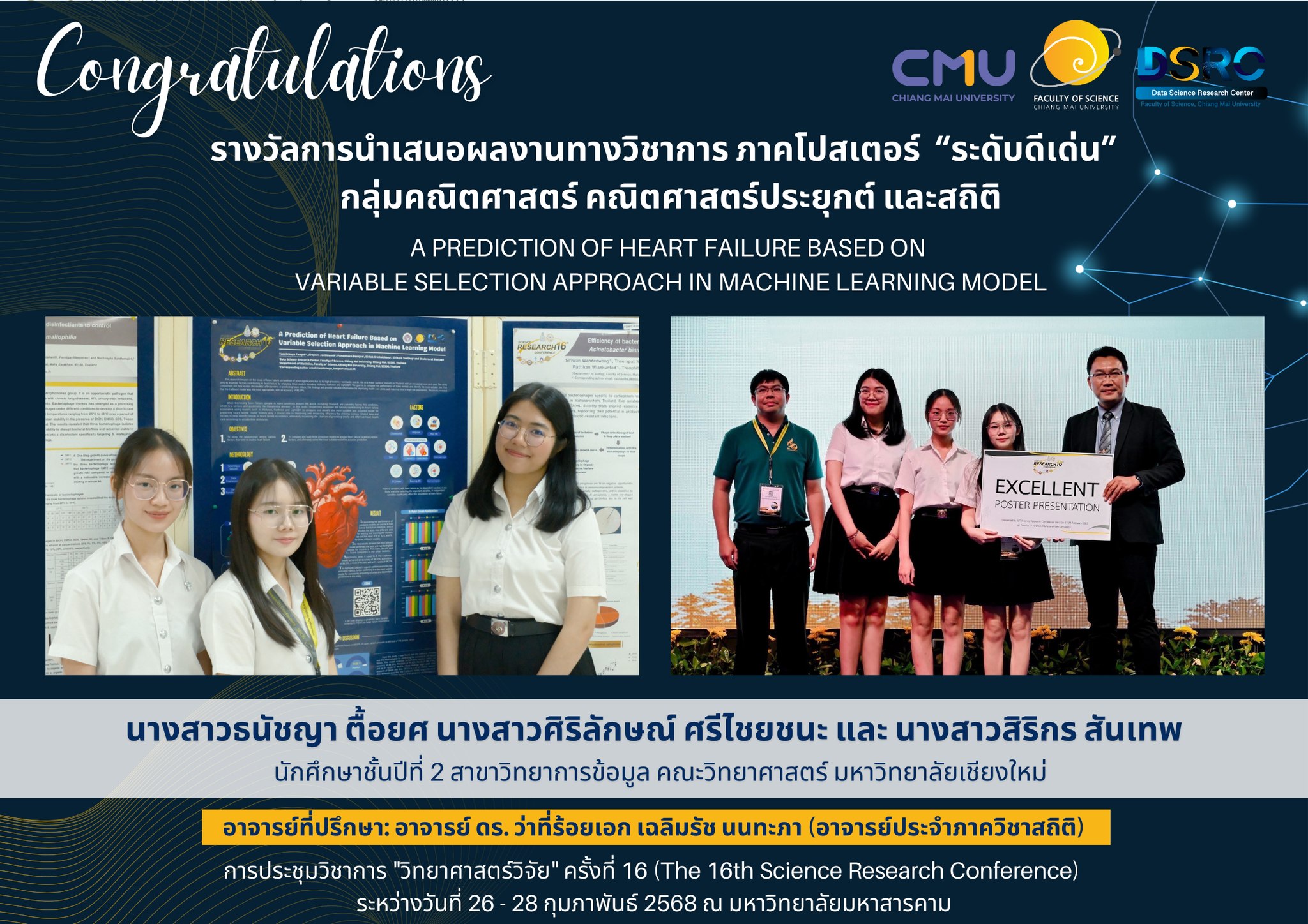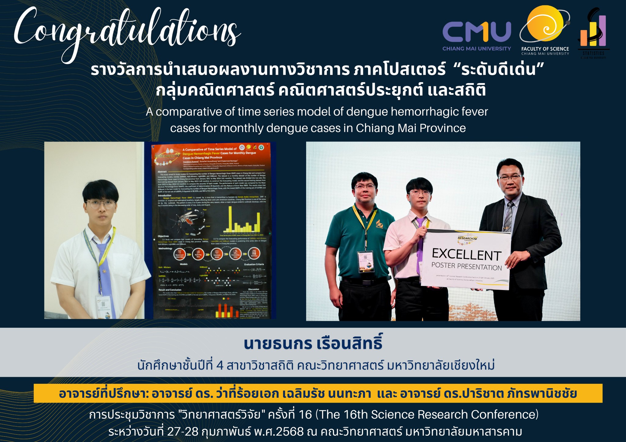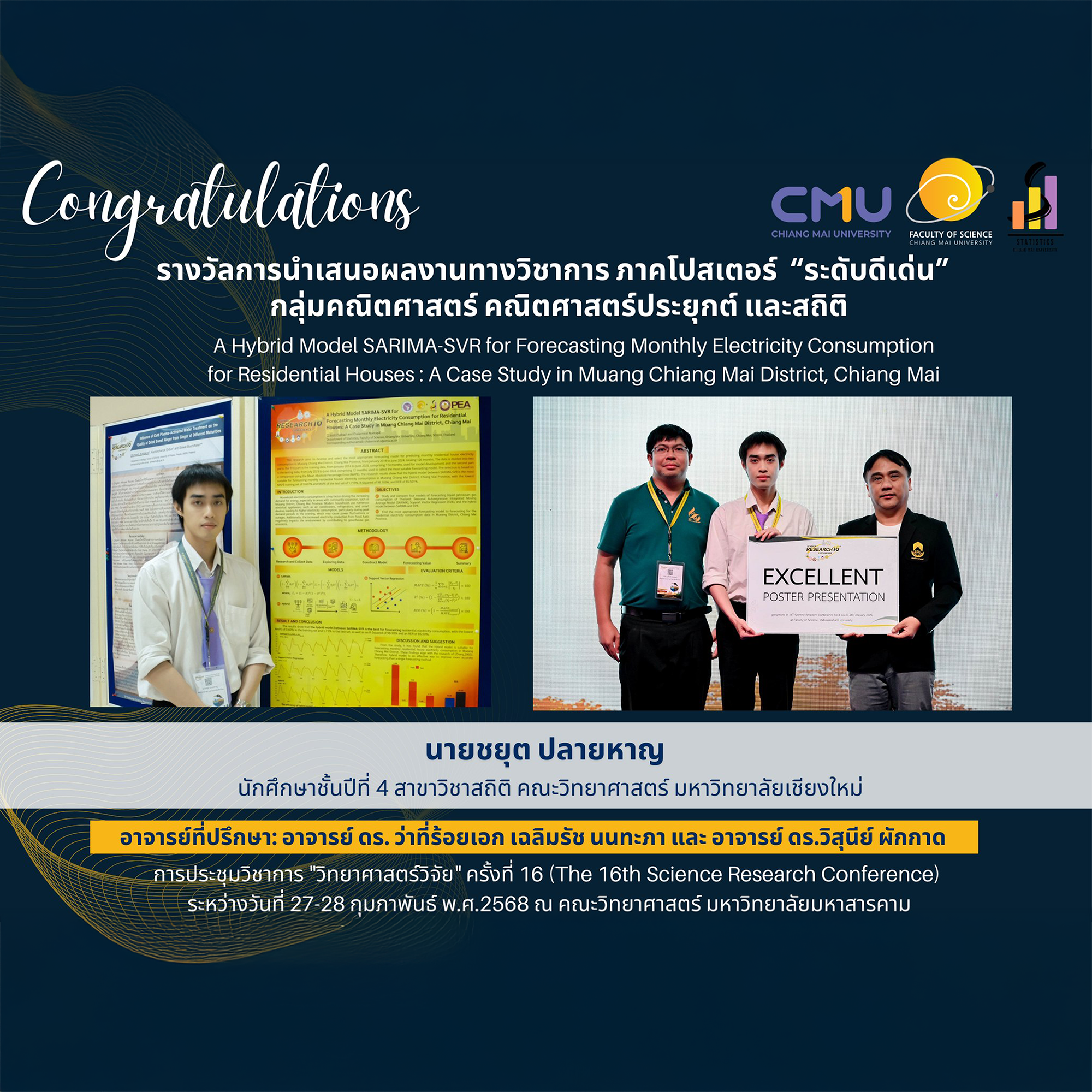 รางวัลการประกวดนำเสนอผลงานทางวิชาการ (ภาคโปสเตอร์) "รางวัลระดับดีเด่น (Excellent)" กลุ่มคณิตศาสตร์ คณิตศาสตร์ประยุกต์ และสถิติ