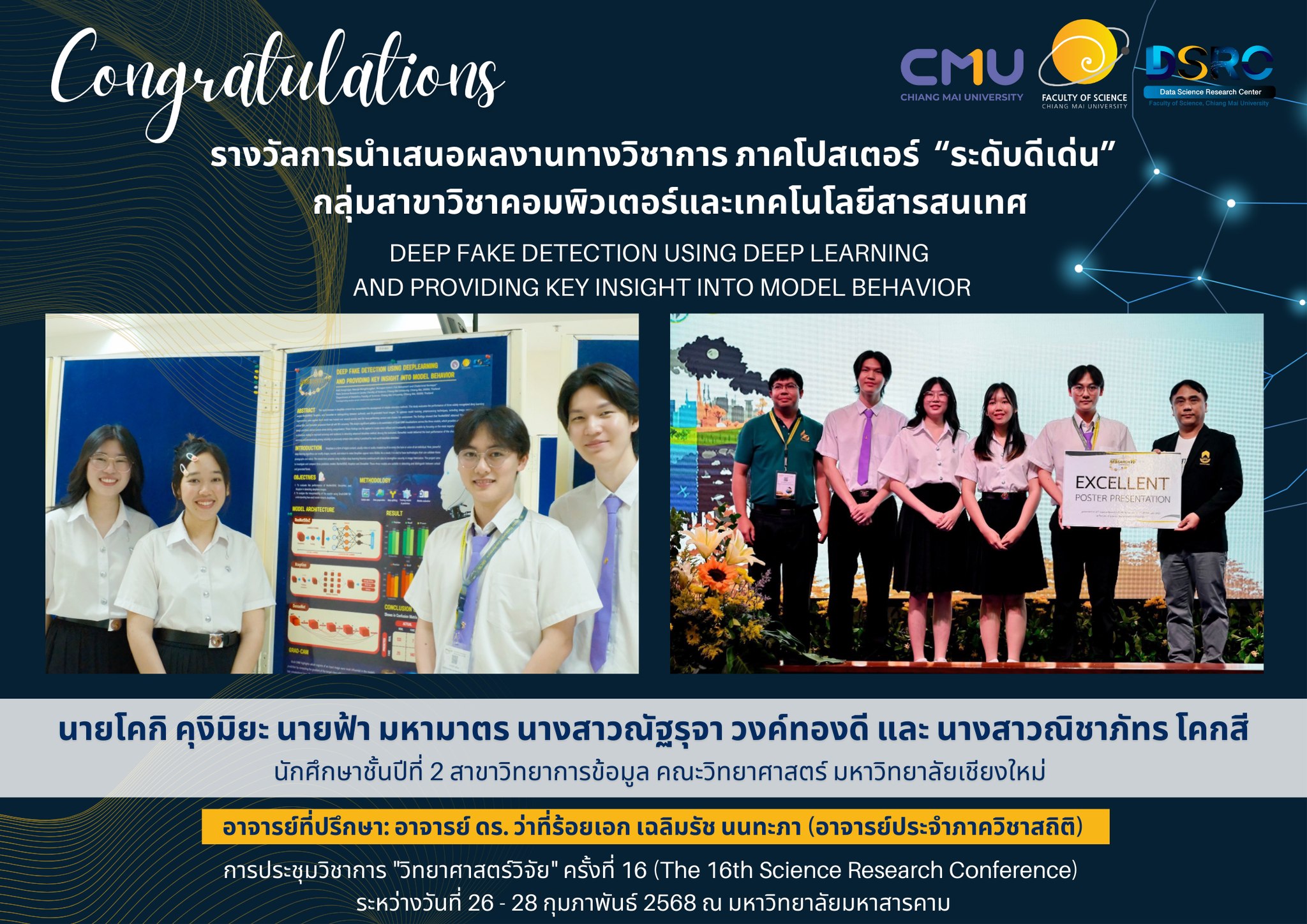 นักศึกษาคณะวิทยาศาสตร์ ได้รับรางวัลในการประชุมวิชาการ "วิทยาศาสตร์วิจัย" ครั้งที่ 16 (The 16th Science Research Conference) ระหว่างวันที่ 27-28 กุมภาพันธ์ พ.ศ.2568 ณ คณะวิทยาศาสตร์ มหาวิทยาลัยมหาสารคาม ดังนี้