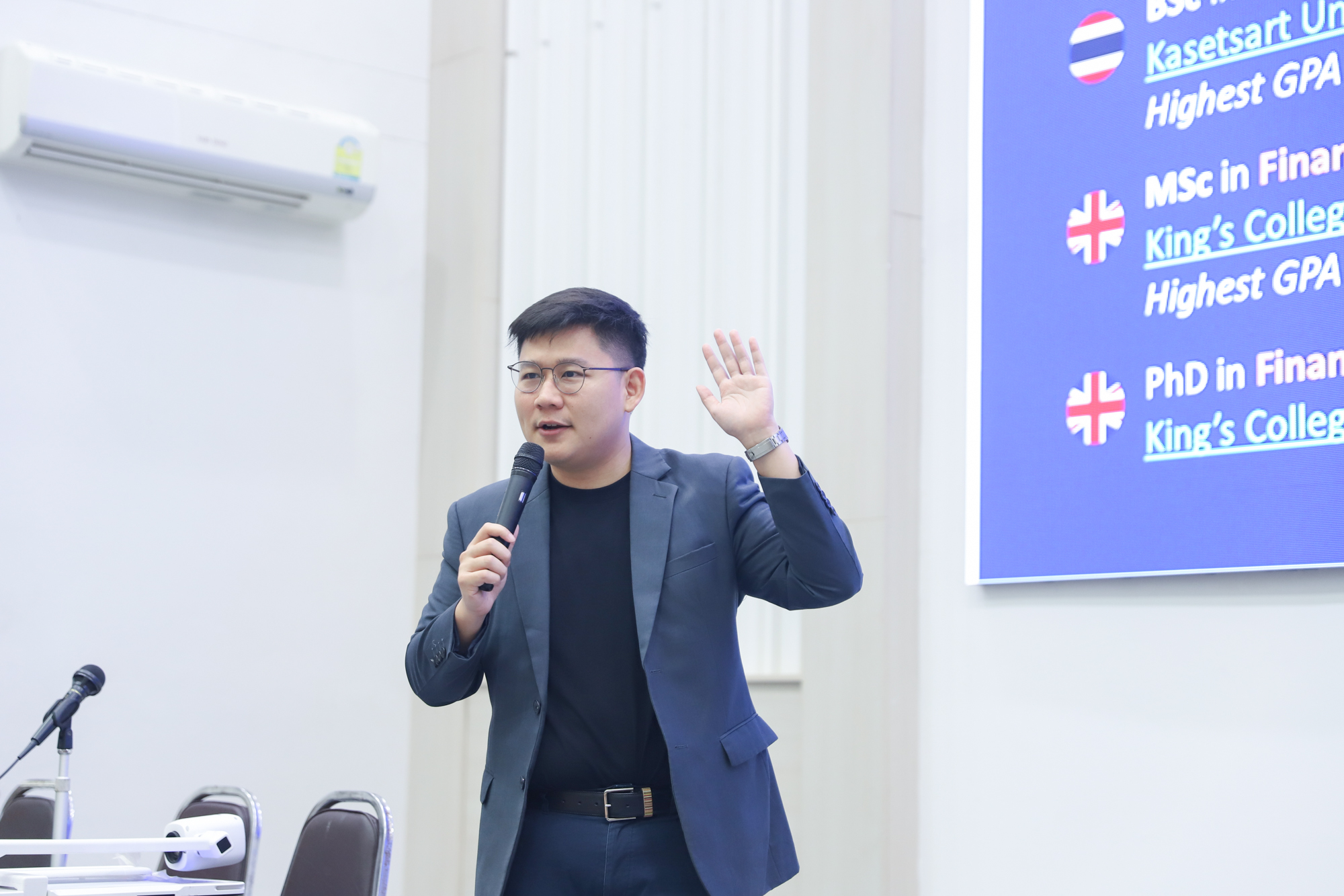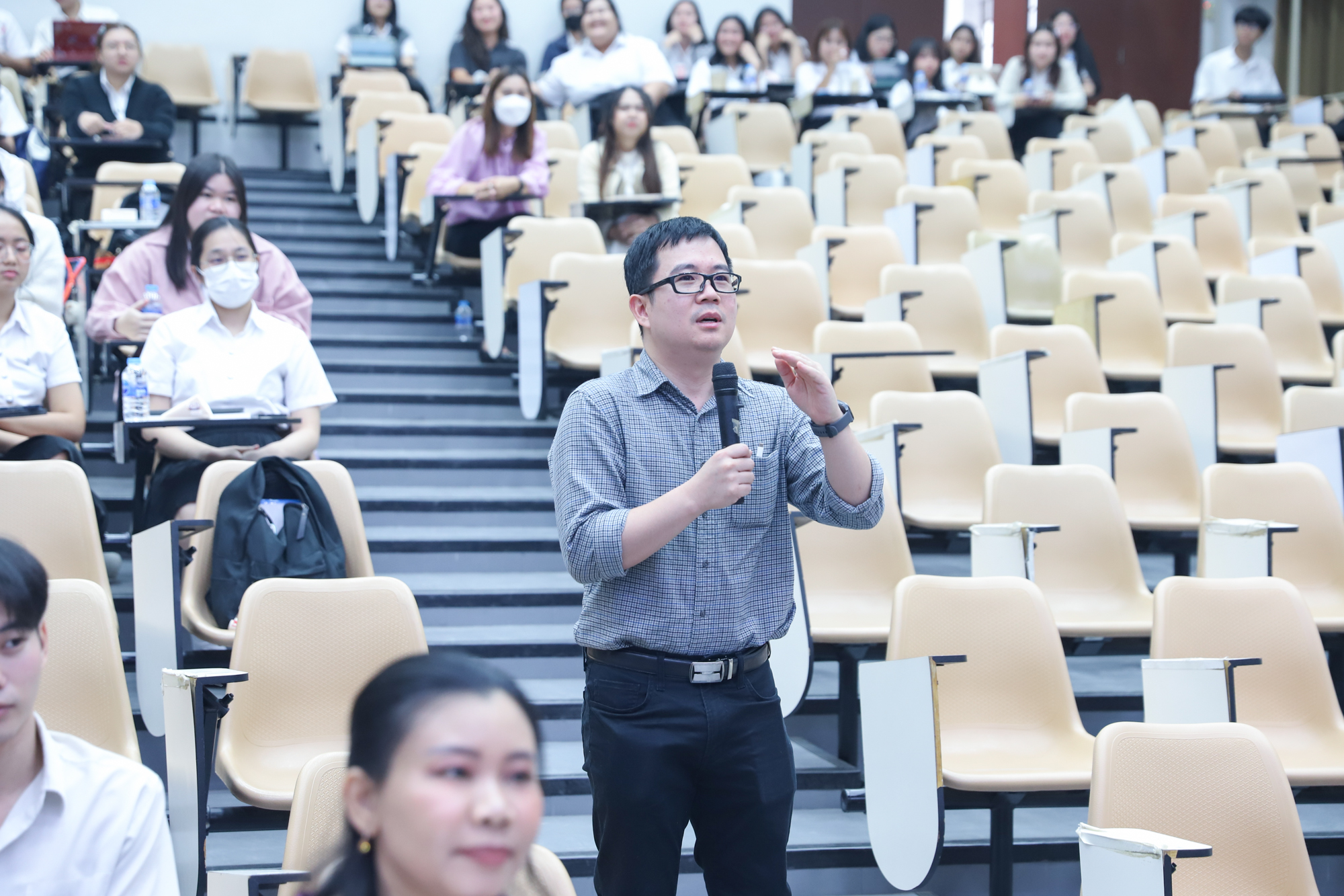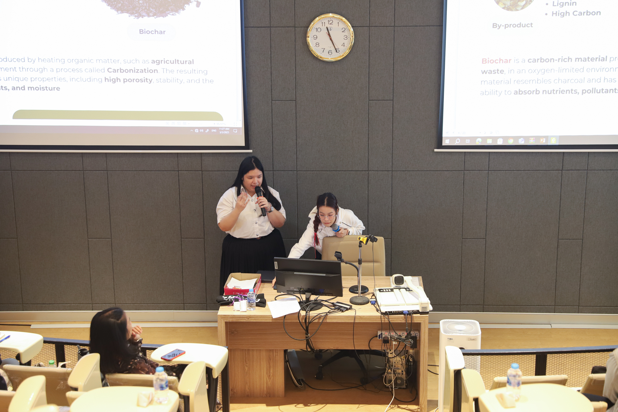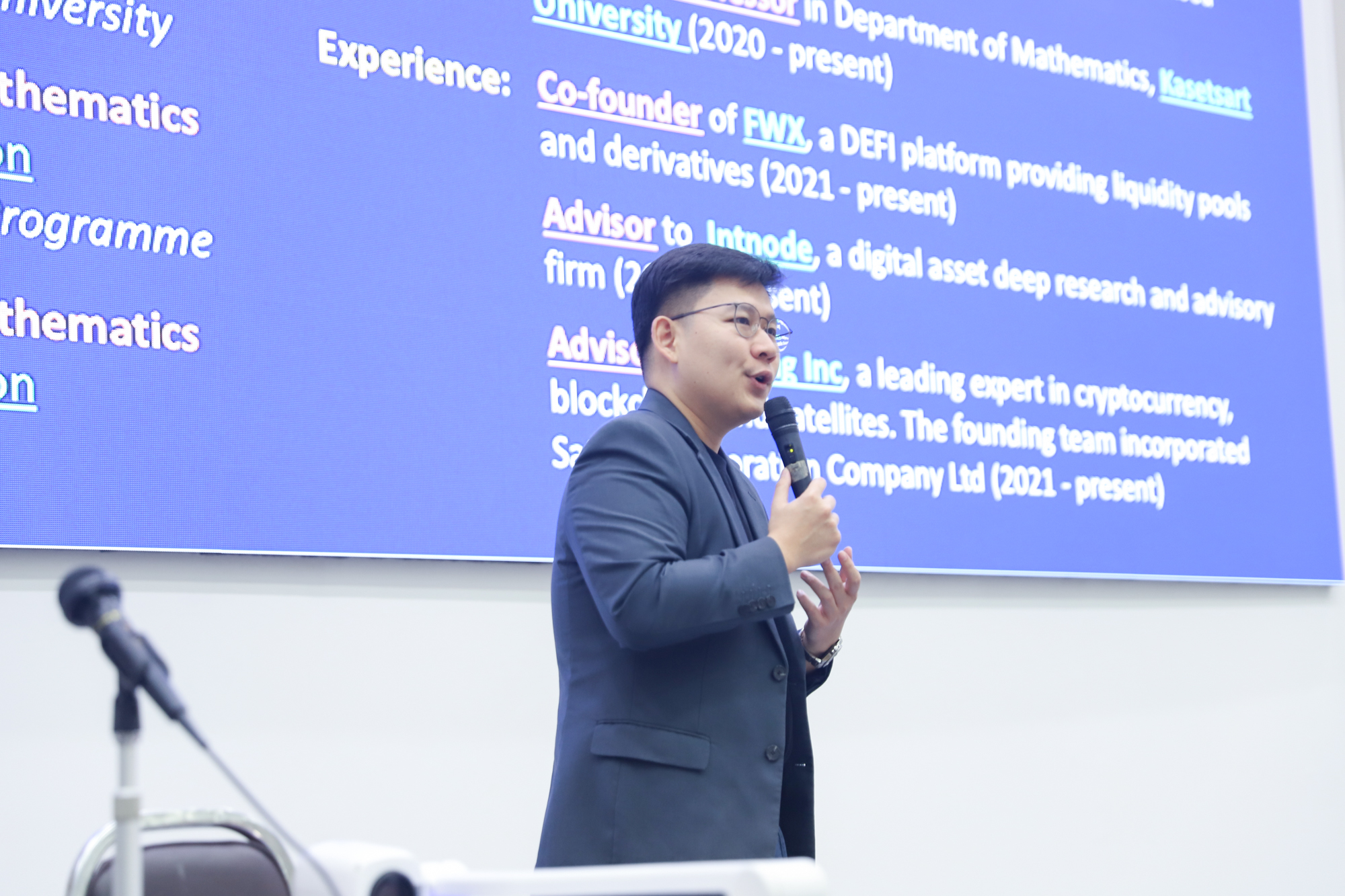 คณะวิทยาศาสตร์จัดกิจกรรมกิจกรรมนำเสนอผลงานวิชาการและสหกิจศึกษาของนักศึกษาระดับปริญญาตรี ชั้นปีที่ 4 ในวันที่ 5 มีนาคม 2568 โดยได้รับเกียรติจาก ศาสตราจารย์ (เชี่ยวชาญพิเศษ) ดร.ธรณินทร์ ไชยเรืองศรี คณบดีคณะวิทยาศาสตร์ เป็นประธานเปิดกิจกรรม และผู้ช่วยศาสตราจารย์ ดร.อุดมศักดิ์ รักษ์วงวาน อาจารย์ประจำคณะวิทยาศาสตร์ มหาวิทยาลัยเกษตรศาสตร์ Co founder บริษัท Forward และเจ้าของเพจ ติดเล่าเรื่องลงทุน ให้เกียรติเป็นวิทยากรการบรรยาย เรื่อง “AI for Every Career: ทักษะดิจิทัลที่คนทำงานยุคใหม่ต้องมี” ณ ห้องบรรยาย SCB2100 ชั้น 1 อาคาร 40 ปี คณะวิทยาศาสตร์ โดยภายหลังจากการบรรยายเสร็จสิ้น นักศึกษาได้นำเสนอผลงานแบบบรรยาย โดยแบ่งเป็น 4 กลุ่ม ดังนี้