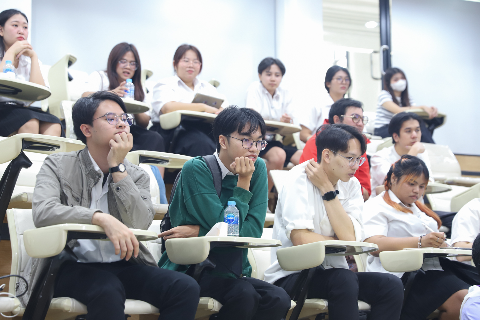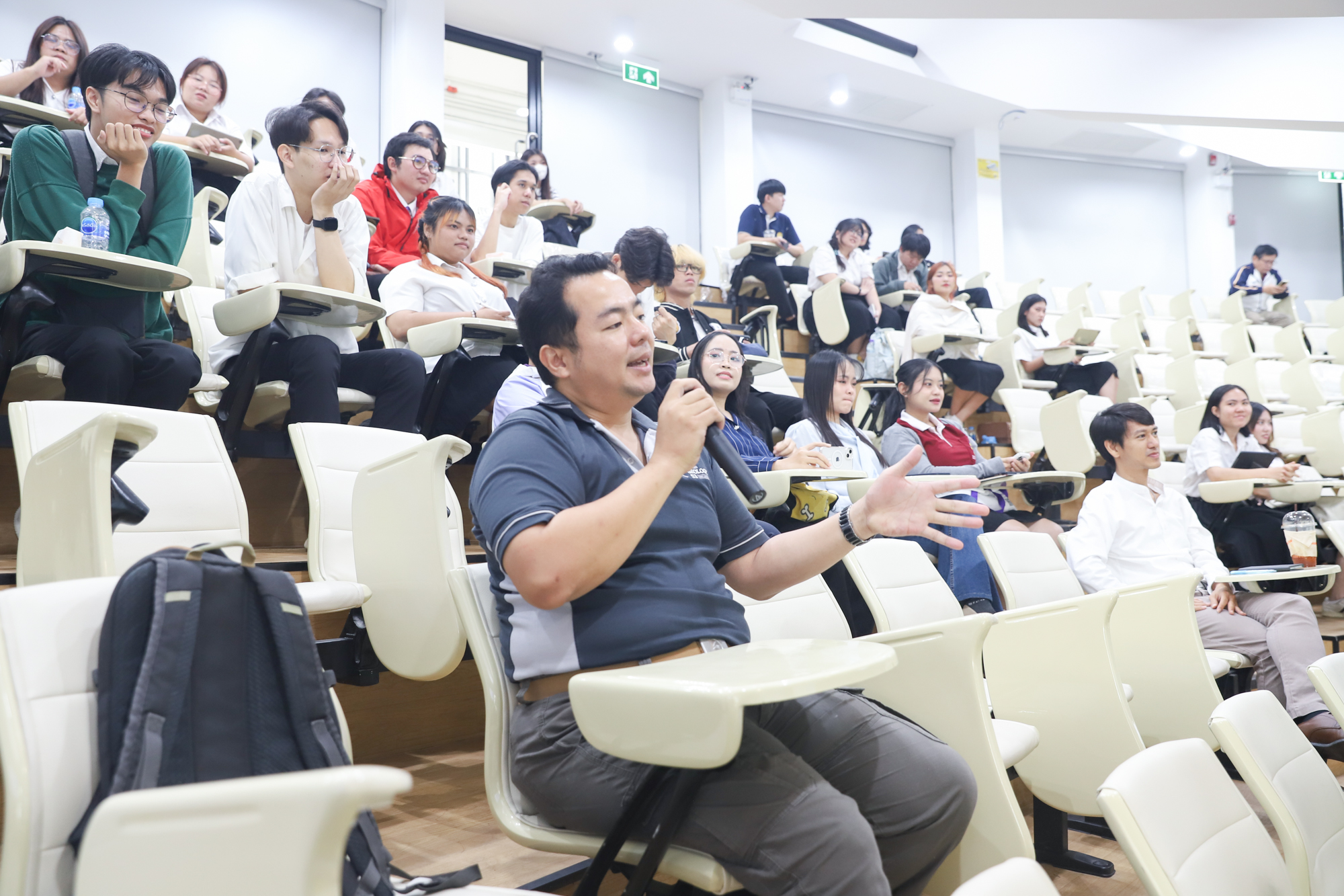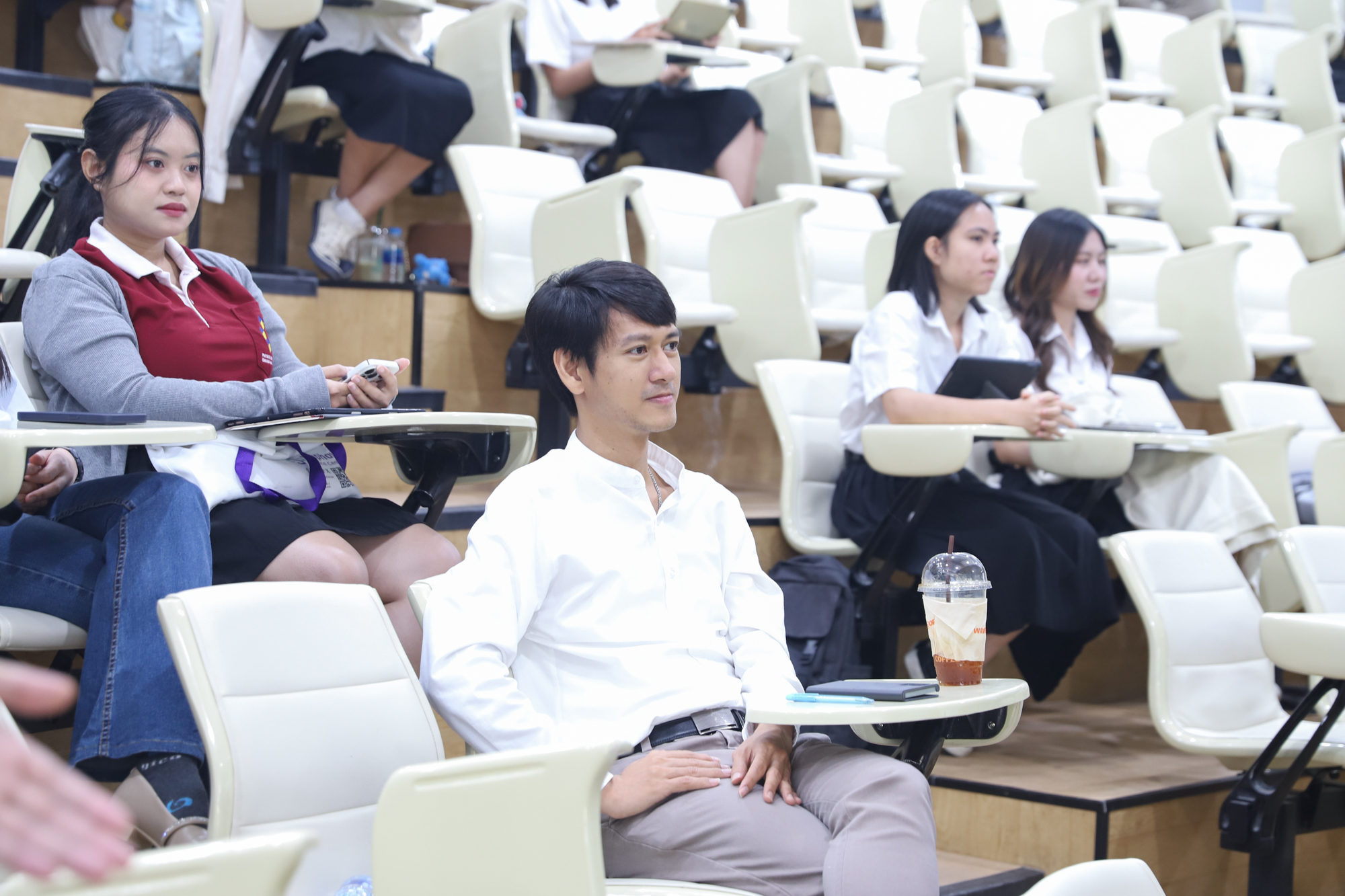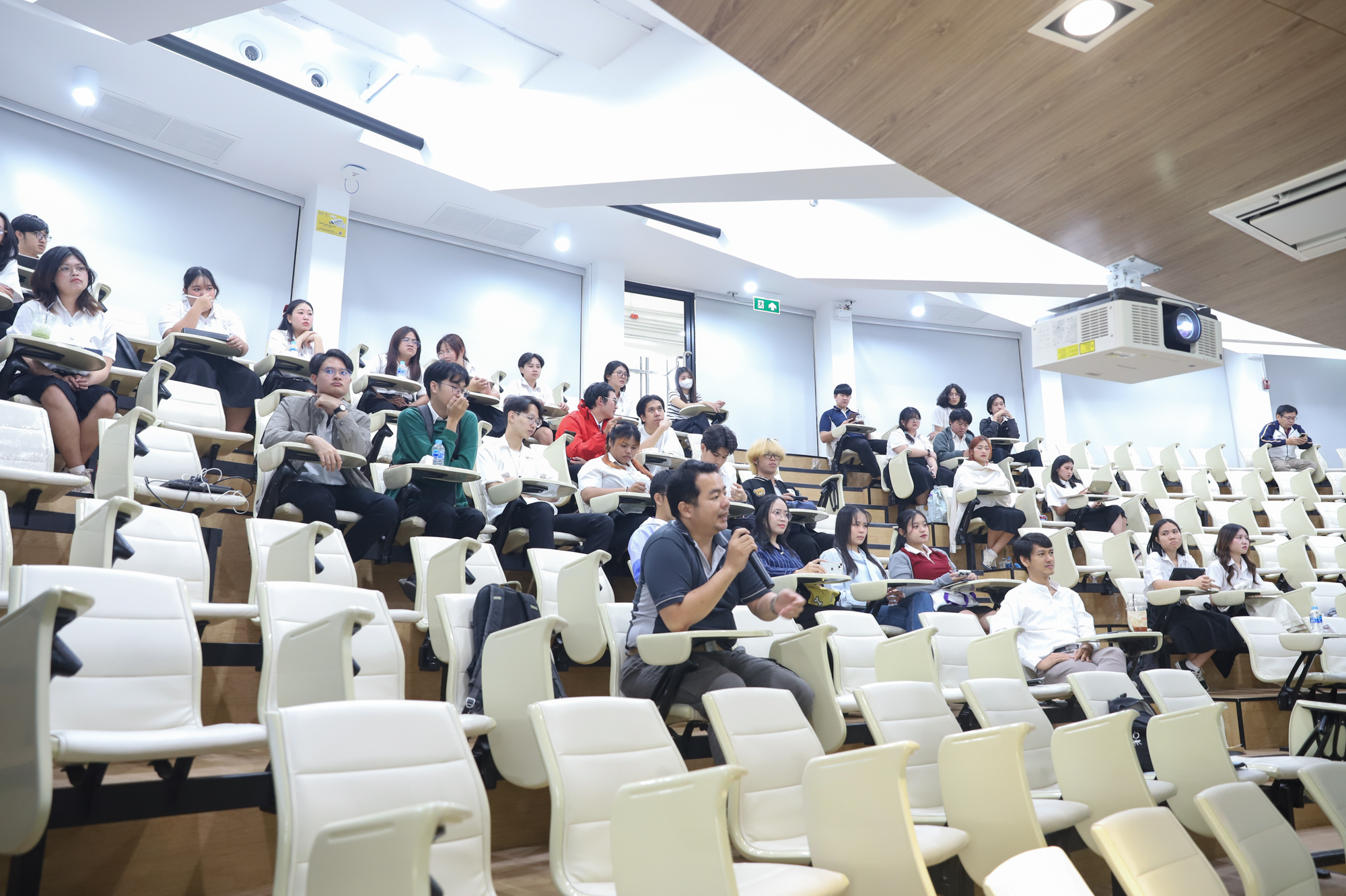 คณะวิทยาศาสตร์จัดกิจกรรมกิจกรรมนำเสนอผลงานวิชาการและสหกิจศึกษาของนักศึกษาระดับปริญญาตรี ชั้นปีที่ 4 ในวันที่ 5 มีนาคม 2568 โดยได้รับเกียรติจาก ศาสตราจารย์ (เชี่ยวชาญพิเศษ) ดร.ธรณินทร์ ไชยเรืองศรี คณบดีคณะวิทยาศาสตร์ เป็นประธานเปิดกิจกรรม และผู้ช่วยศาสตราจารย์ ดร.อุดมศักดิ์ รักษ์วงวาน อาจารย์ประจำคณะวิทยาศาสตร์ มหาวิทยาลัยเกษตรศาสตร์ Co founder บริษัท Forward และเจ้าของเพจ ติดเล่าเรื่องลงทุน ให้เกียรติเป็นวิทยากรการบรรยาย เรื่อง “AI for Every Career: ทักษะดิจิทัลที่คนทำงานยุคใหม่ต้องมี” ณ ห้องบรรยาย SCB2100 ชั้น 1 อาคาร 40 ปี คณะวิทยาศาสตร์ โดยภายหลังจากการบรรยายเสร็จสิ้น นักศึกษาได้นำเสนอผลงานแบบบรรยาย โดยแบ่งเป็น 4 กลุ่ม ดังนี้