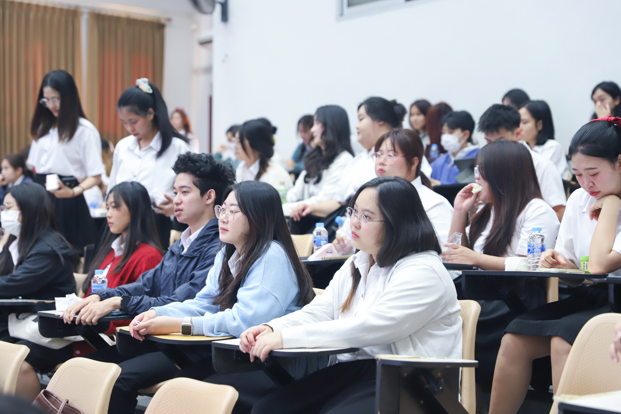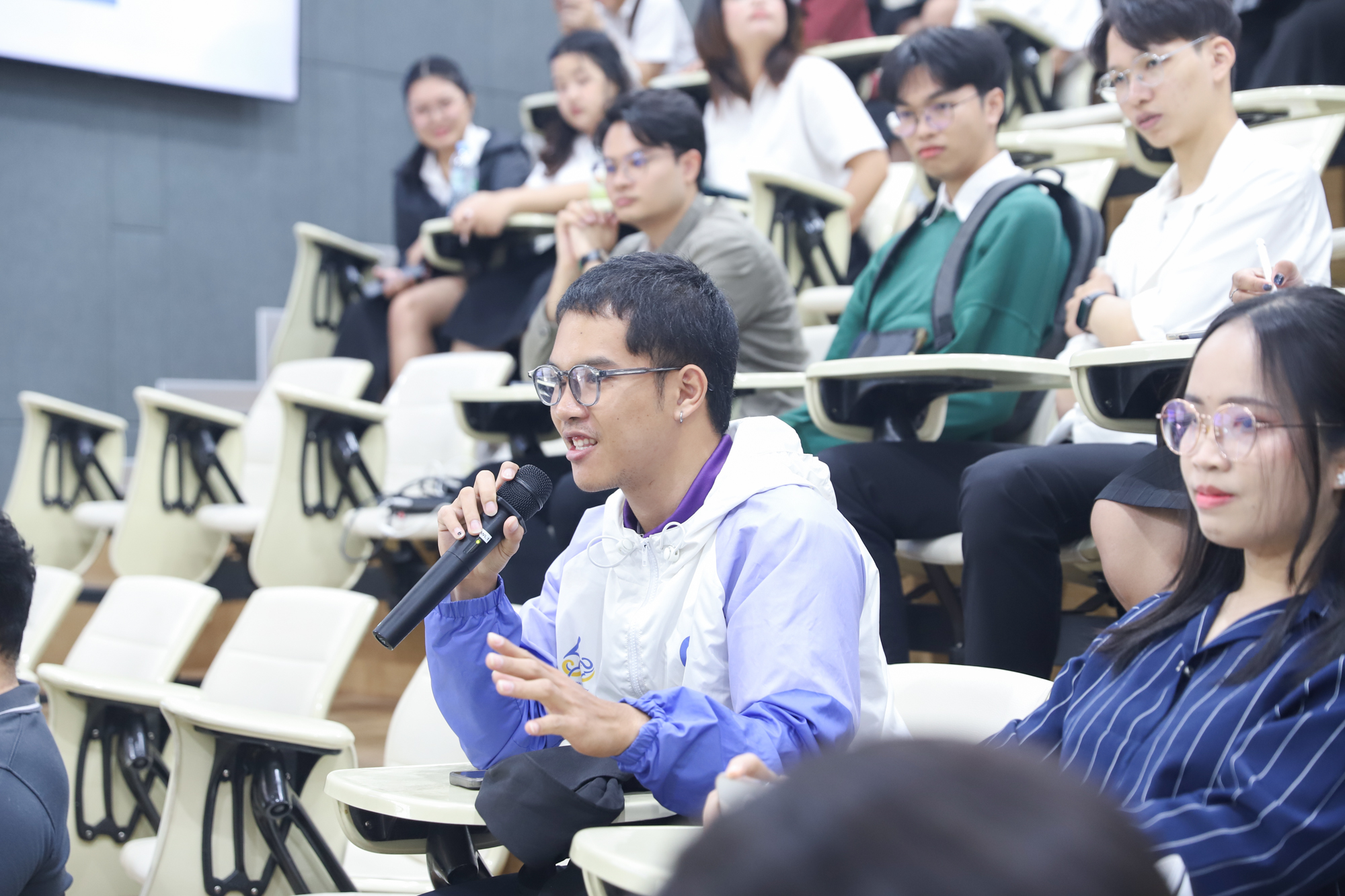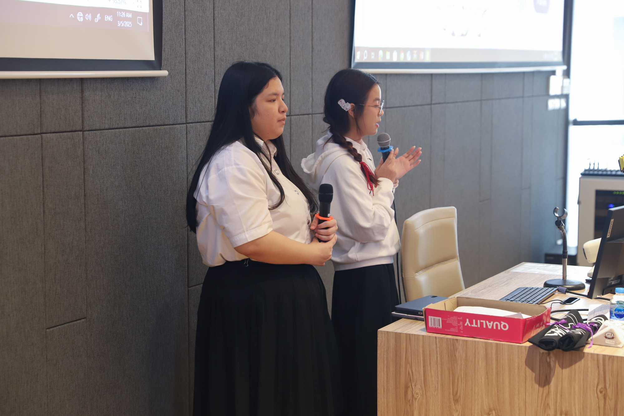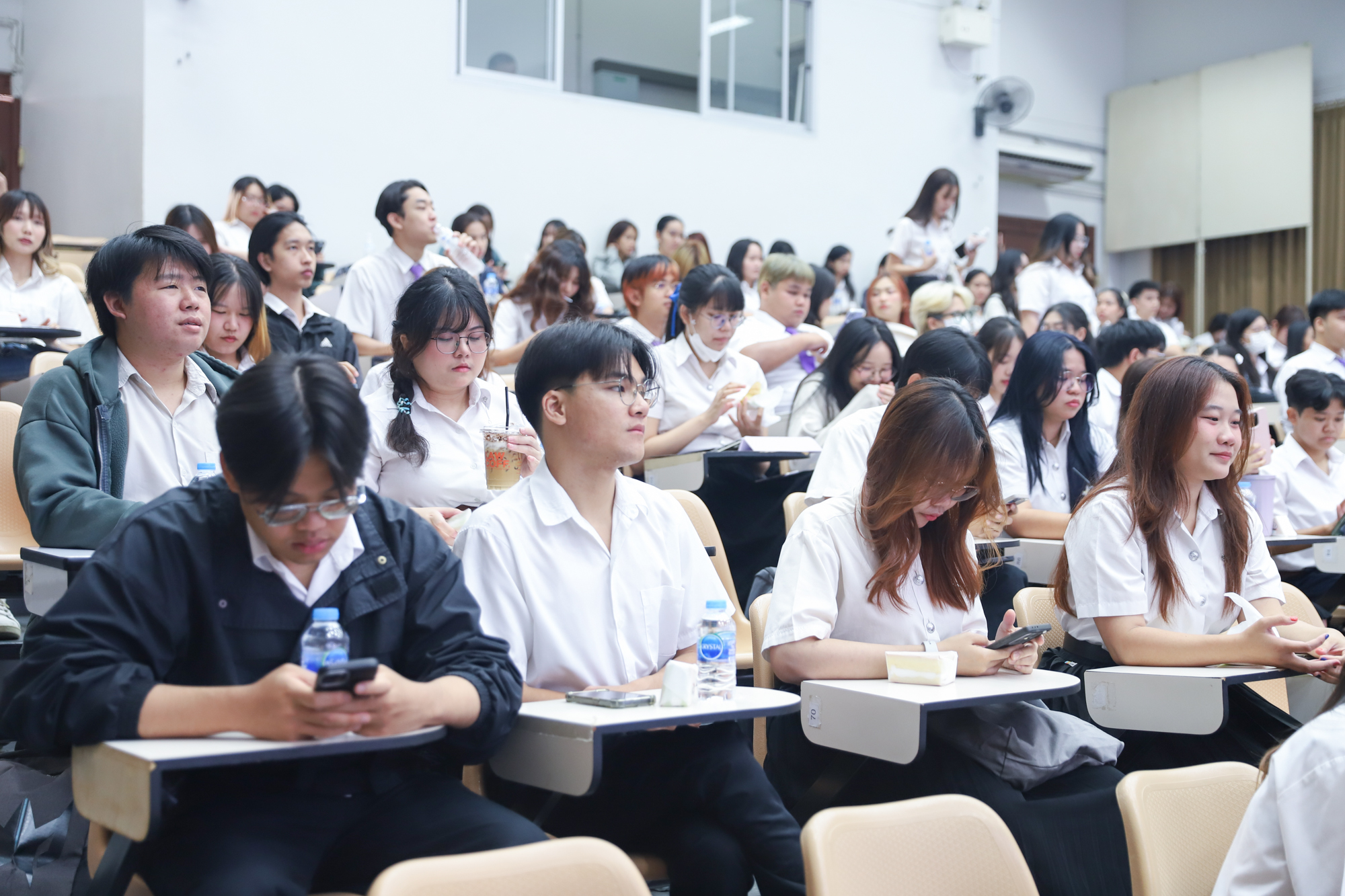 คณะวิทยาศาสตร์จัดกิจกรรมกิจกรรมนำเสนอผลงานวิชาการและสหกิจศึกษาของนักศึกษาระดับปริญญาตรี ชั้นปีที่ 4 ในวันที่ 5 มีนาคม 2568 โดยได้รับเกียรติจาก ศาสตราจารย์ (เชี่ยวชาญพิเศษ) ดร.ธรณินทร์ ไชยเรืองศรี คณบดีคณะวิทยาศาสตร์ เป็นประธานเปิดกิจกรรม และผู้ช่วยศาสตราจารย์ ดร.อุดมศักดิ์ รักษ์วงวาน อาจารย์ประจำคณะวิทยาศาสตร์ มหาวิทยาลัยเกษตรศาสตร์ Co founder บริษัท Forward และเจ้าของเพจ ติดเล่าเรื่องลงทุน ให้เกียรติเป็นวิทยากรการบรรยาย เรื่อง “AI for Every Career: ทักษะดิจิทัลที่คนทำงานยุคใหม่ต้องมี” ณ ห้องบรรยาย SCB2100 ชั้น 1 อาคาร 40 ปี คณะวิทยาศาสตร์ โดยภายหลังจากการบรรยายเสร็จสิ้น นักศึกษาได้นำเสนอผลงานแบบบรรยาย โดยแบ่งเป็น 4 กลุ่ม ดังนี้