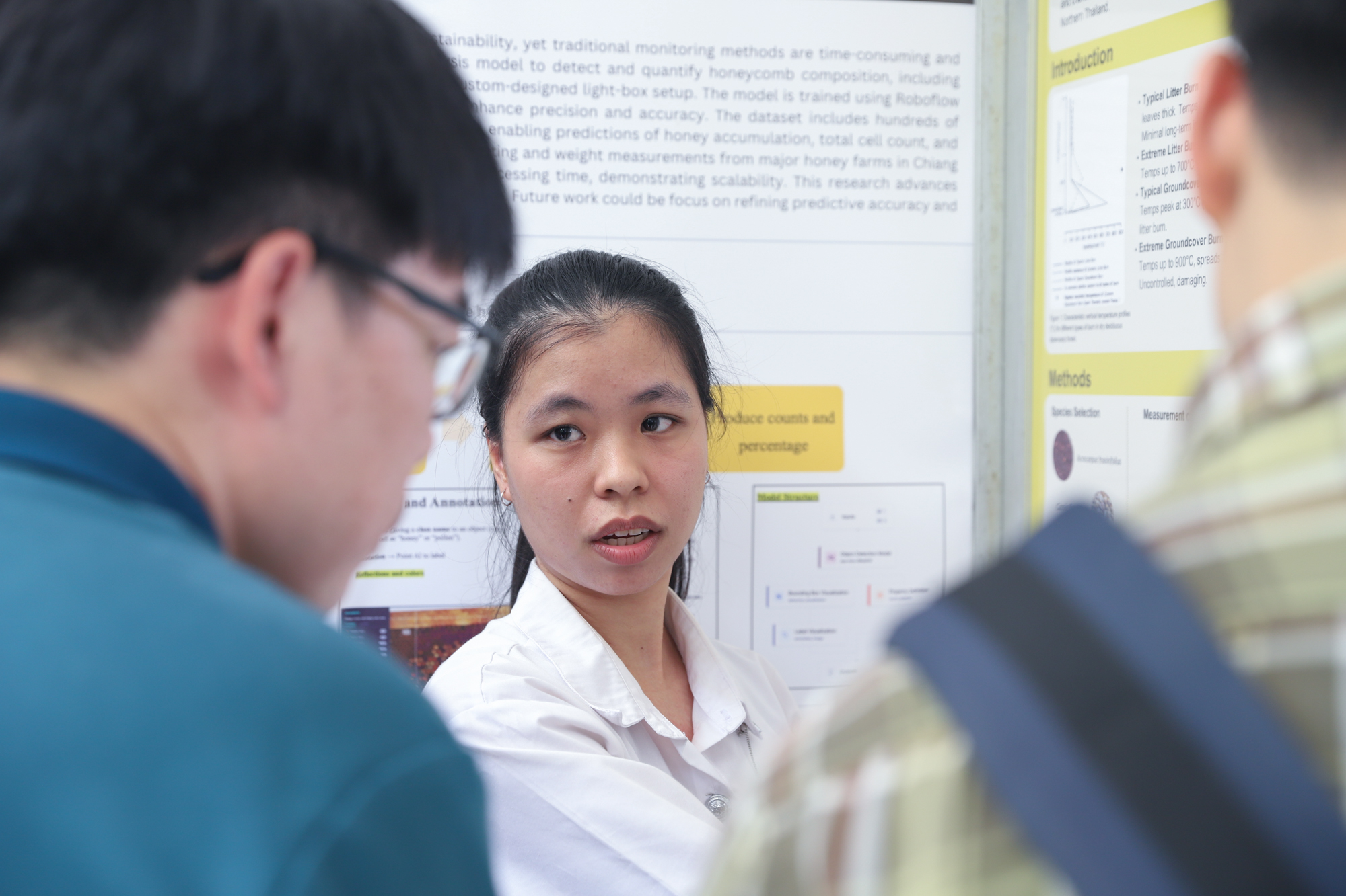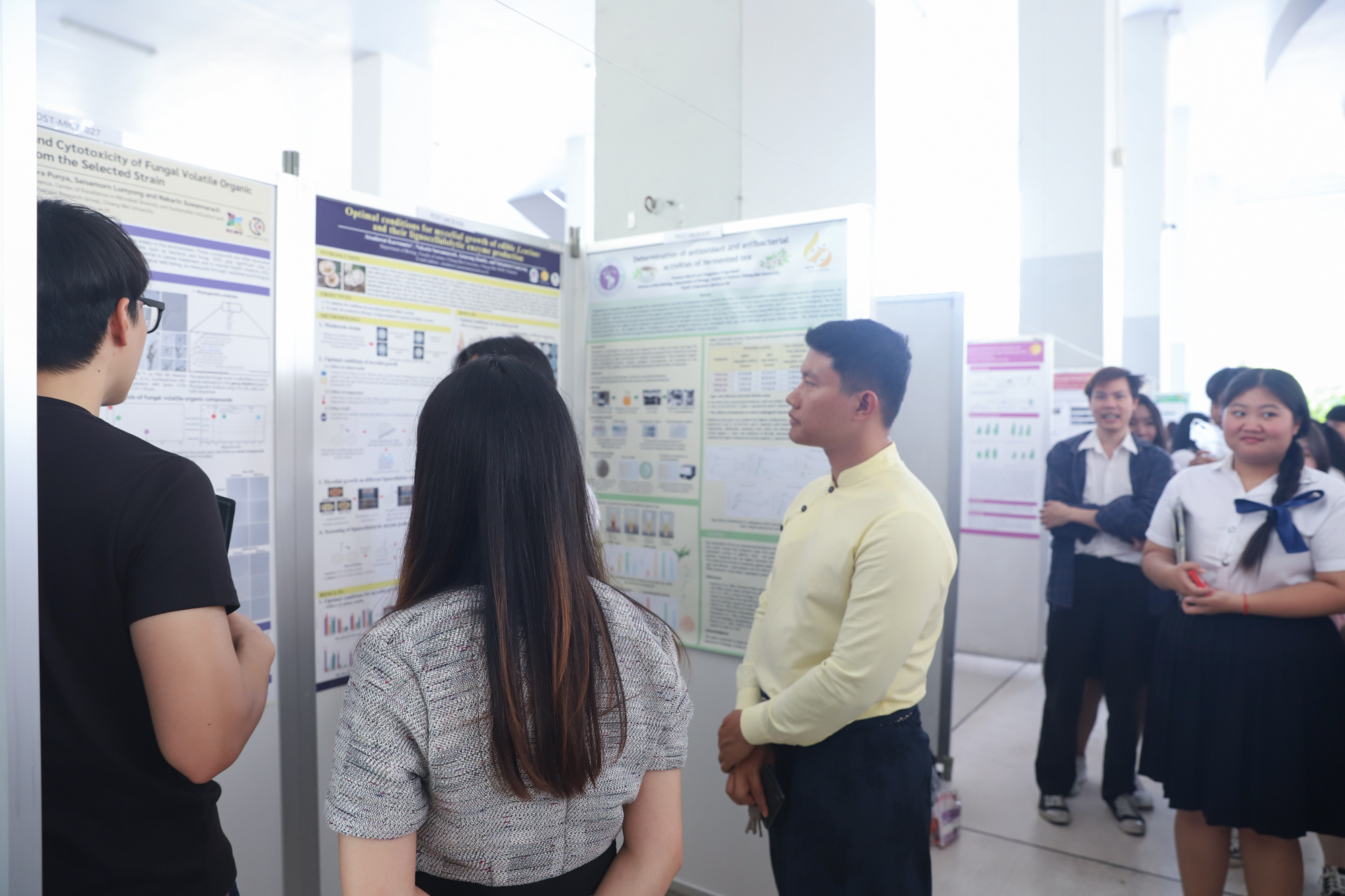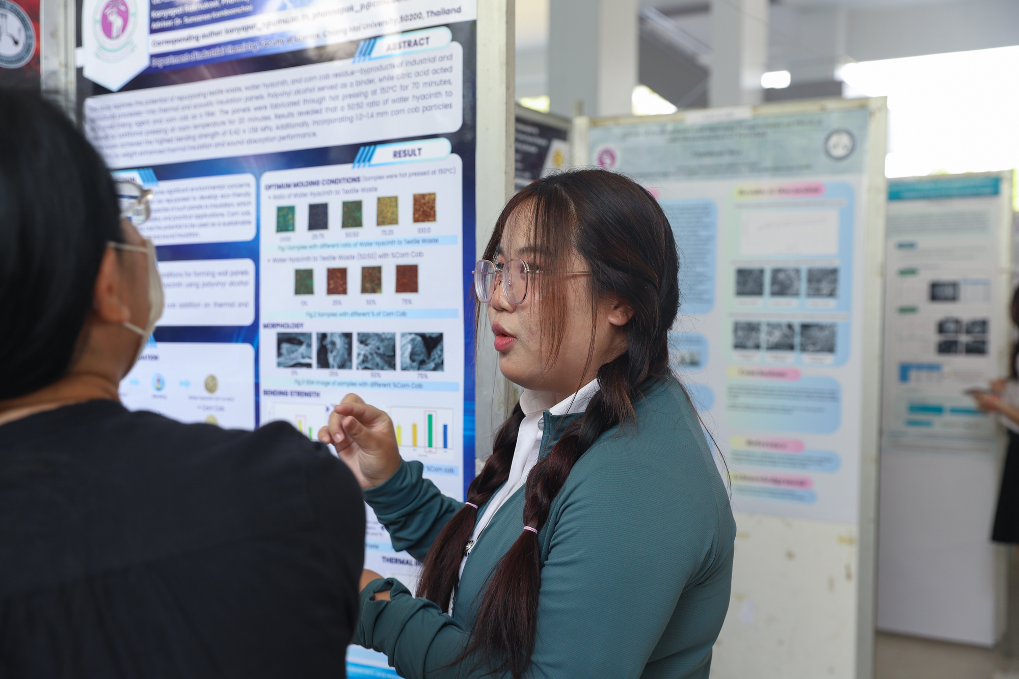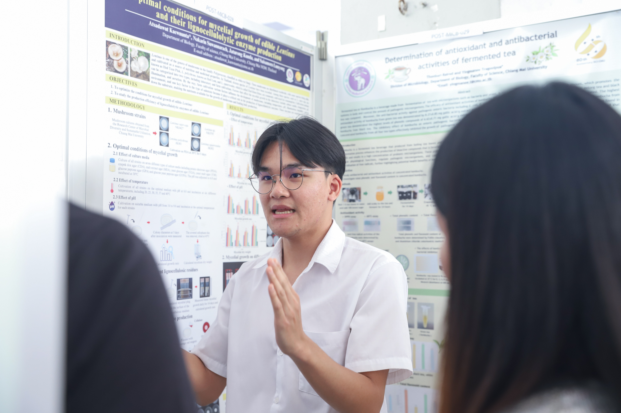 จากนั้นในช่วงบ่าย นักศึกษาได้นำเสนอผลงานแบบโปสเตอร์และสหกิจศึกษา ณ บริเวณโถงกิจกรรม ชั้น 1 อาคาร 40 ปี คณะวิทยาศาสตร์