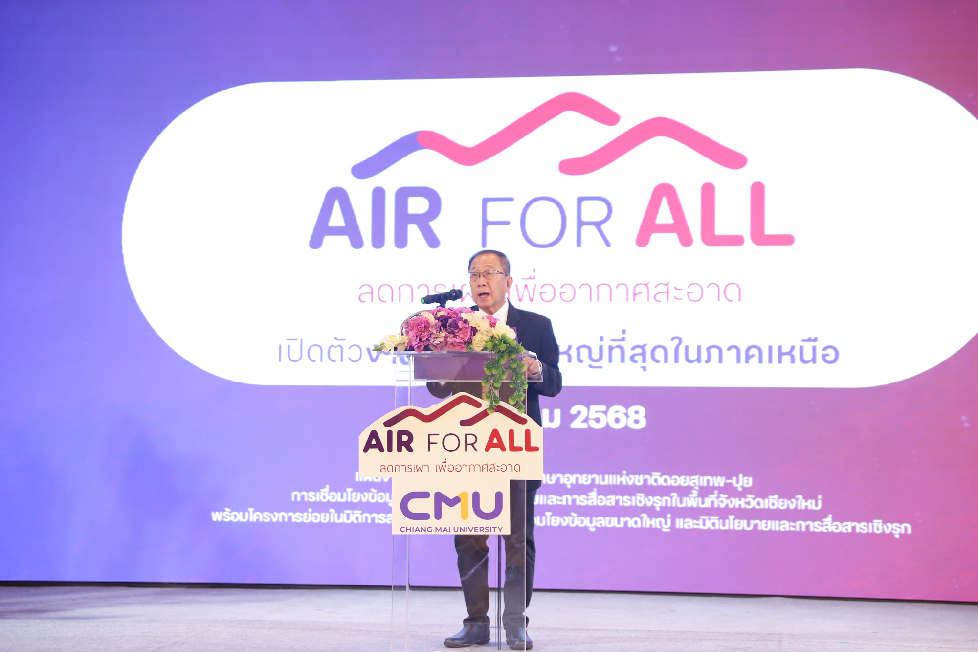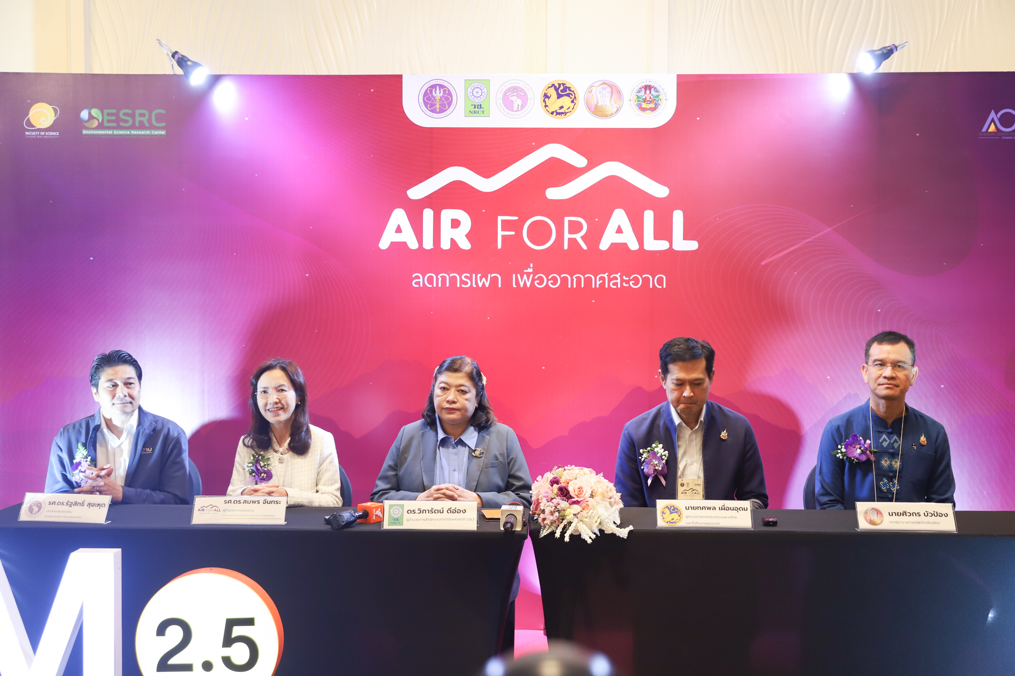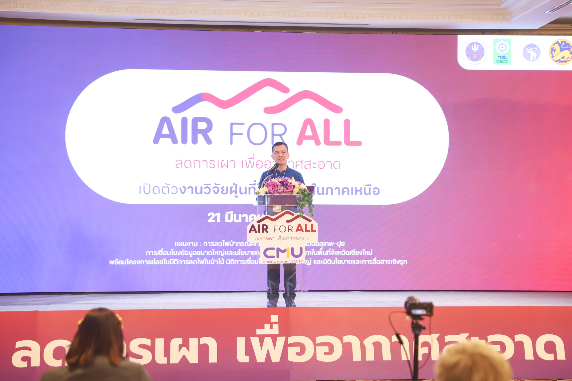 มหาวิทยาลัยเชียงใหม่ โดย คณะทำงานด้านวิชาการเพื่อสนับสนุนการแก้ไขปัญหาหมอกควัน มหาวิทยาลัยเชียงใหม่ (AcAir CMU) และศูนย์วิจัยวิทยาศาสตร์สิ่งแวดล้อม คณะวิทยาศาสตร์ มหาวิทยาลัยเชียงใหม่ ร่วมกับหน่วยงานที่เกี่ยวข้อง จัดงานแถลงข่าวเปิดตัวโครงการและเสวนาวิชาการ AirForAll - ลดการเผาเพื่ออากาศสะอาด ในวันที่ 21 มีนาคม 2568 ณ โรงแรมเซ็นทารา ริเวอร์ไซด์ เชียงใหม่