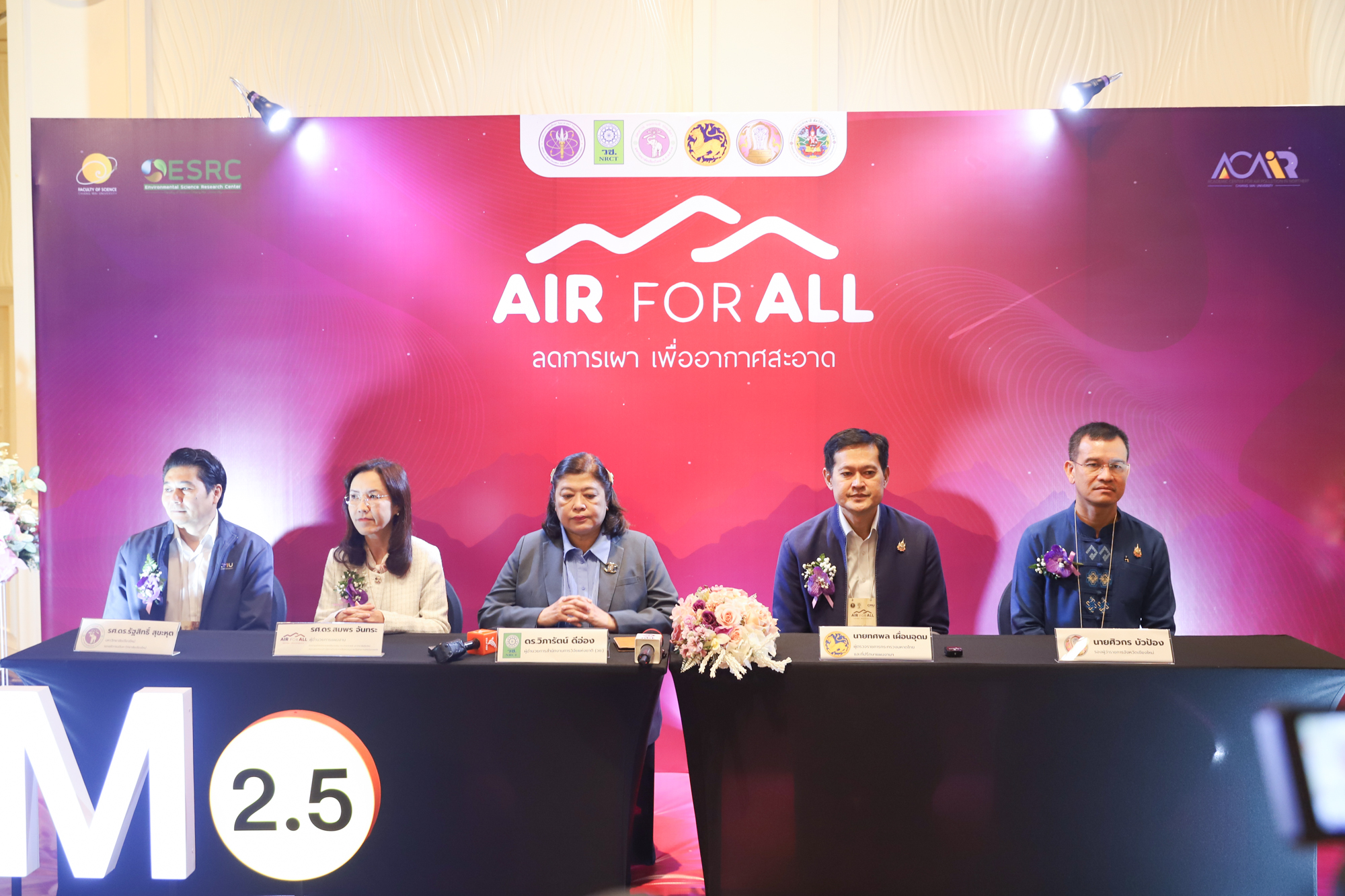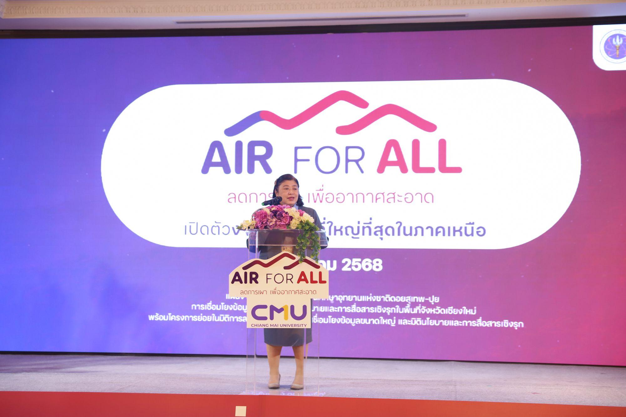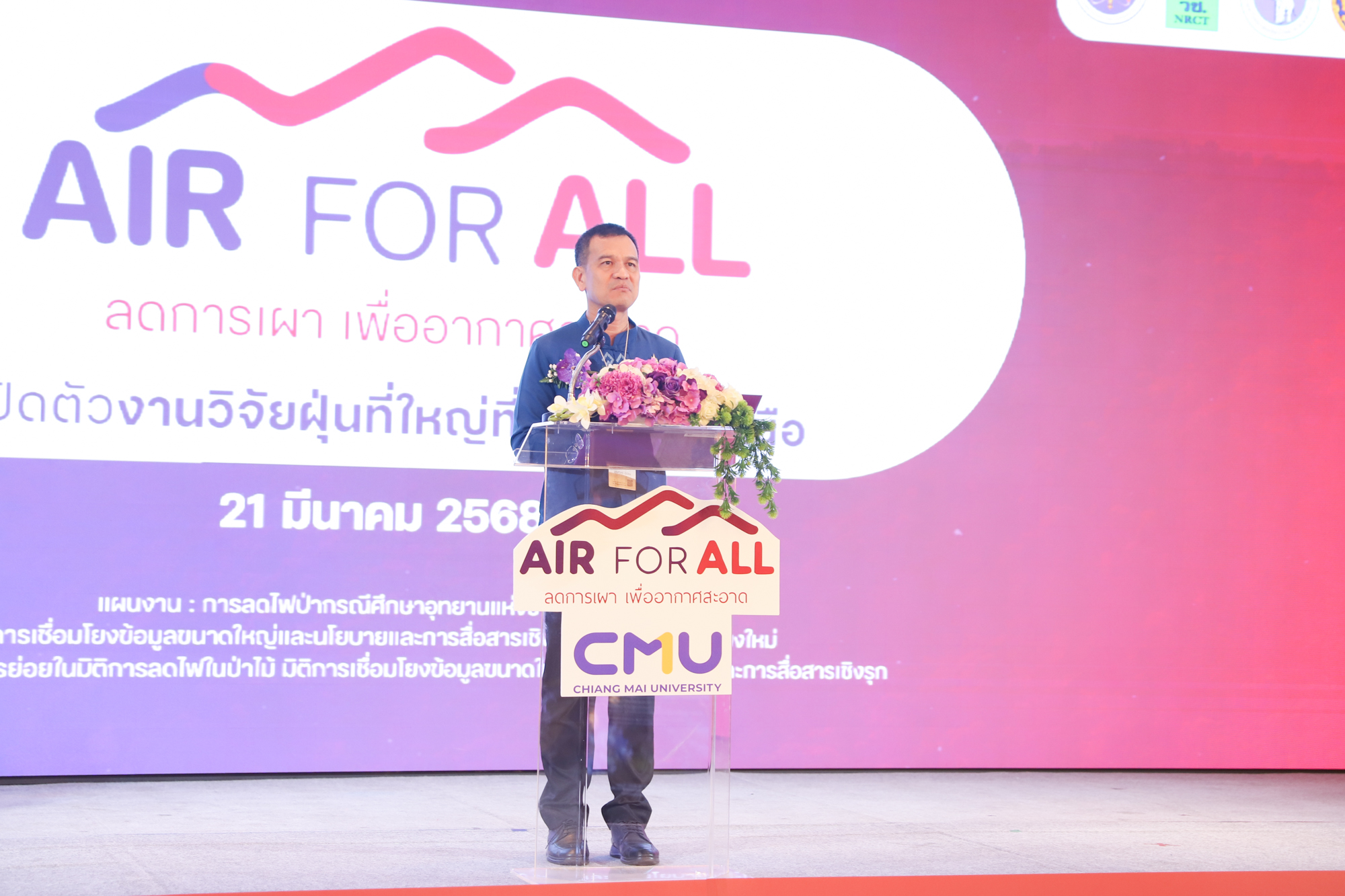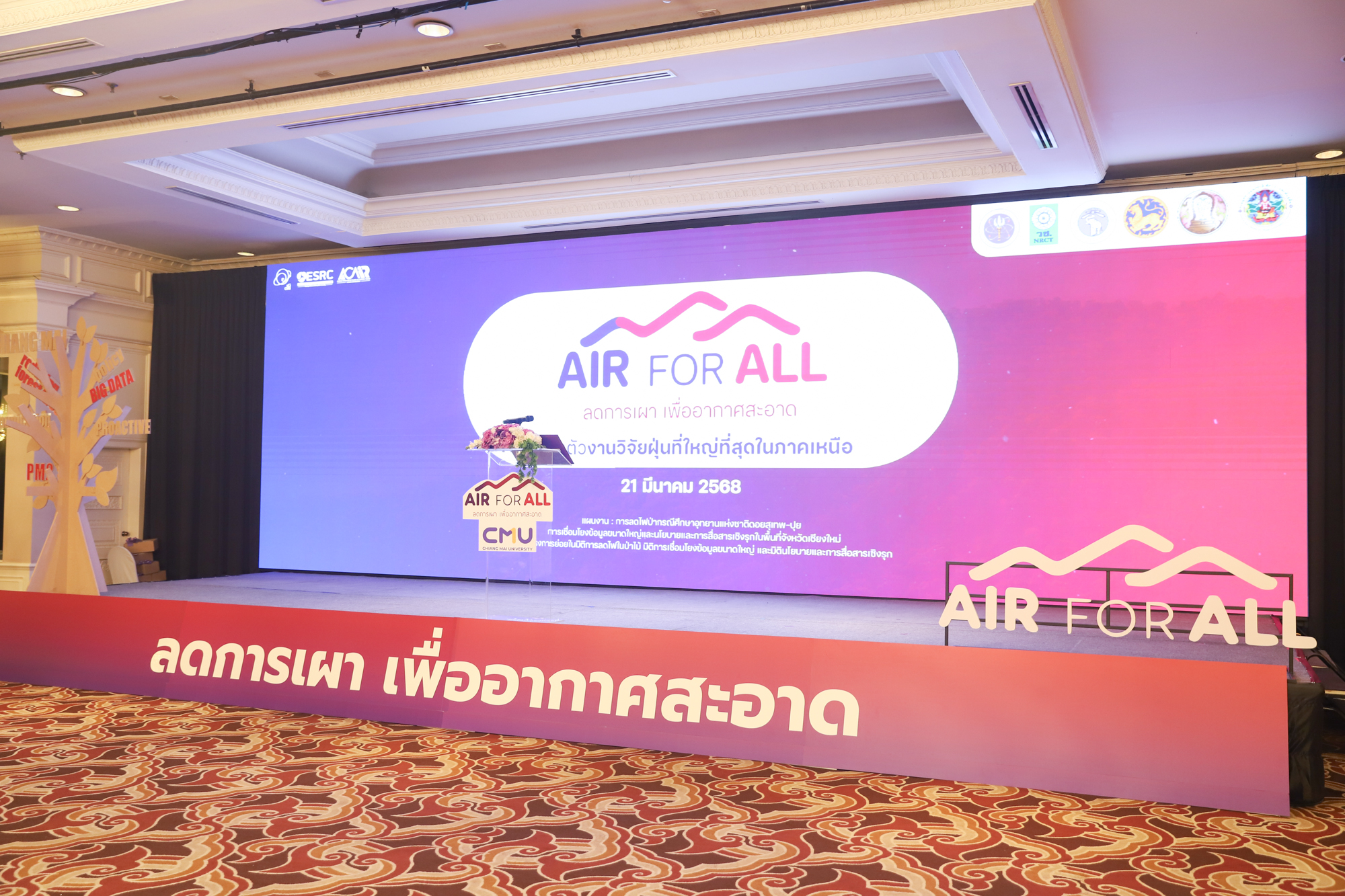 มหาวิทยาลัยเชียงใหม่ โดย คณะทำงานด้านวิชาการเพื่อสนับสนุนการแก้ไขปัญหาหมอกควัน มหาวิทยาลัยเชียงใหม่ (AcAir CMU) และศูนย์วิจัยวิทยาศาสตร์สิ่งแวดล้อม คณะวิทยาศาสตร์ มหาวิทยาลัยเชียงใหม่ ร่วมกับหน่วยงานที่เกี่ยวข้อง จัดงานแถลงข่าวเปิดตัวโครงการและเสวนาวิชาการ AirForAll - ลดการเผาเพื่ออากาศสะอาด ในวันที่ 21 มีนาคม 2568 ณ โรงแรมเซ็นทารา ริเวอร์ไซด์ เชียงใหม่