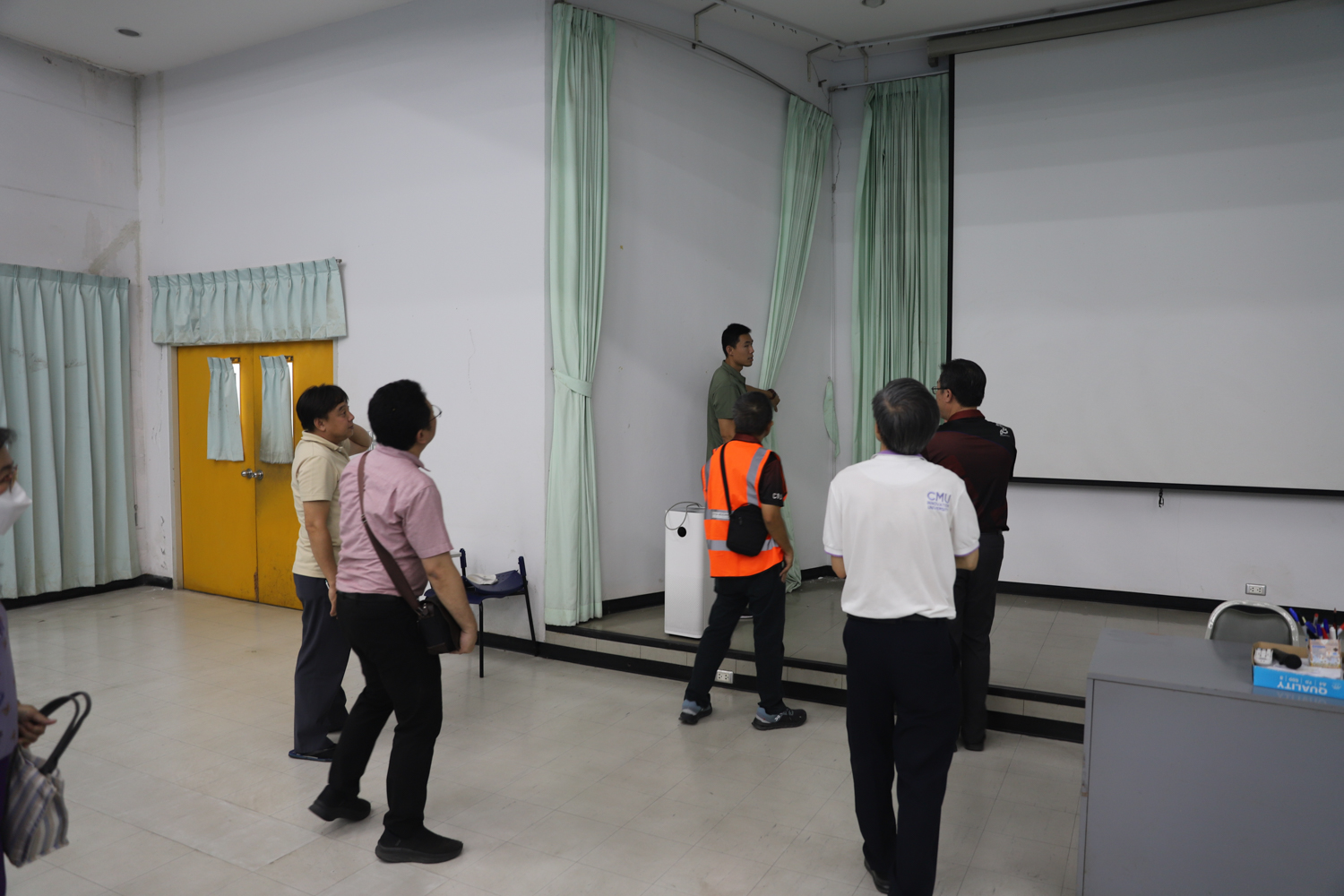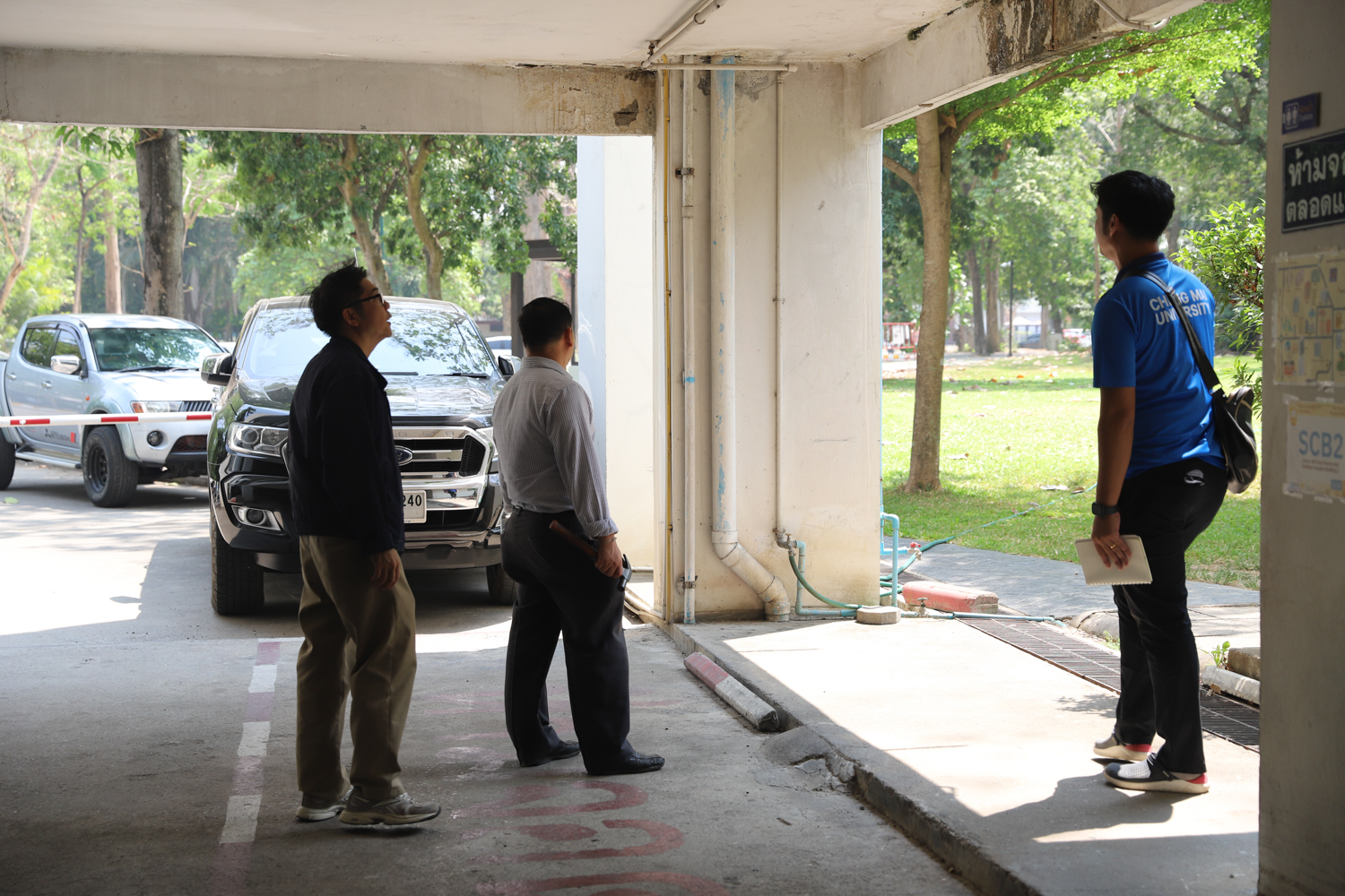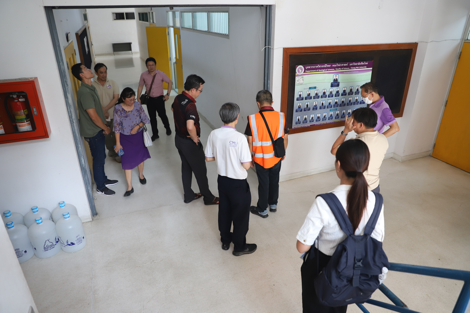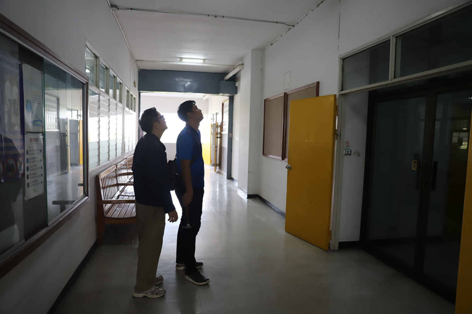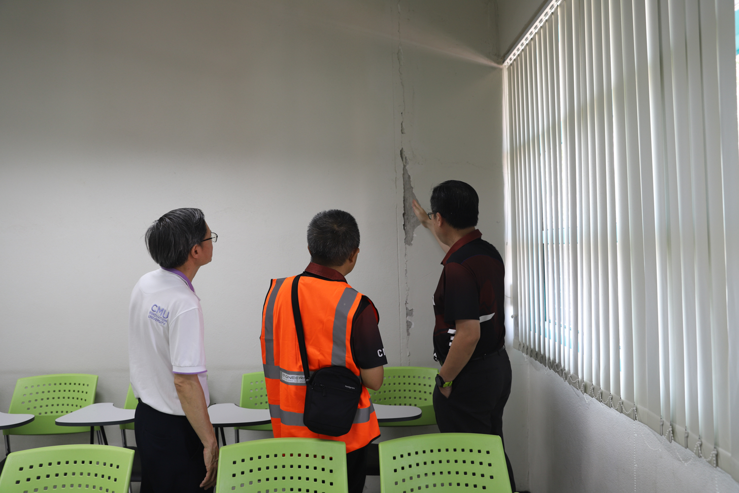ผู้บริหารคณะวิทยาศาสตร์นำทีมวิศวกรเข้าตรวจสอบโครงสร้างอาคาร ภายในคณะวิทยาศาสตร์ หลังเกิดเหตุแผ่นดินไหว เพื่อความปลอดภัยของผู้ใช้อาคาร