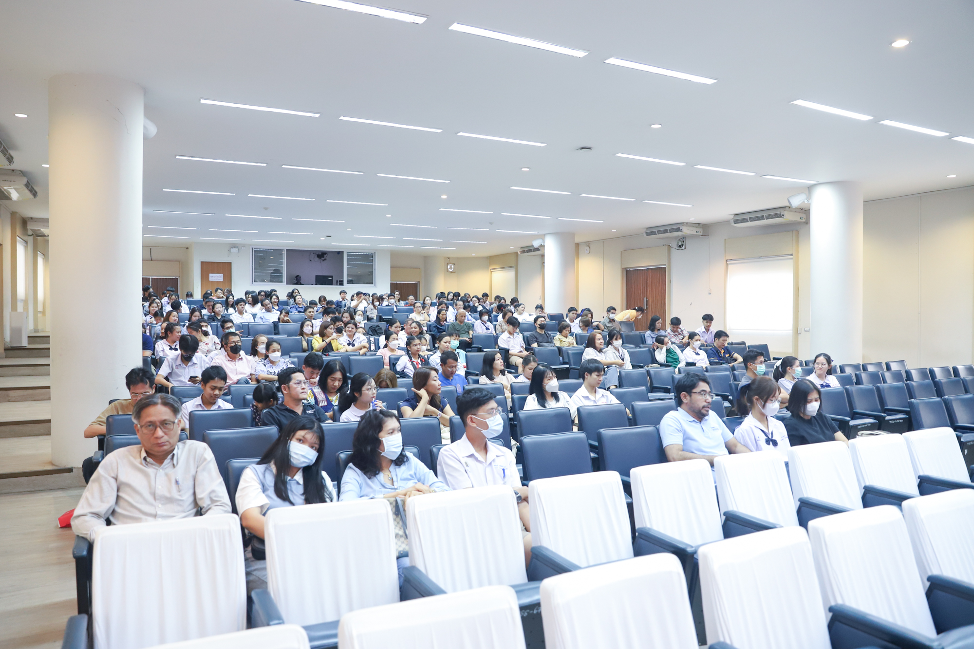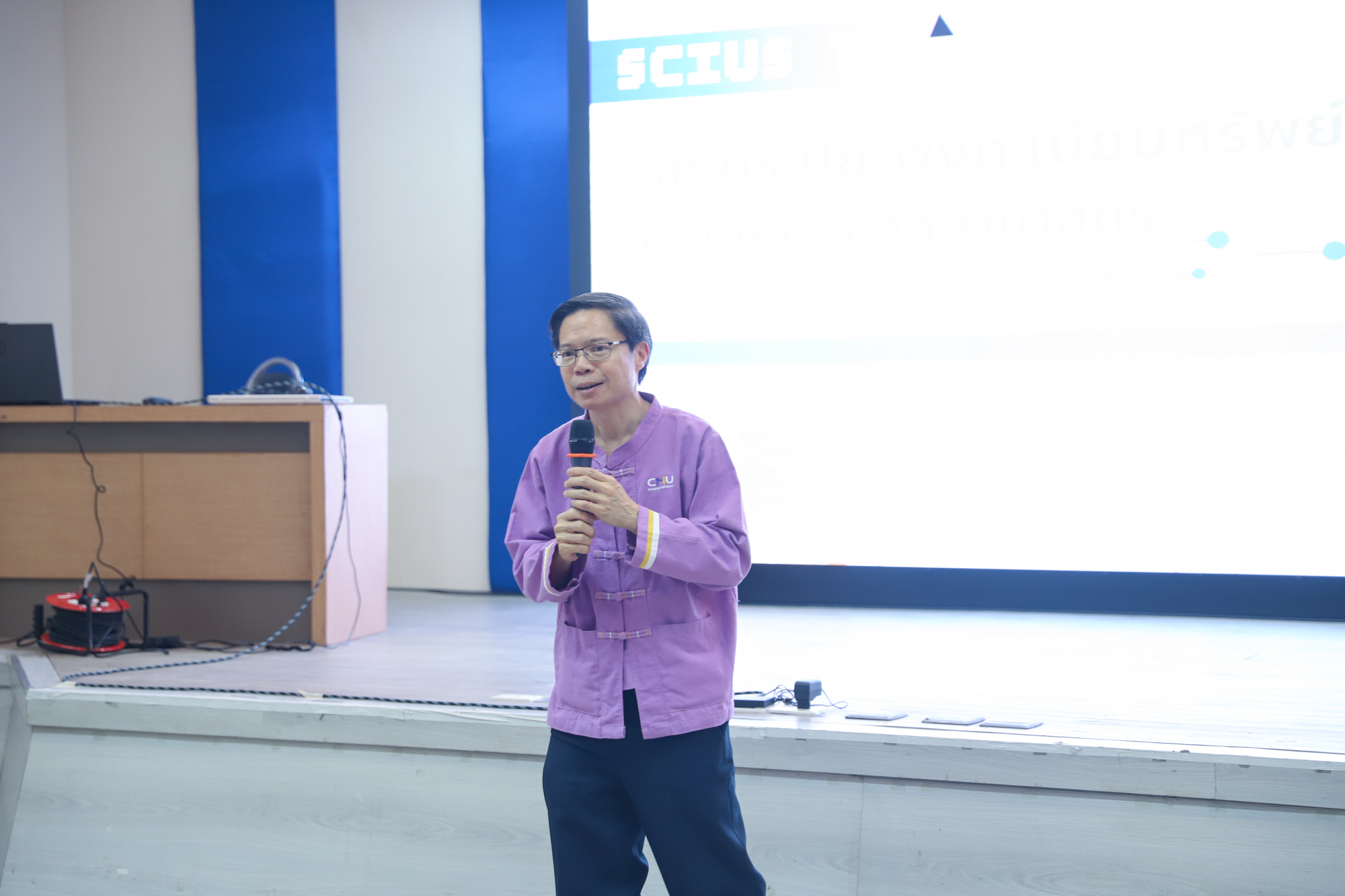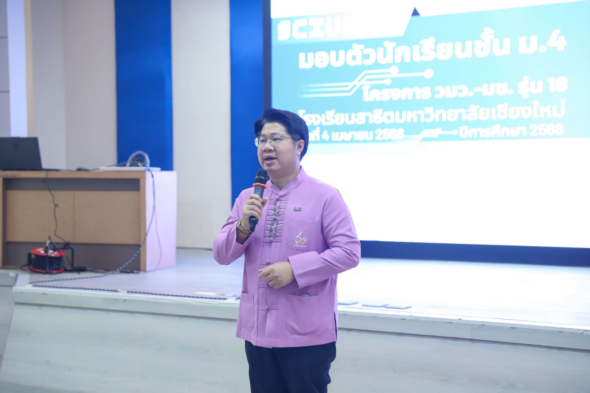 รศ.ดร.ปิยะพงศ์ เนียมทรัพย์ คณบดีคณะวิทยาศาสตร์ กล่าวการต้อบรับผู้ปกครองนักเรียนชั้นมัธยมศึกษาปีที่ 4 ปีการศึกษา 2568 (รุ่นที่ 18) โครงการห้องเรียนวิทยาศาสตร์ในโรงเรียนสาธิตมหาวิทยาลัยเชียงใหม่ โดยการกำกับดูแล ของมหาวิทยาลัยเชียงใหม่ (โครงการ วมว..มช.) ในโอกาสเข้าร่วมการประชุมผู้ปกครอง ในวันศุกร์ที่ 4 เมษายน 2568 ณ ห้องประชุม 40 ปี คณะศึกษาศาสตร์ มหาวิทยาลัยเชียงใหม่
