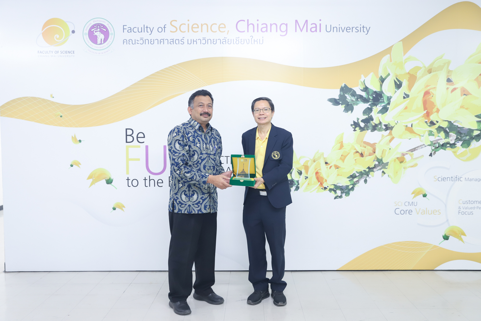 รองศาสตราจารย์ ดร.ปิยะพงศ์ เนียมทรัพย์ คณบดีคณะวิทยาศาสตร์ และผู้ช่วยศาสตราจารย์ ดร.รุจิรา อุ่นเจริญ คณบดีวิทยาลัยนานาชาตินวัตกรรมดิจิทัล พร้อมด้วยคณะผู้บริหารและบุคลากรจากภาควิชาคณิตศาสตร์และภาควิชาสถิติ คณะวิทยาศาสตร์ ร่วมให้การต้อนรับ Prof.Dr. Hizir Sofyan Director of Graduate School of Universitas Syiah Kuala จาก Universitas Syiah Kuala (USK) ประเทศอินโดนีเซีย ในโอกาสเยือนมหาวิทยาลัยเชียงใหม่ เมื่อวันที่ 21 เมษายน 2568 ณ บริเวณรับรอง ชั้น 2 อาคาร 40 ปี คณะวิทยาศาสตร์