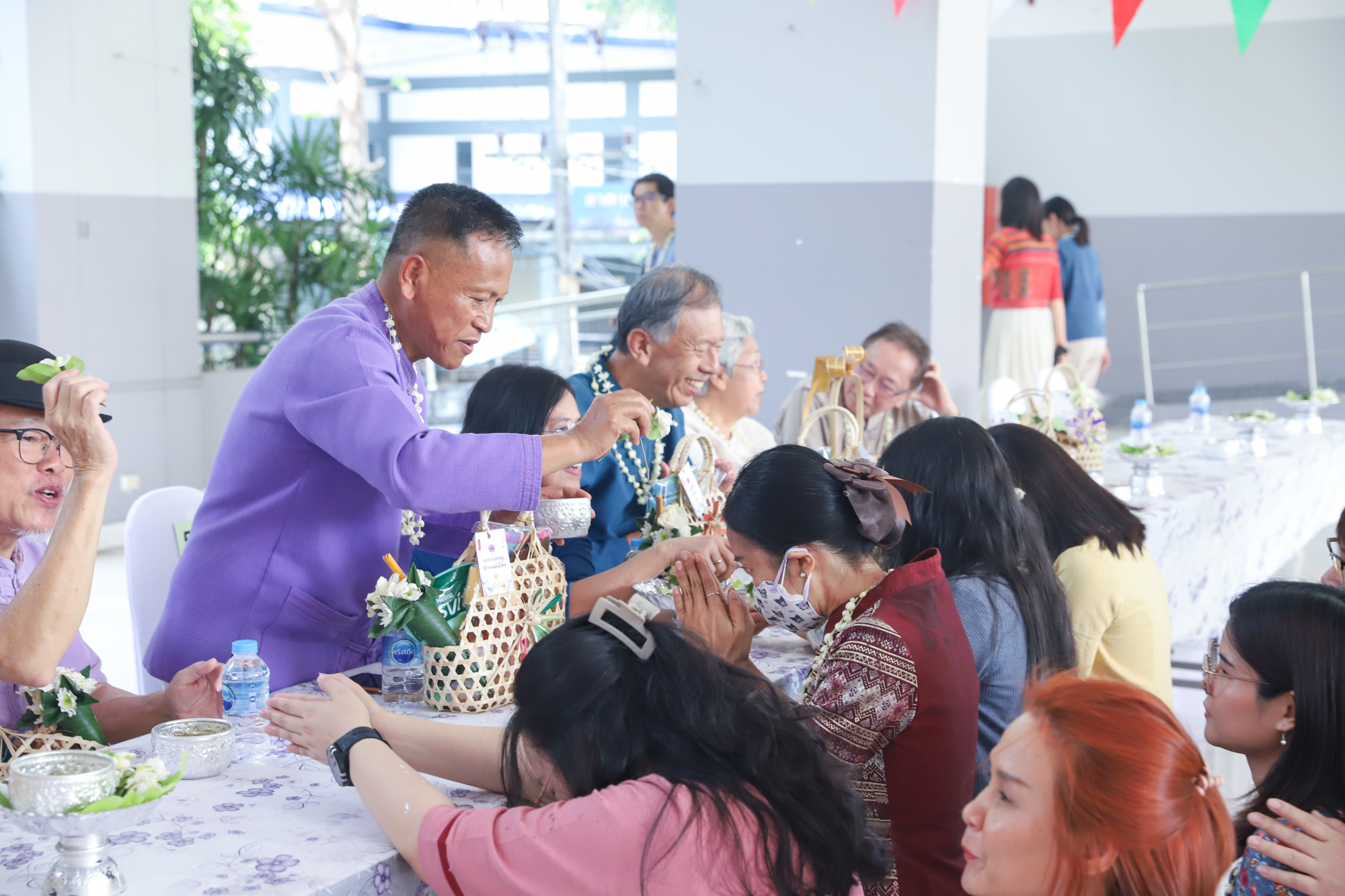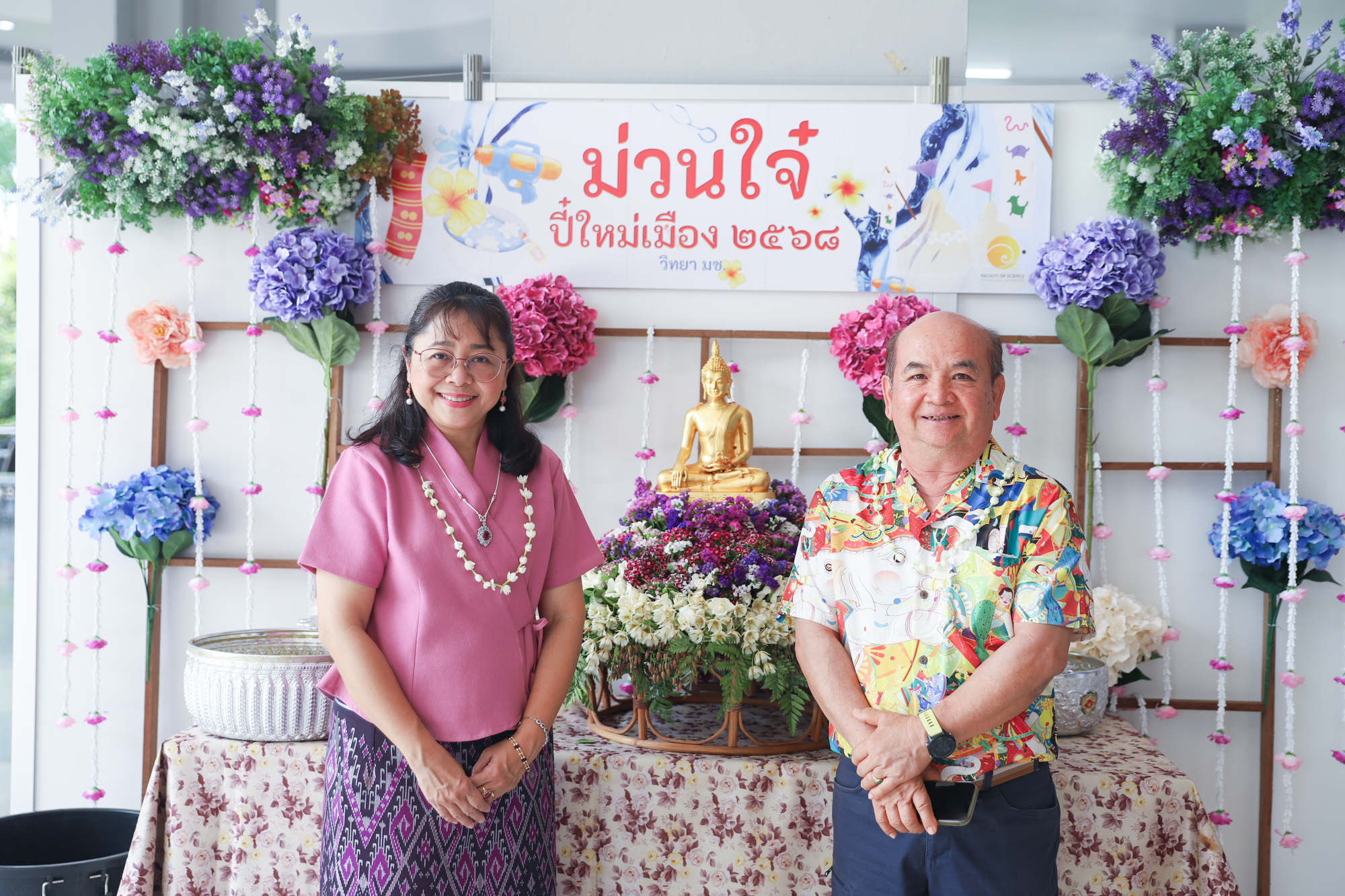 คณะวิทยาศาสตร์จัดพิธีดำหัวผู้อาวุโสคณะวิทยาศาสตร์ ในวันศุกร์ที่ 25 เมษายน 2568 ณ บริเวณโถงชั้น 1 อาคาร 40 ปี คณะวิทยาศาสตร์ โดยมี รองศาสตราจารย์ ดร.ปิยะพงศ์ เนียมทรัพย์ คณบดีคณะวิทยาศาสตร์ เป็นประธานในพิธี ซึ่งกิจกรรมสำคัญนี้ จัดขึ้นเพื่อส่งเสริมให้คณาจารย์ บุคลากร ตลอดจนนักศึกษาคณะวิทยาศาสตร์ ได้ร่วมกันอนุรักษ์สืบสานป๋าเวณีปี๋ใหม่เมือง และแสดงความเคารพนอบน้อมต่อผู้อาวุโส รวมทั้งสร้างความสัมพันธ์อันดีภายในองค์กร ในปีนี้มีผู้อาวุโส ซึ่งประกอบด้วย อดีตผู้บริหาร ผู้เกษียณ และผู้ทรงคุณวุฒิจากทุกส่วนงาน ให้เกียรติเข้าร่วมงานอย่างคับคั่ง โดยบรรยากาศภายในงานเป็นไปอย่างอบอุ่นและเรียบง่าย บุคลากรและนักศึกษาได้พร้อมใจกันตกแต่งริ้วขบวนอย่างสวยงามเข้าสระเกล้าดำหัวและขอพรจากผู้อาวุโสโดยพร้อมเพรียงกัน ในโอกาสเดียวกันนี้ คณบดีคณะวิทยาศาสตร์ ได้นำคณาจารย์ บุคลากร และนักศึกษา เข้าร่วมพิธีดำหัวผู้อาวุโสมหาวิทยาลัยเชียงใหม่ ณ หอประชุมมหาวิทยาลัยเชียงใหม่ เพื่อสืบทอดวัฒนธรรมที่สวยงาม และเสริมสร้างความเป็นน้ำหนึ่งใจเดียวกันของชาว มช. ด้วย