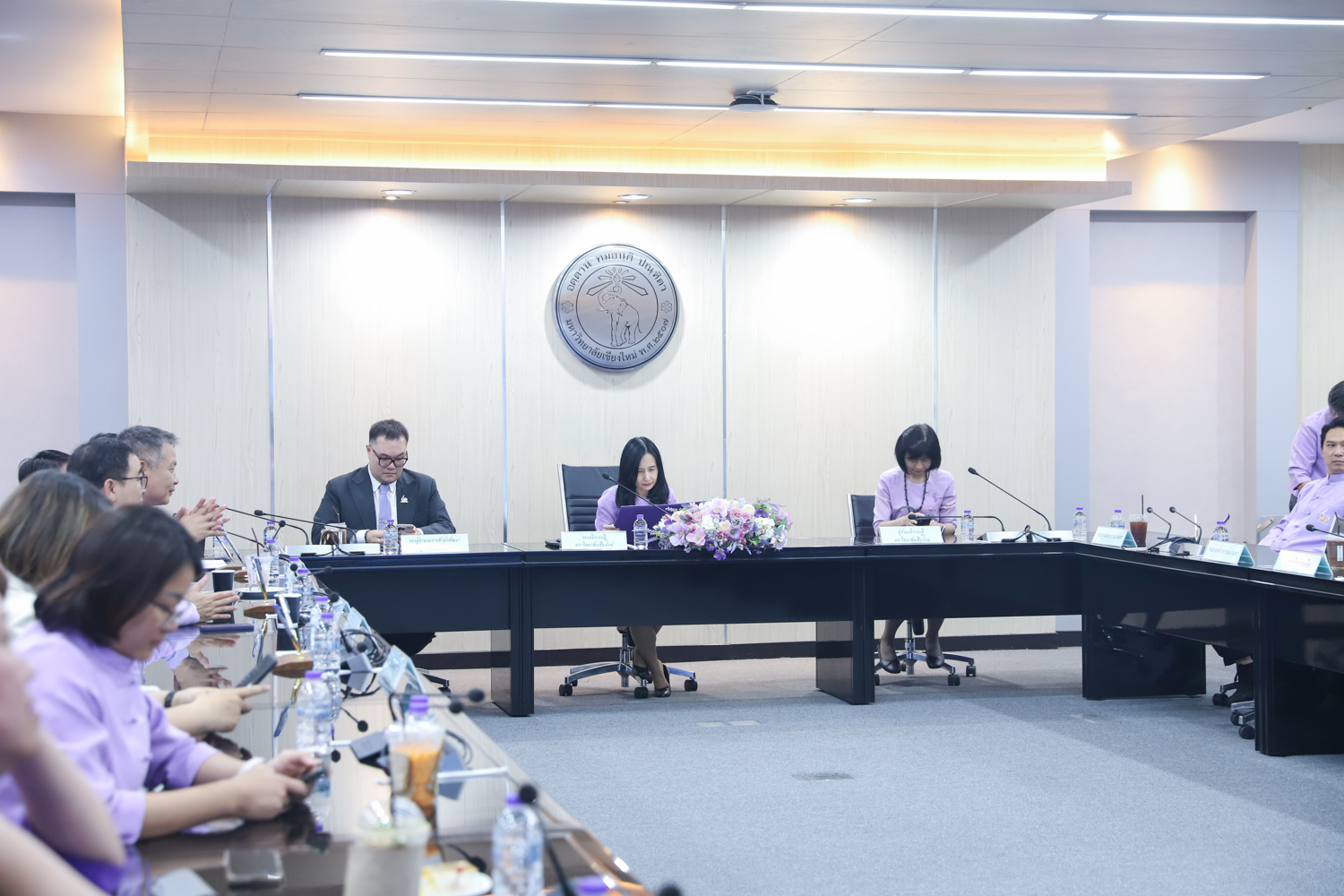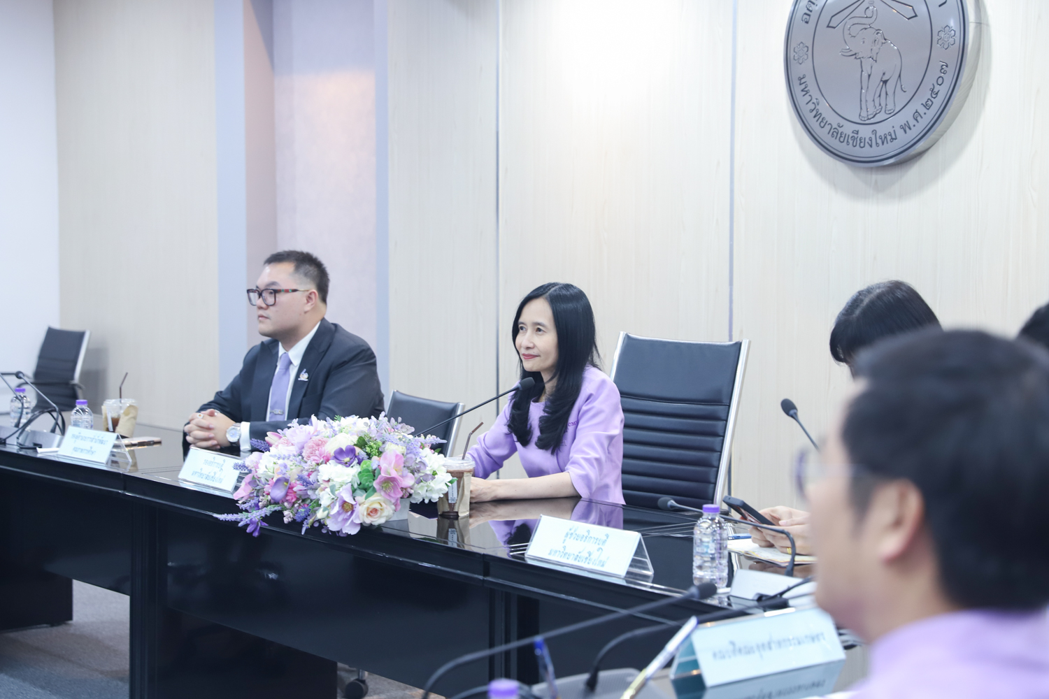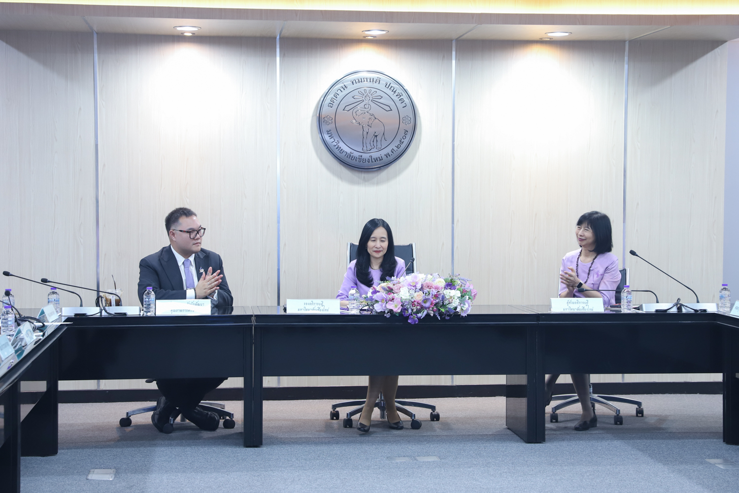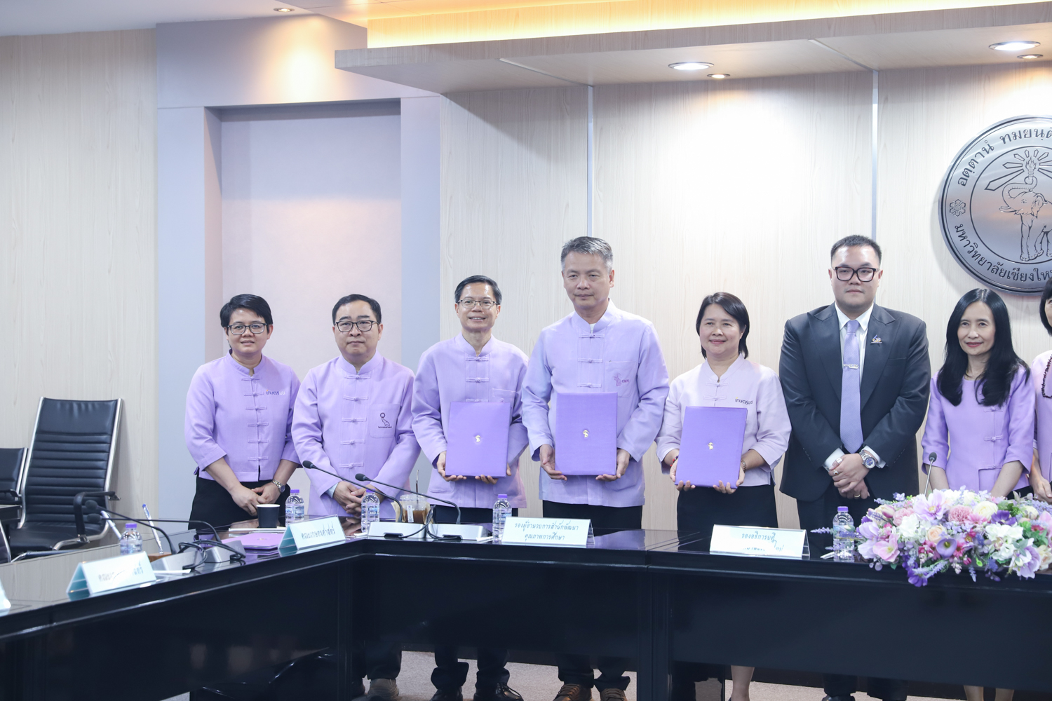 เมื่อวันที่ 30 เมษายน 2568 ณ ห้องประชุมพระยาศรีวิสารวาจา สำนักงานมหาวิทยาลัยเชียงใหม่ รองศาสตราจารย์ เภสัชกรหญิงอุษณีย์ คำประกอบ รองอธิการบดีมหาวิทยาลัยเชียงใหม่ เป็นประธานในพิธีลงนามความร่วมมือ เรื่อง การบริหารจัดการหลักสูตรวิทยาศาสตรบัณฑิตสาขาวิชาผู้ประกอบการด้านเกษตรอัจฉริยะ ระหว่าง คณะเกษตรศาสตร์ กับคณะวิศวกรรมศาสตร์ คณะอุตสาหกรรมเกษตร คณะวิทยาศาสตร์ คณะบริหารธุรกิจ และวิทยาลัย ศิลปะ สื่อ และเทคโนโลยี โดยมีผู้บริหาร ประธานหลักสูตร และผู้รับผิดชอบหลักสูตร ร่วมเป็นเกียรติในพิธีลงนาม MOU ดังกล่าว