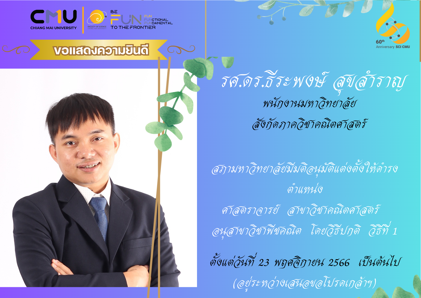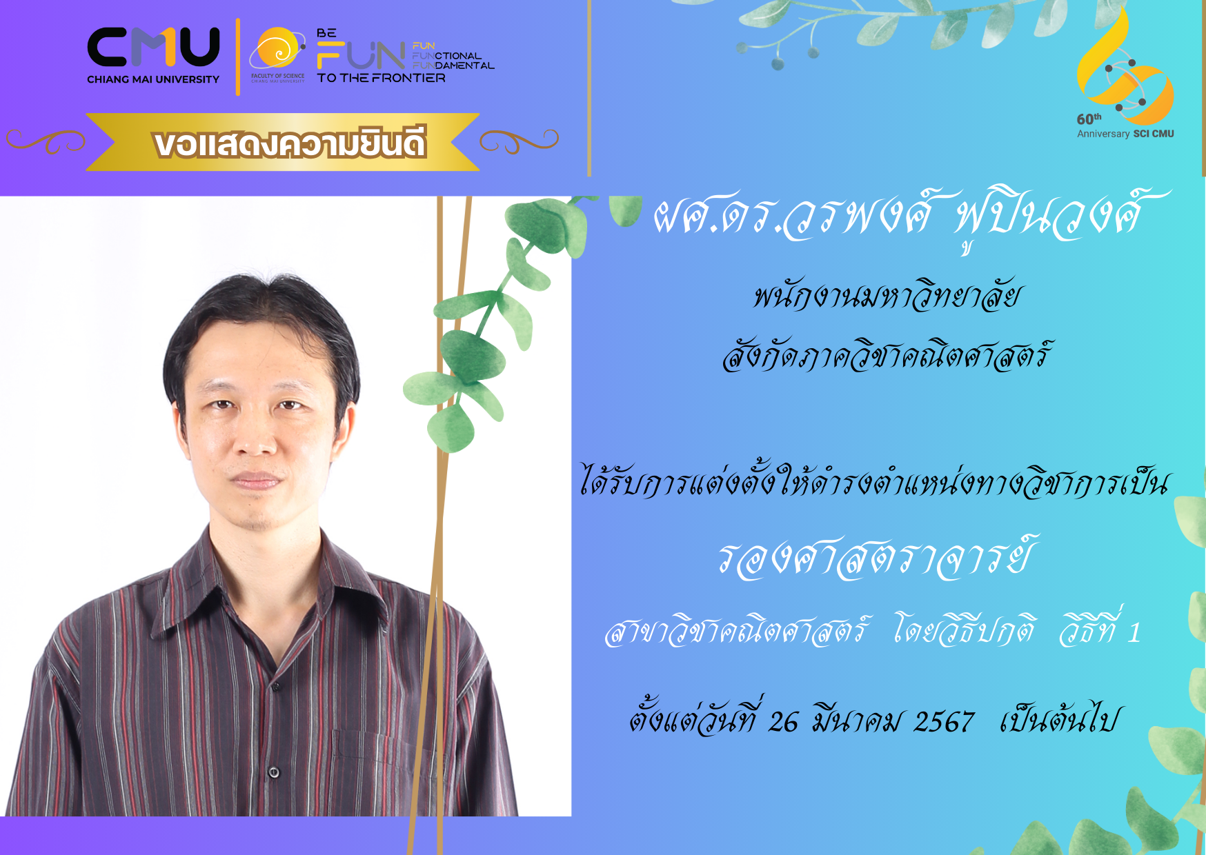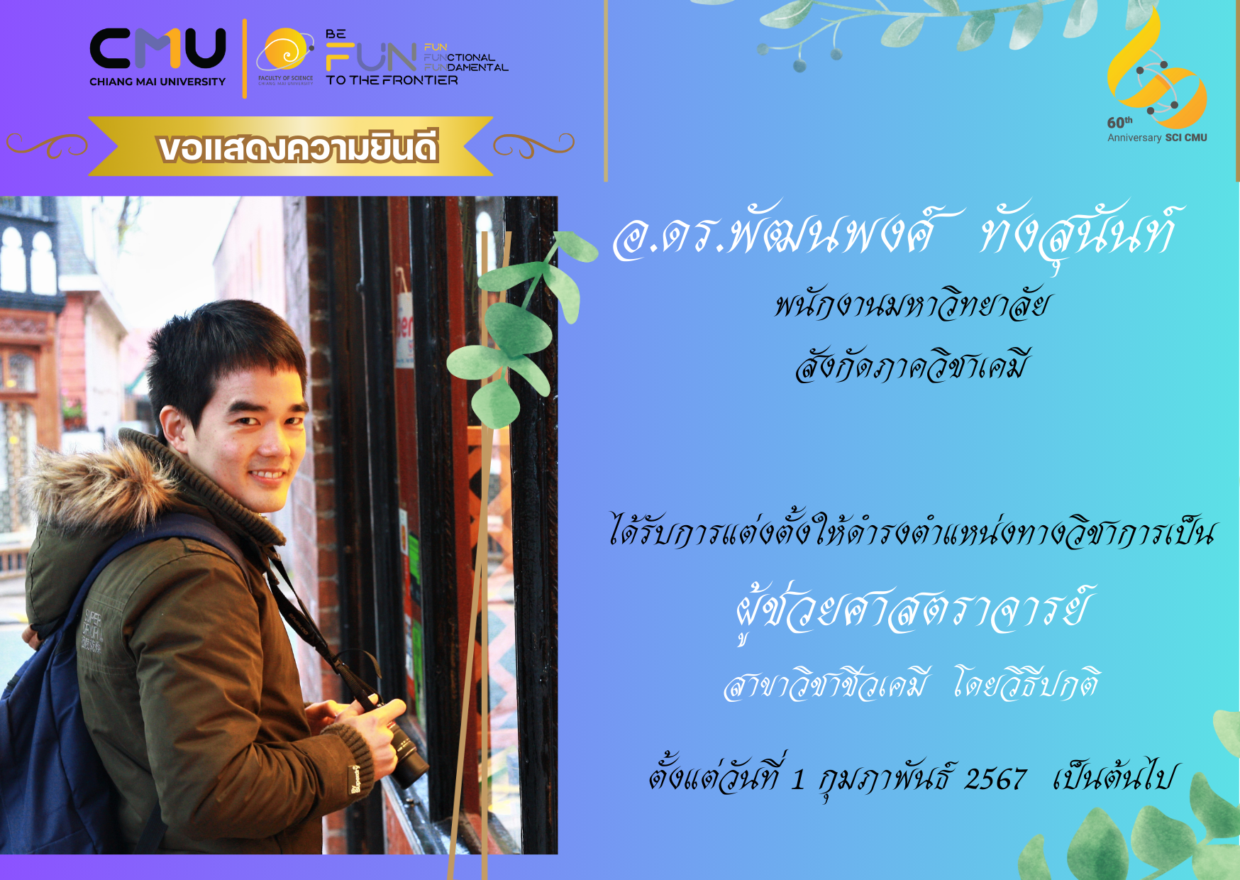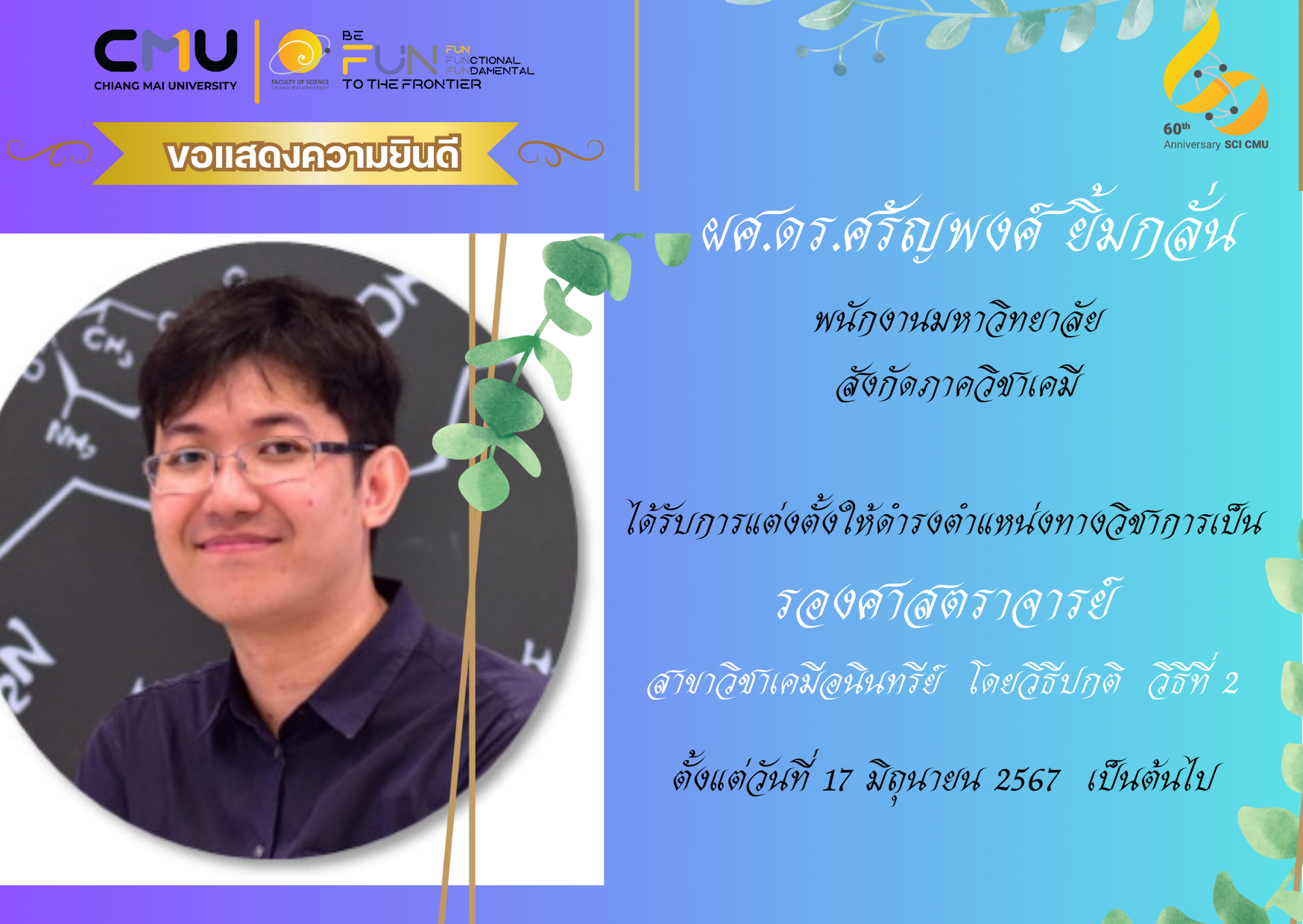 ขอแสดงความยินดีกับบุคลากรคณะวิทยาศาสตร์ที่ได้รับการแต่งตั้งให้ดำรงตำแหน่งทางวิชาการ